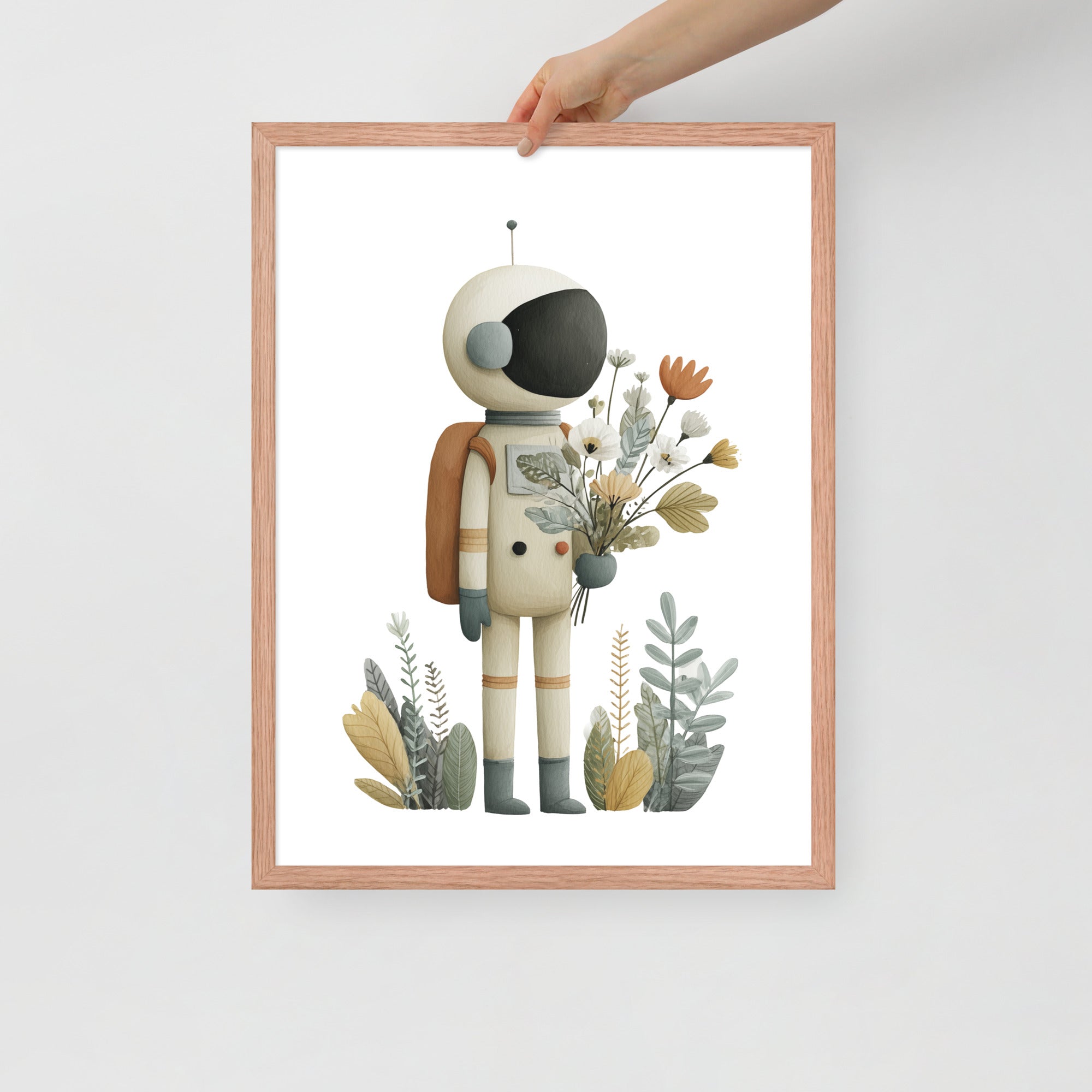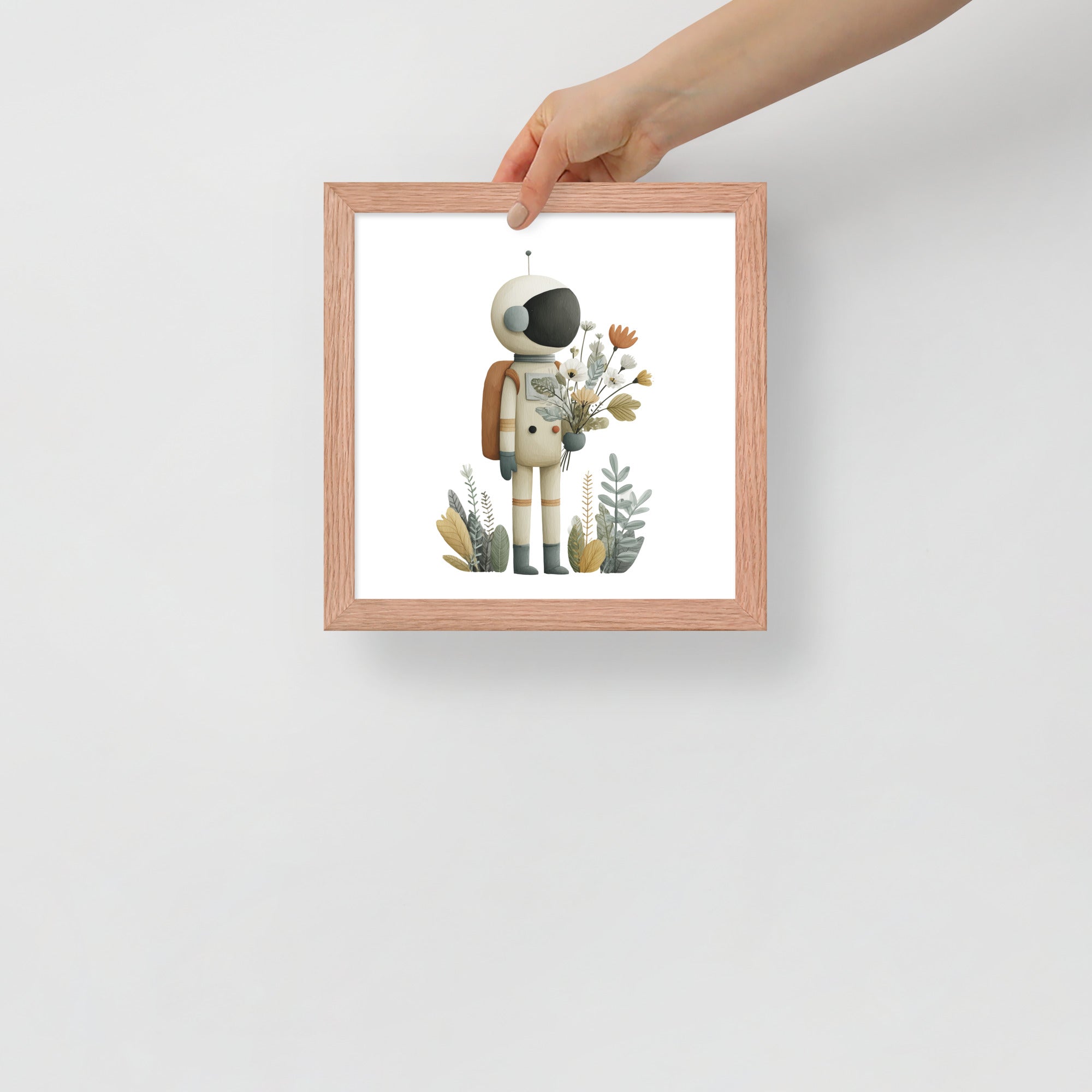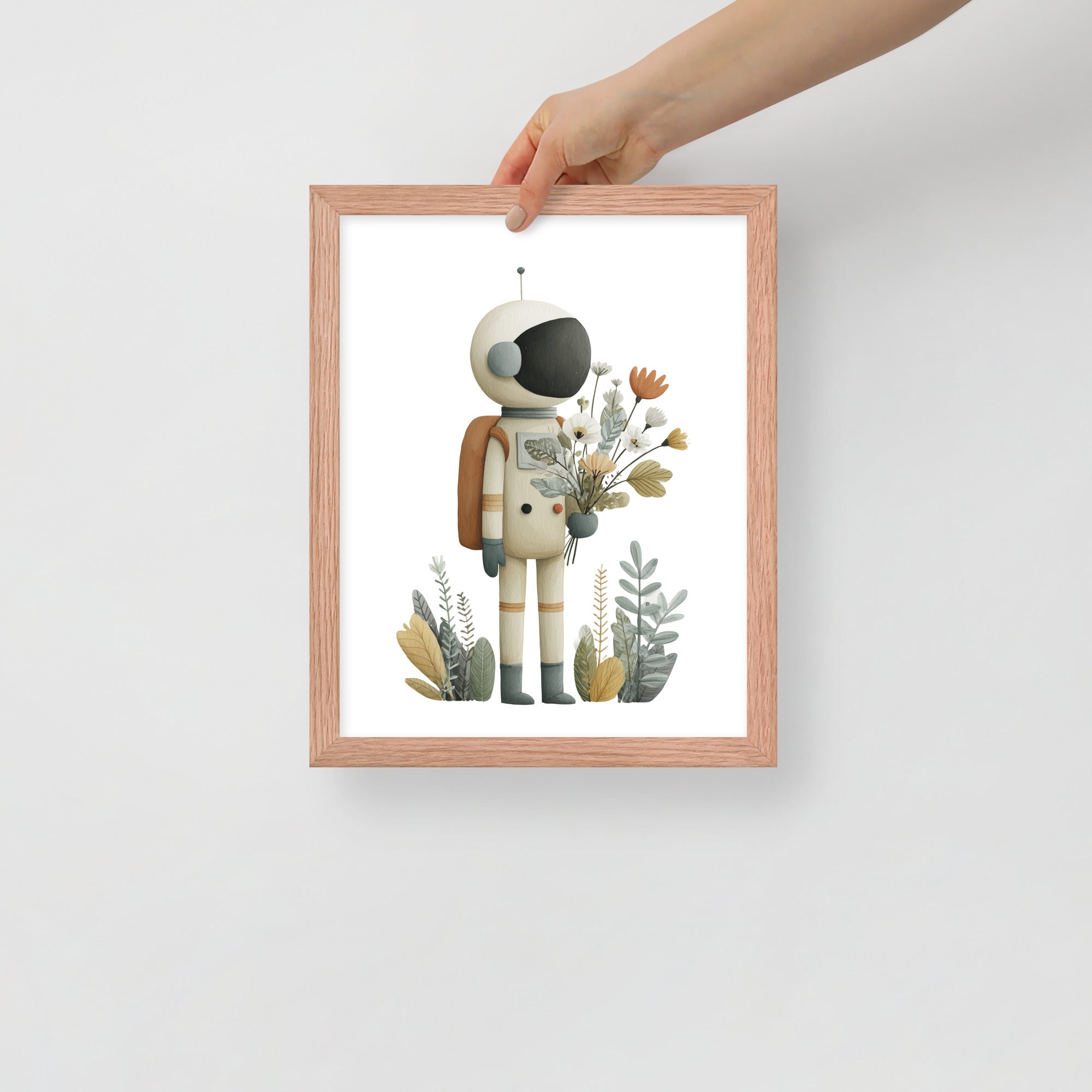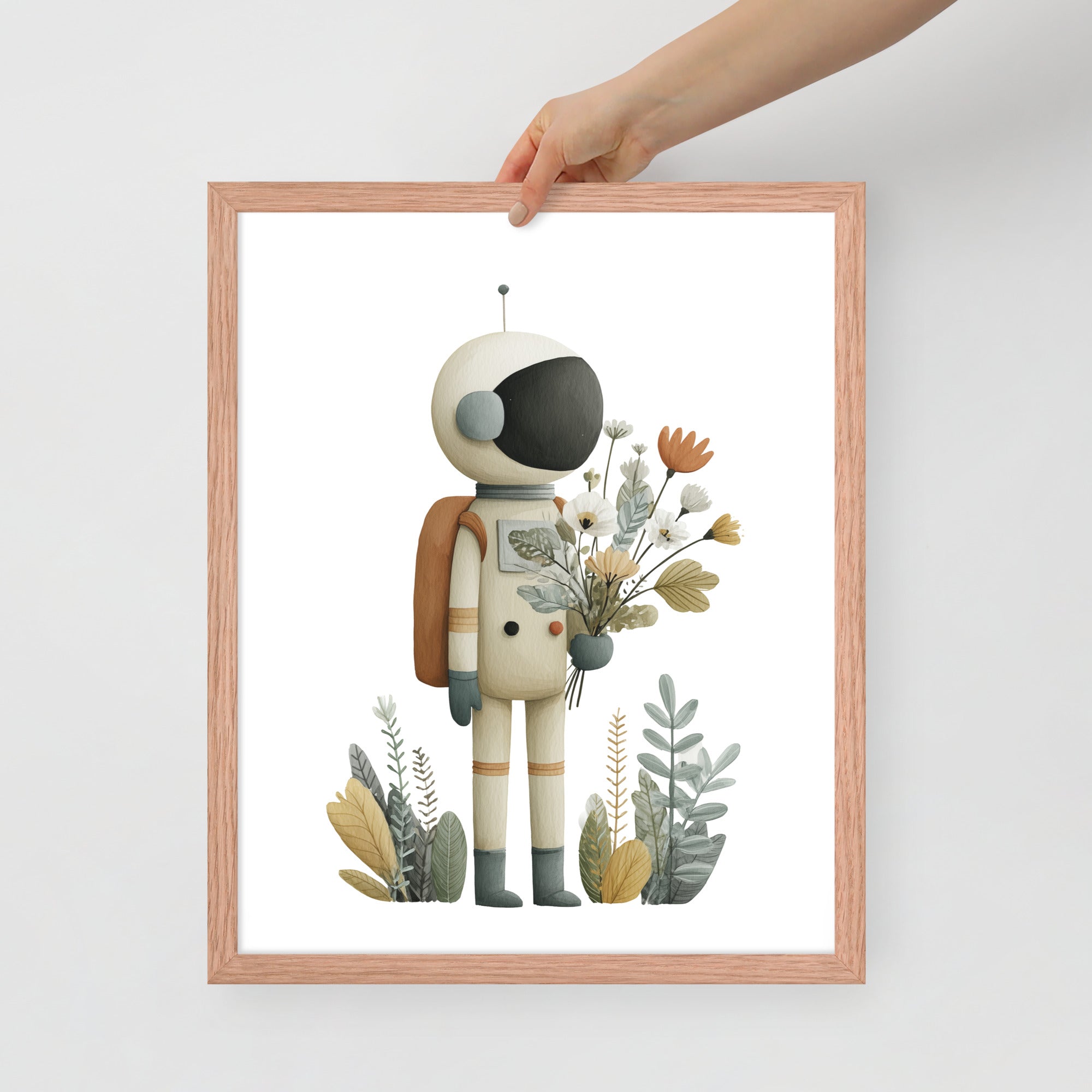 Astronaut & Flowers - Gentle Storybook Series - Framed Nursery Wall Art