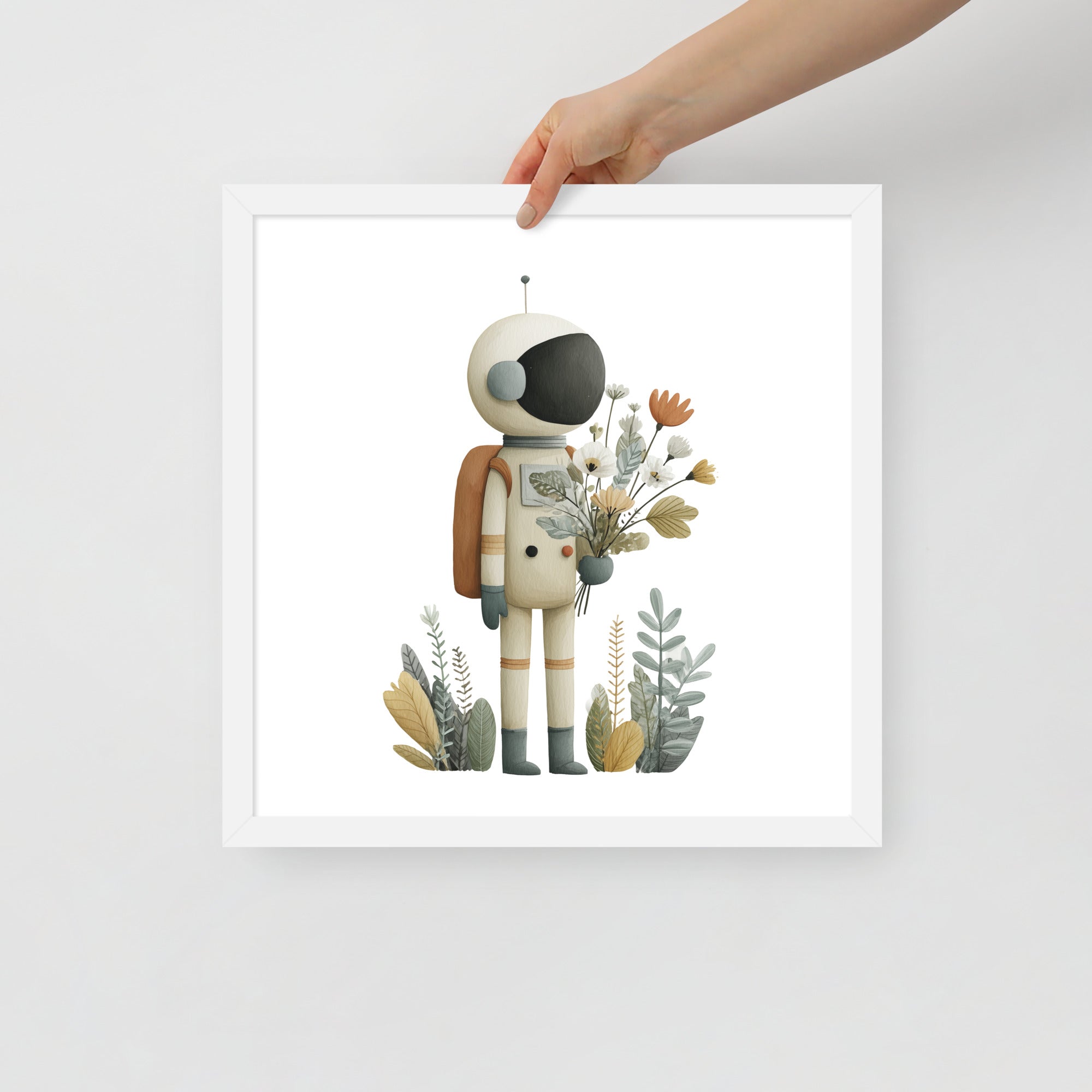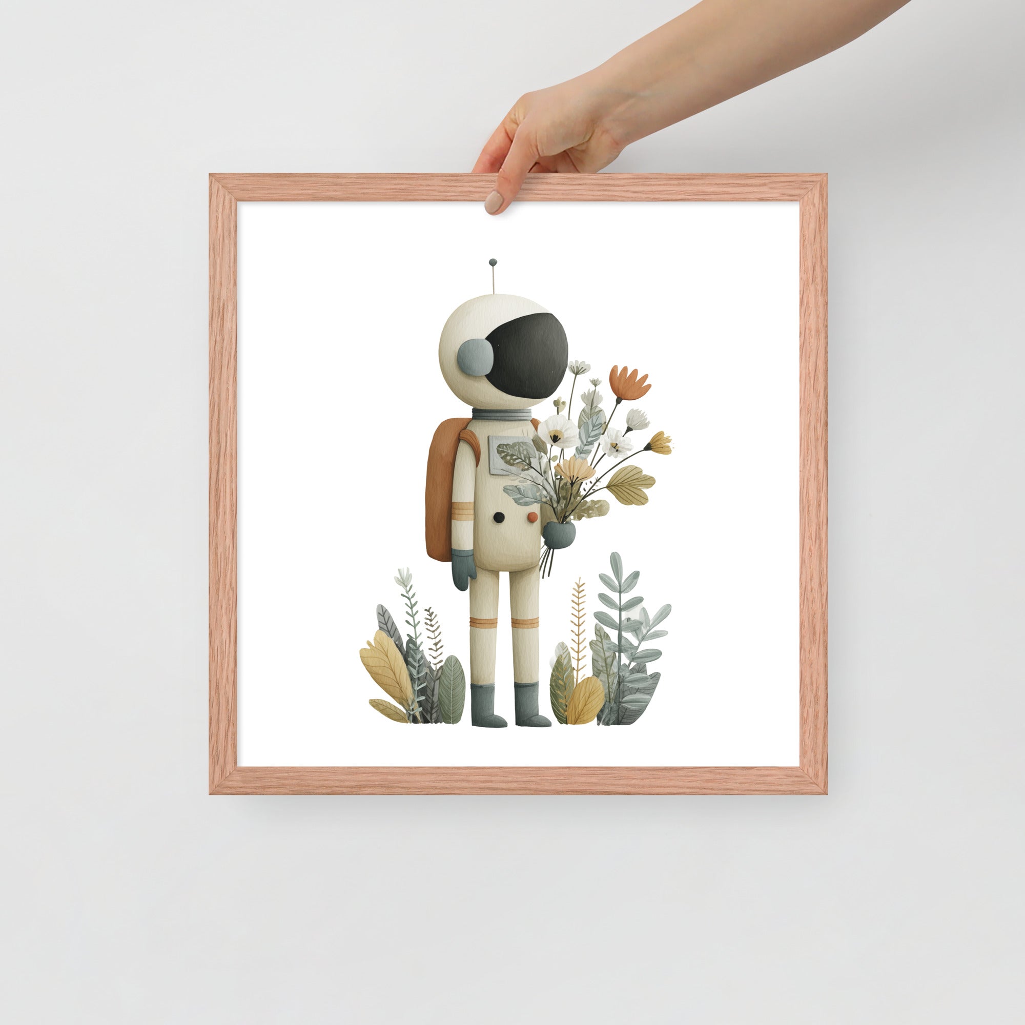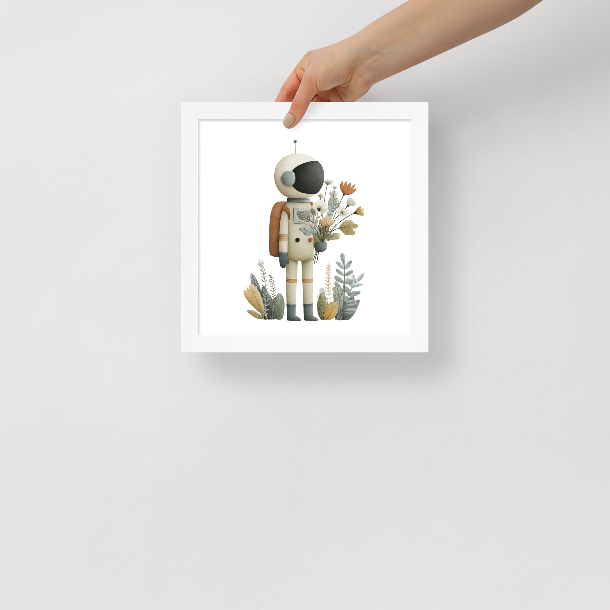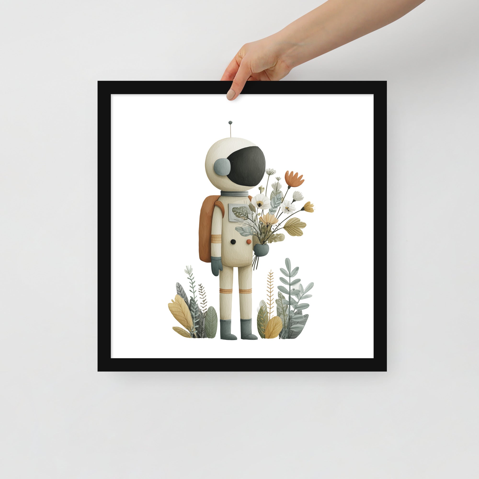 Astronaut & Flowers - Gentle Storybook Series - Framed Nursery Wall Art