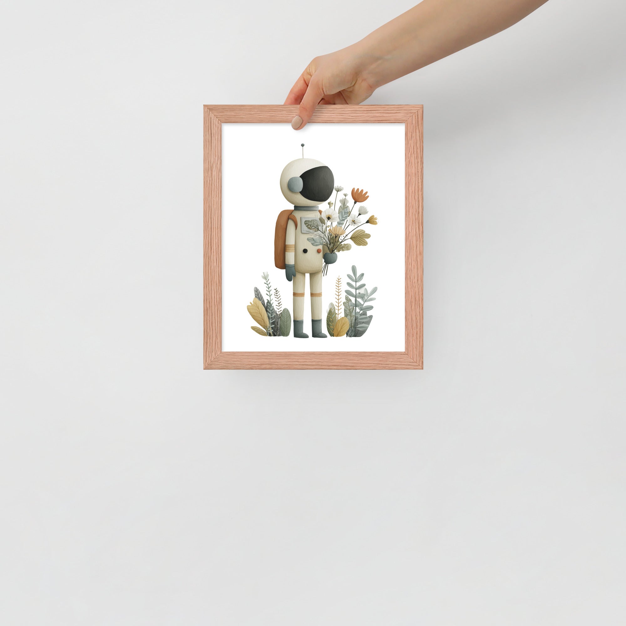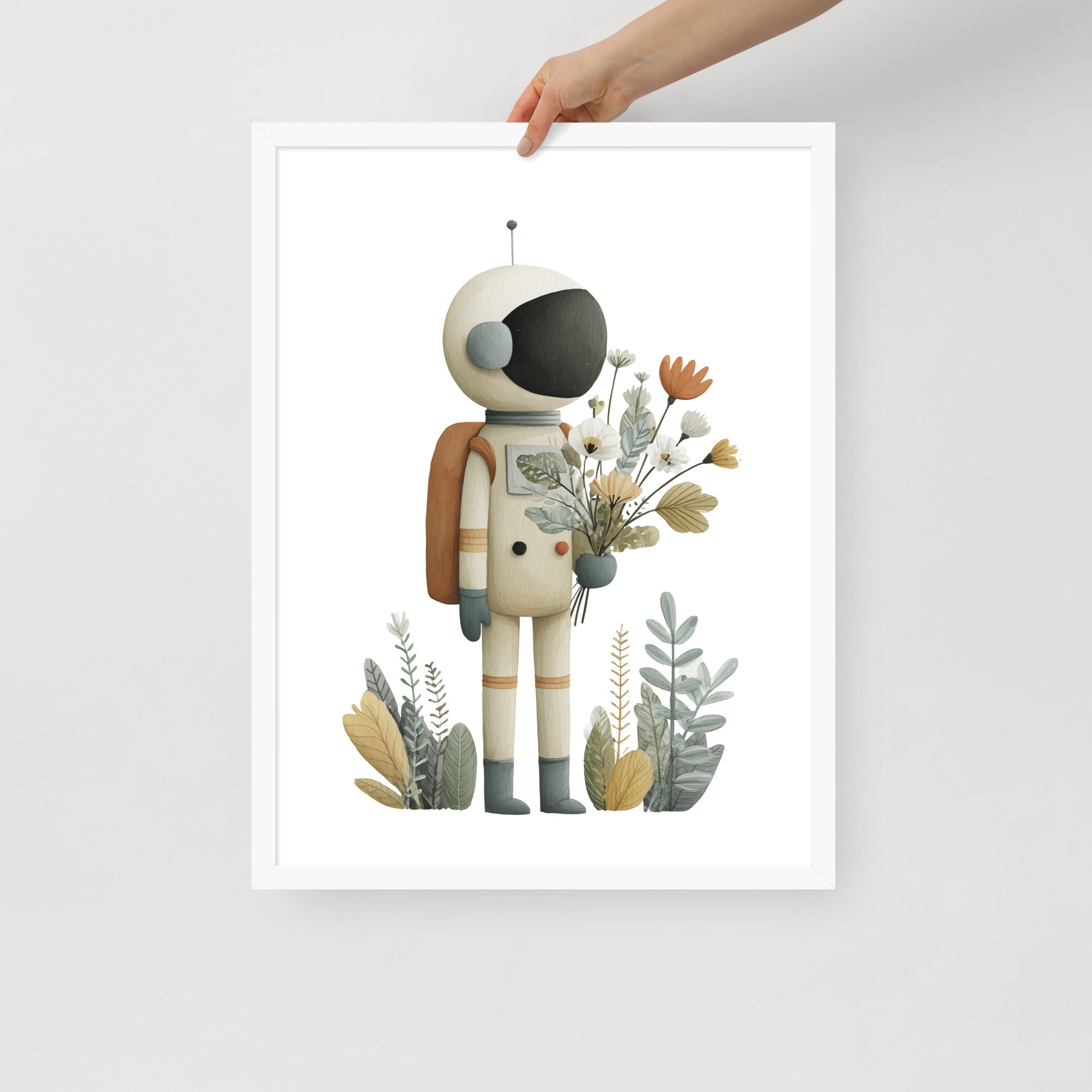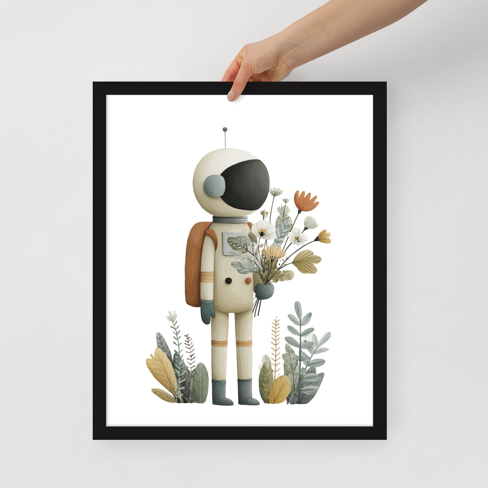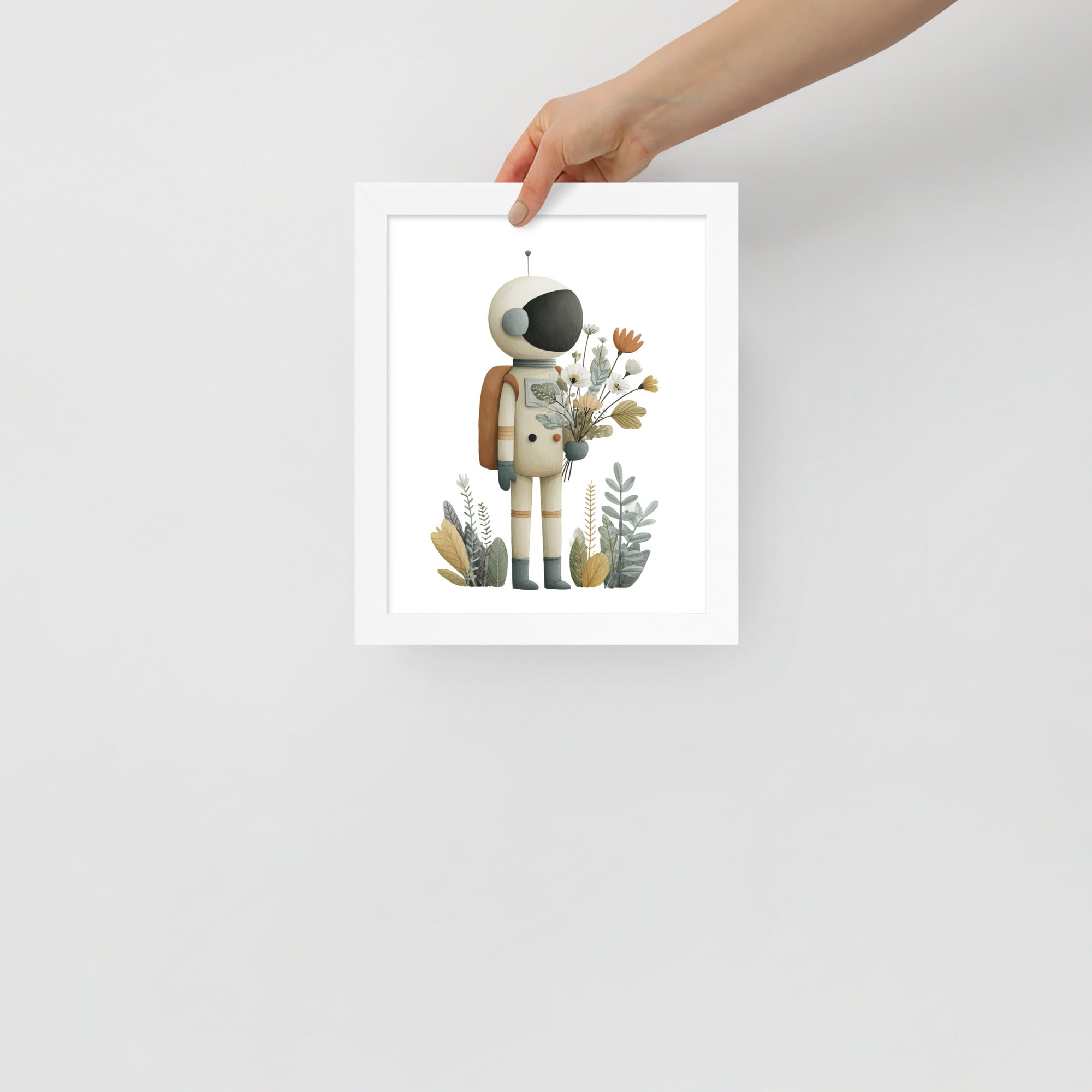 Astronaut & Flowers - Gentle Storybook Series - Framed Nursery Wall Art