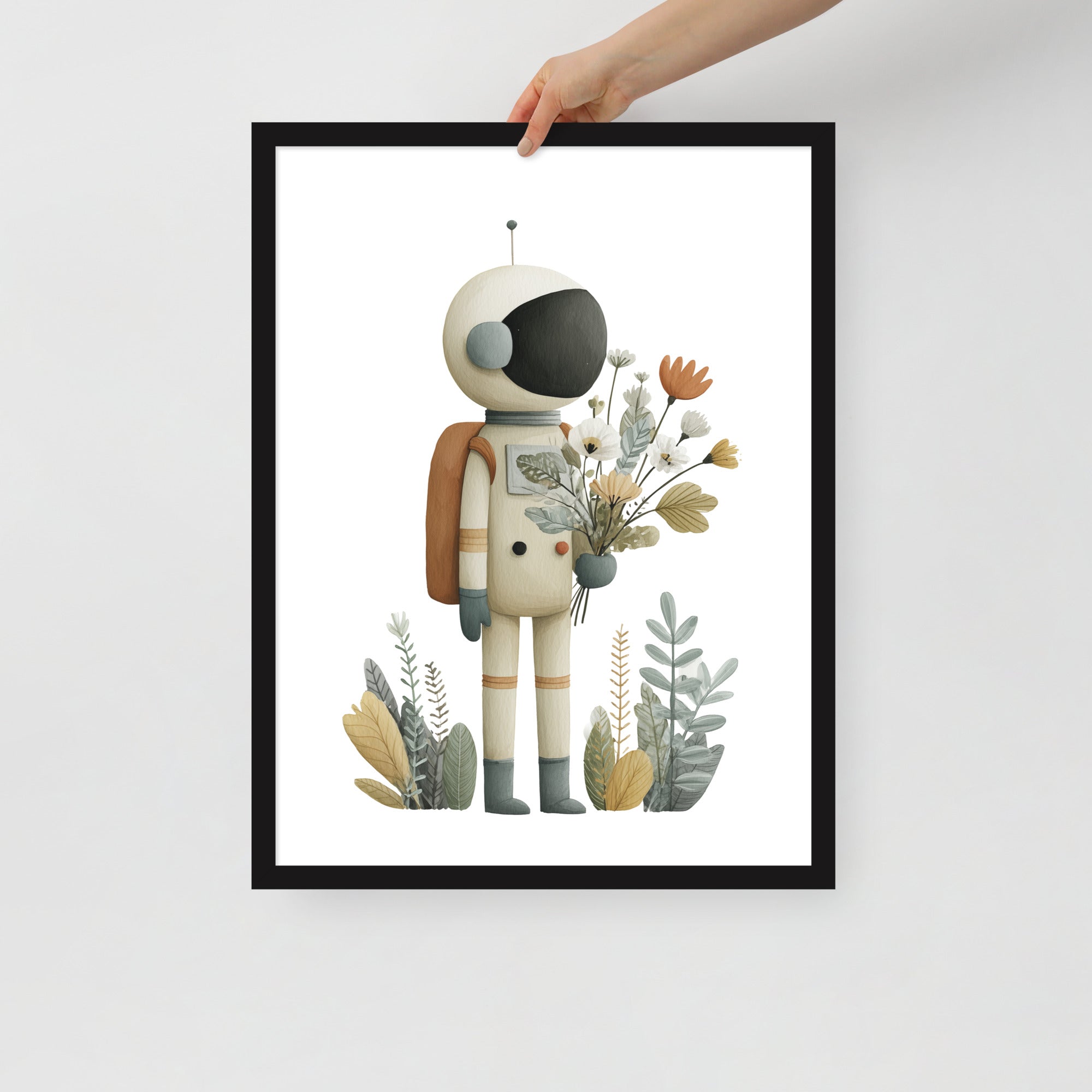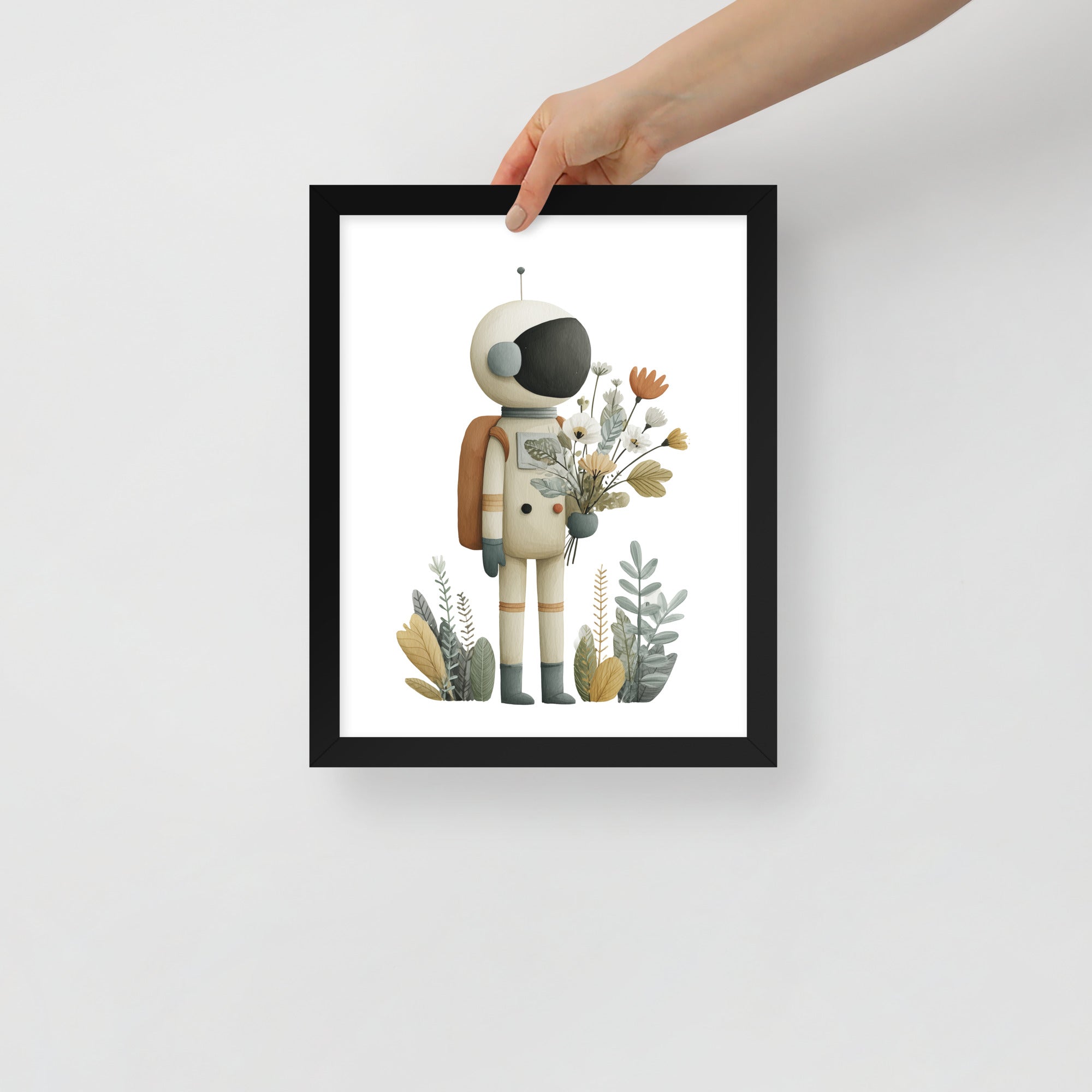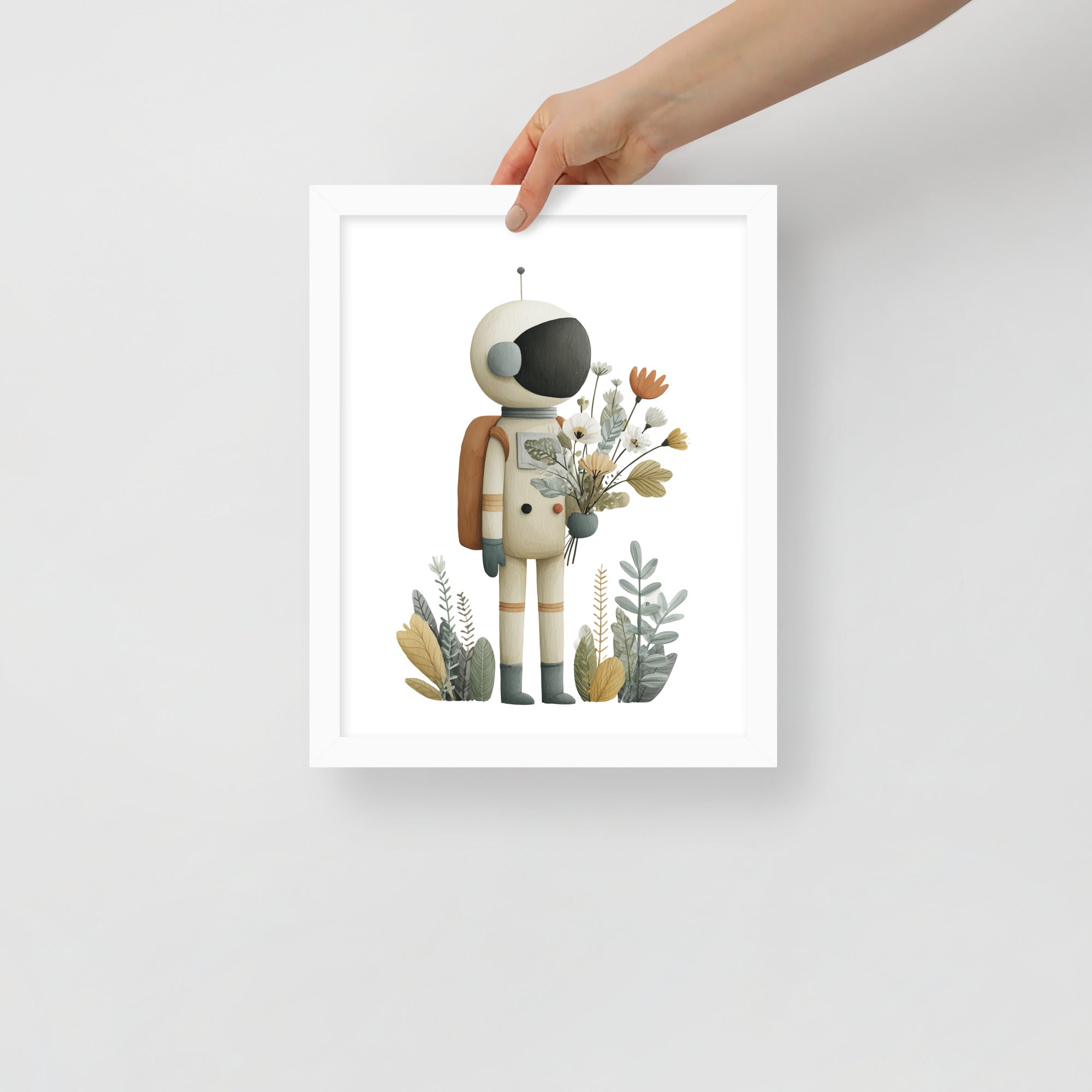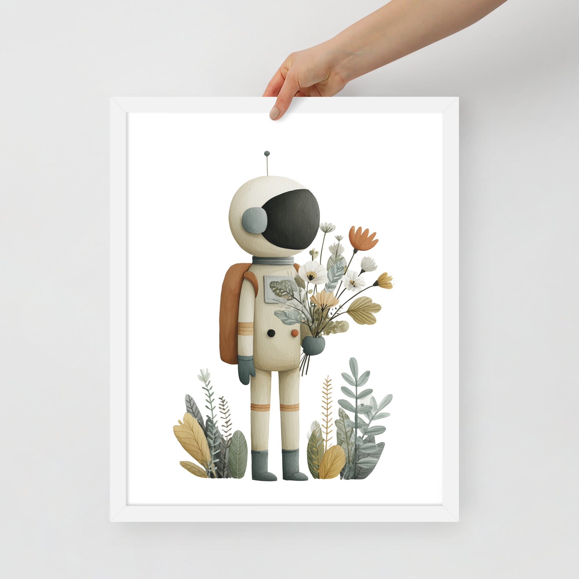 Astronaut & Flowers - Gentle Storybook Series - Framed Nursery Wall Art