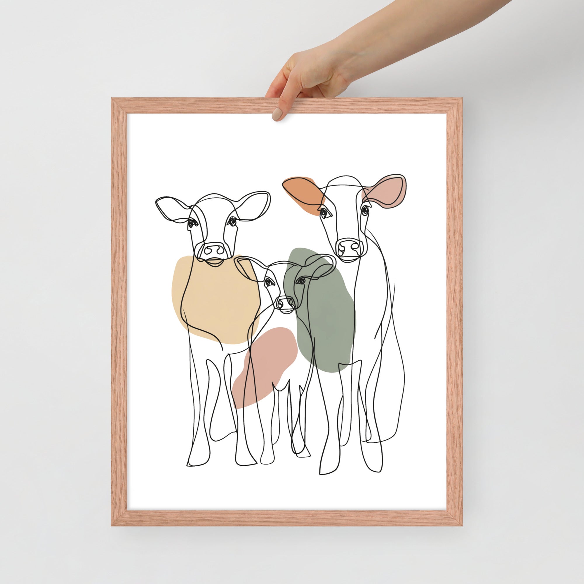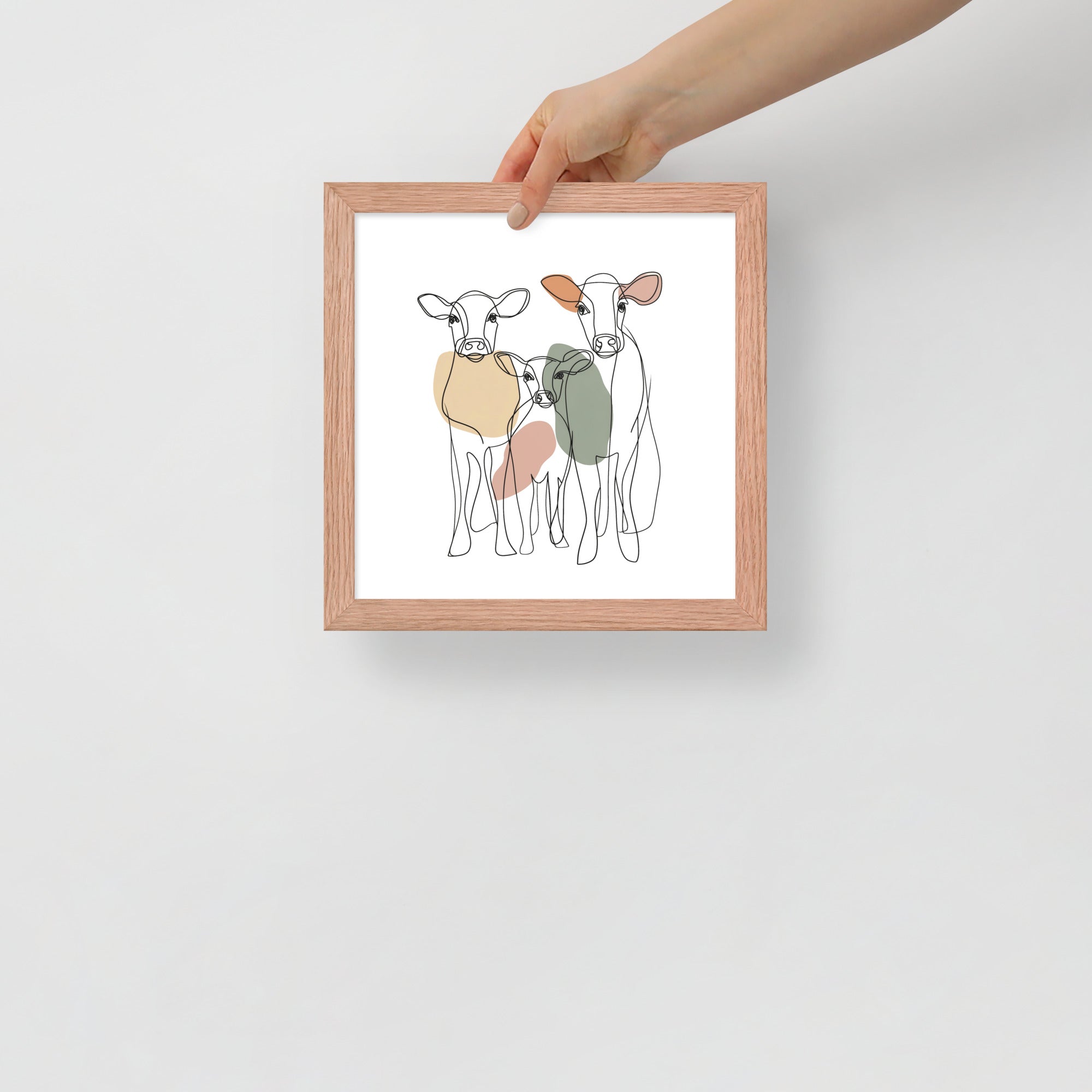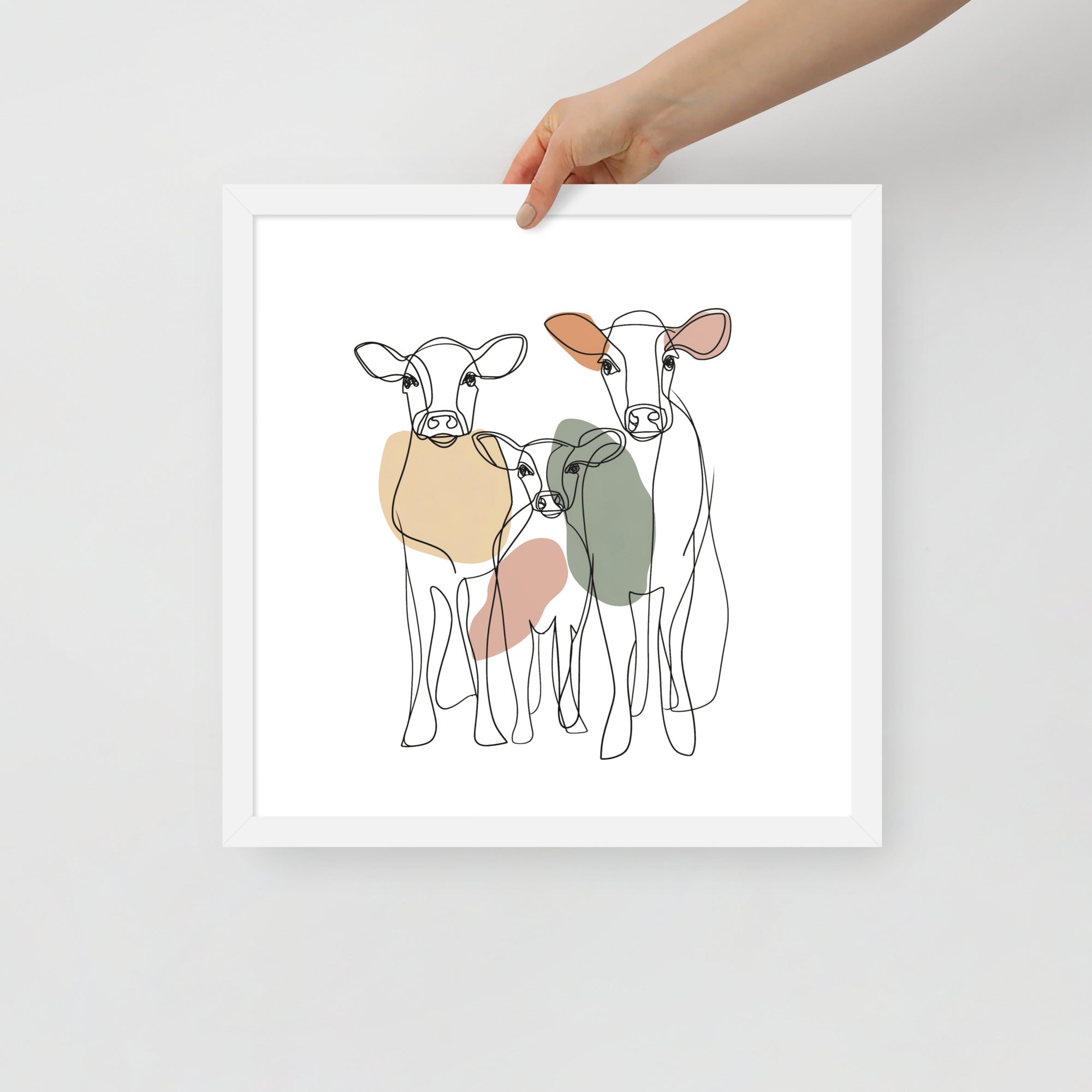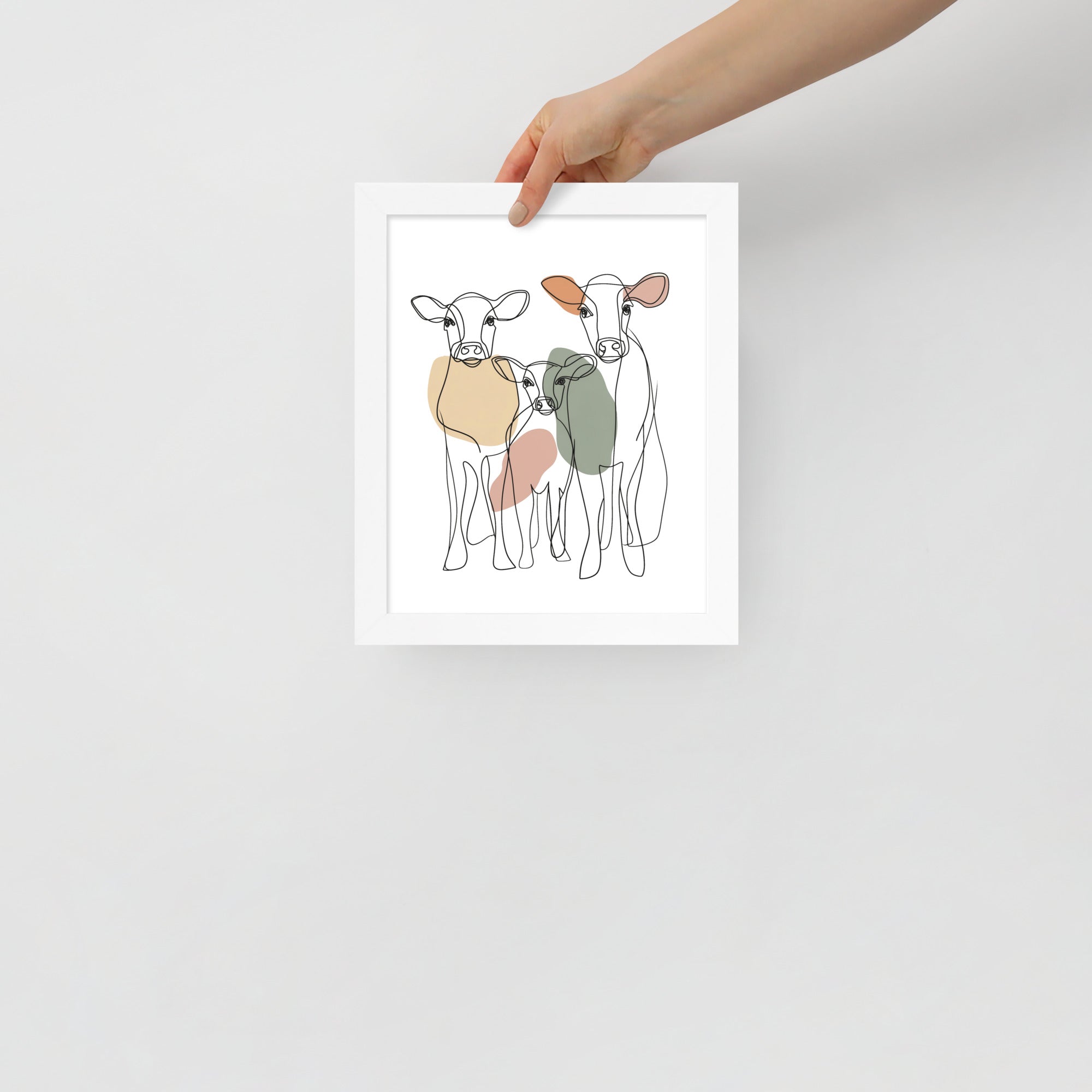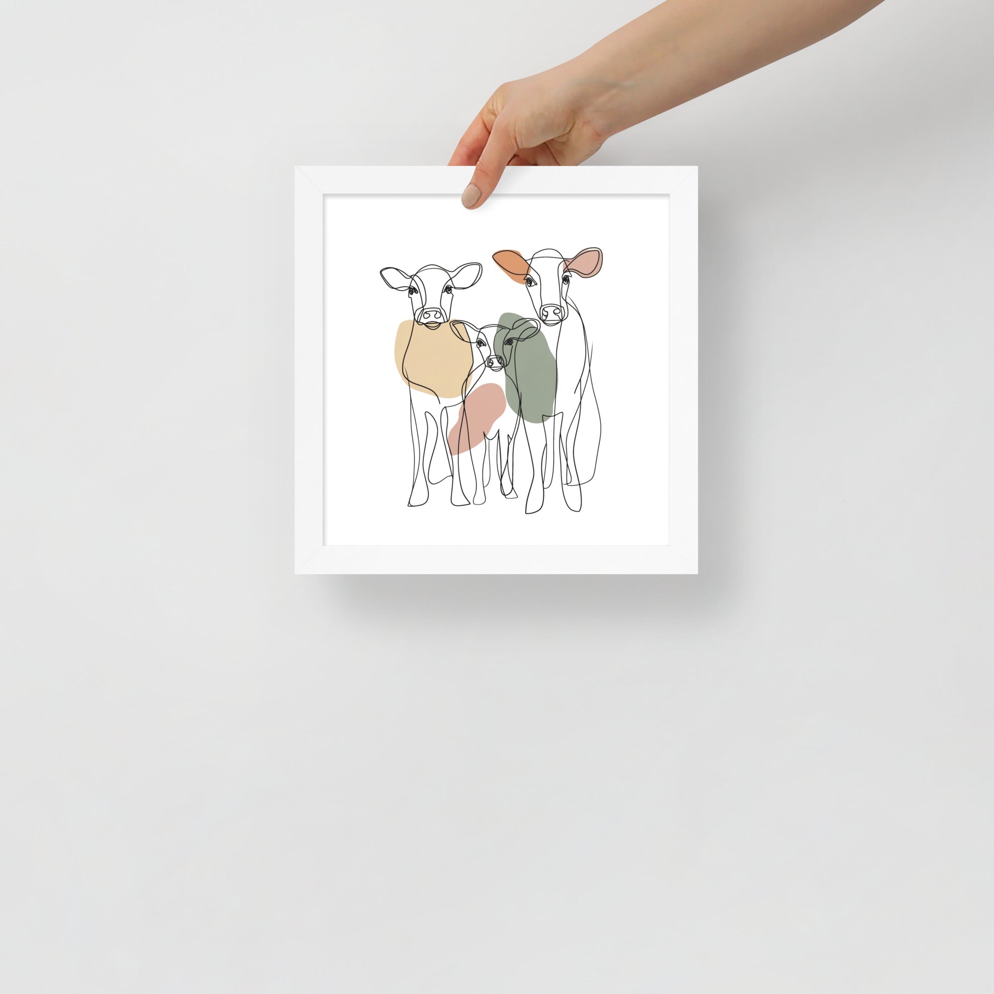 Baby Cow Trio - Line Art Series - Framed Nursery Wall Art
