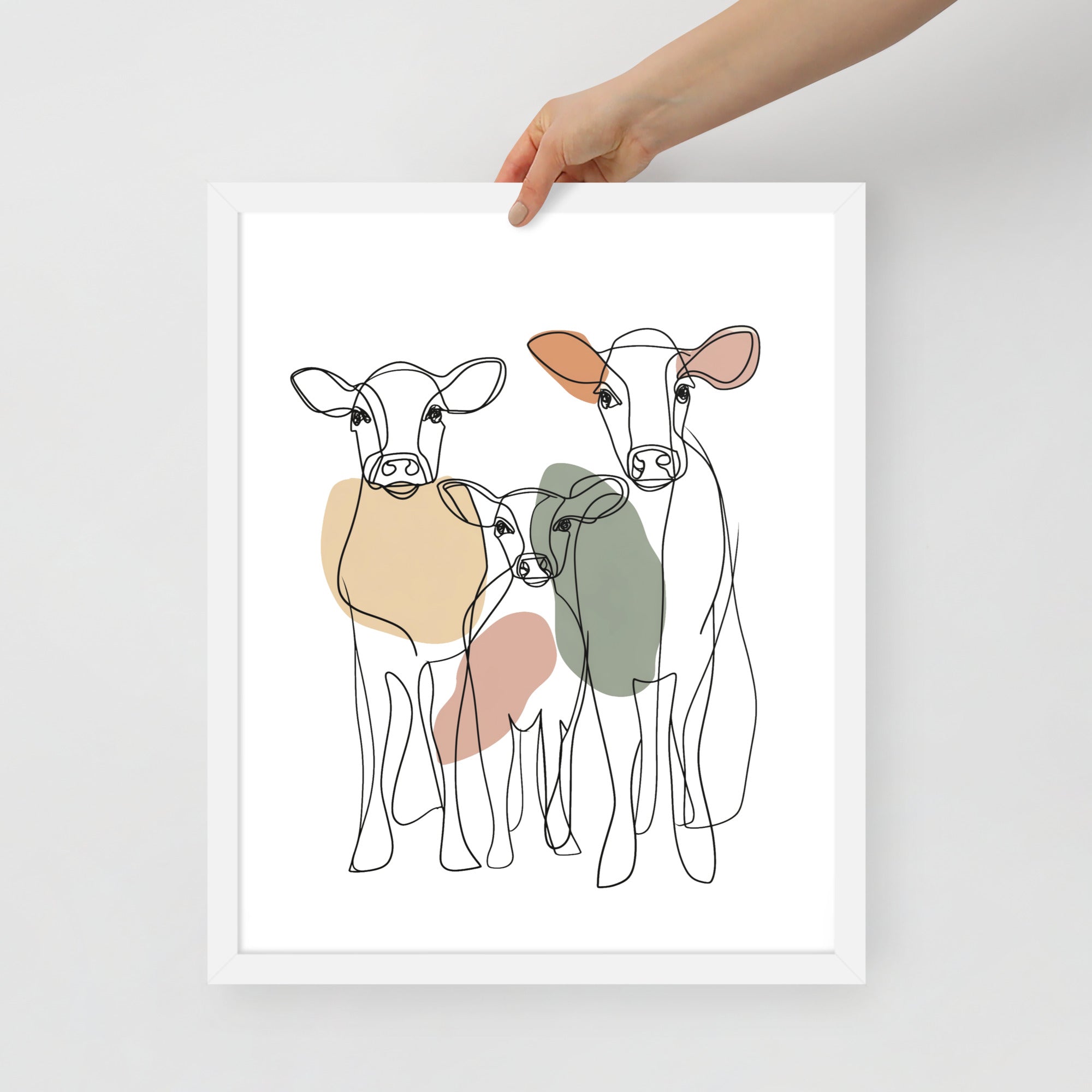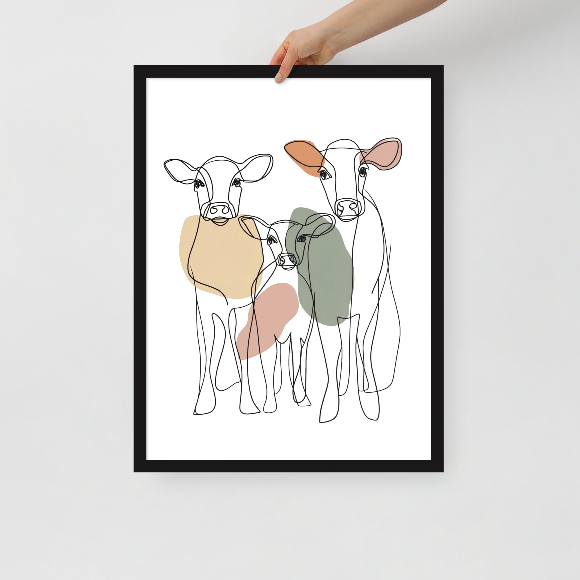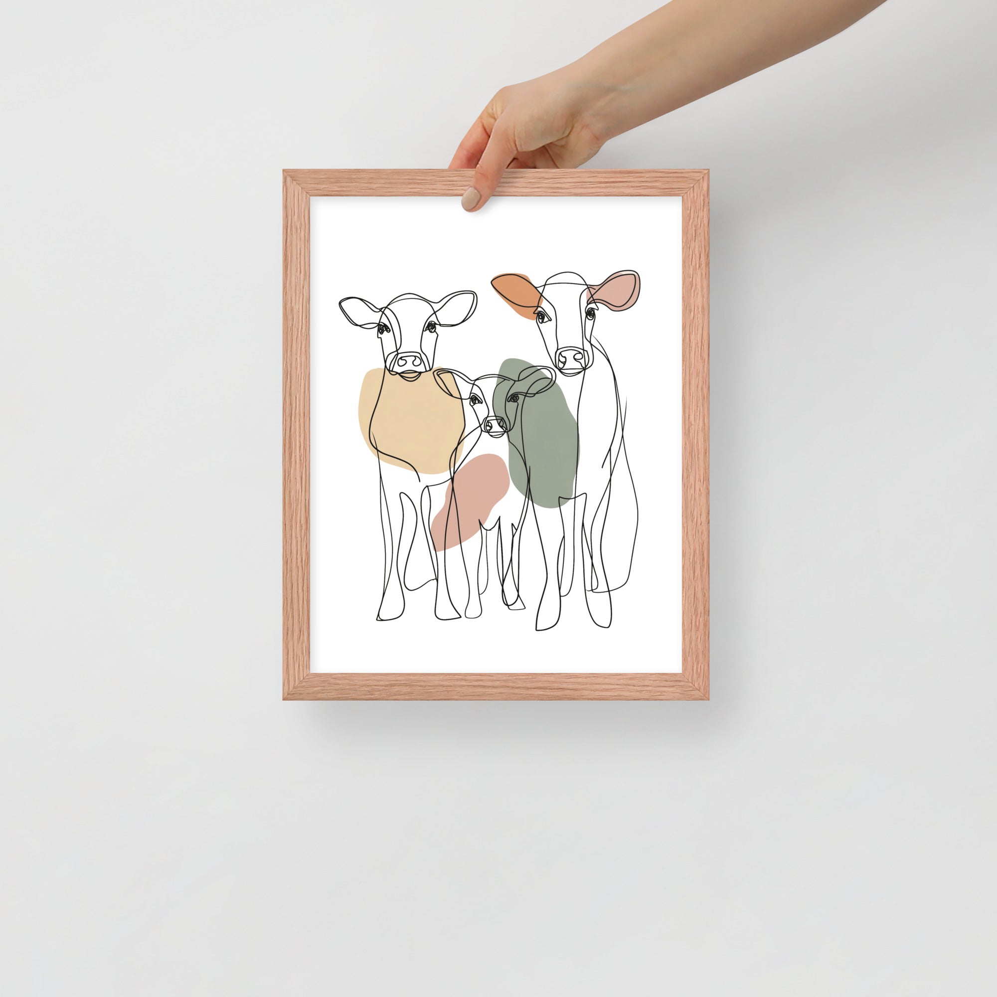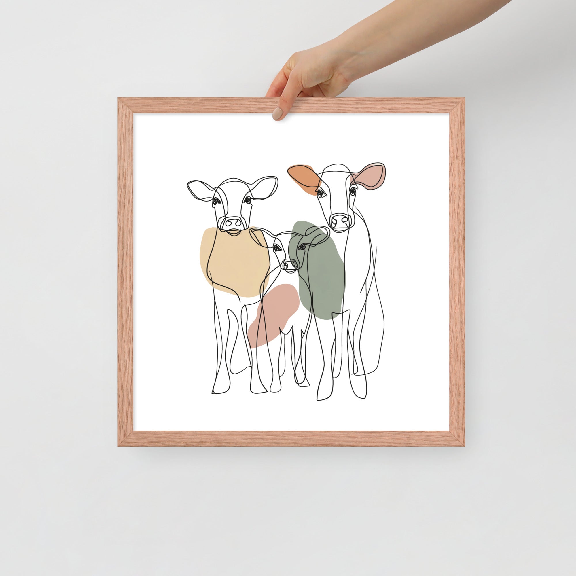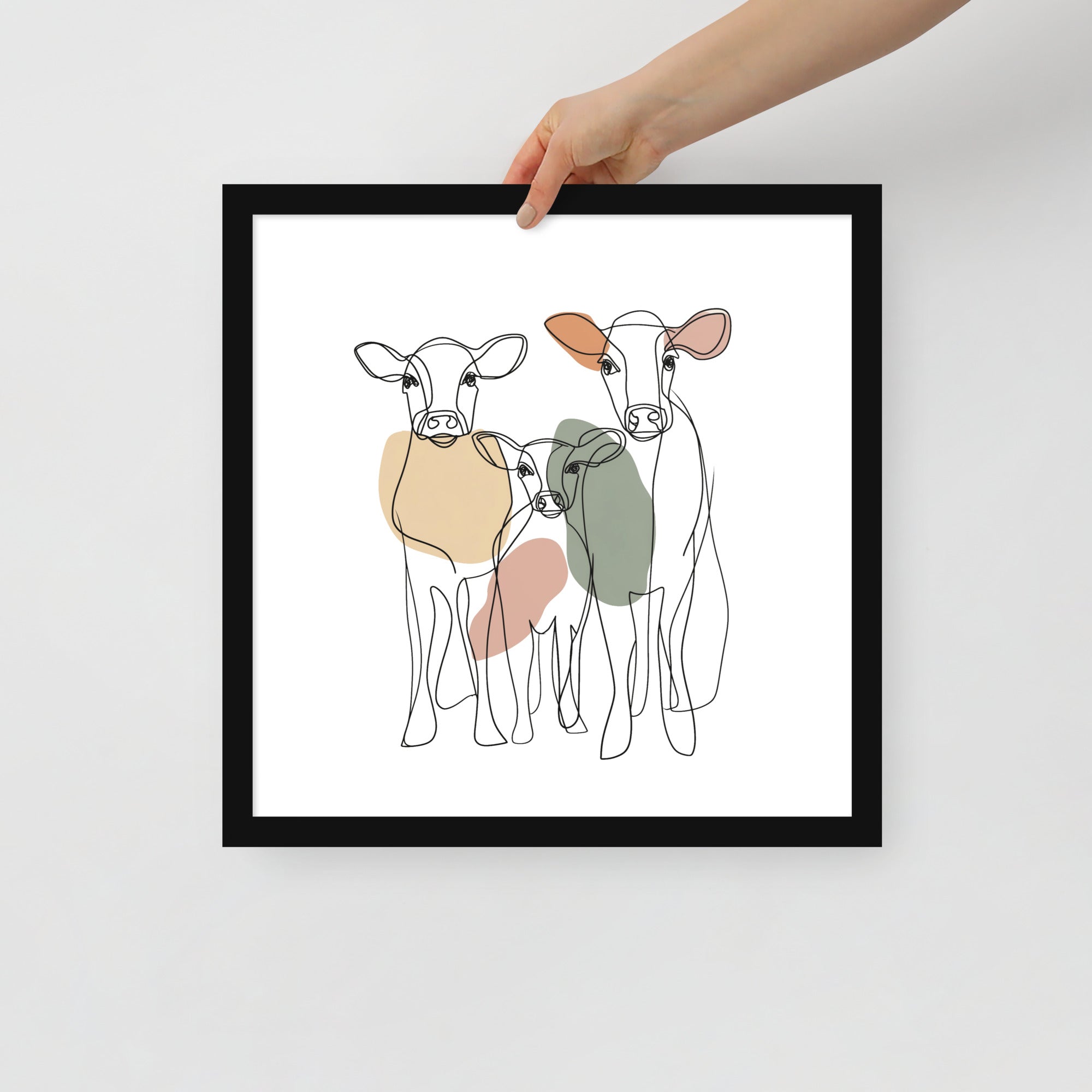 Baby Cow Trio - Line Art Series - Framed Nursery Wall Art
