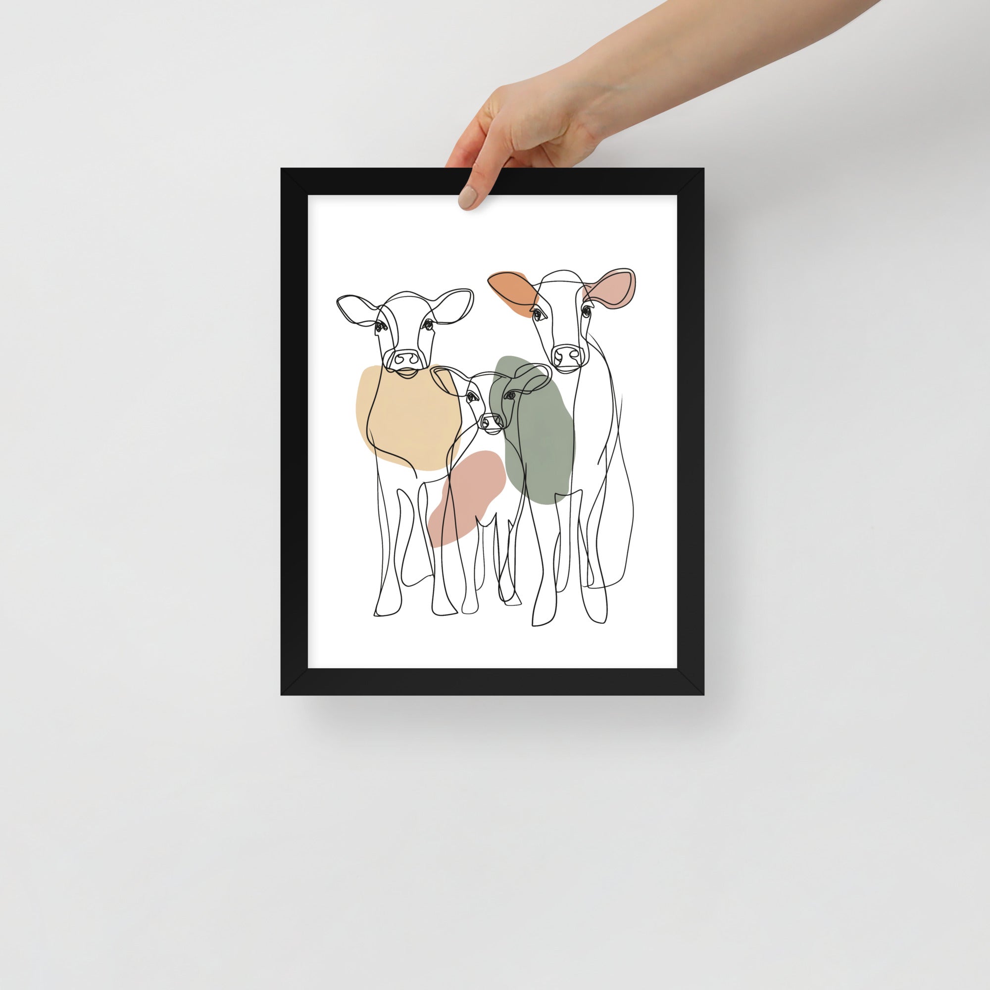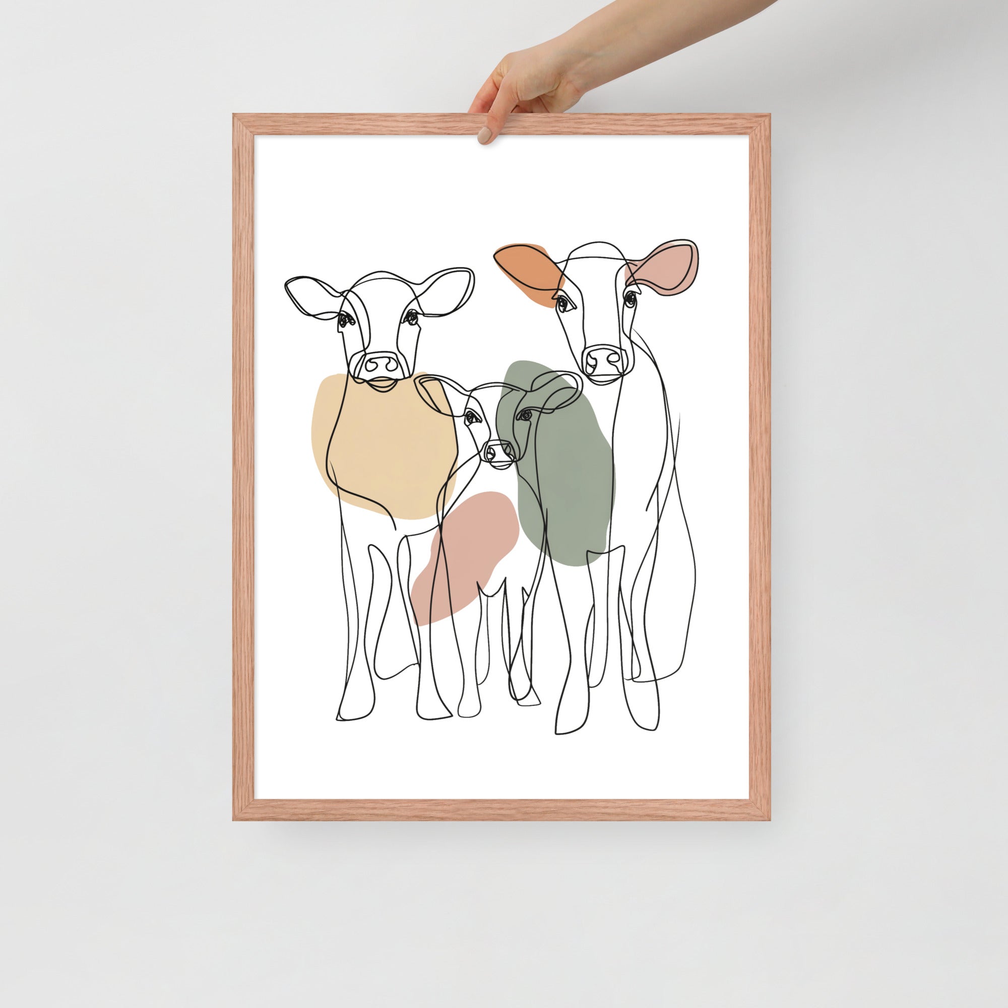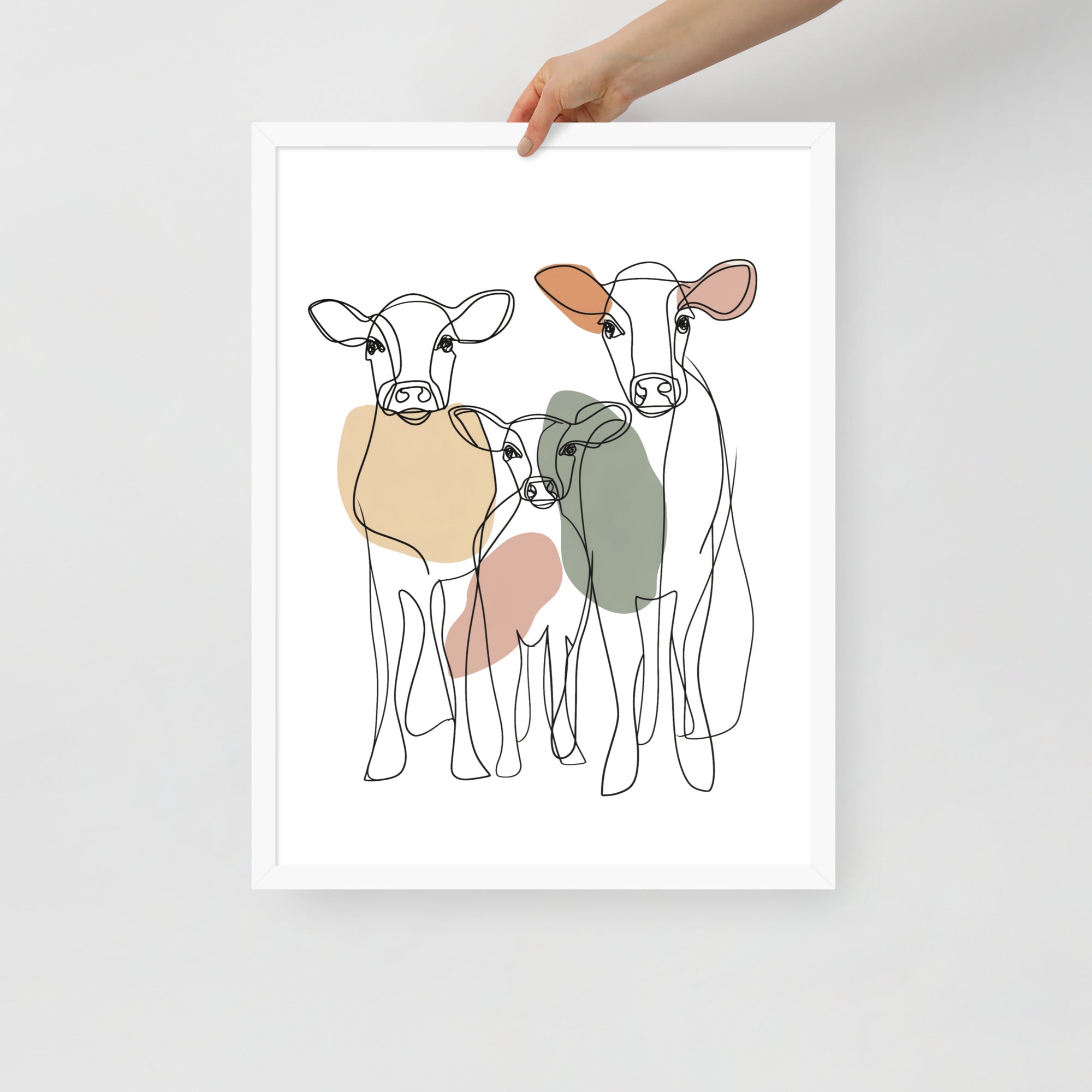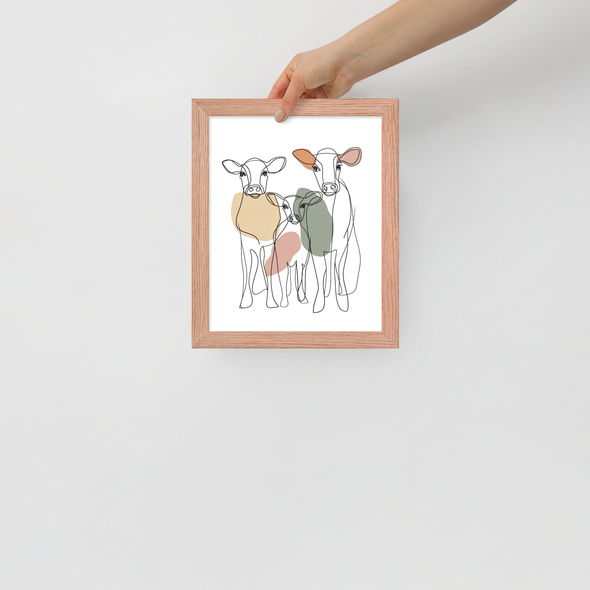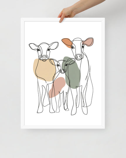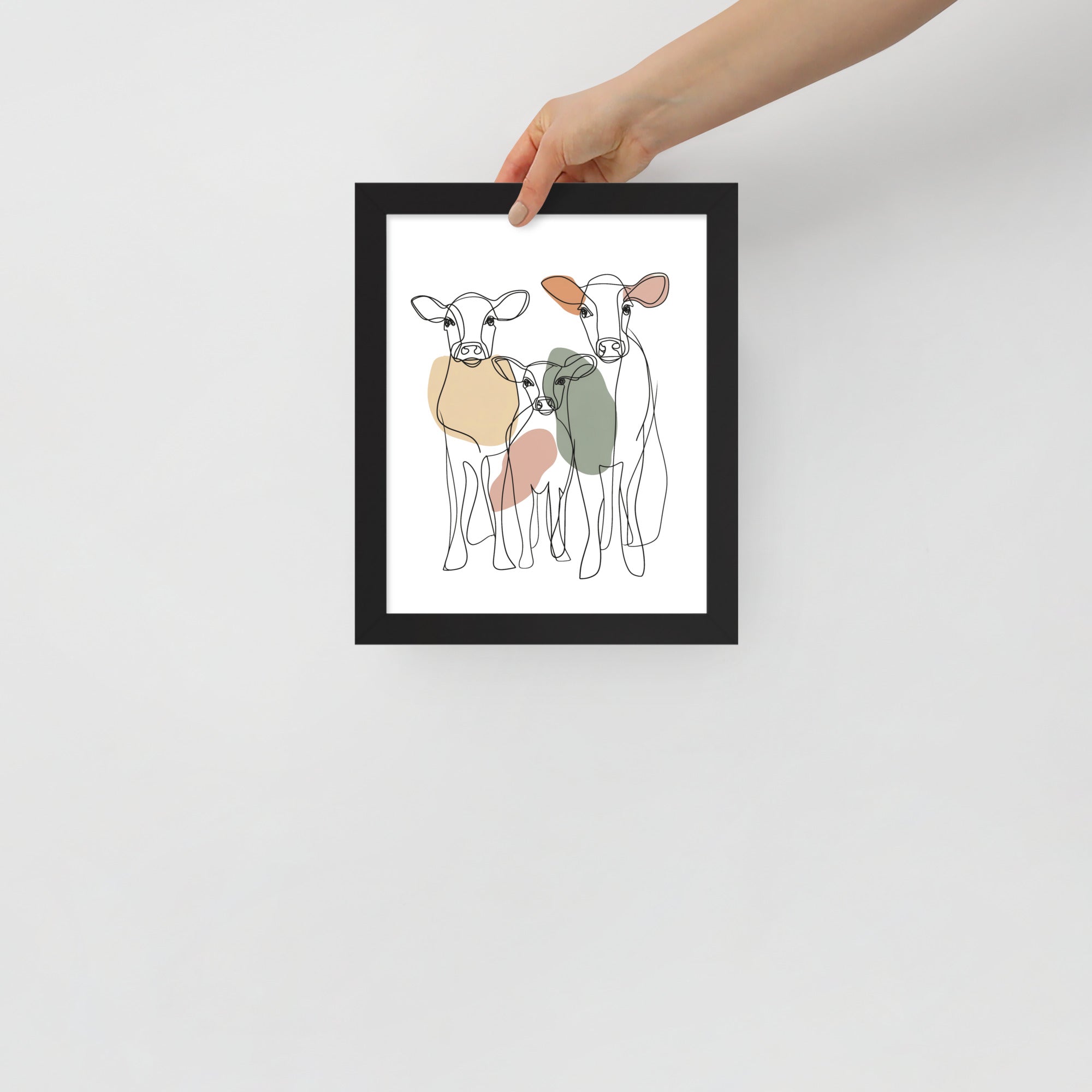 Baby Cow Trio - Line Art Series - Framed Nursery Wall Art