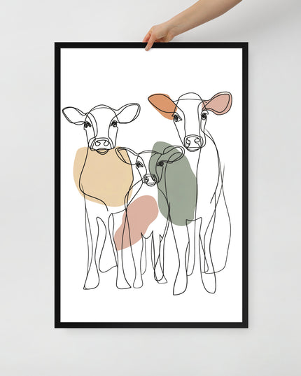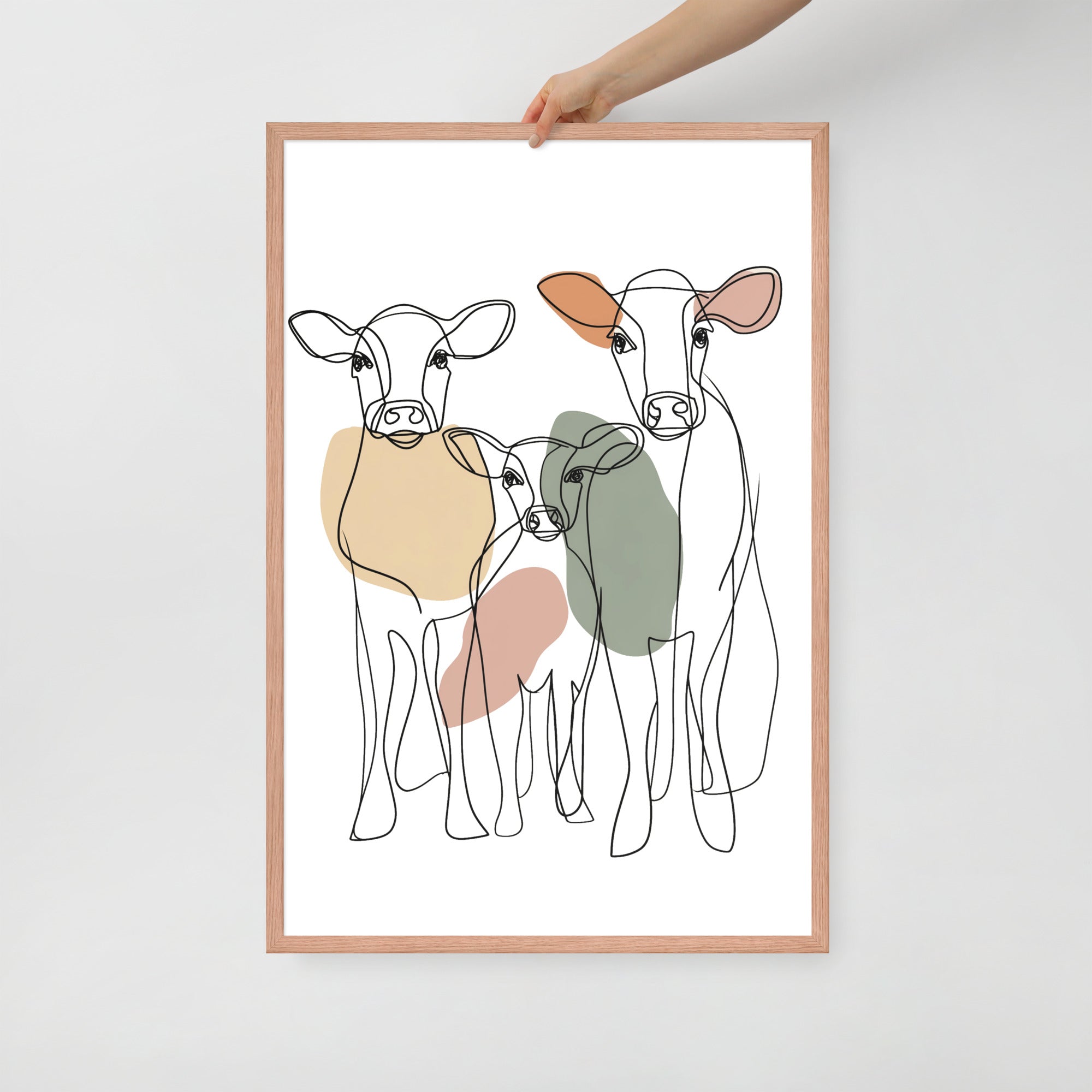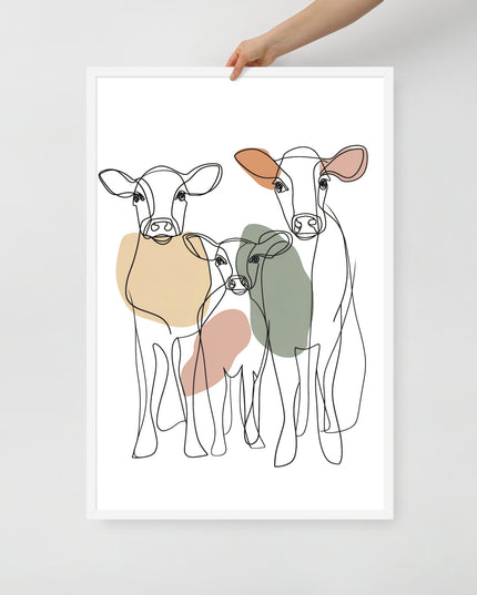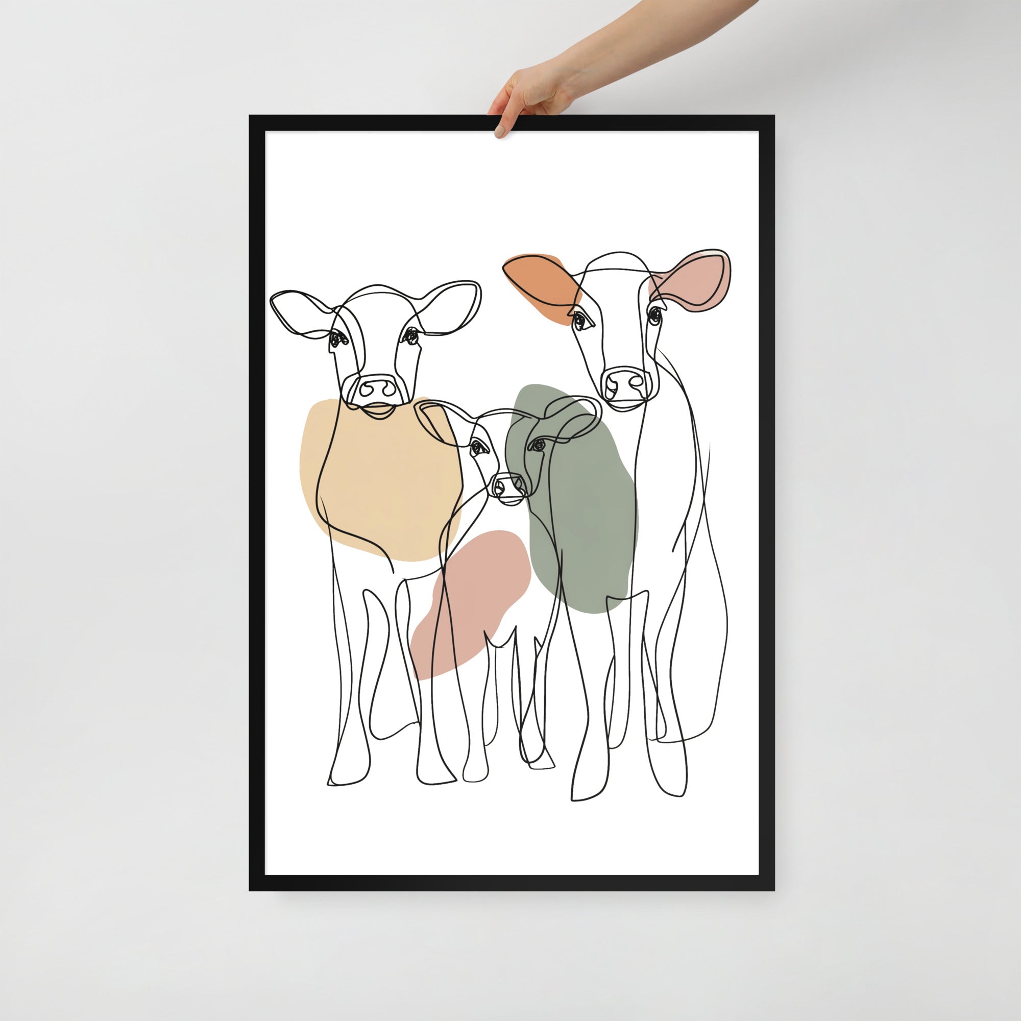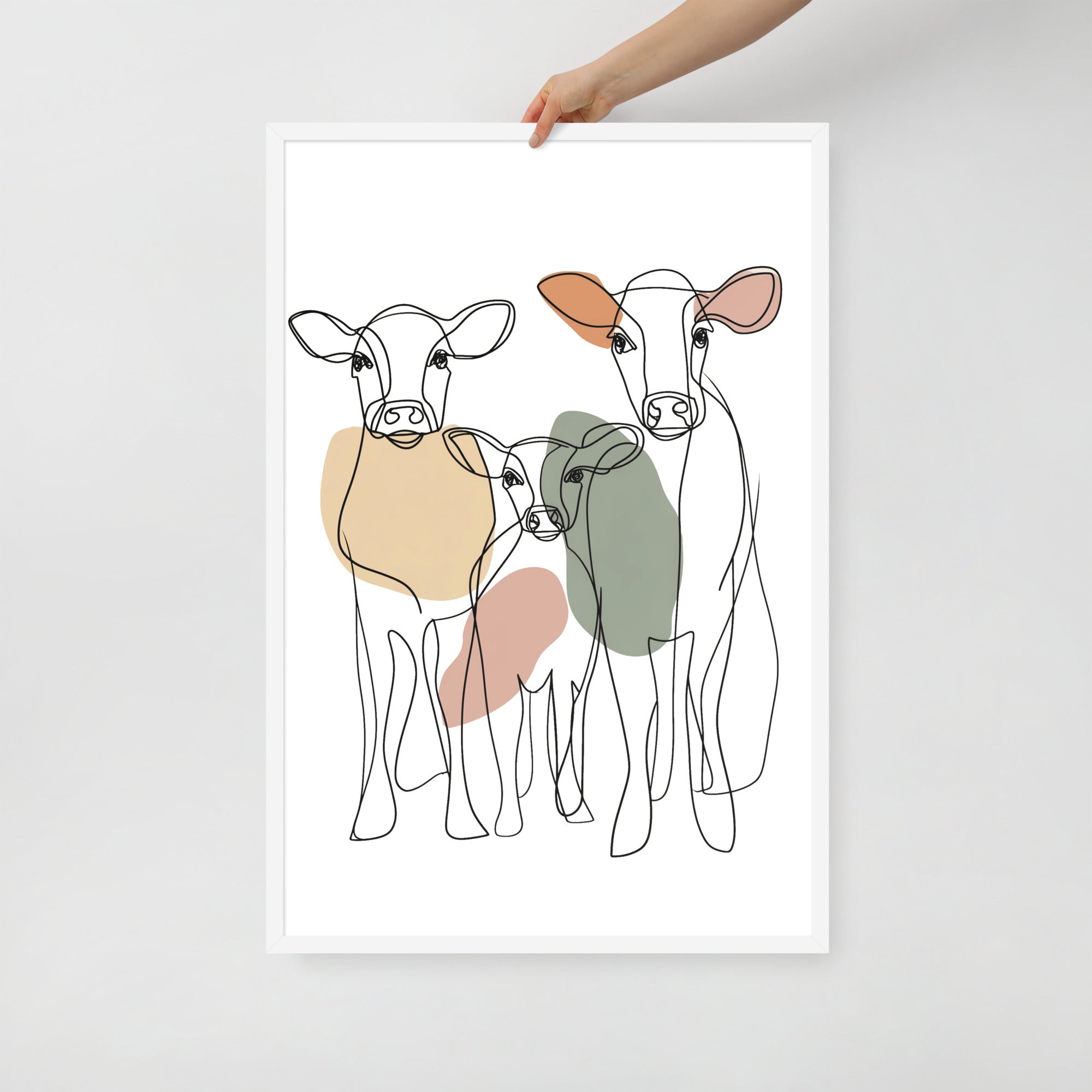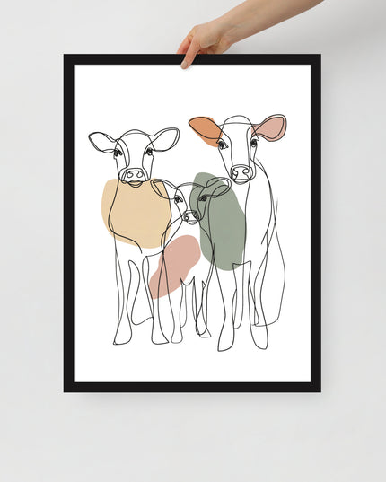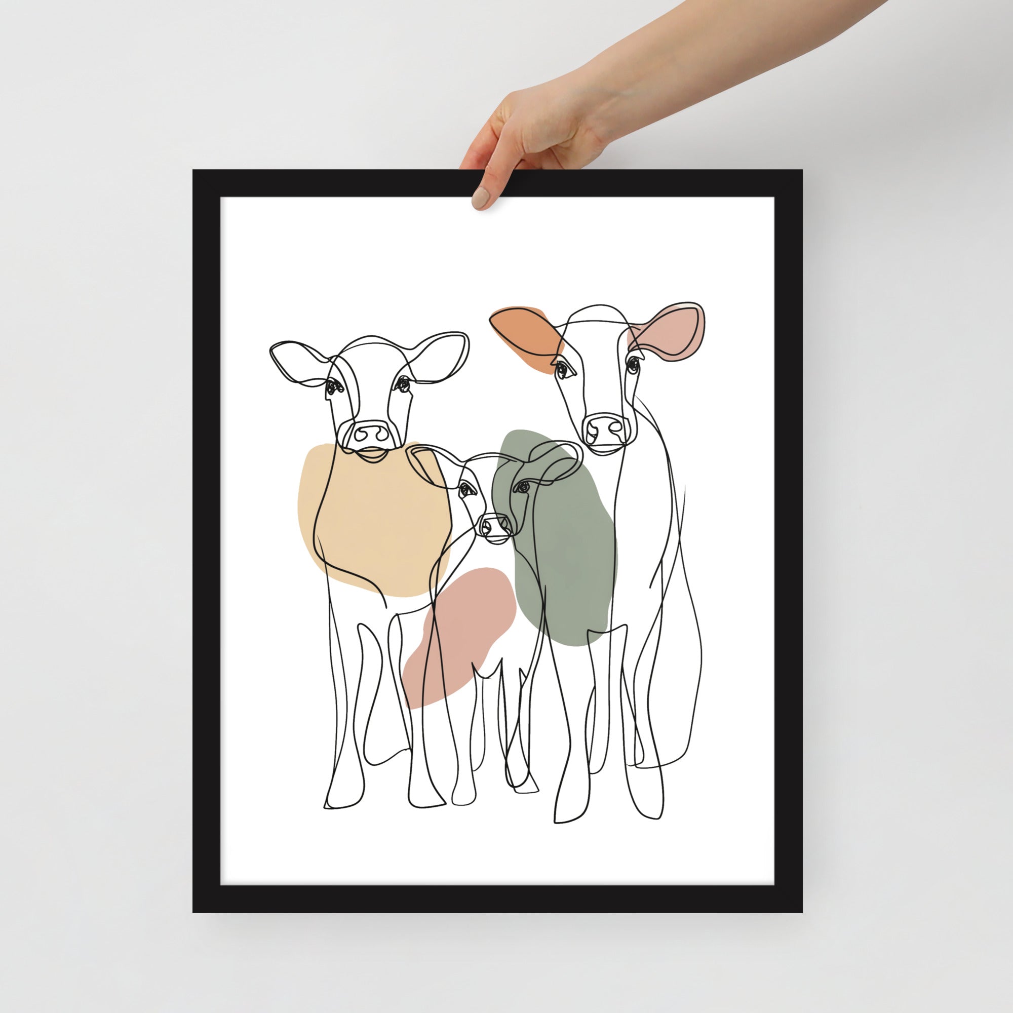 Baby Cow Trio - Line Art Series - Framed Nursery Wall Art