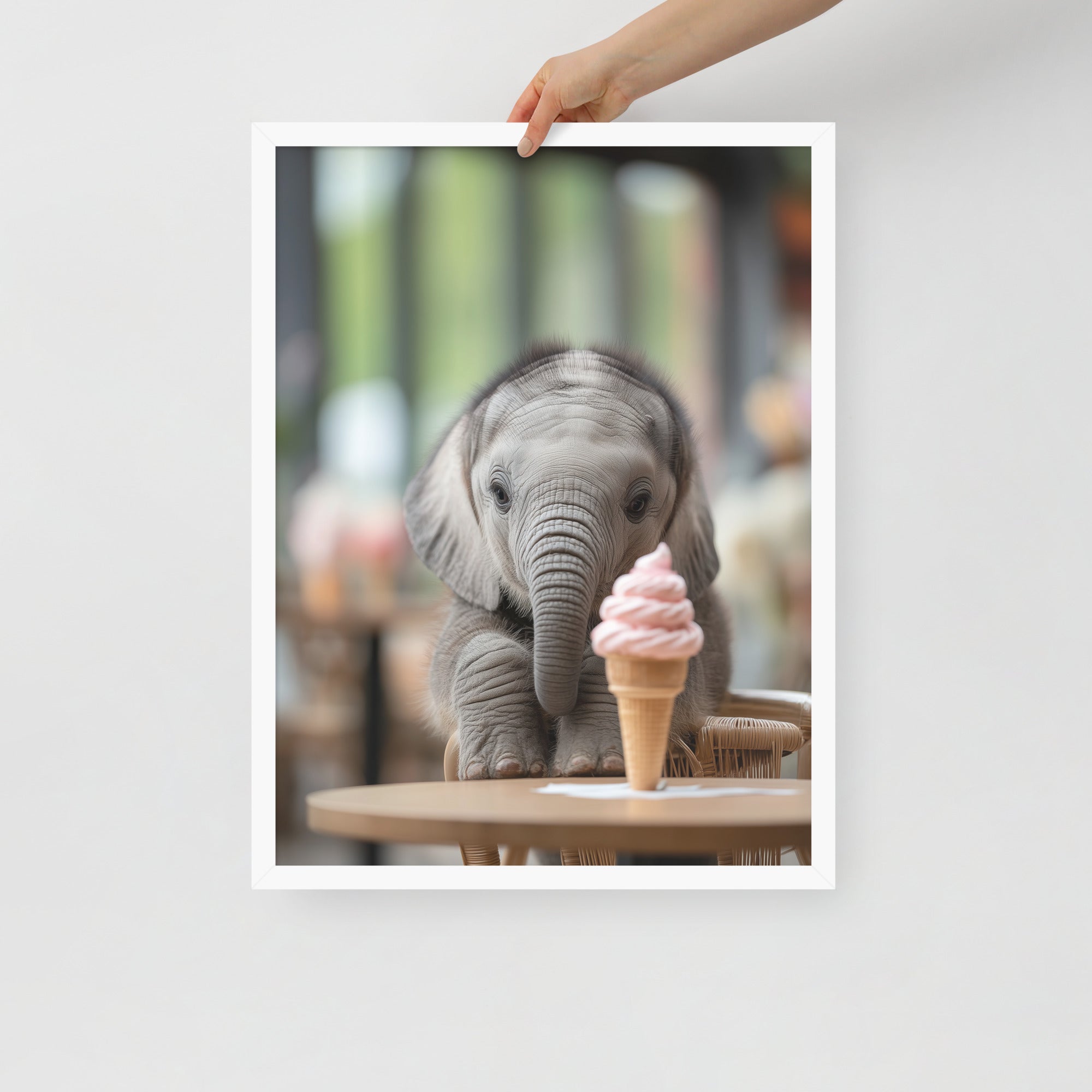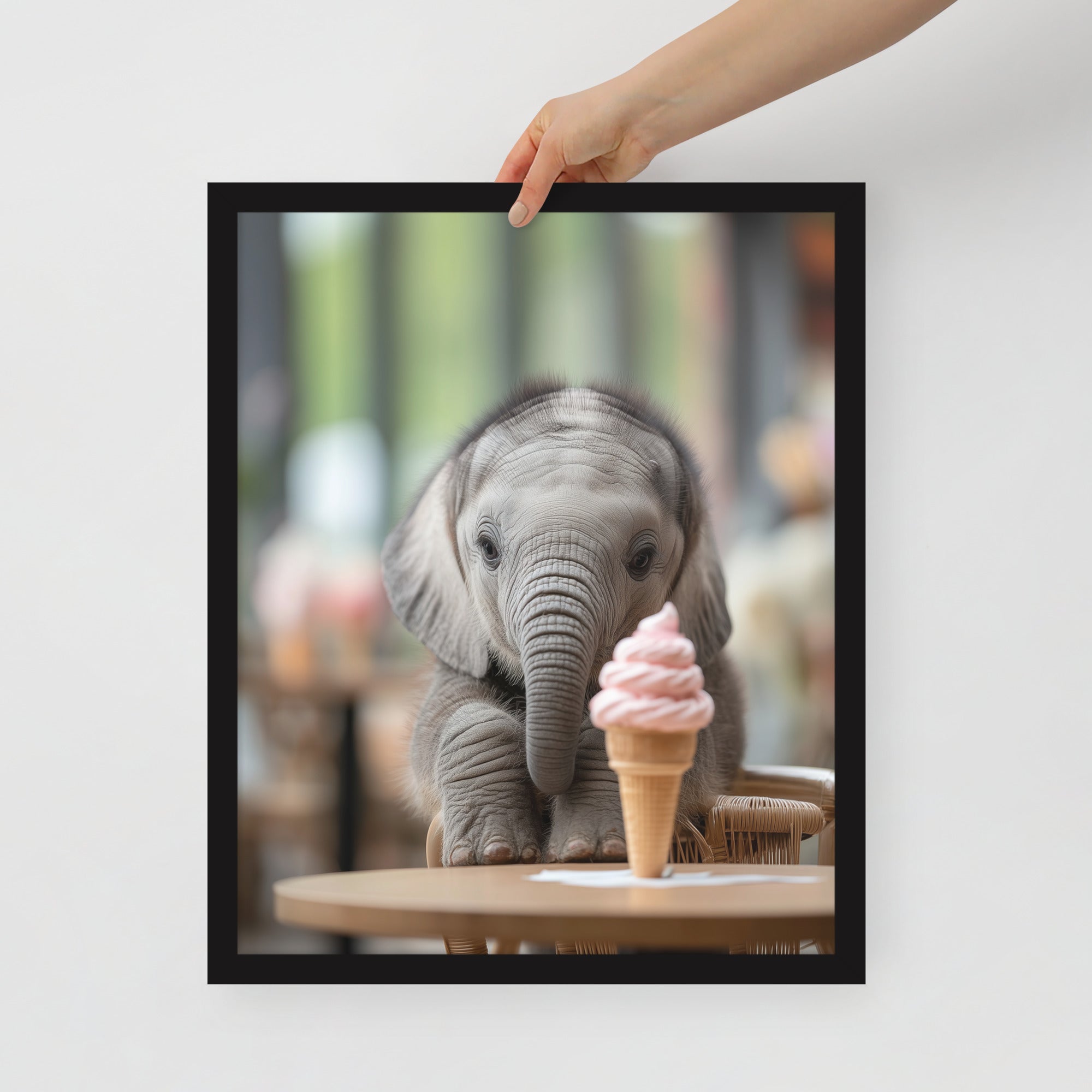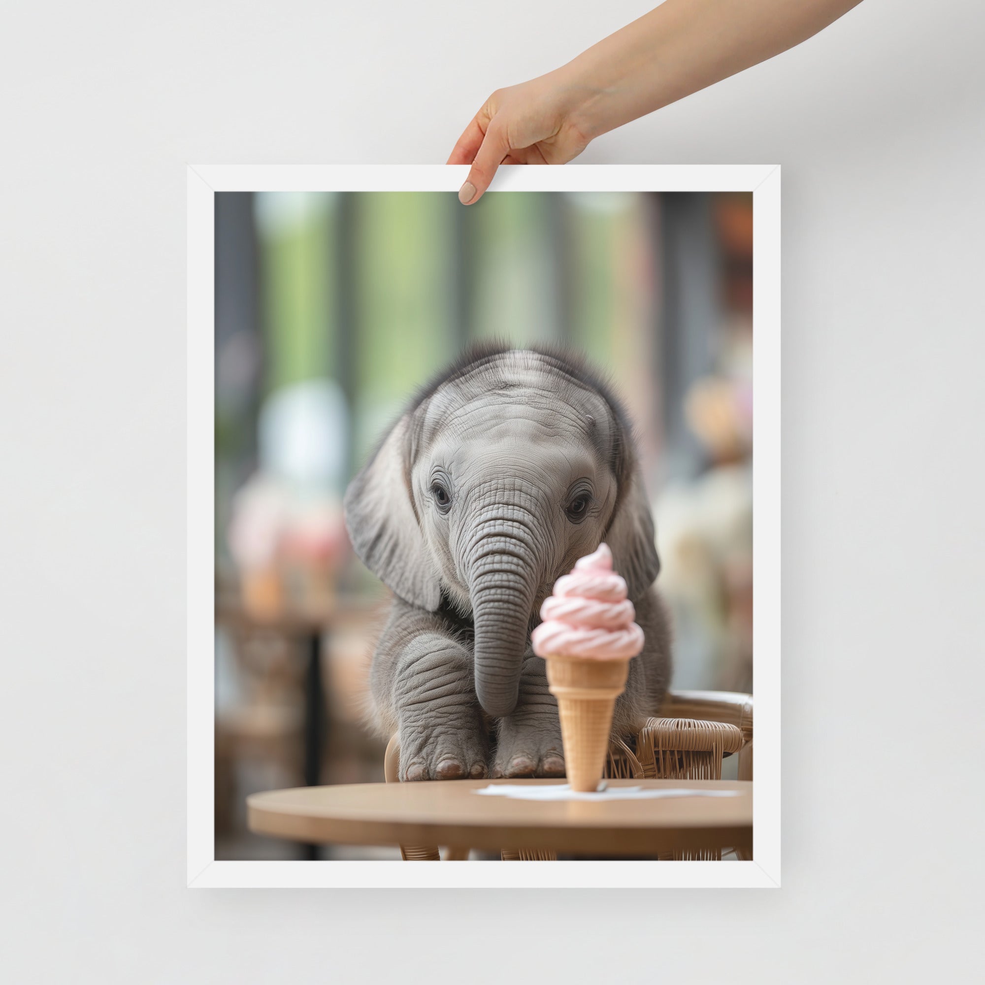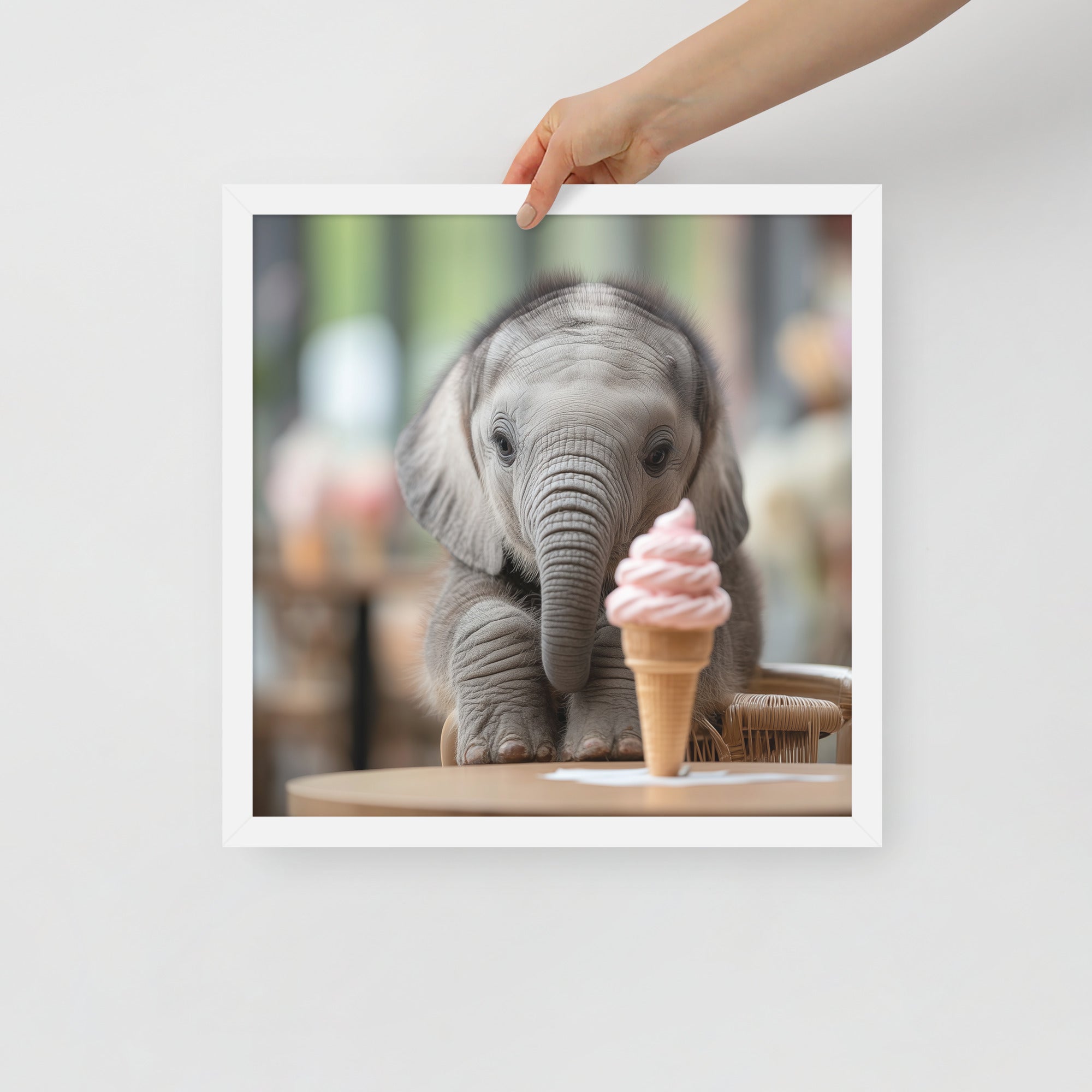 Baby Elephant & Soft Serve Dreams - Framed Nursery Wall Art