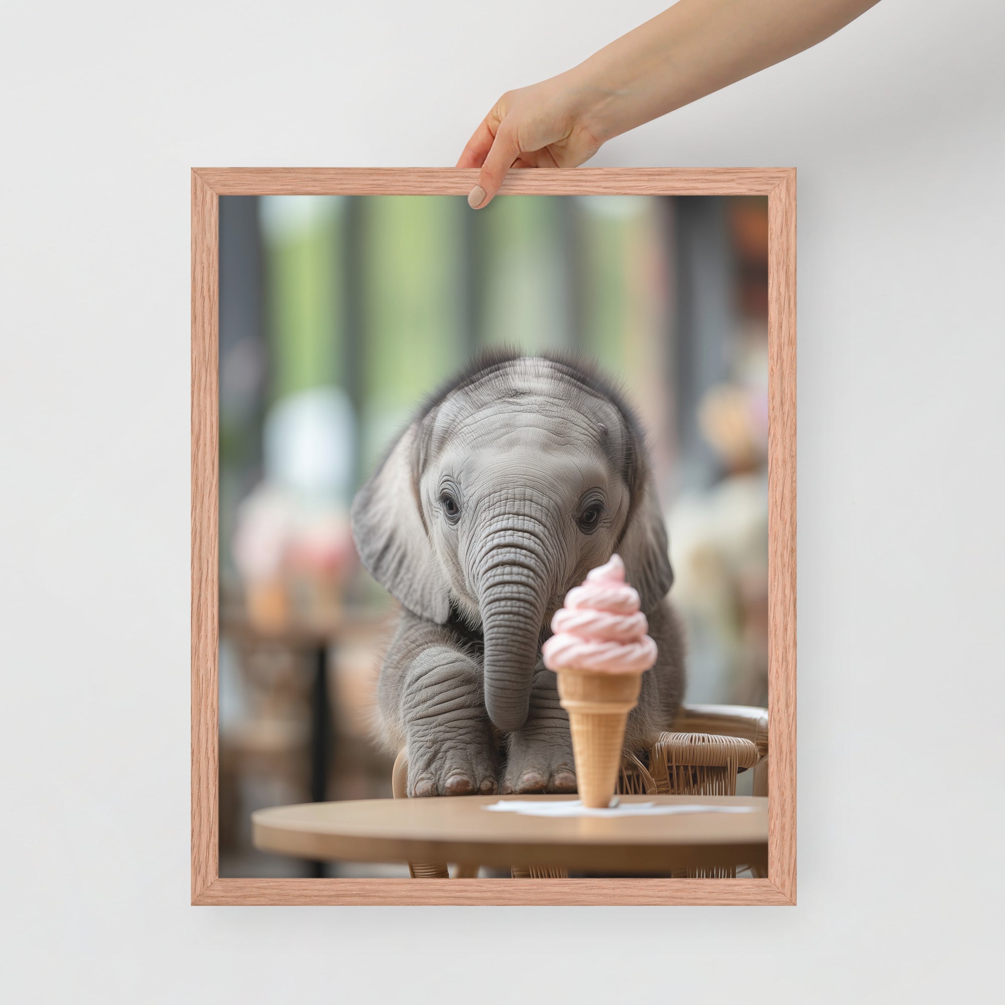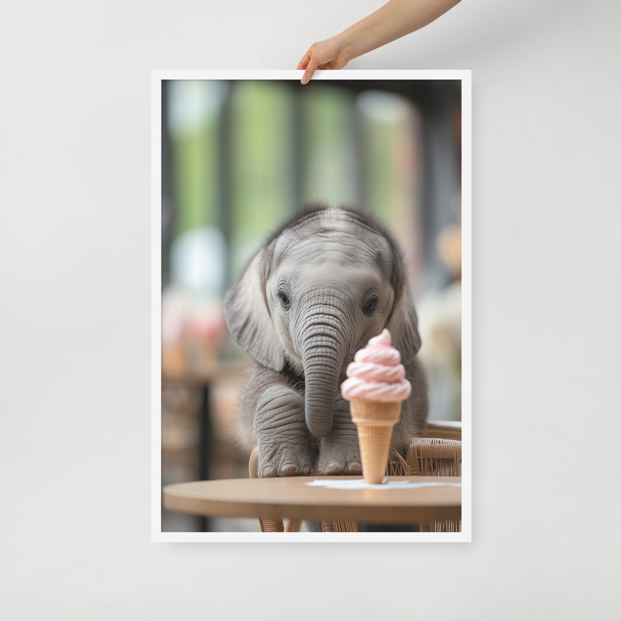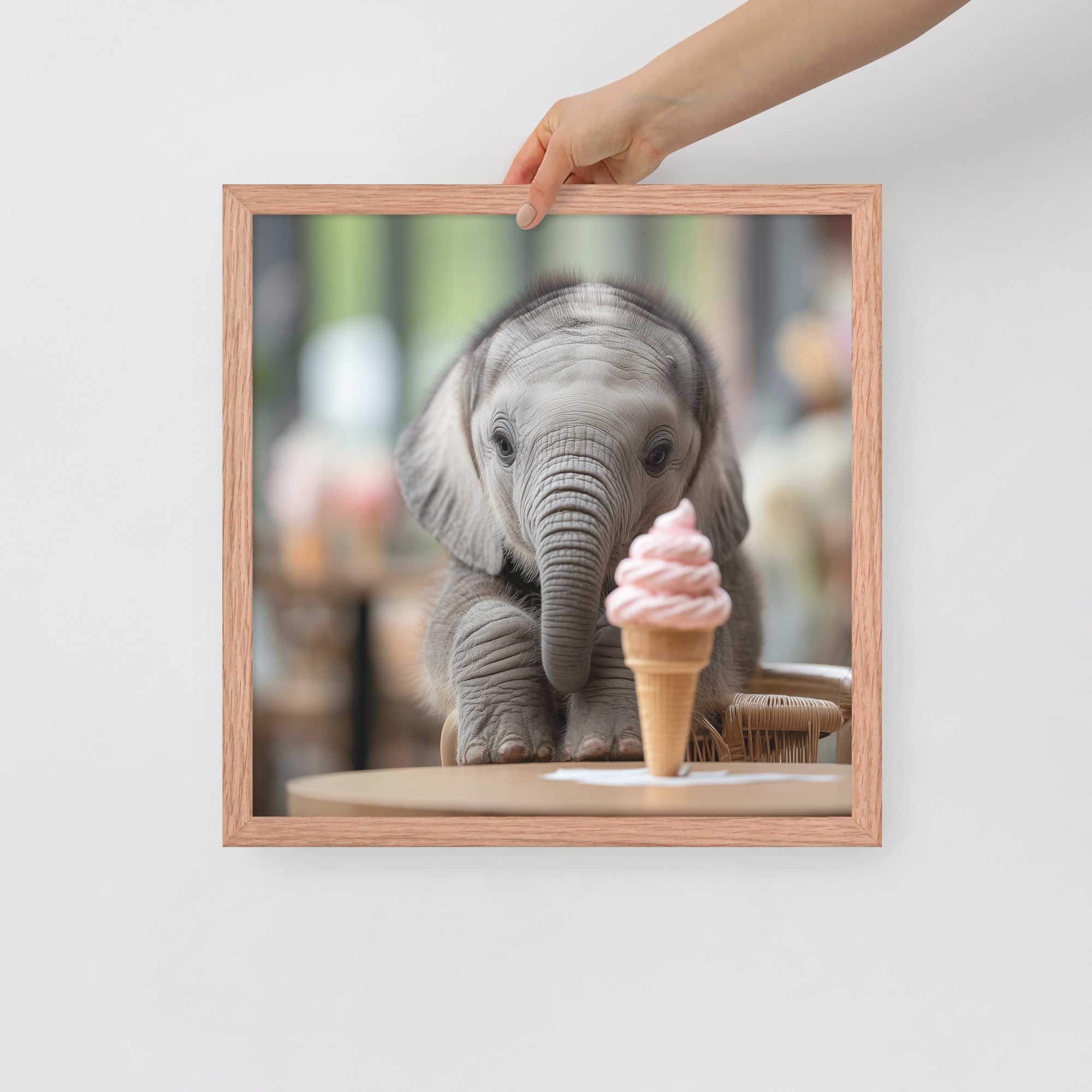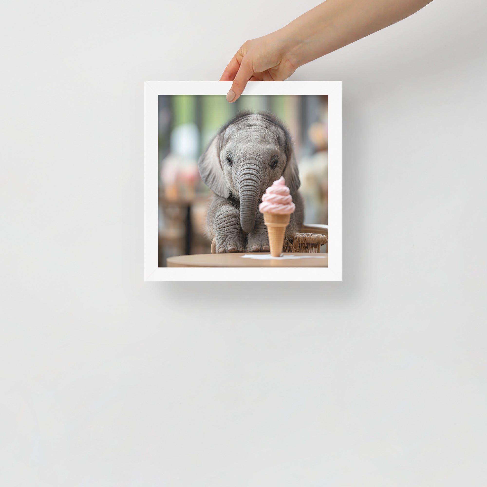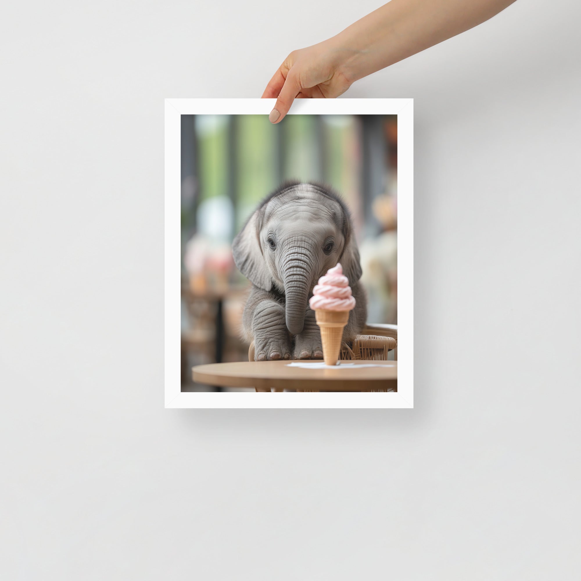 Baby Elephant & Soft Serve Dreams - Framed Nursery Wall Art