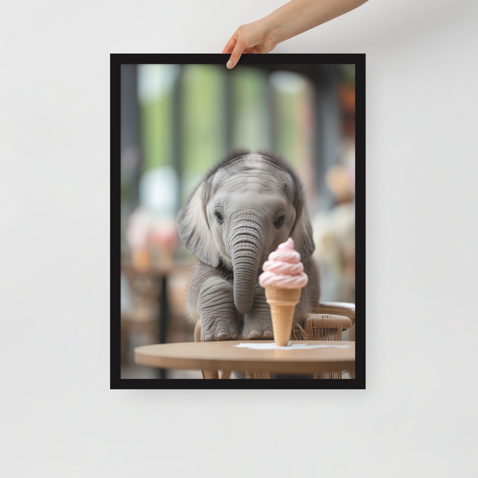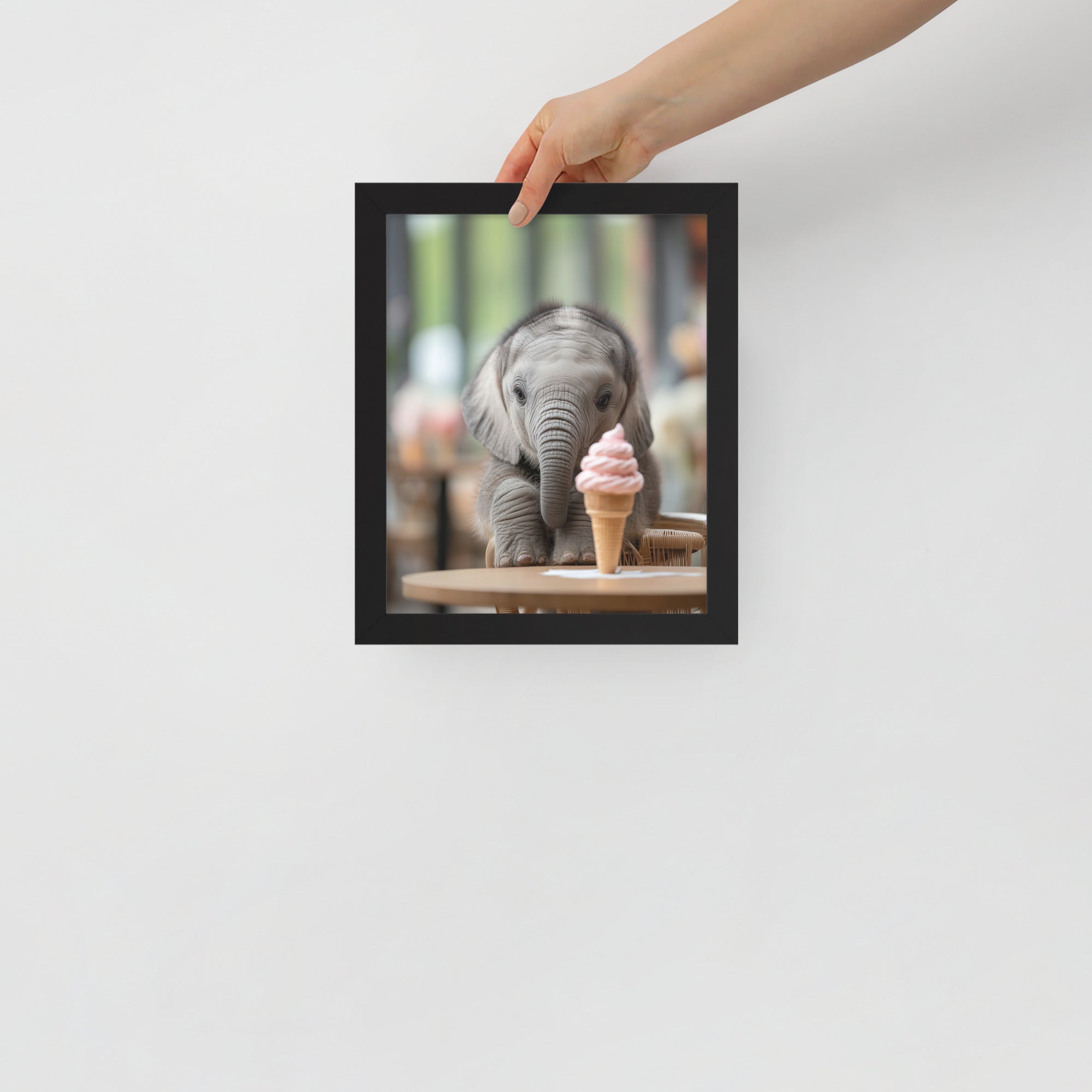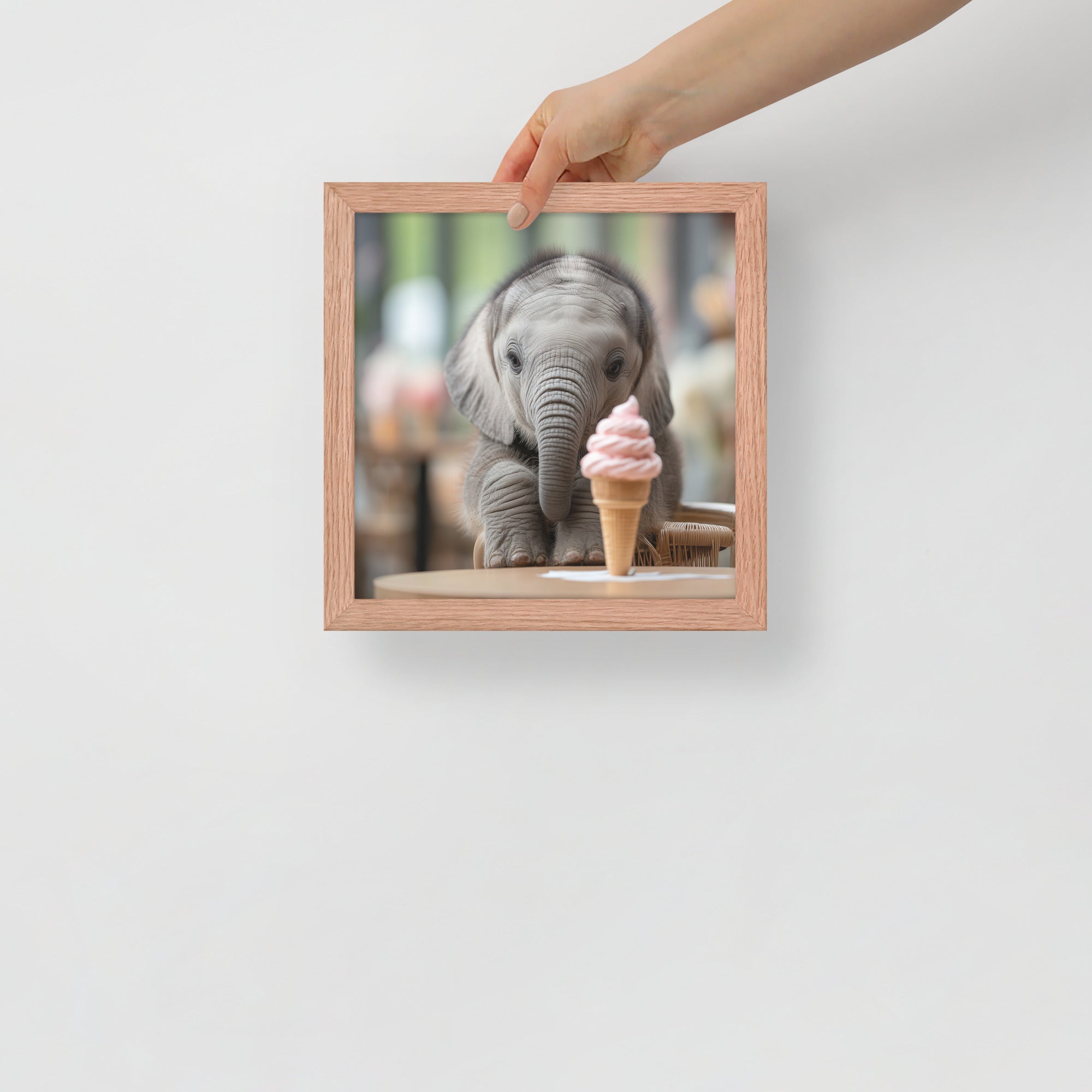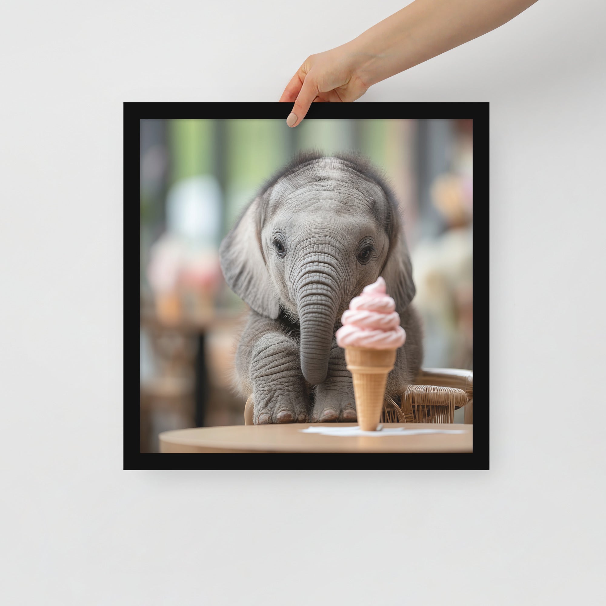 Baby Elephant & Soft Serve Dreams - Framed Nursery Wall Art