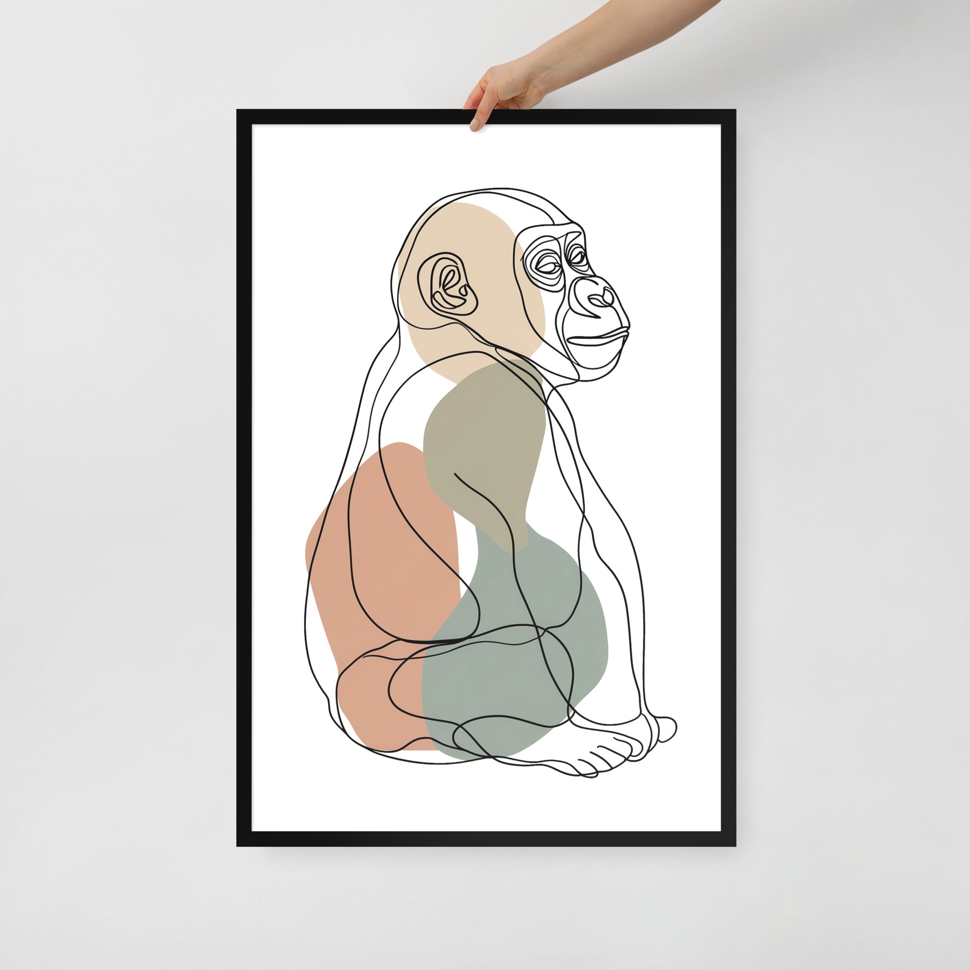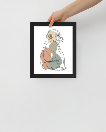Baby Gorilla Lined - Line Art Series - Framed Nursery Wall Art