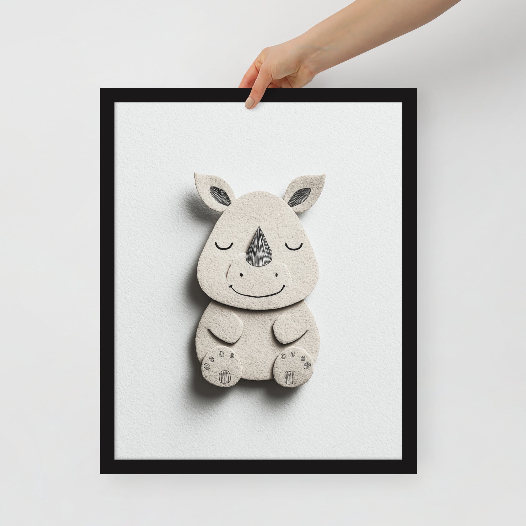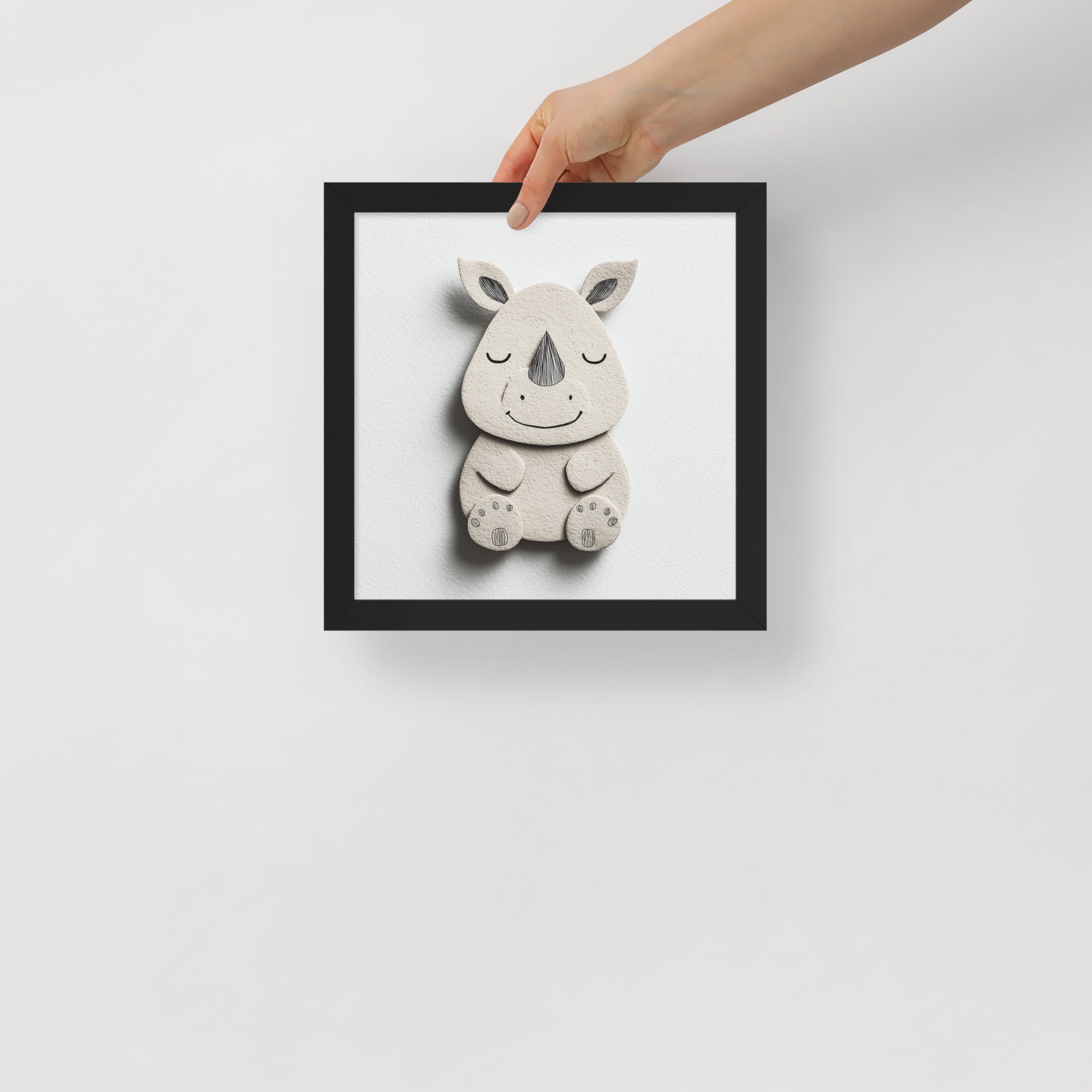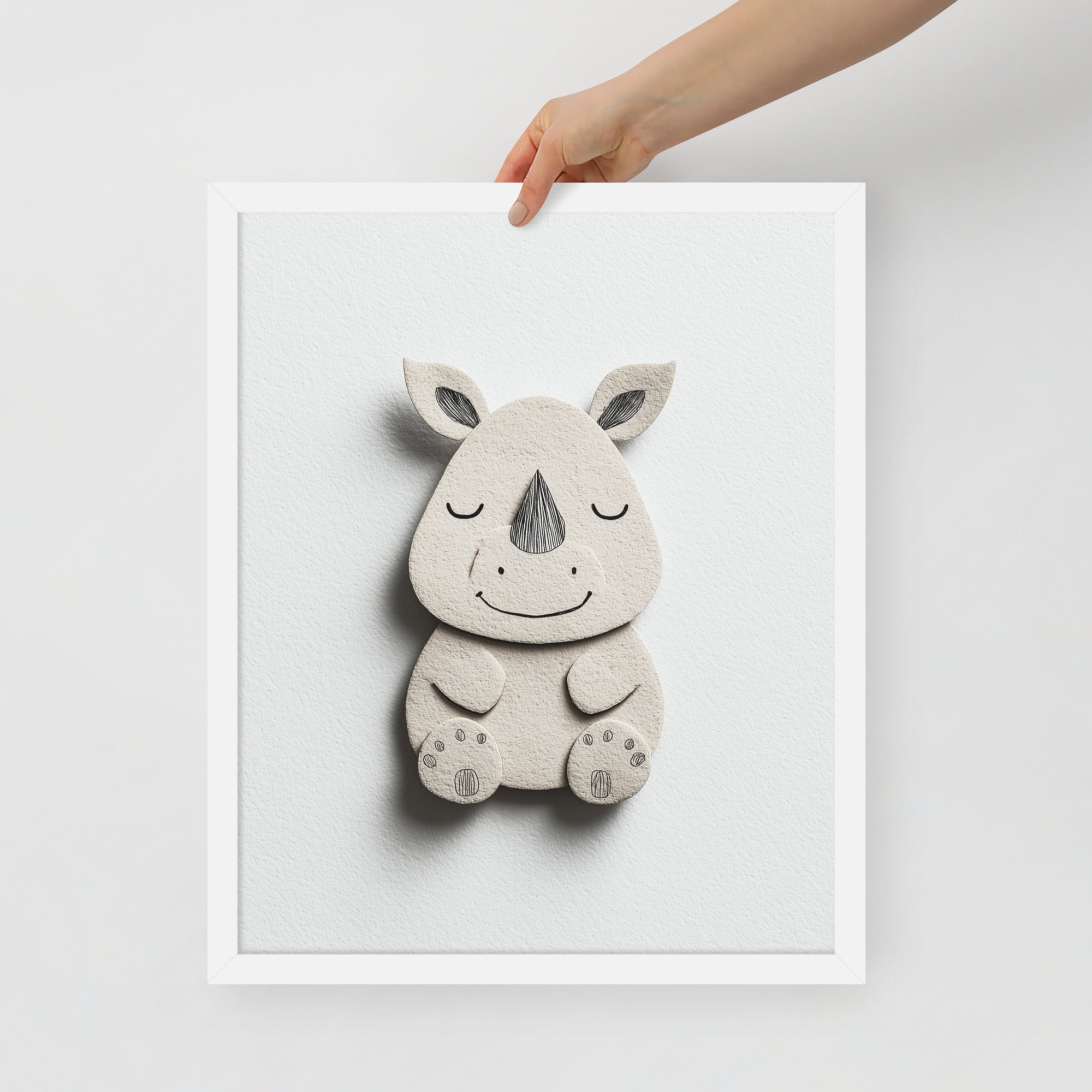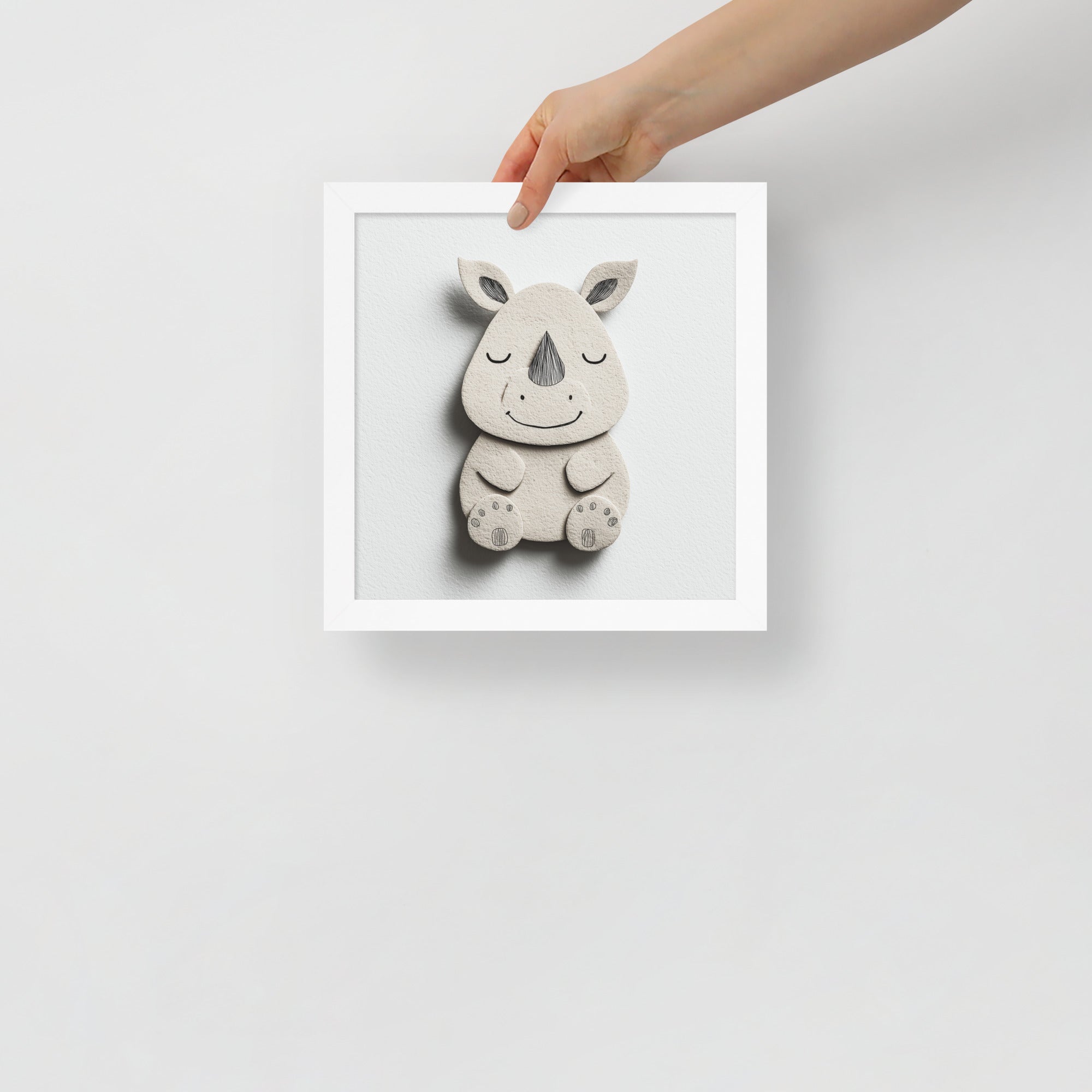 Baby Rhino Greys - The Cutout Series - Framed Nursery Wall Art