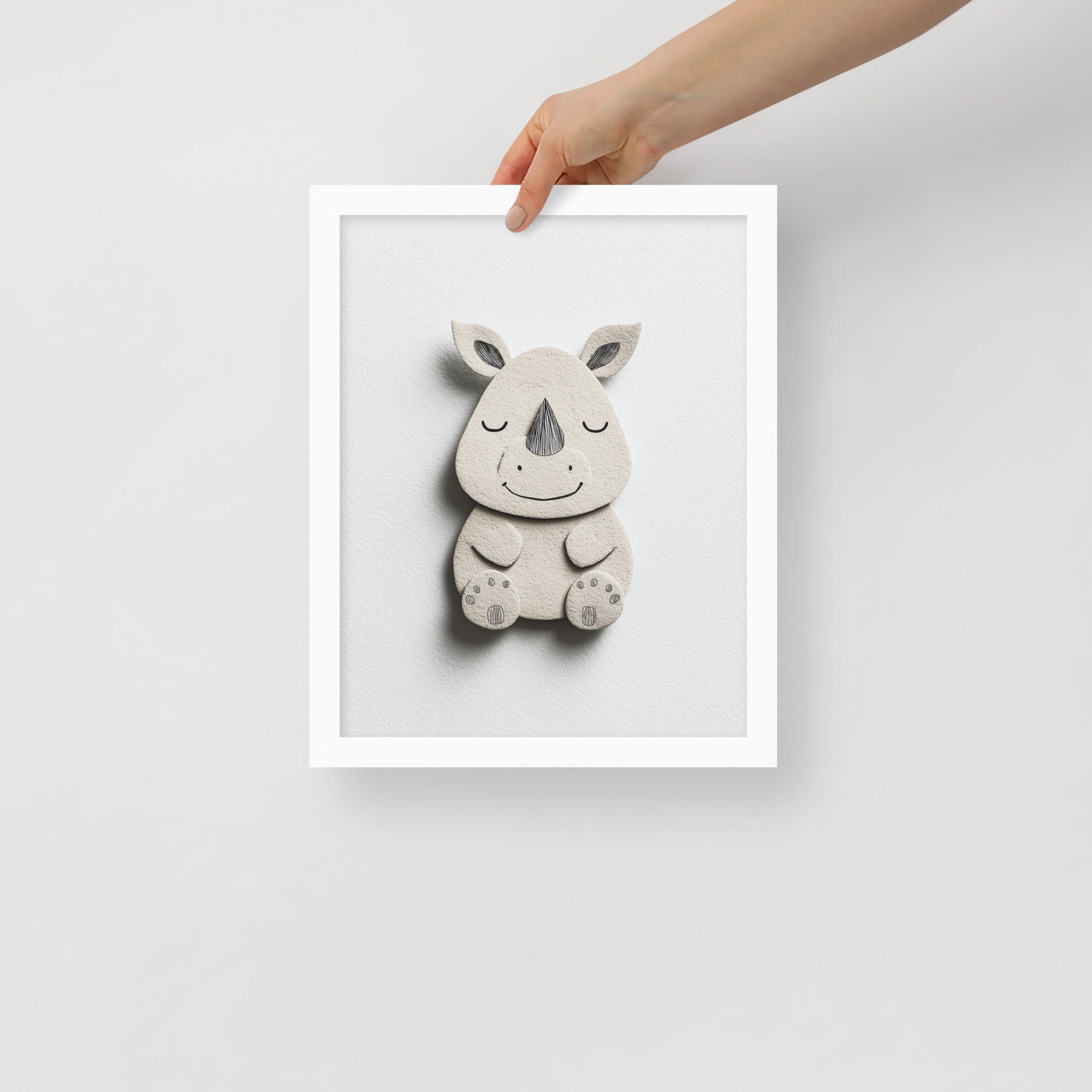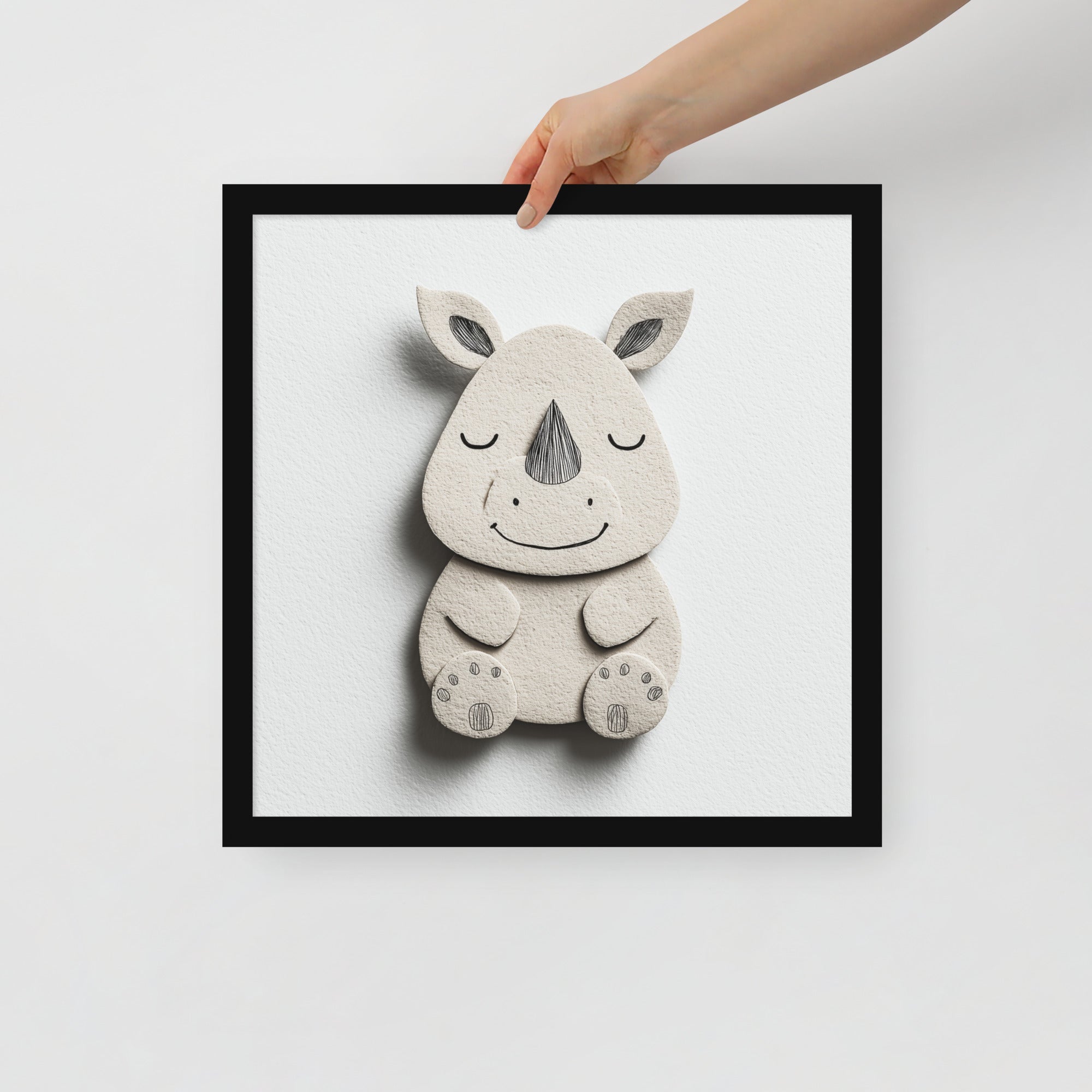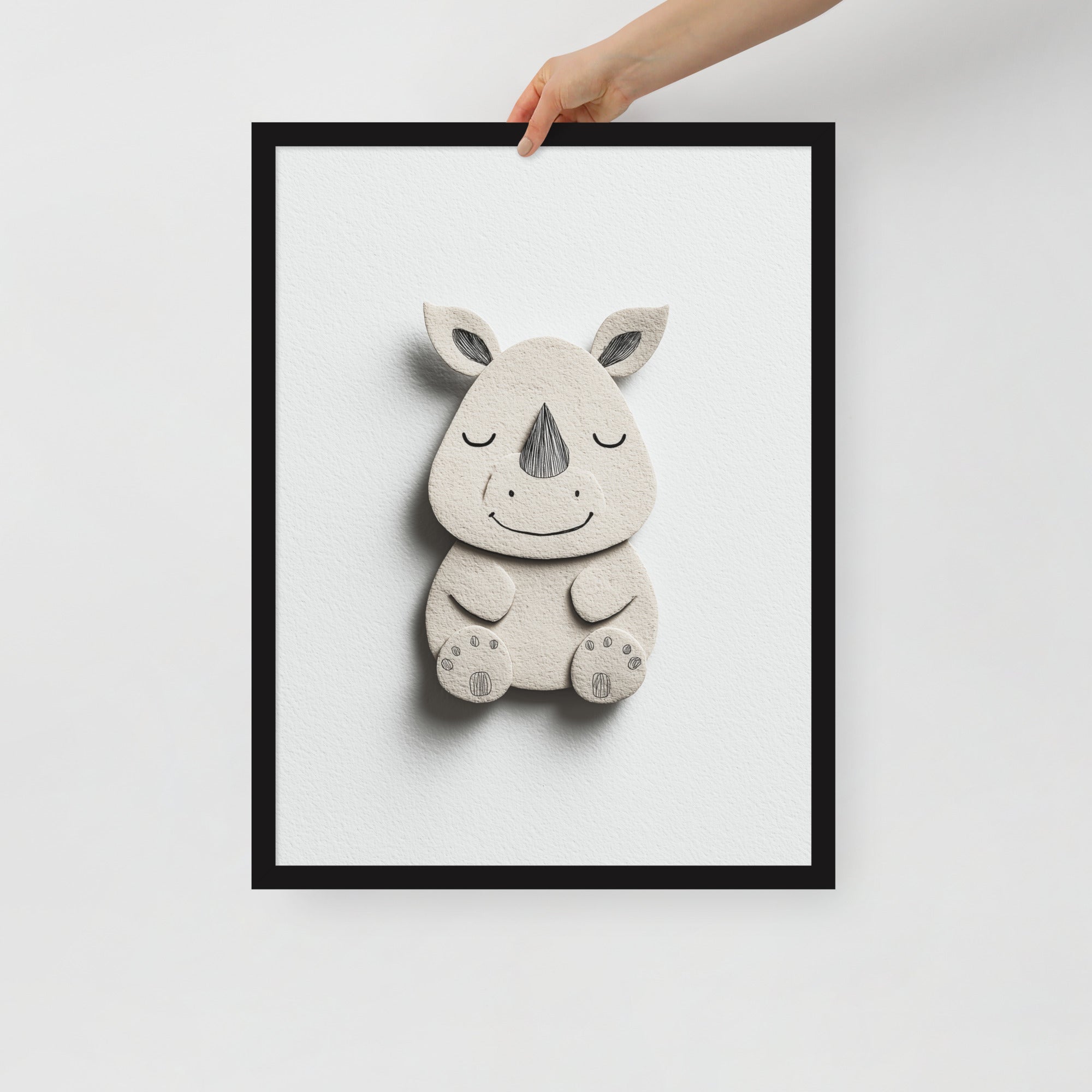 Baby Rhino Greys - The Cutout Series - Framed Nursery Wall Art