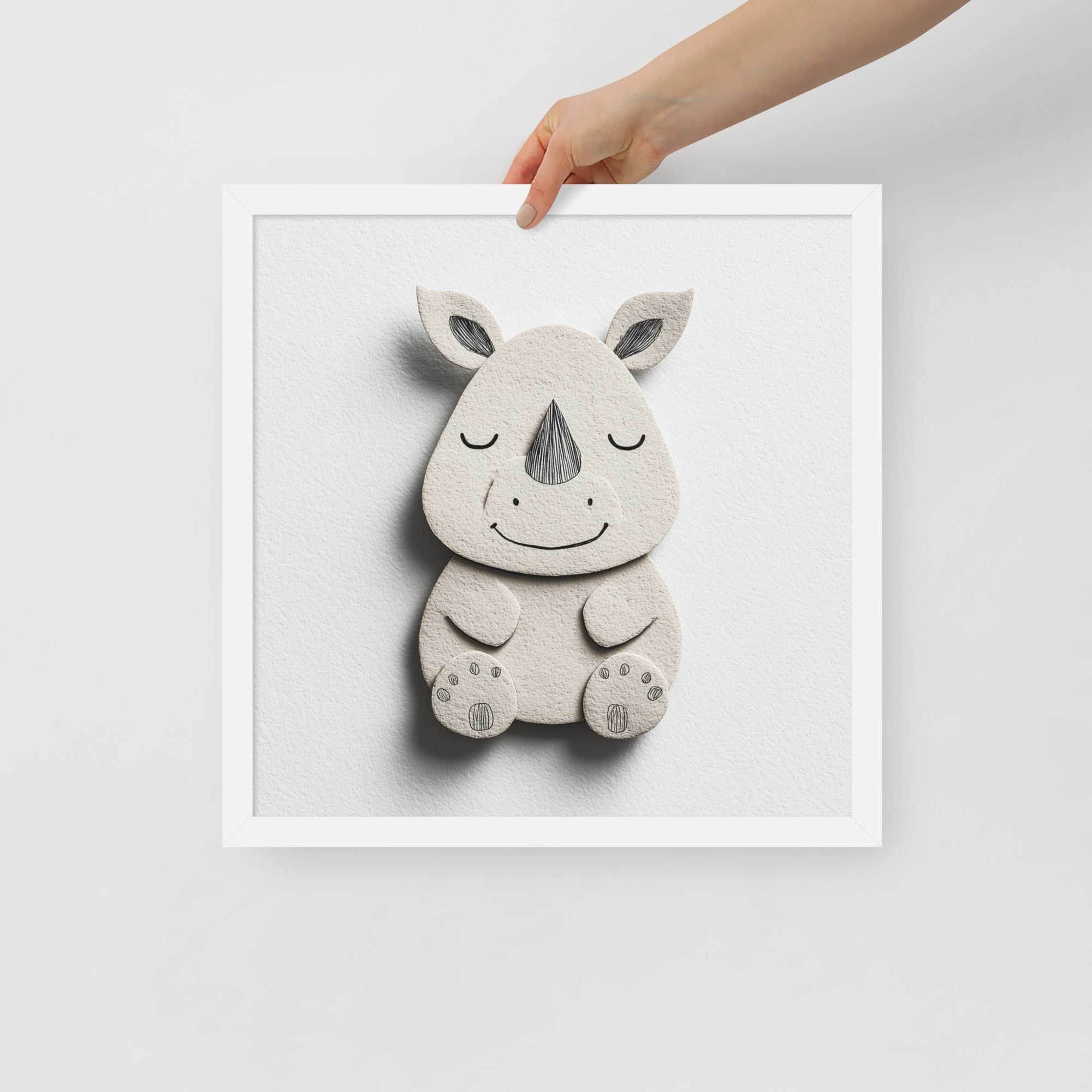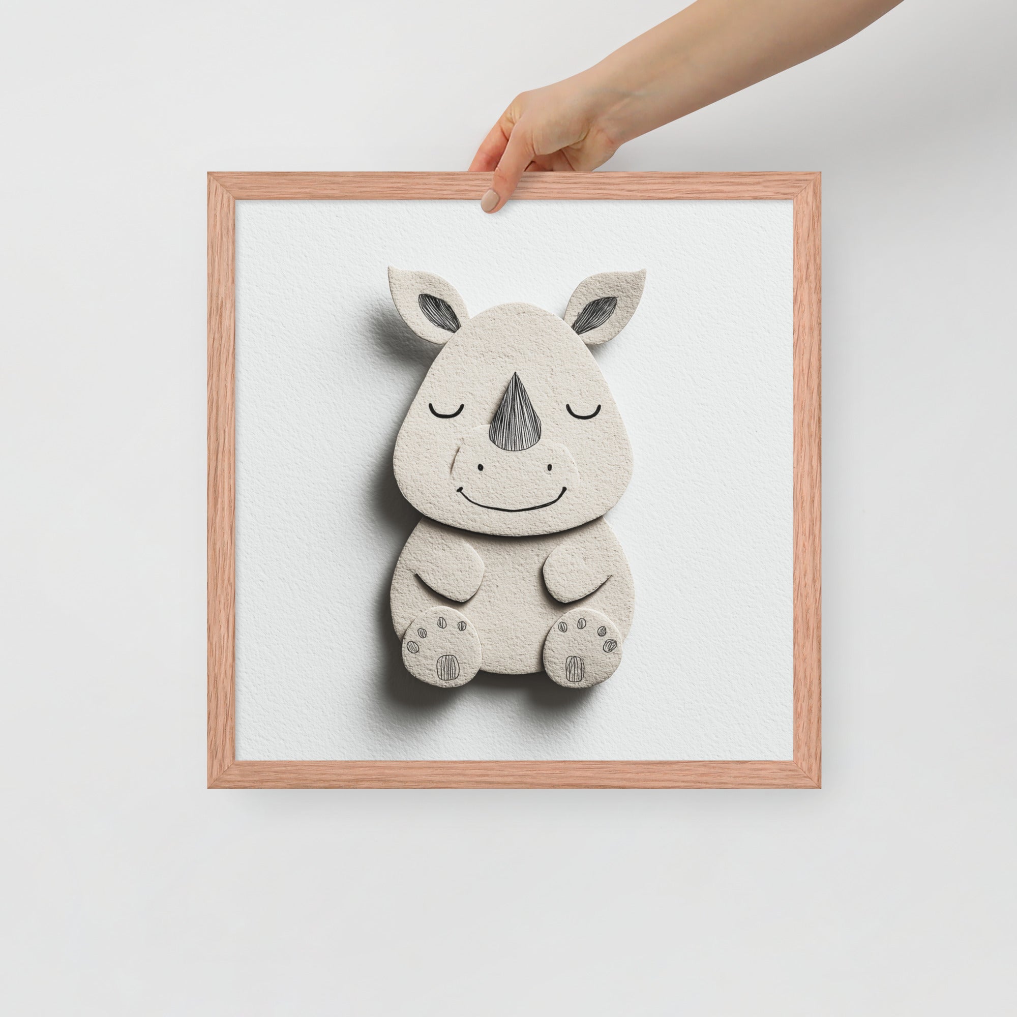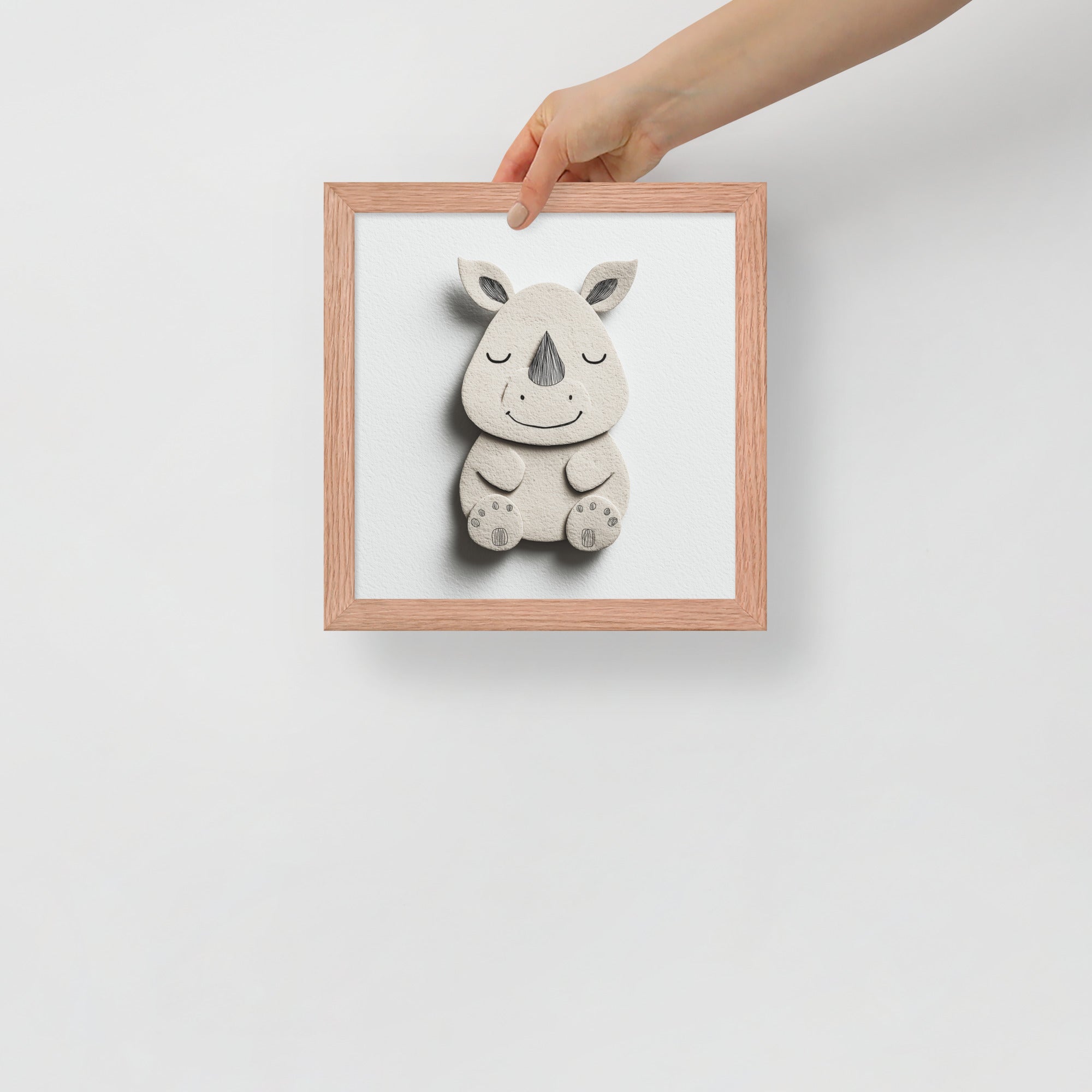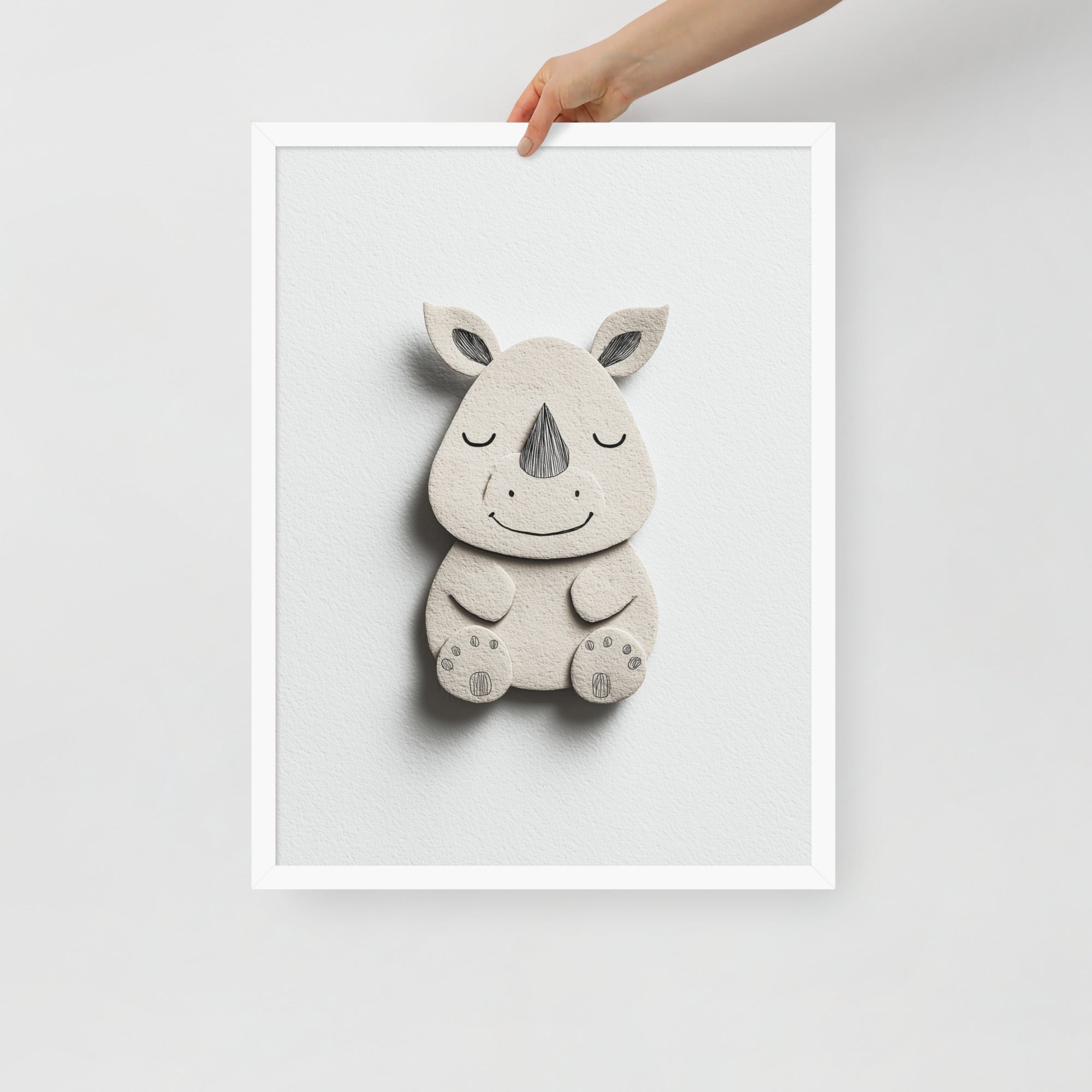 Baby Rhino Greys - The Cutout Series - Framed Nursery Wall Art