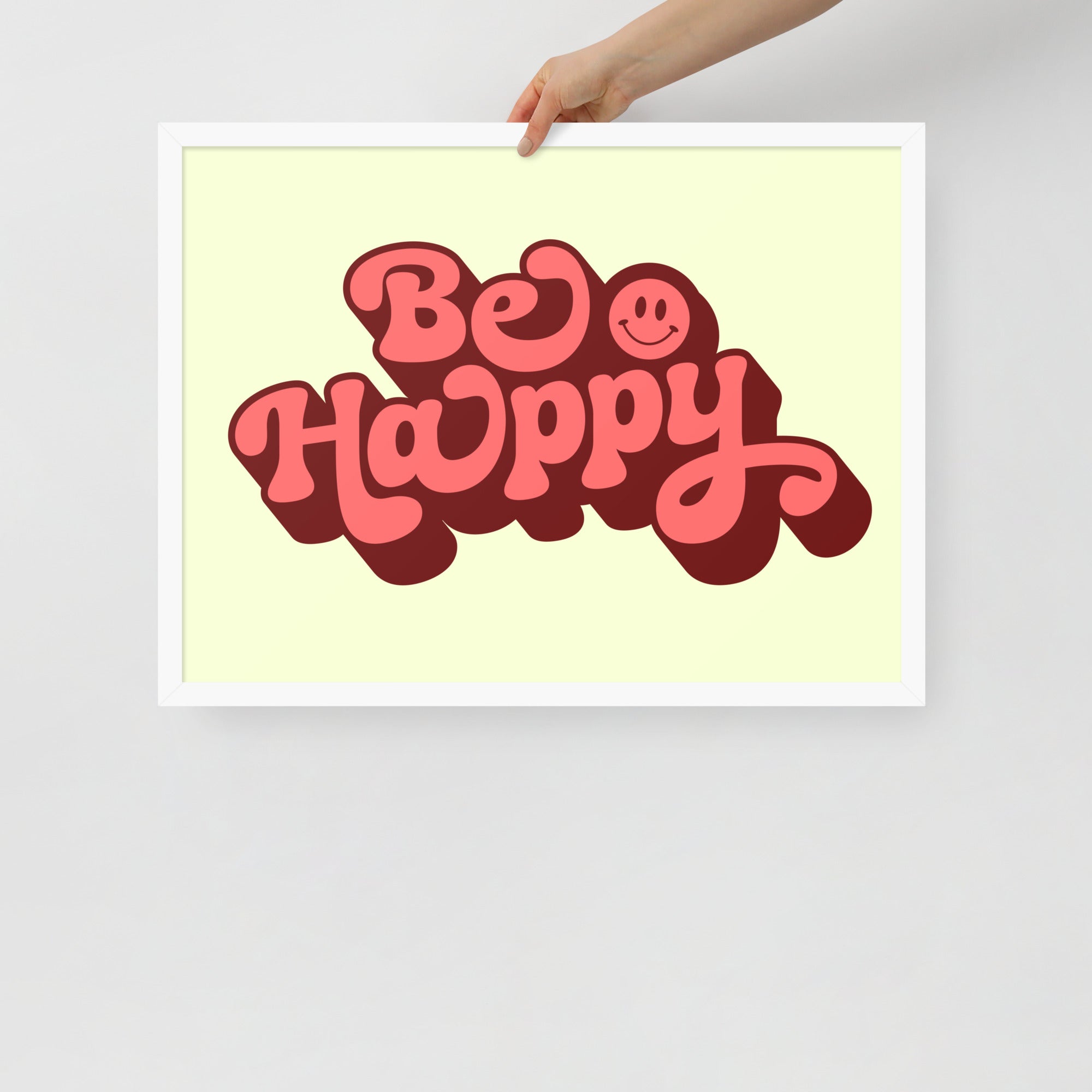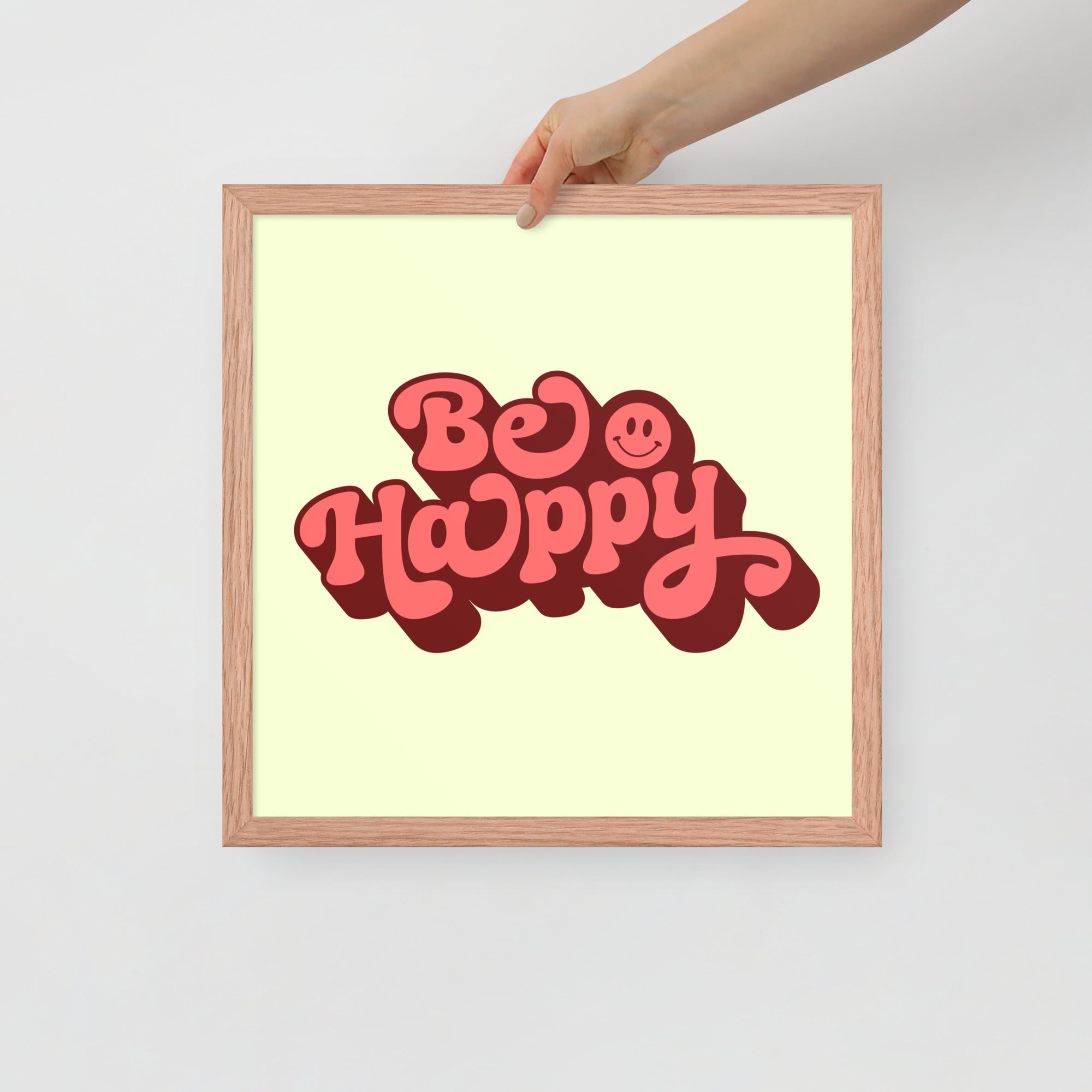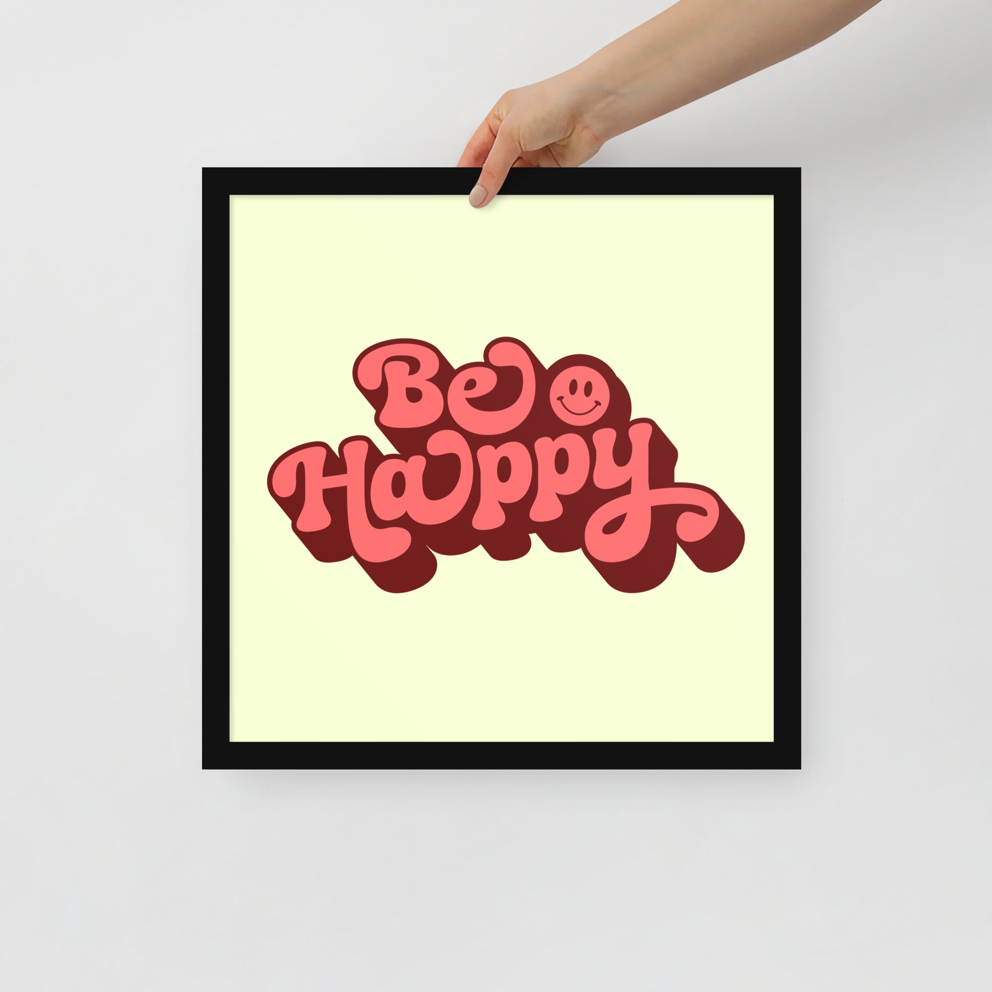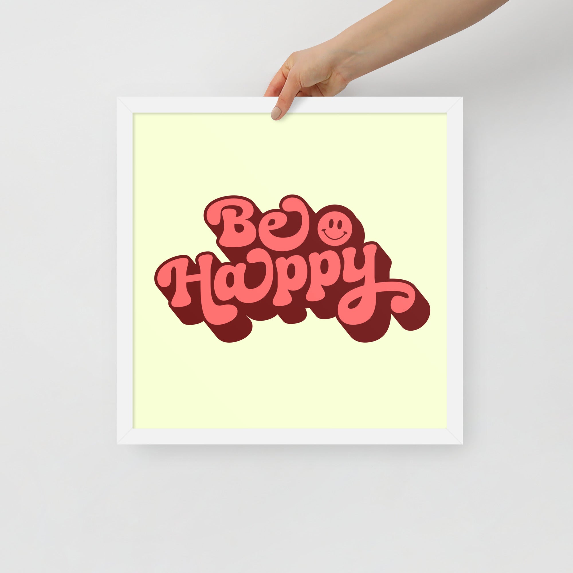Be Happy Smiley Word Art - Framed Nursery Wall Art