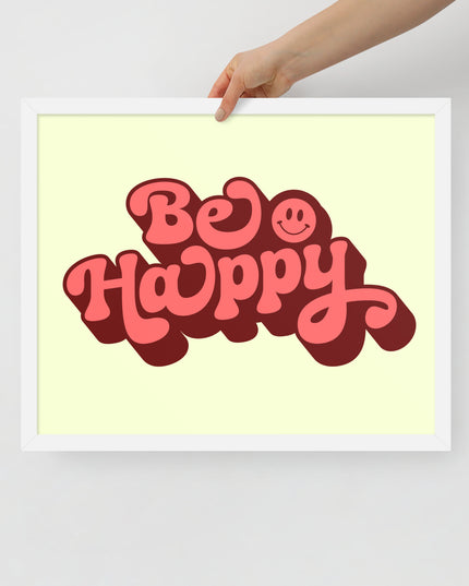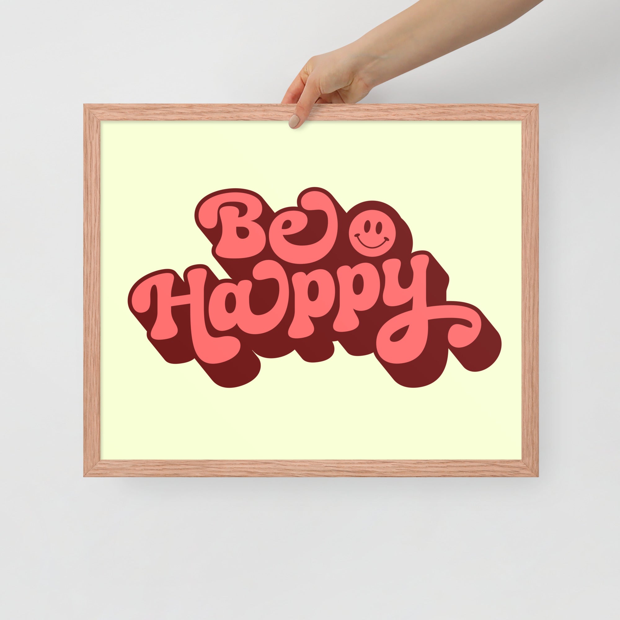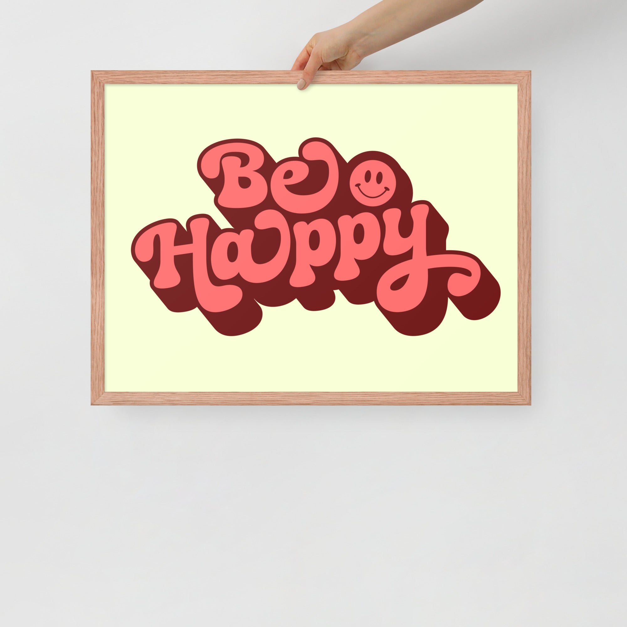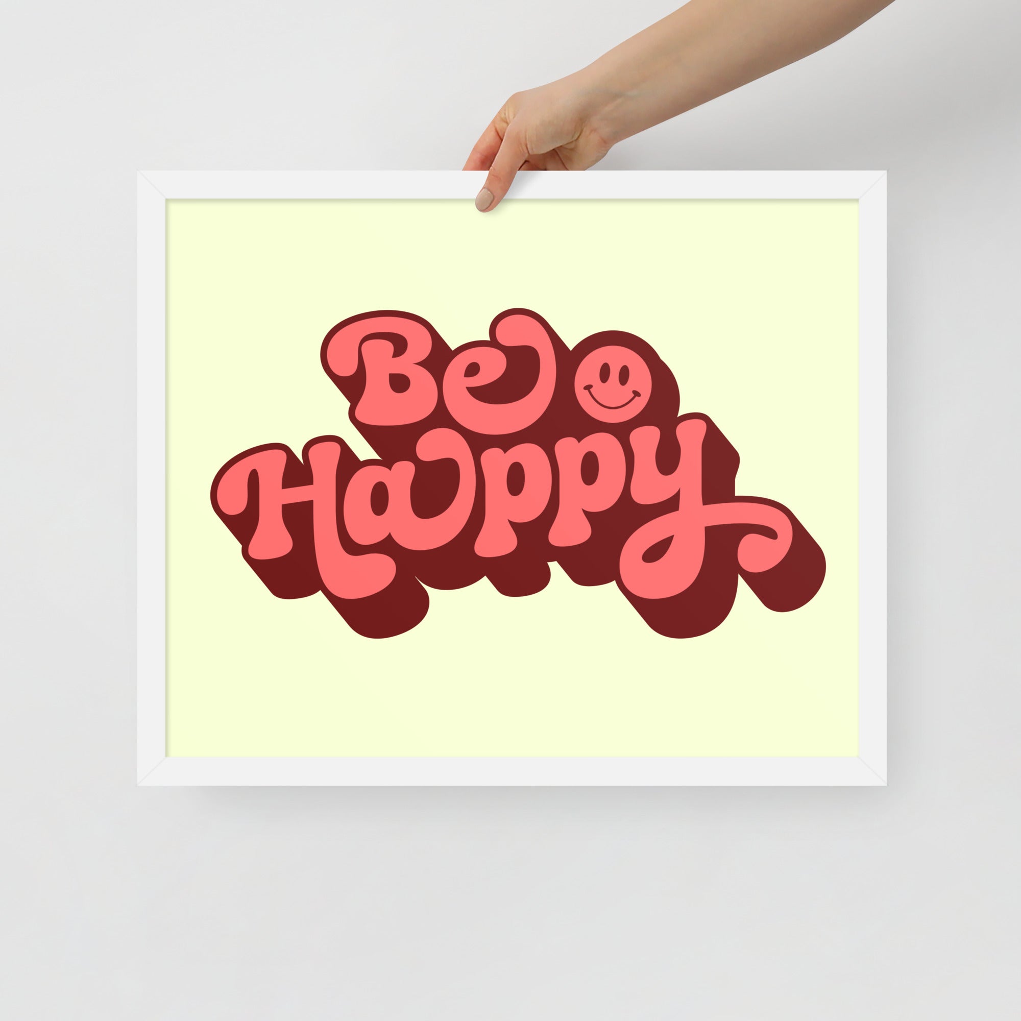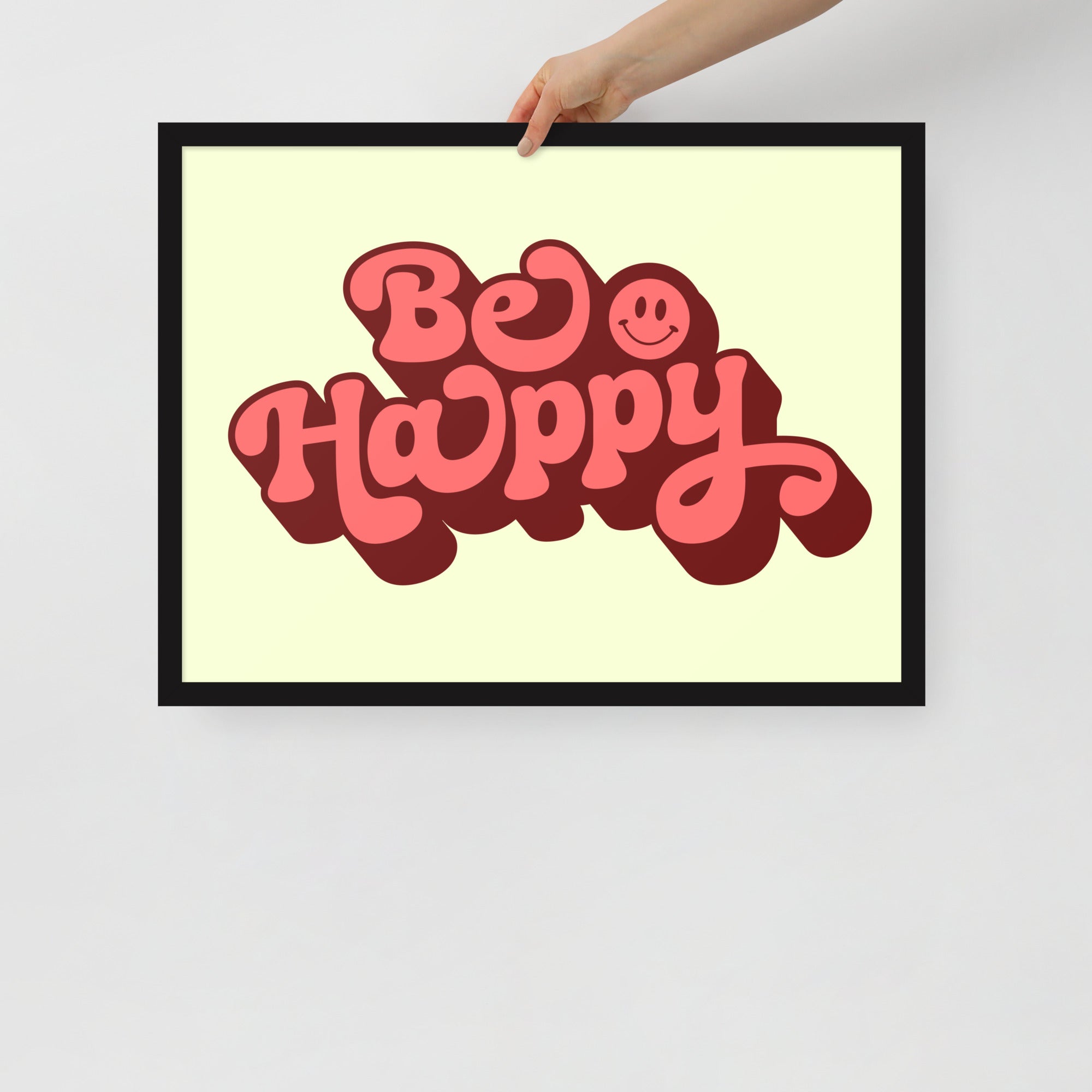Be Happy Smiley Word Art - Framed Nursery Wall Art