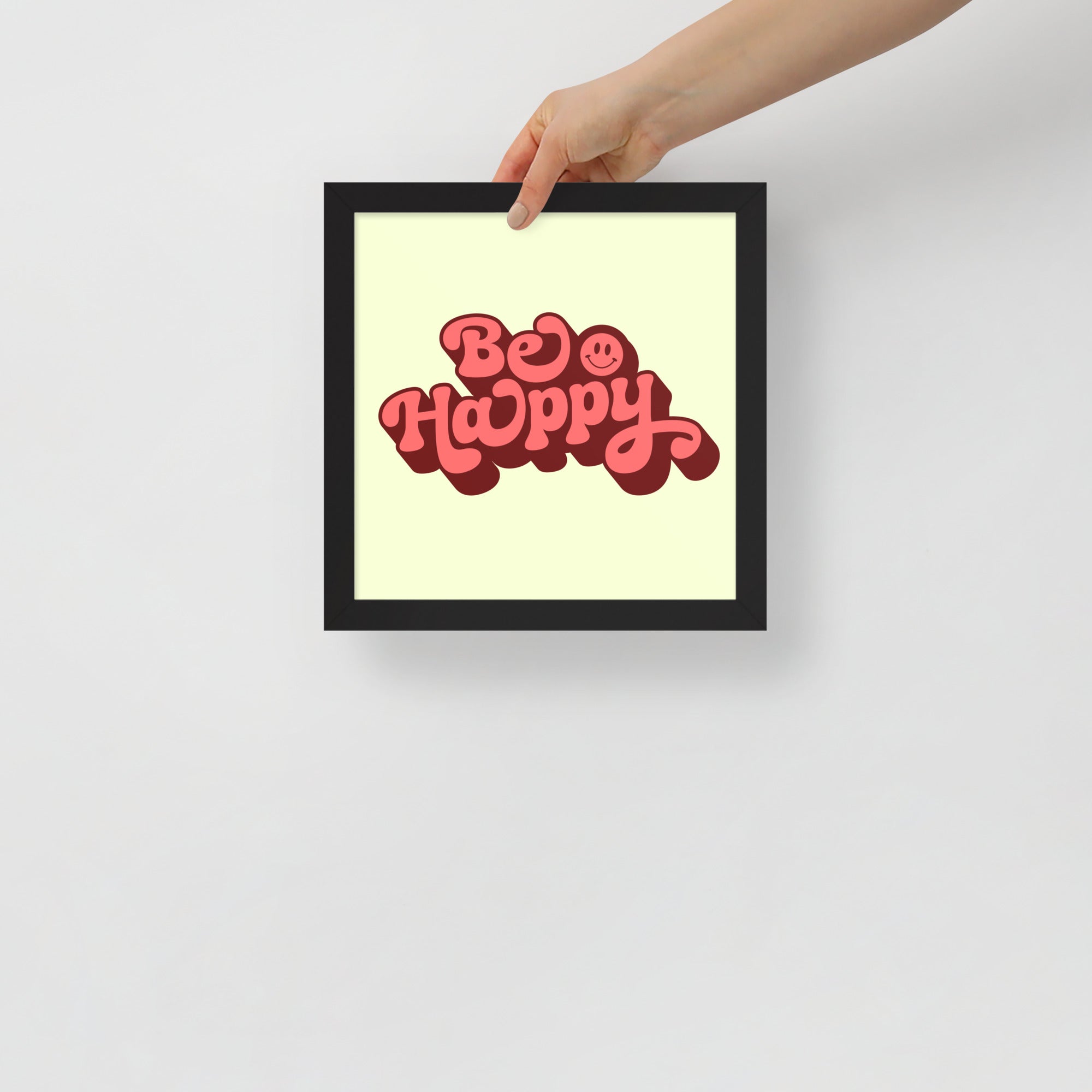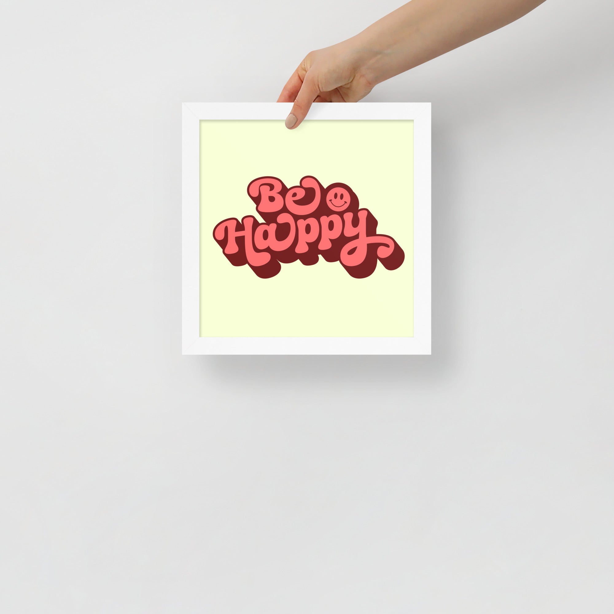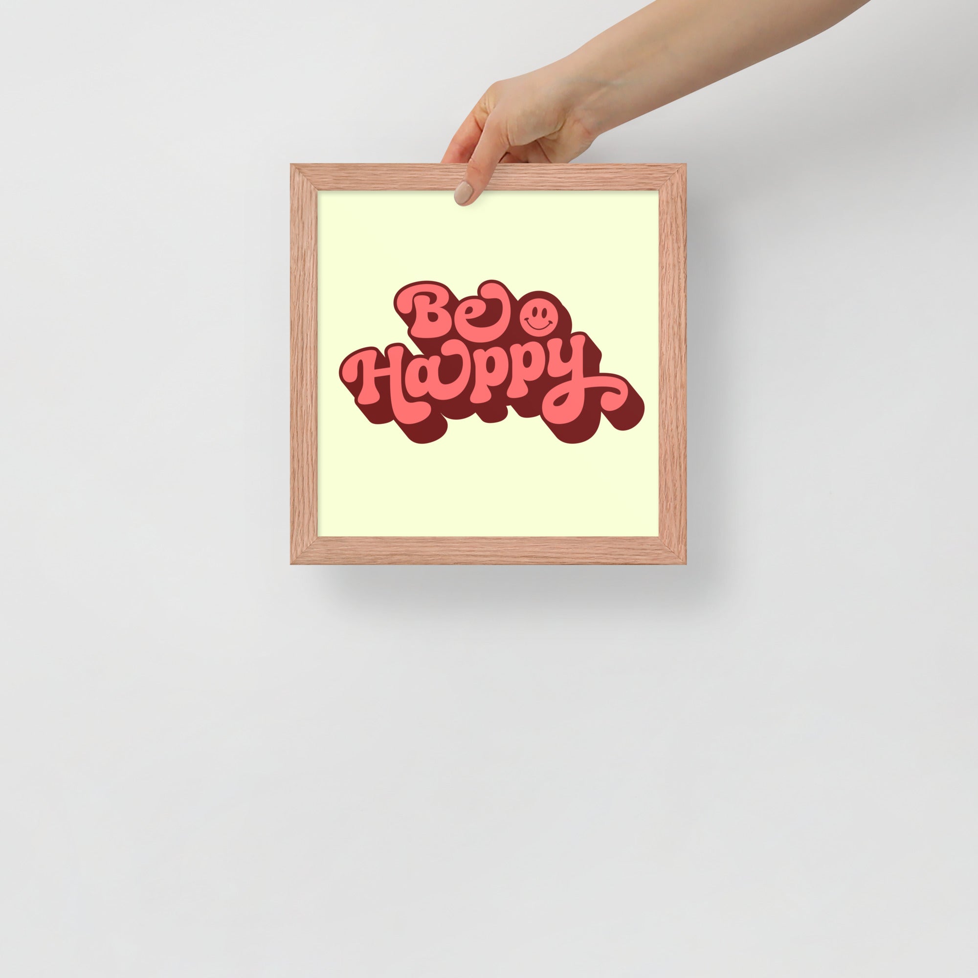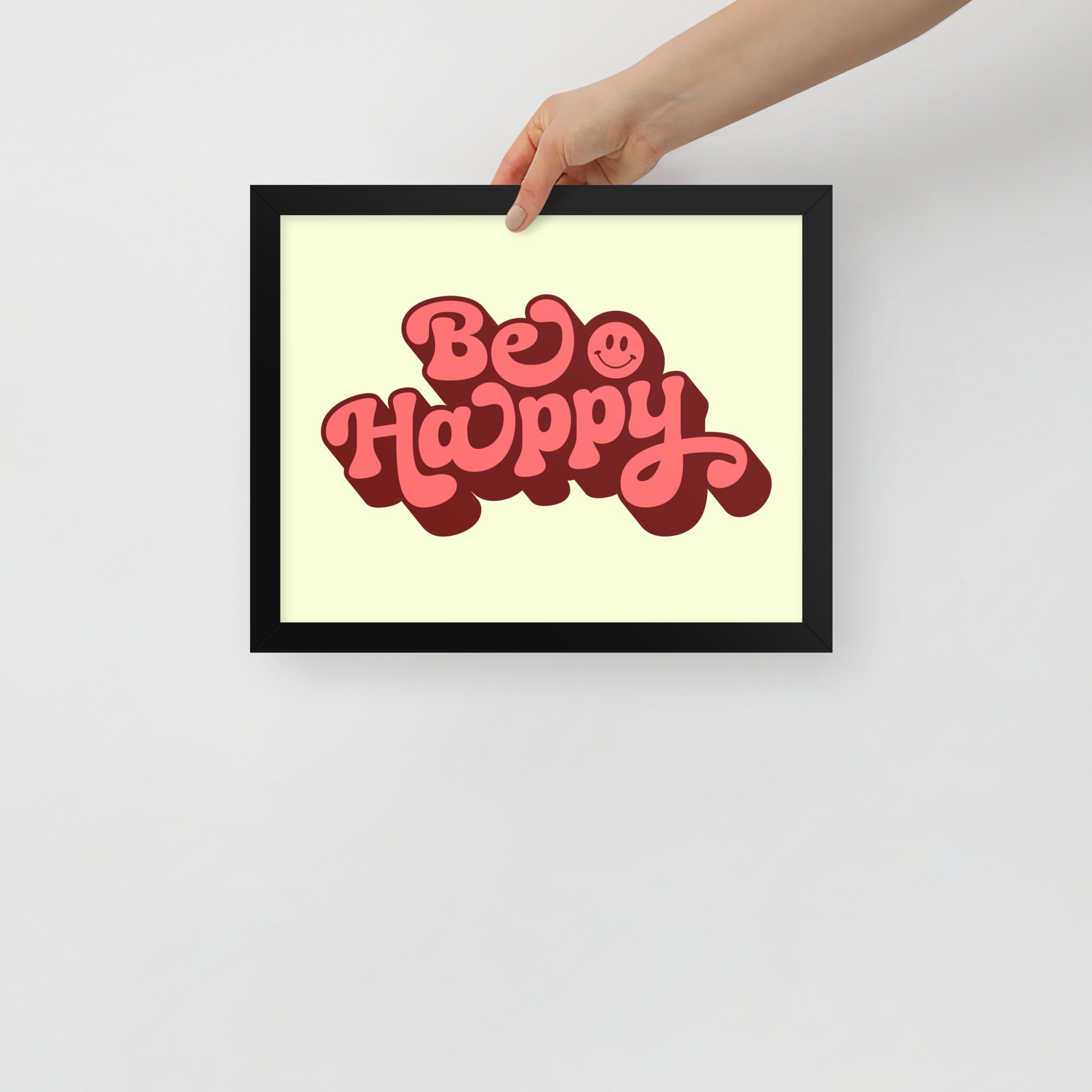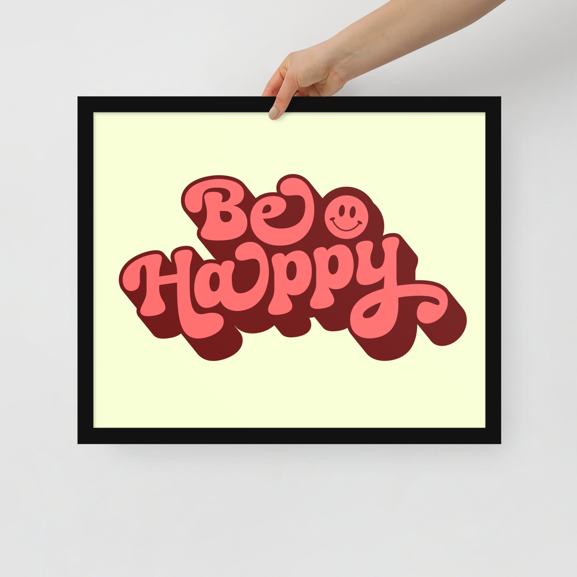 Be Happy Smiley Word Art - Framed Nursery Wall Art