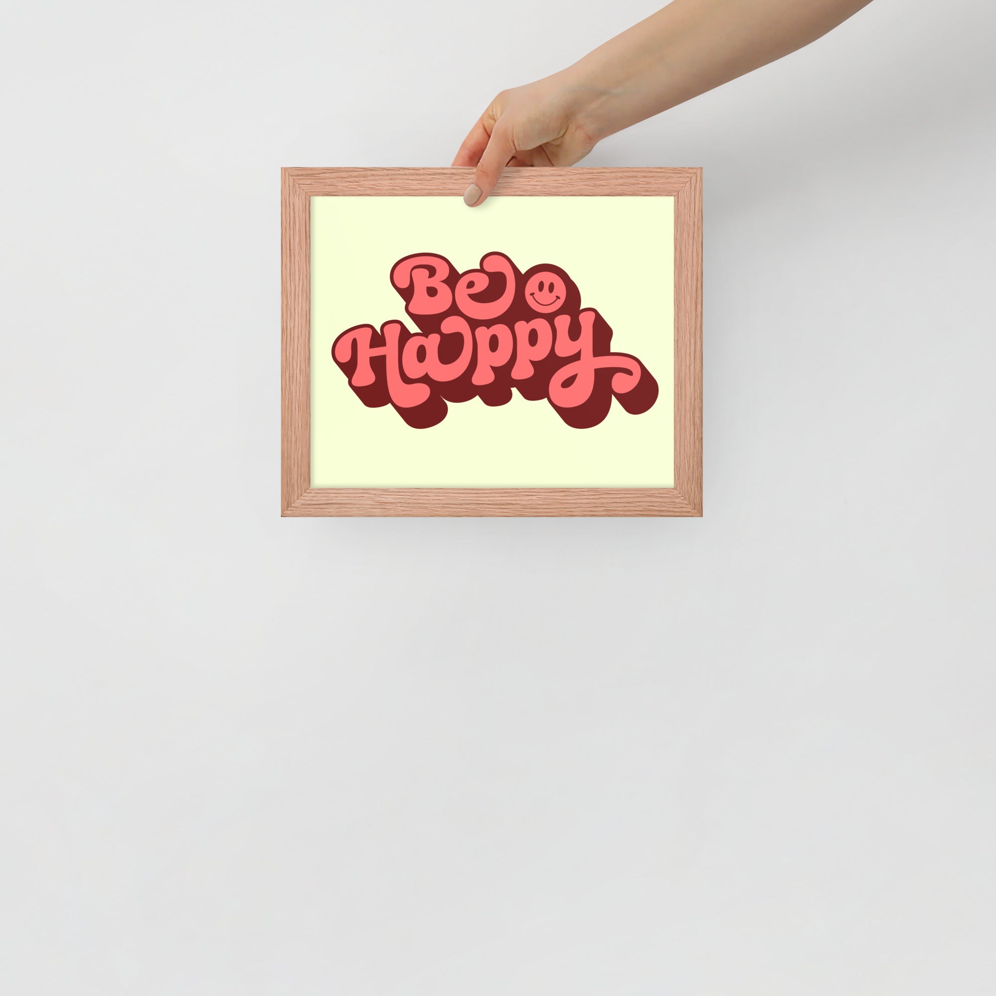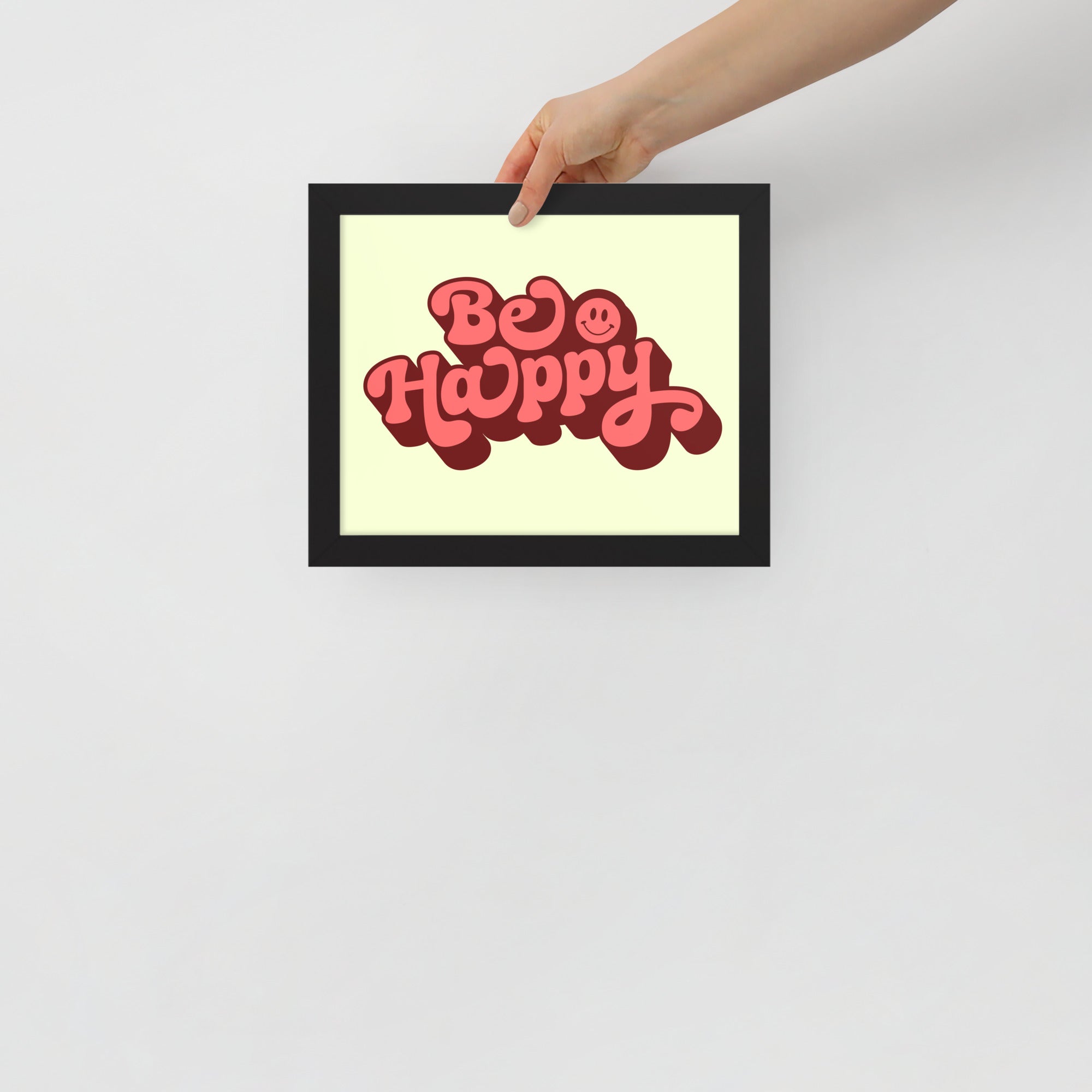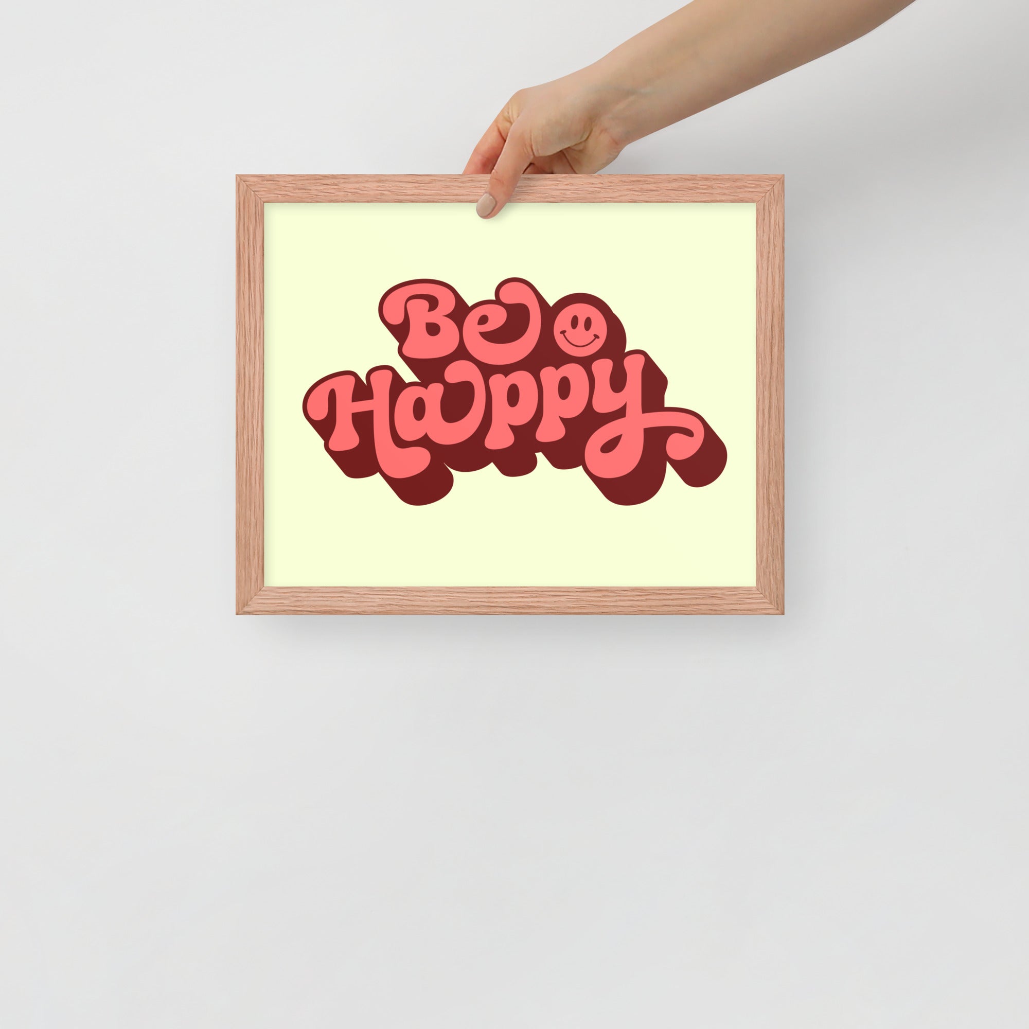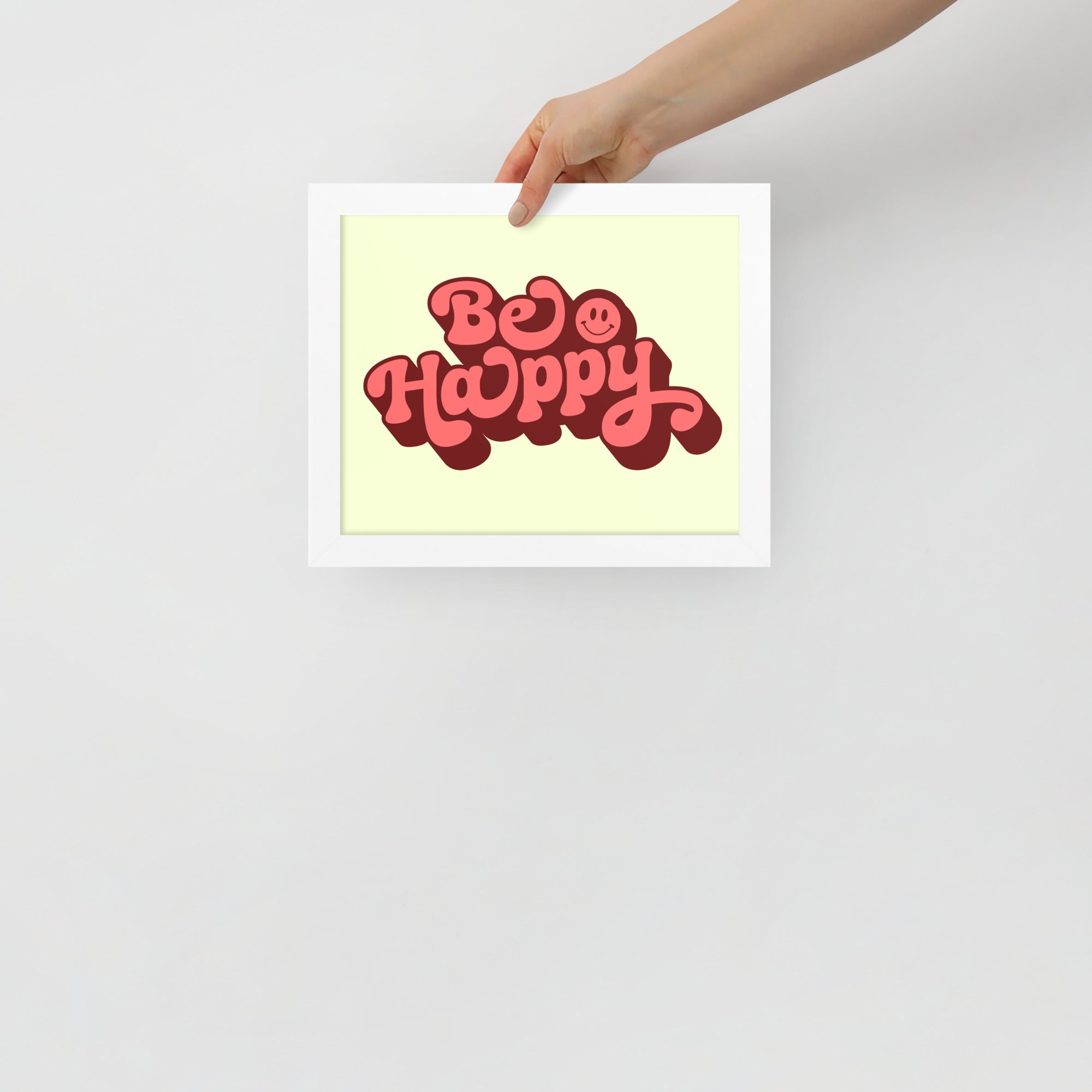 Be Happy Smiley Word Art - Framed Nursery Wall Art