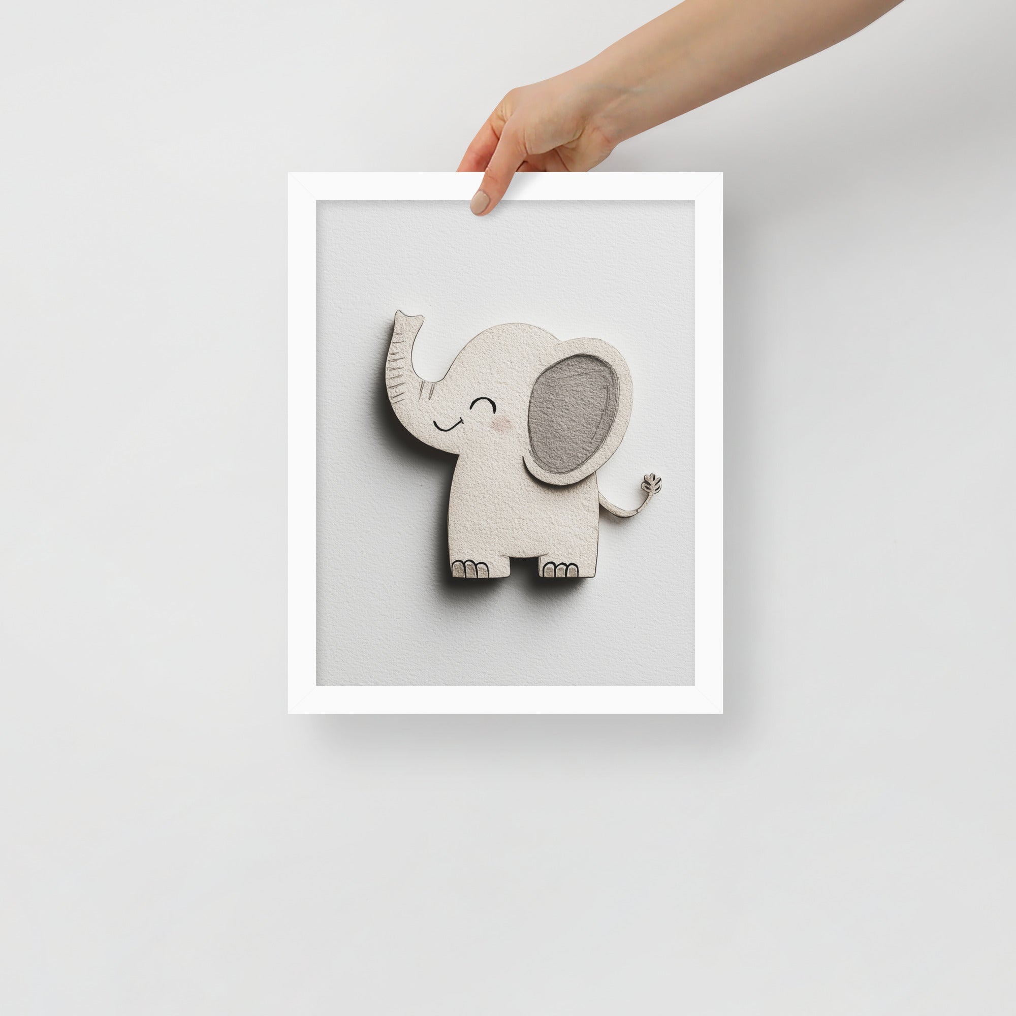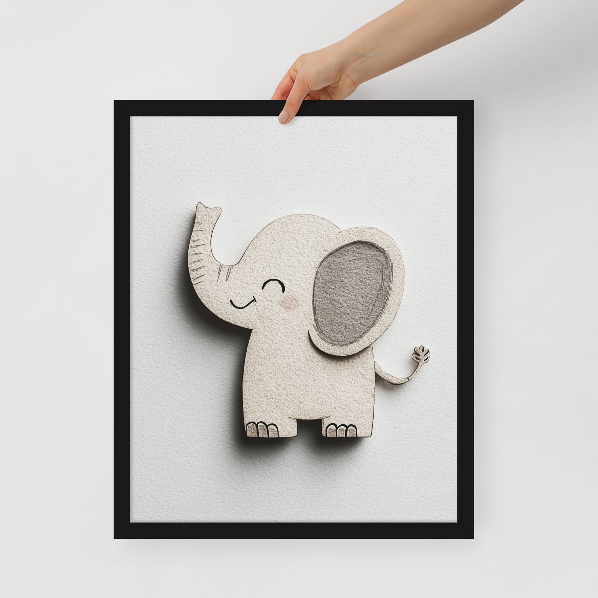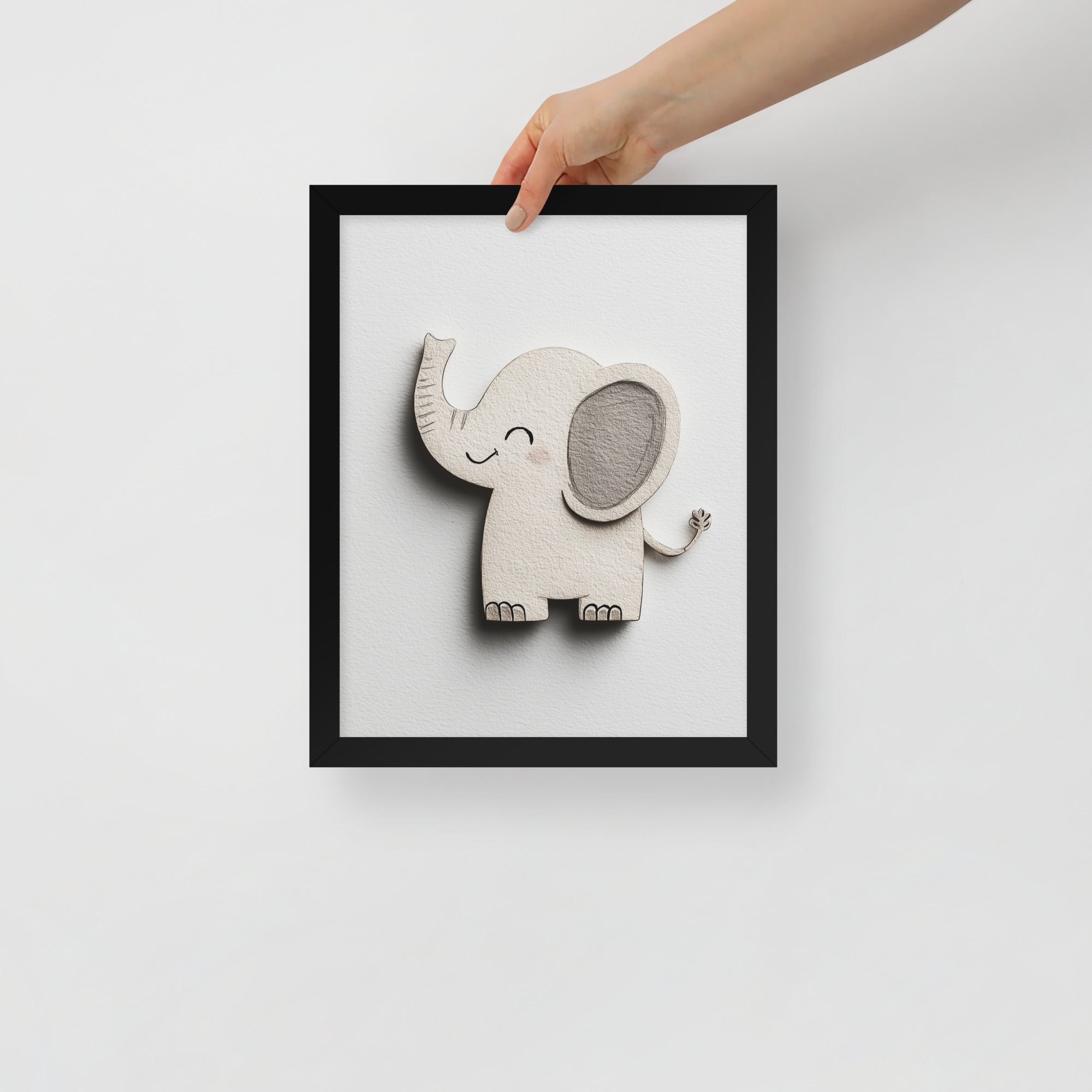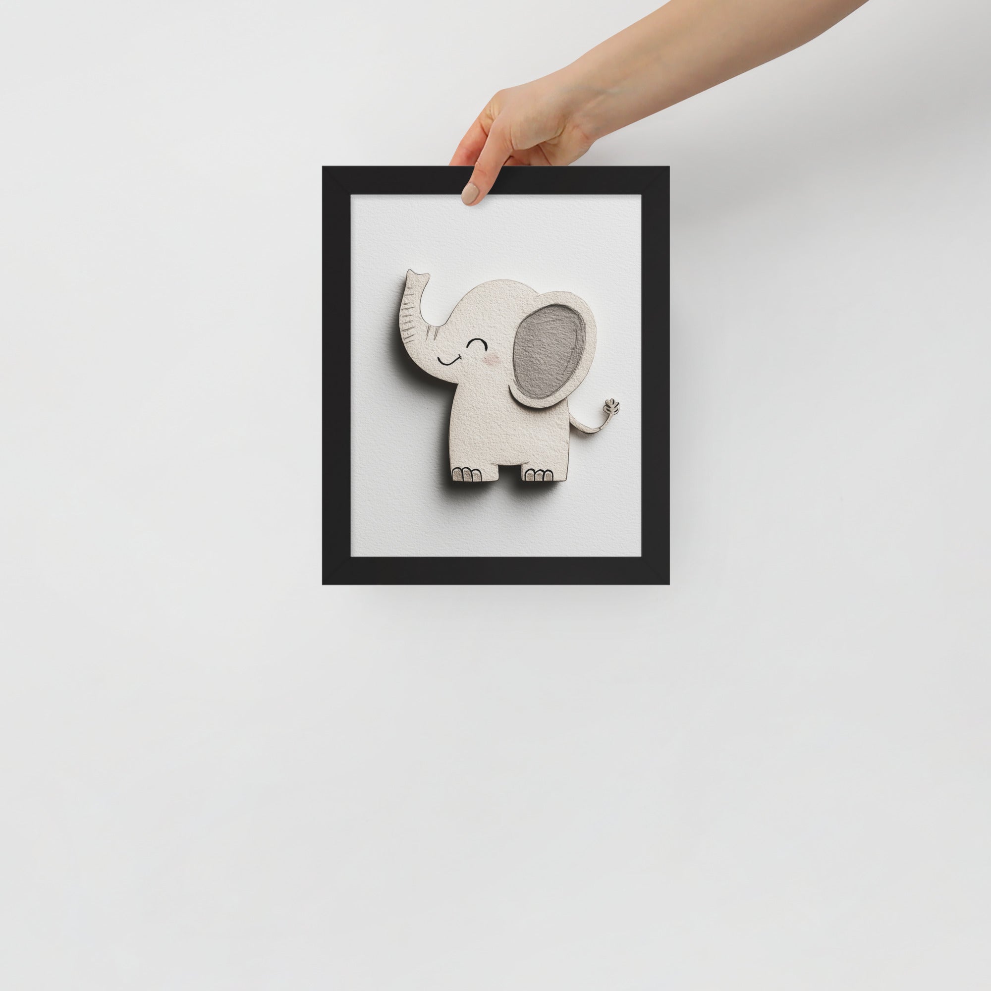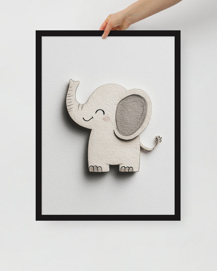 Blush Baby Elephant Greys - The Cutout Series - Framed Nursery Wall Art