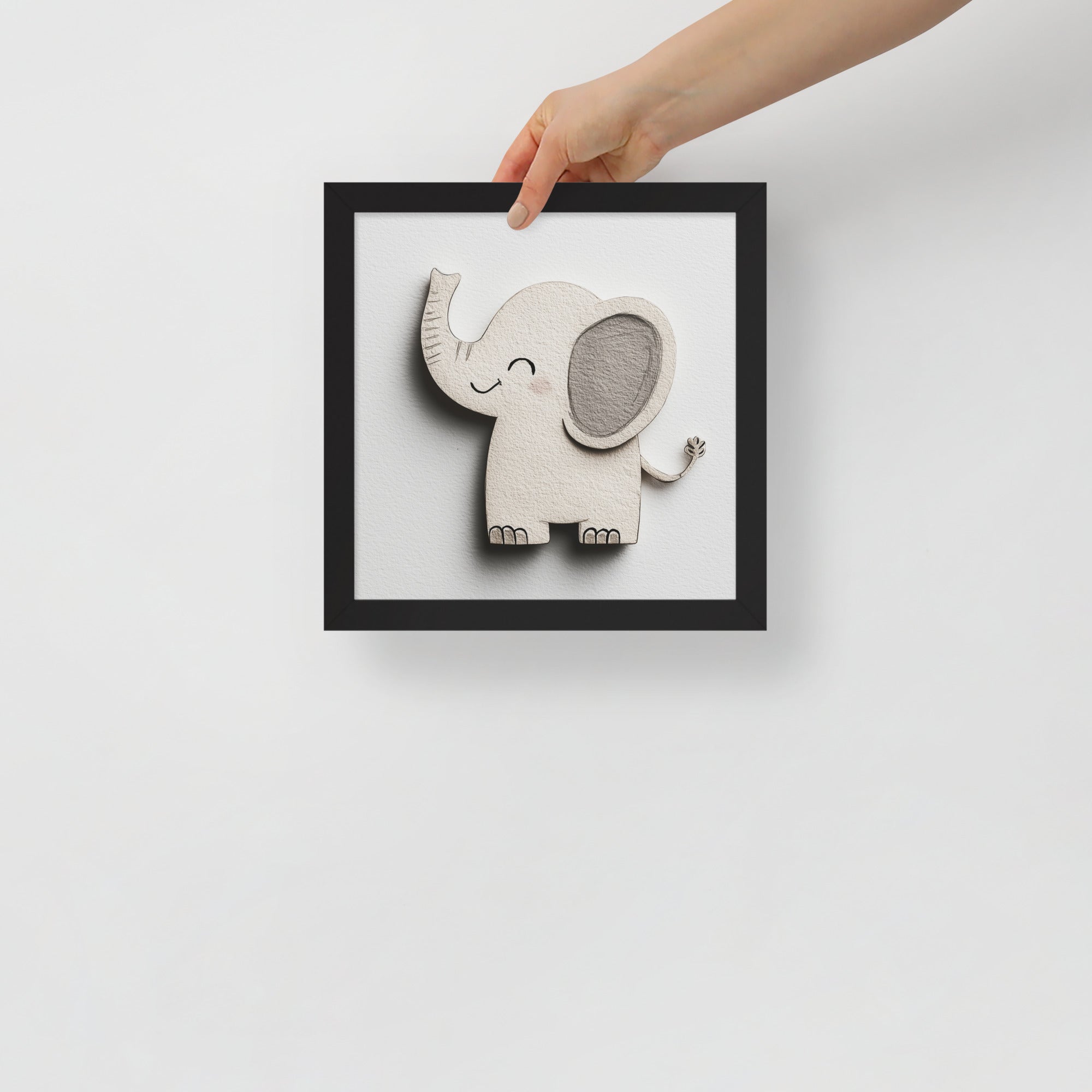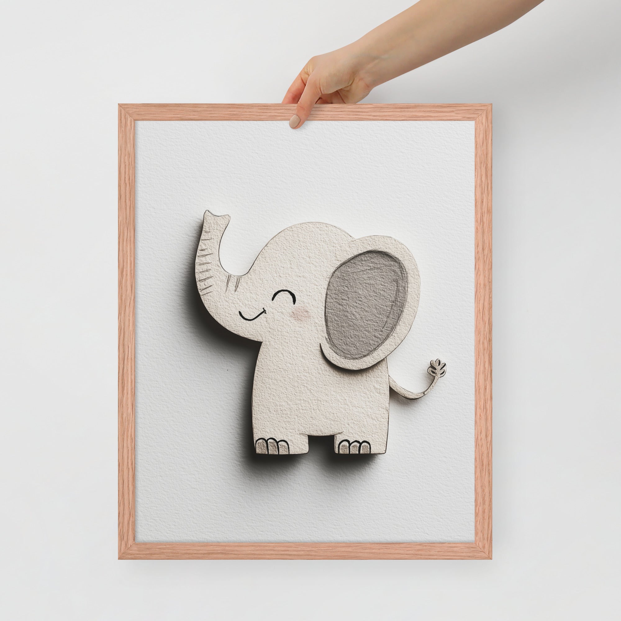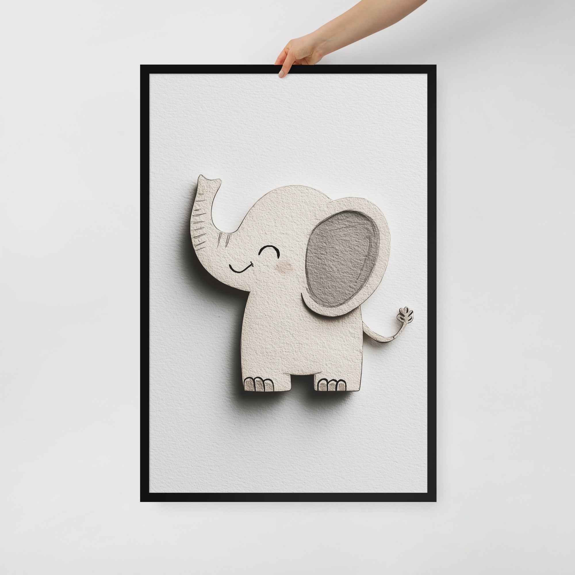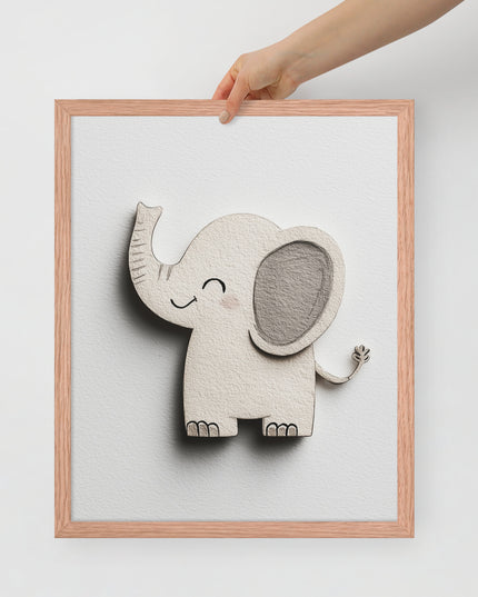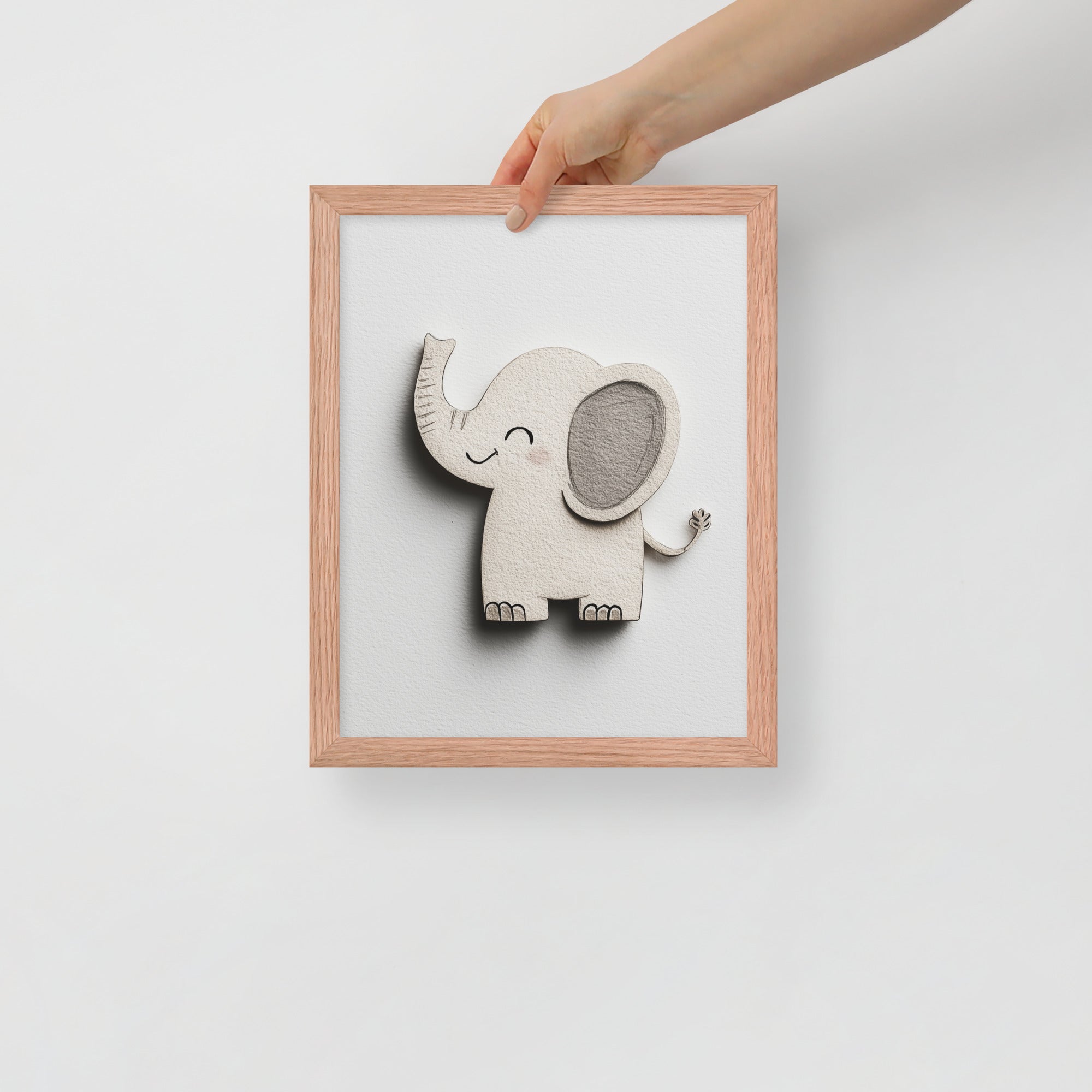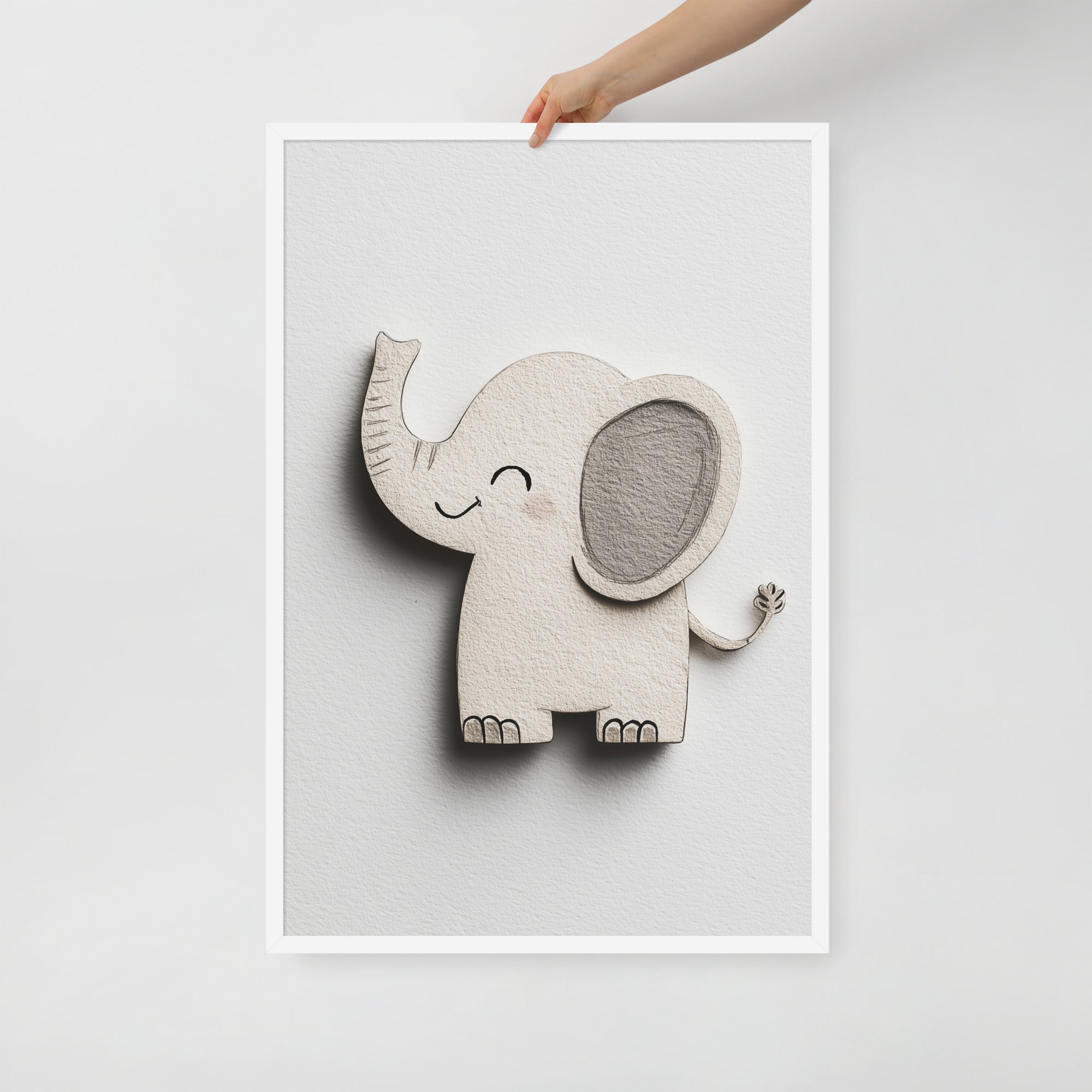 Blush Baby Elephant Greys - The Cutout Series - Framed Nursery Wall Art