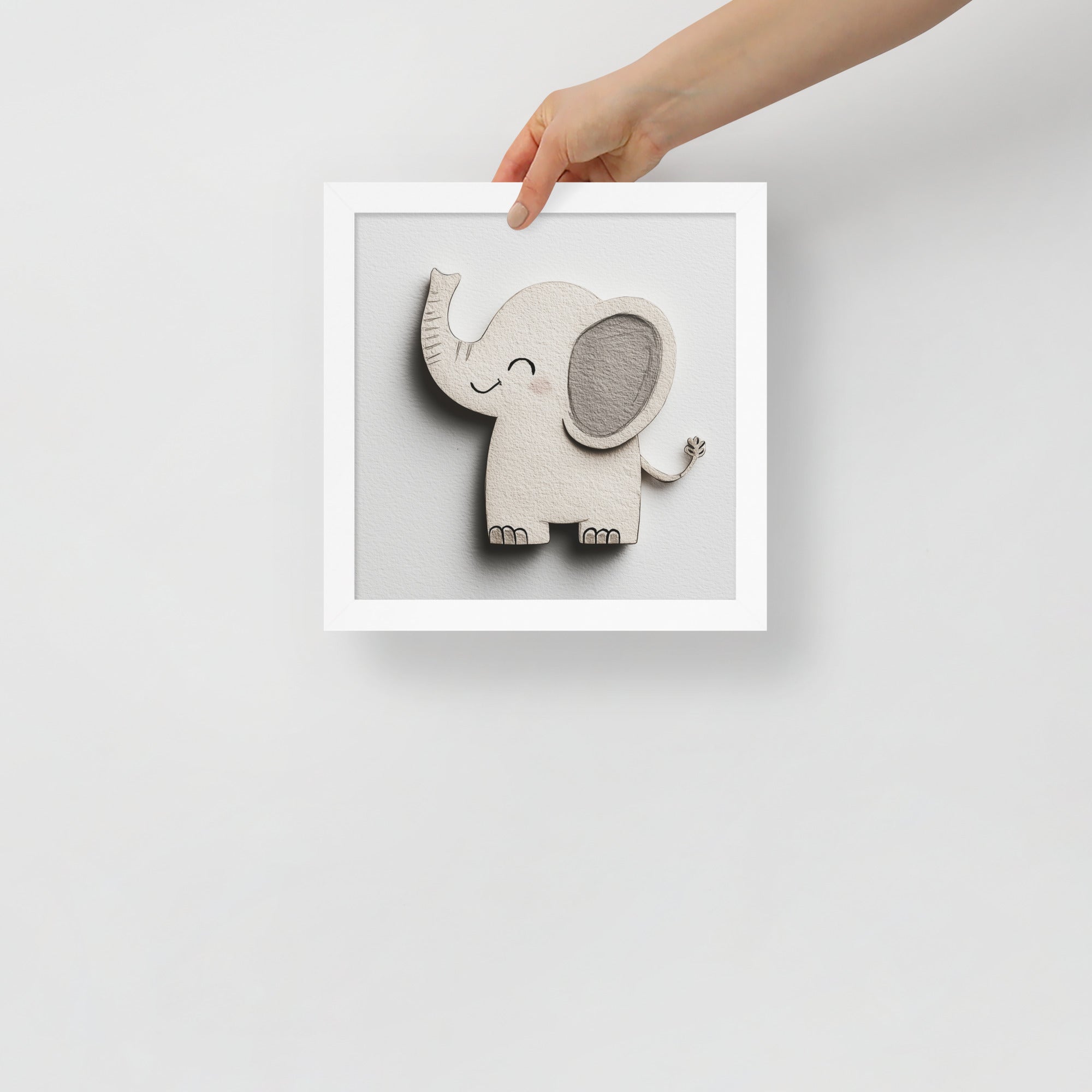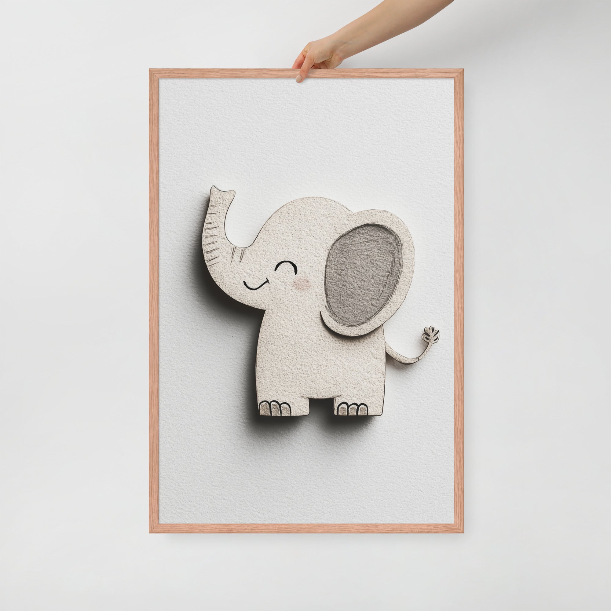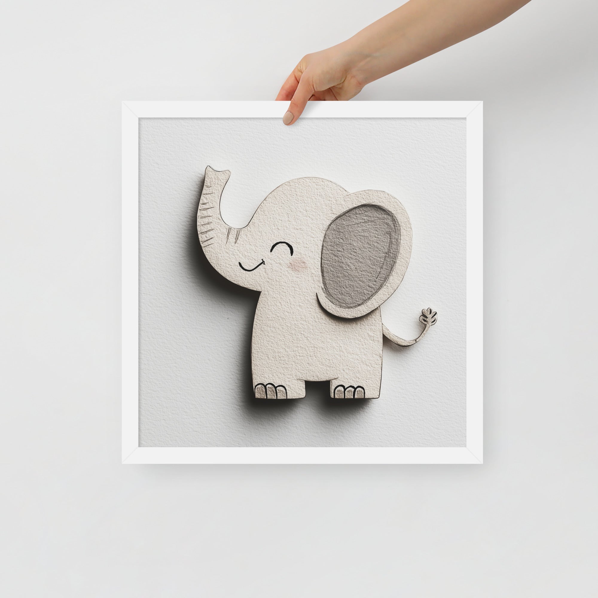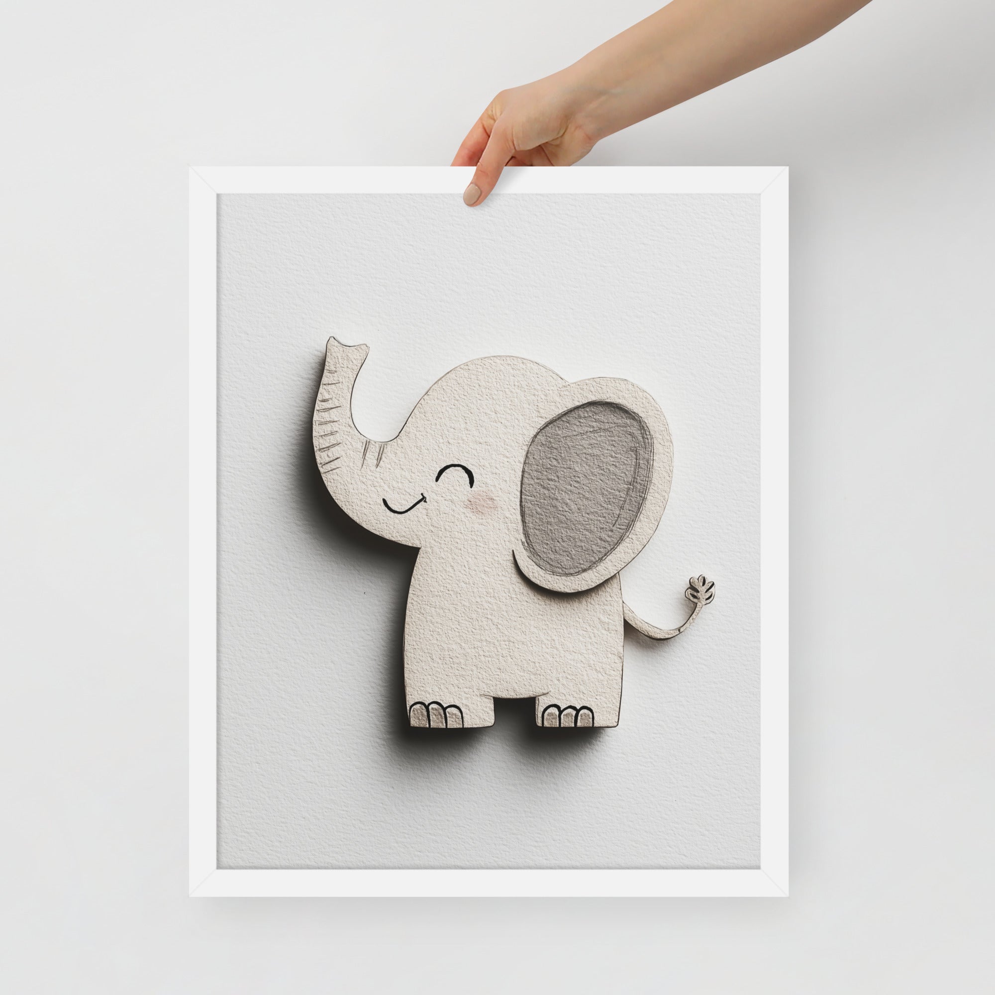 Blush Baby Elephant Greys - The Cutout Series - Framed Nursery Wall Art