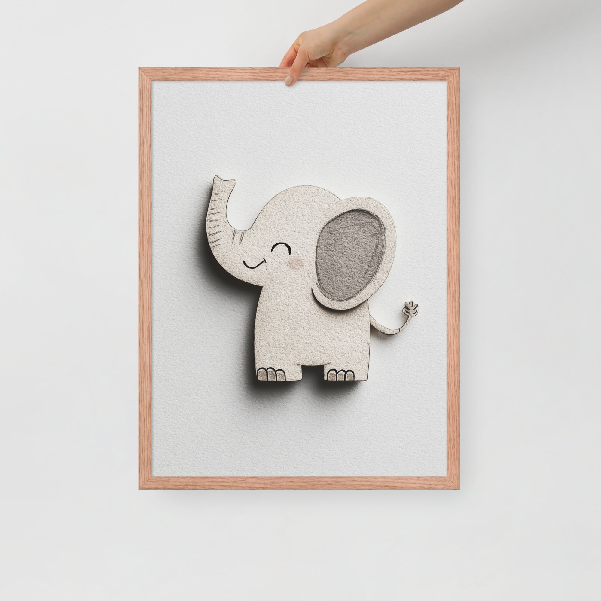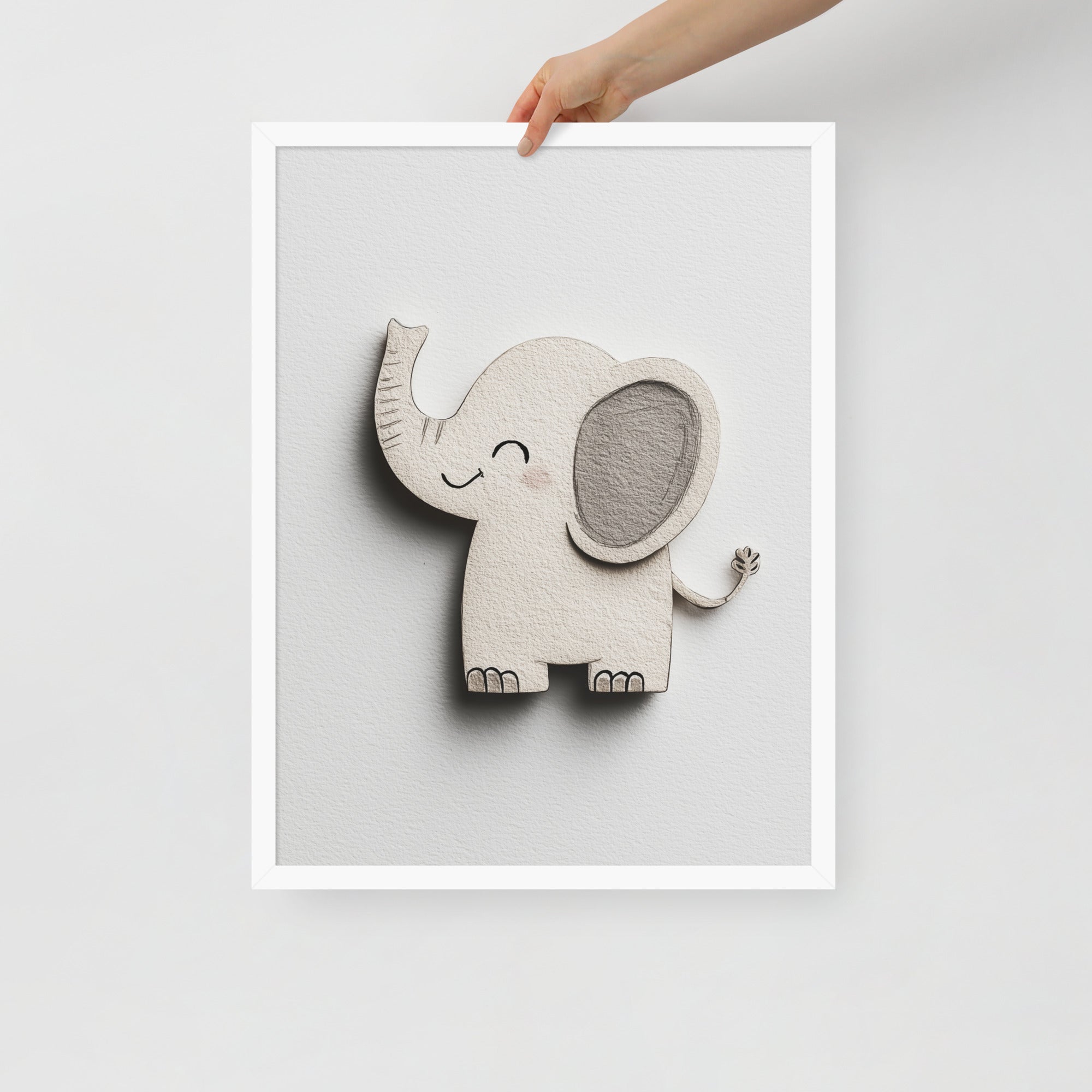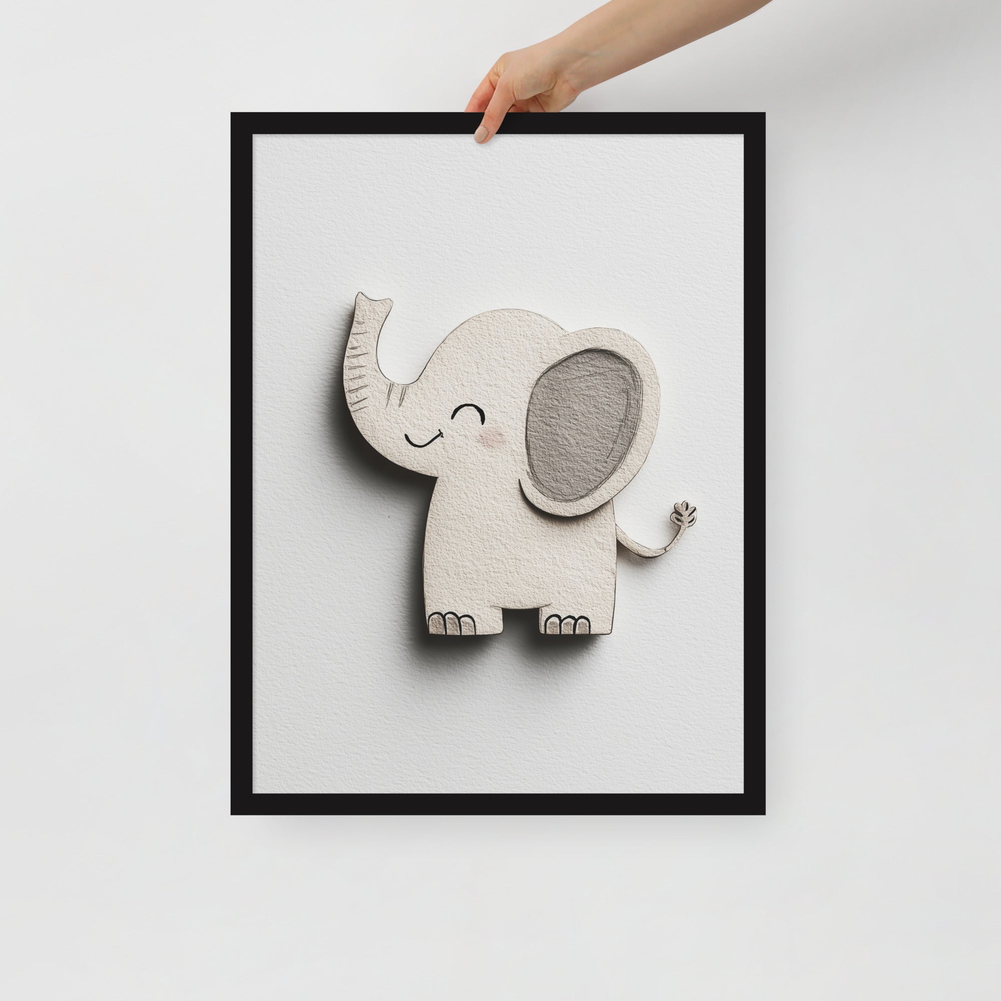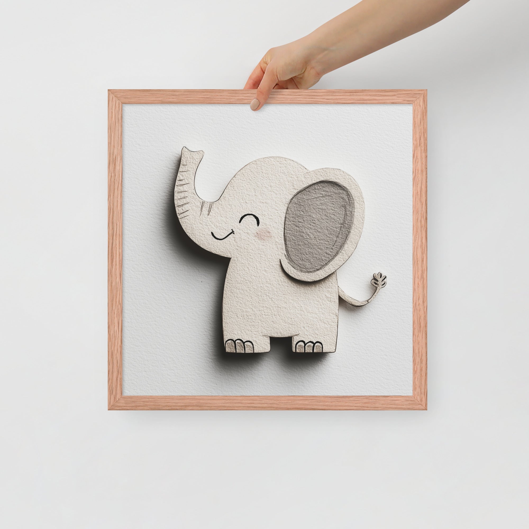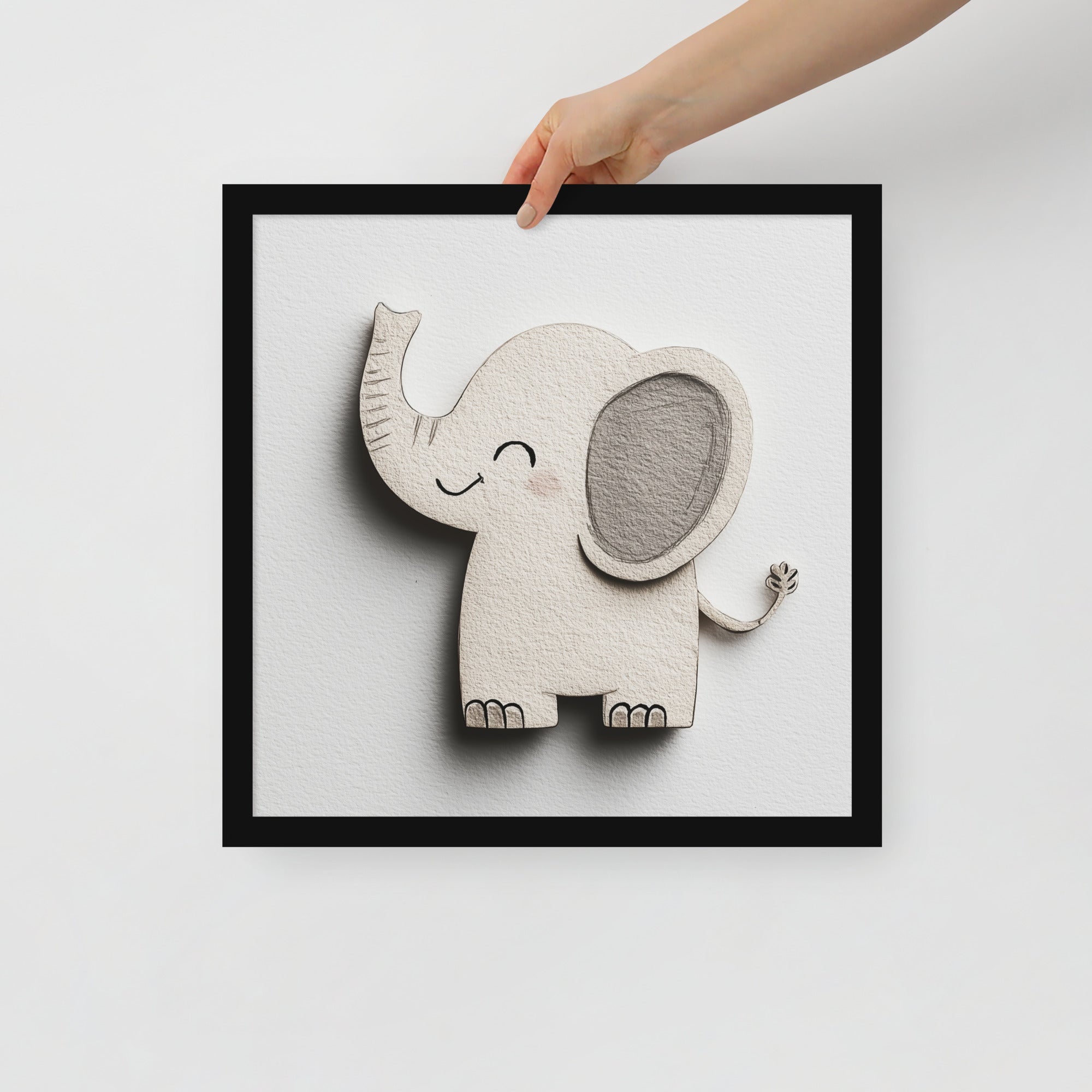 Blush Baby Elephant Greys - The Cutout Series - Framed Nursery Wall Art