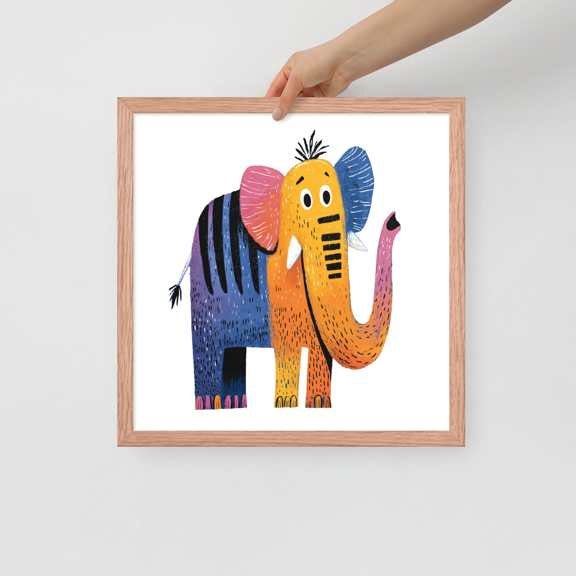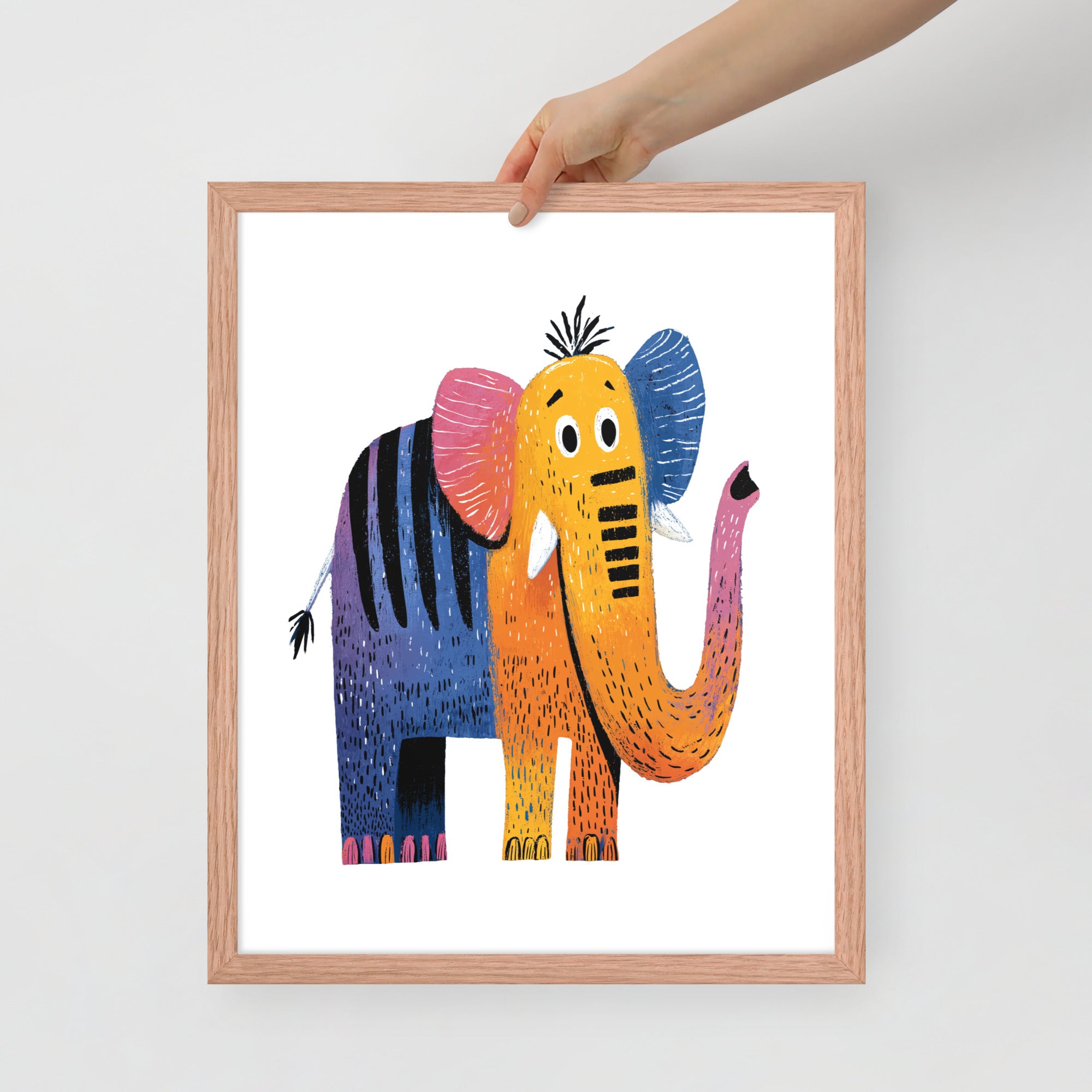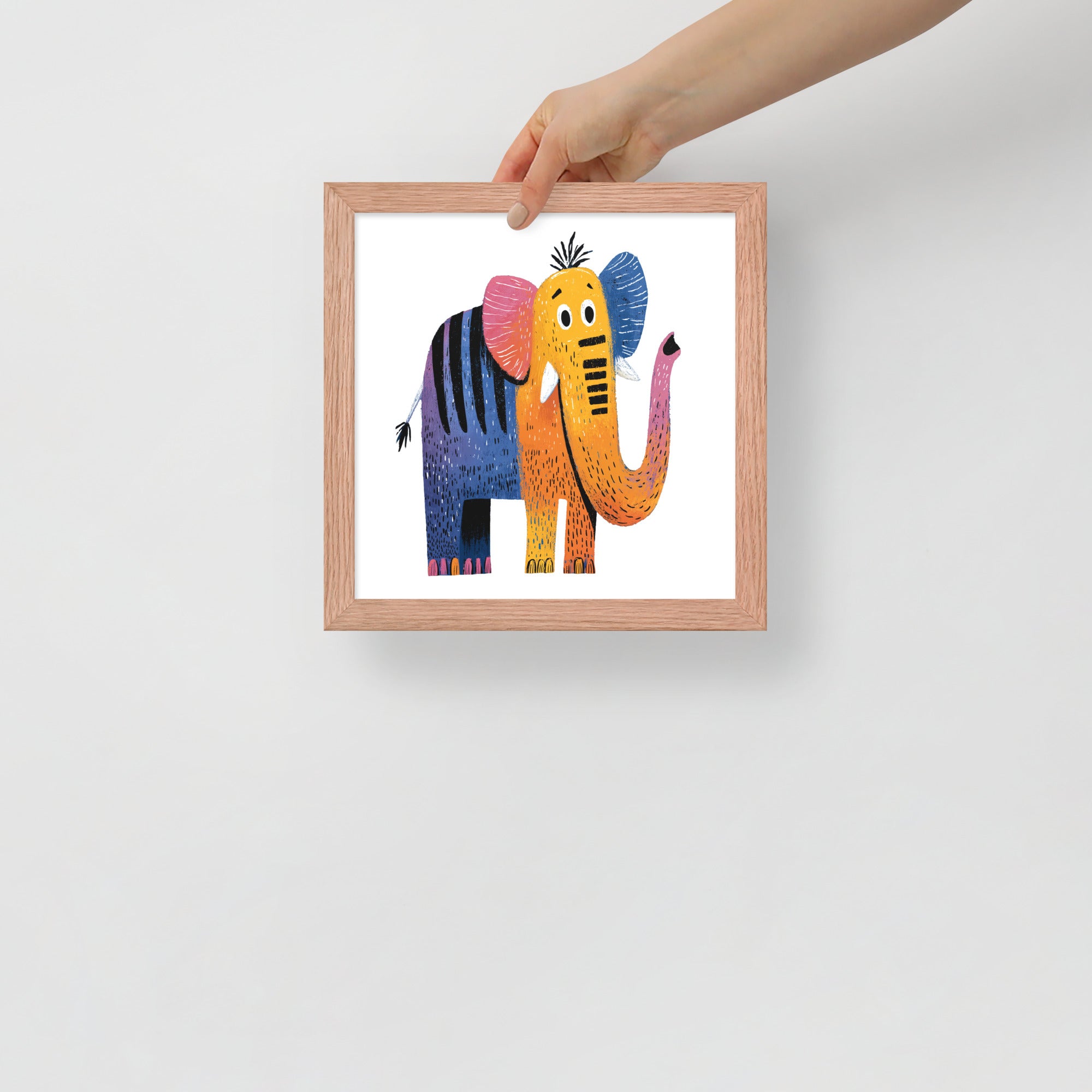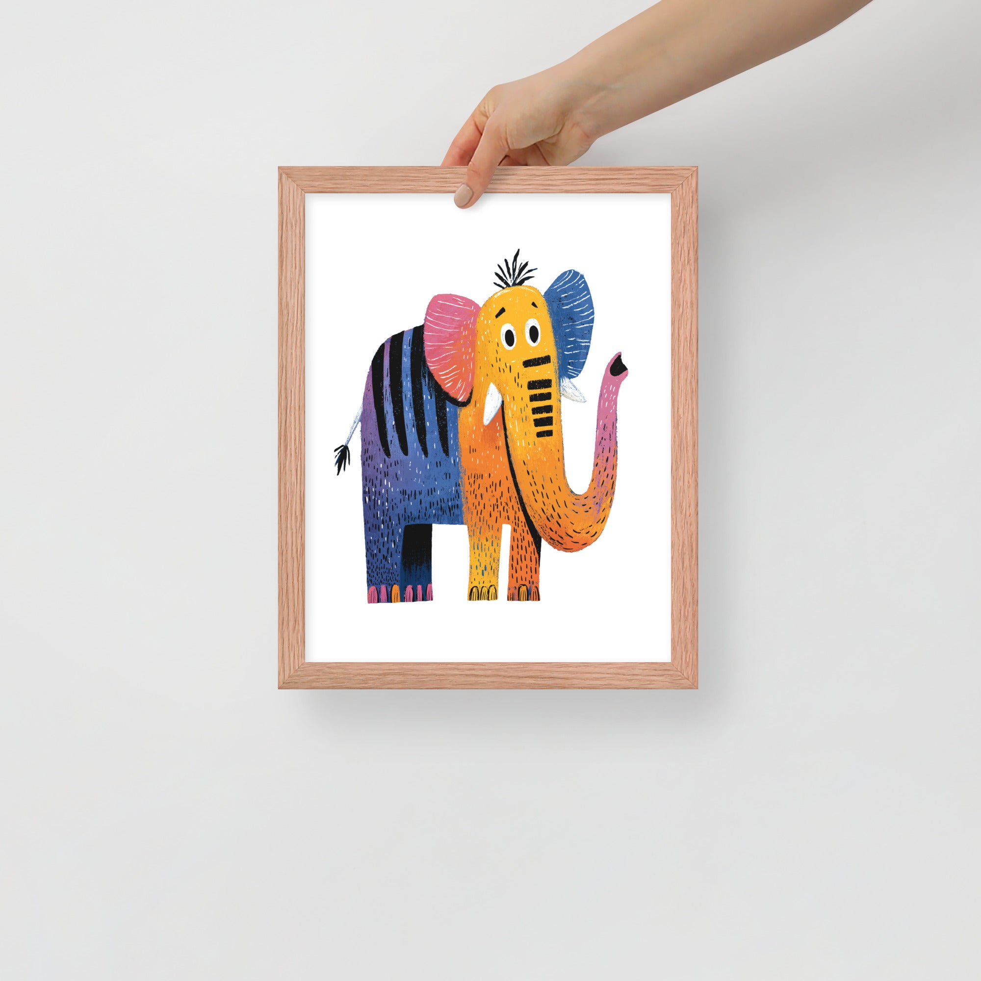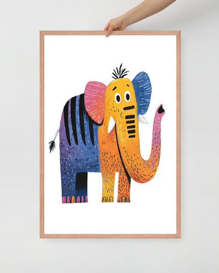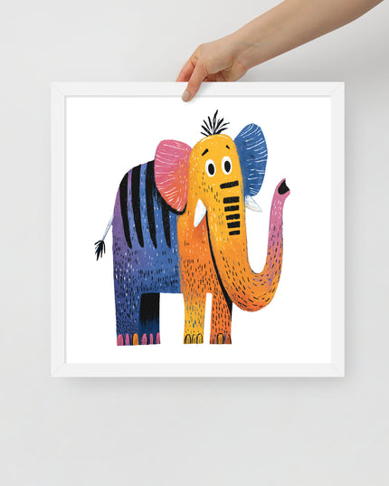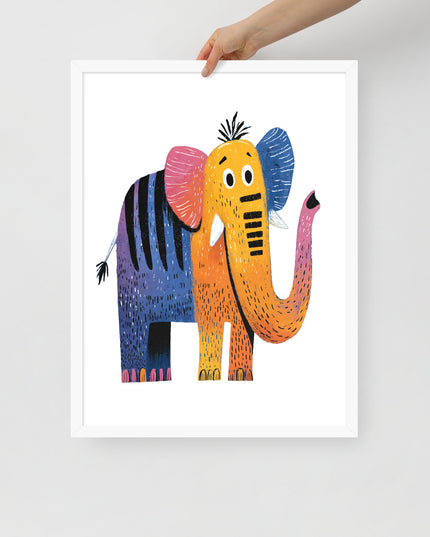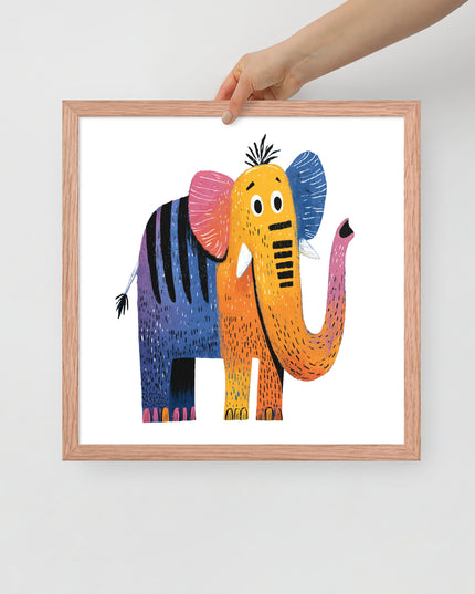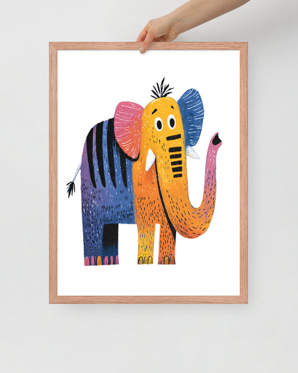 Cheerful Century Elephant - MidCentury Storybook Series - Framed Nursery Wall Art
