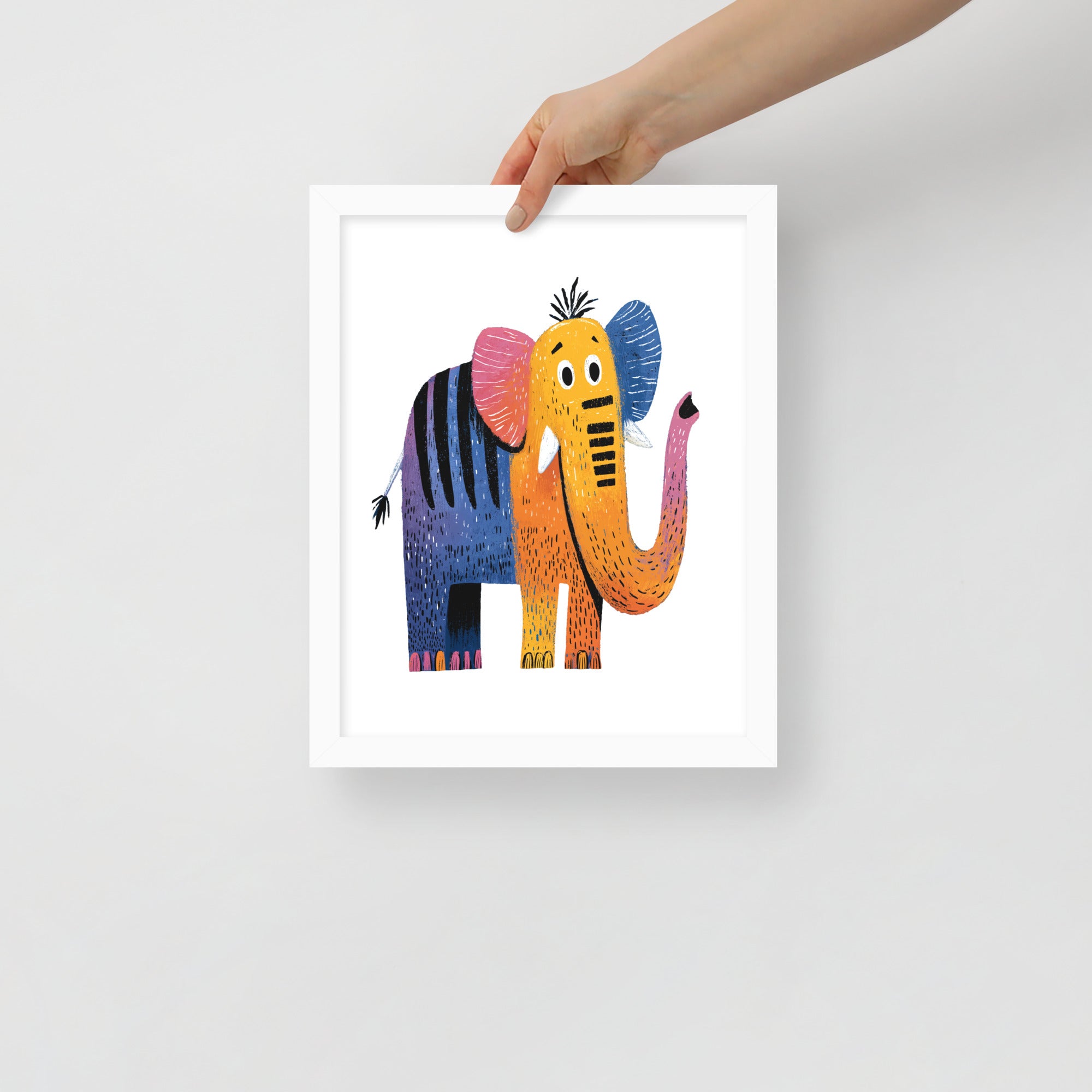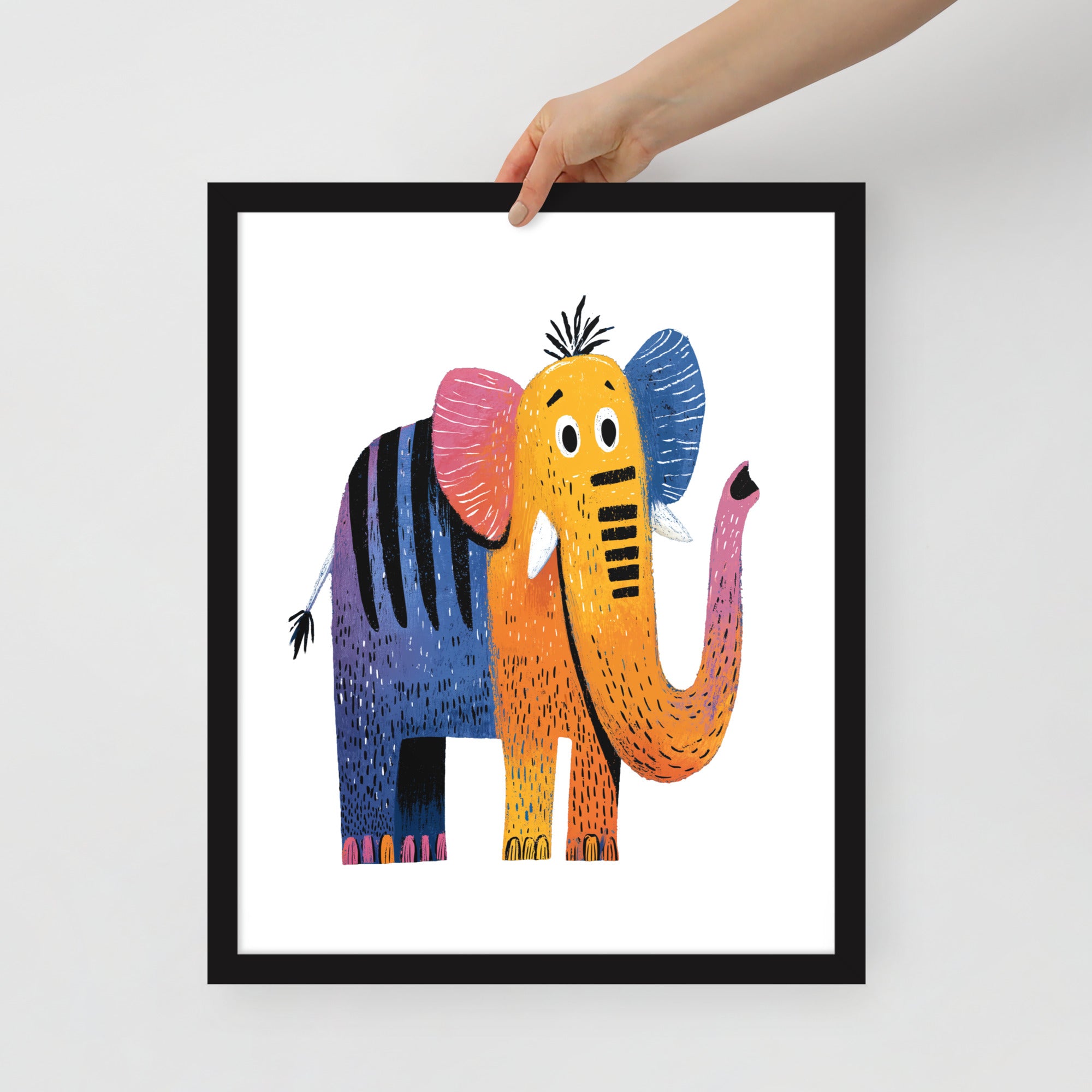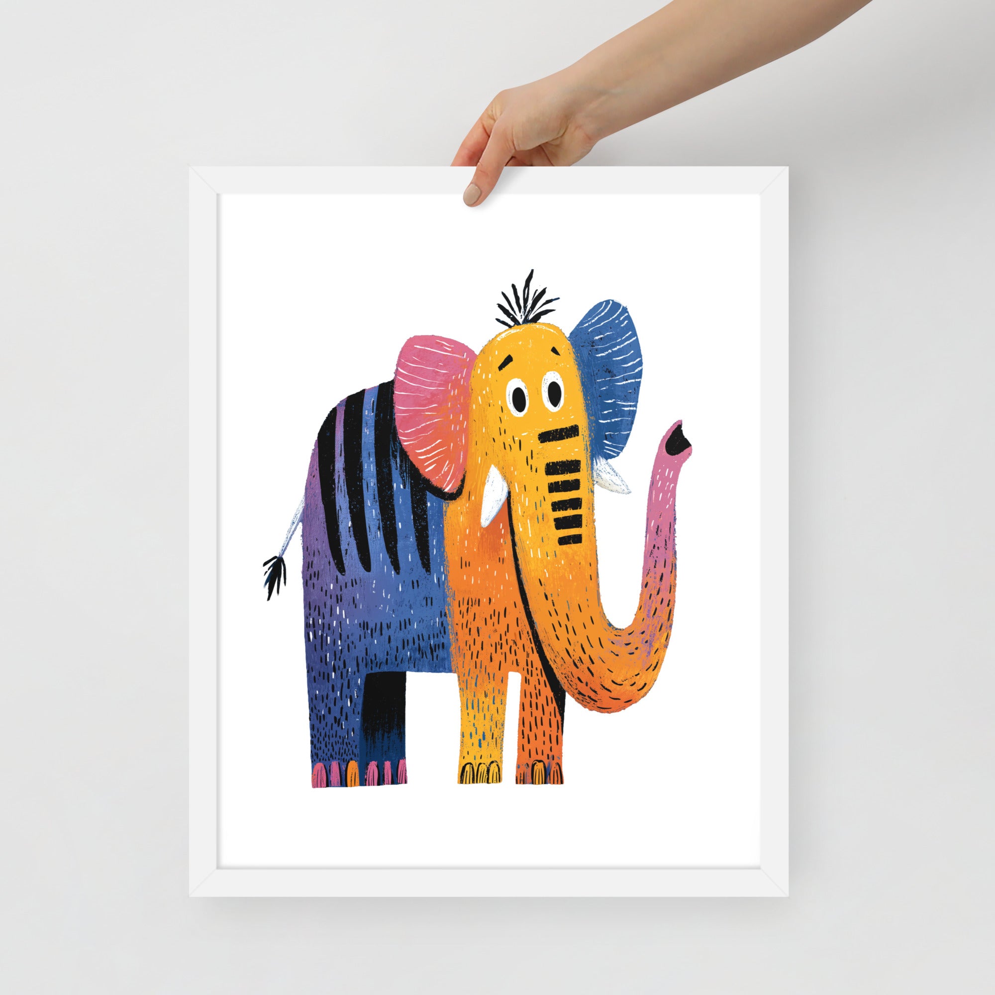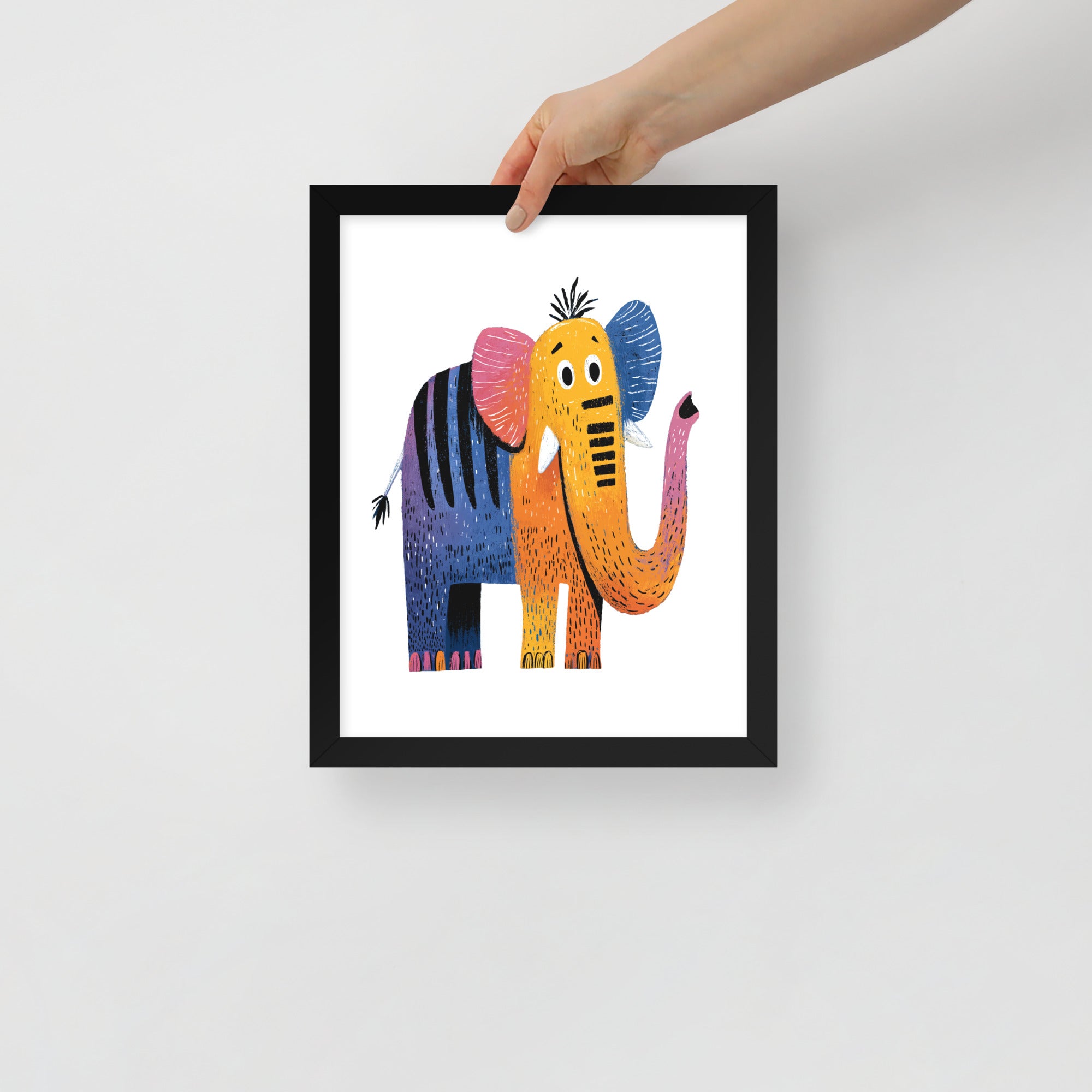 Cheerful Century Elephant - MidCentury Storybook Series - Framed Nursery Wall Art
