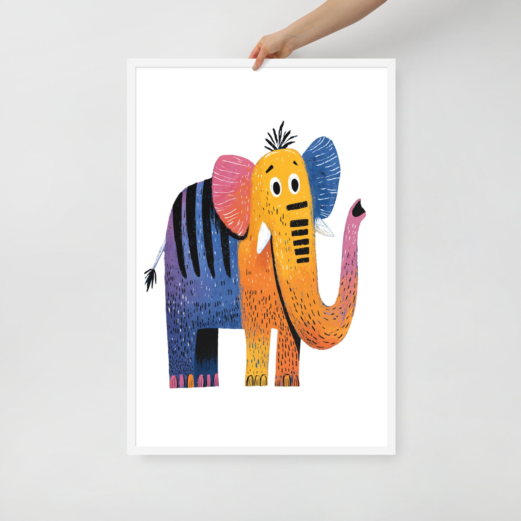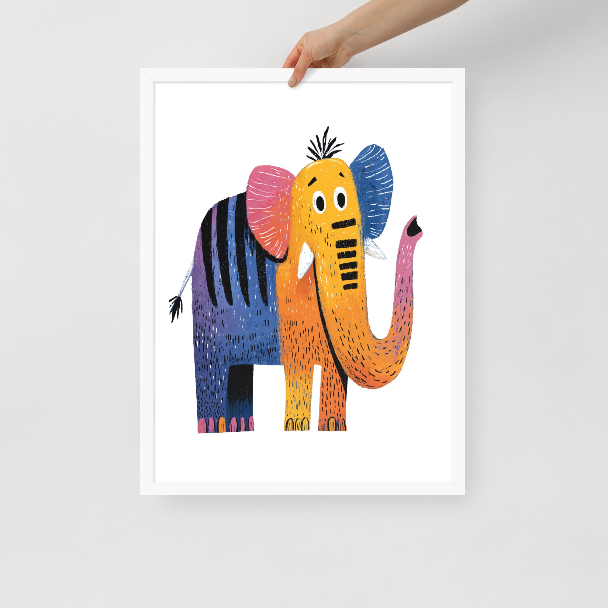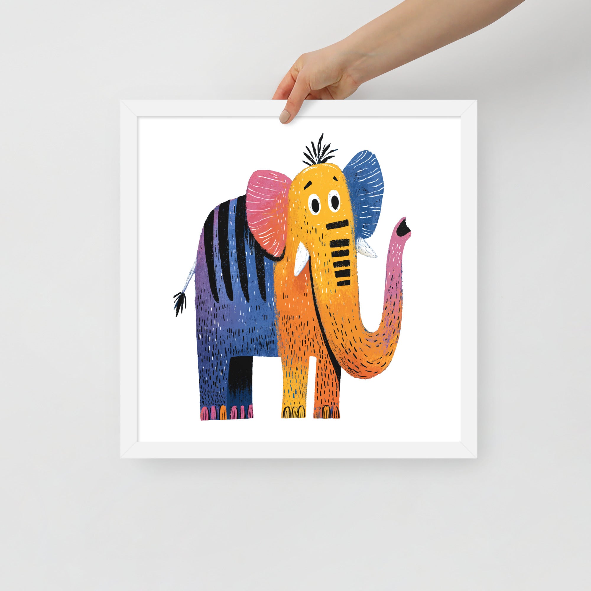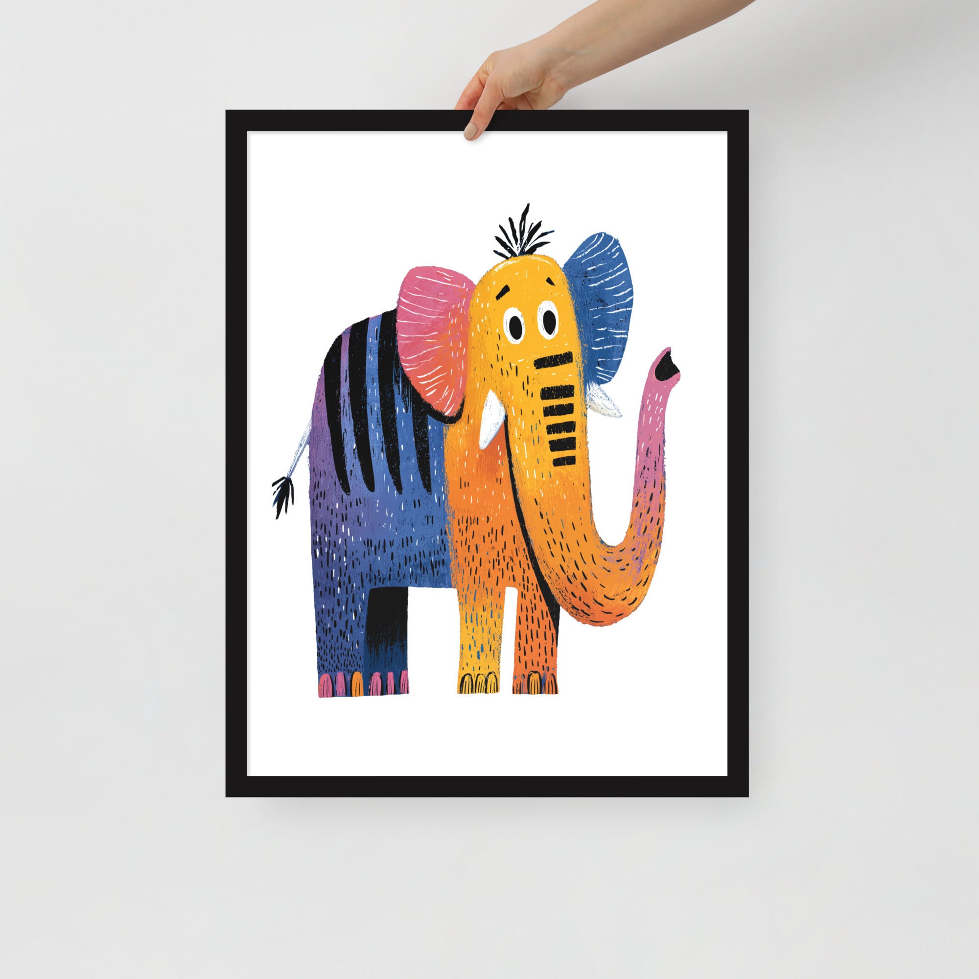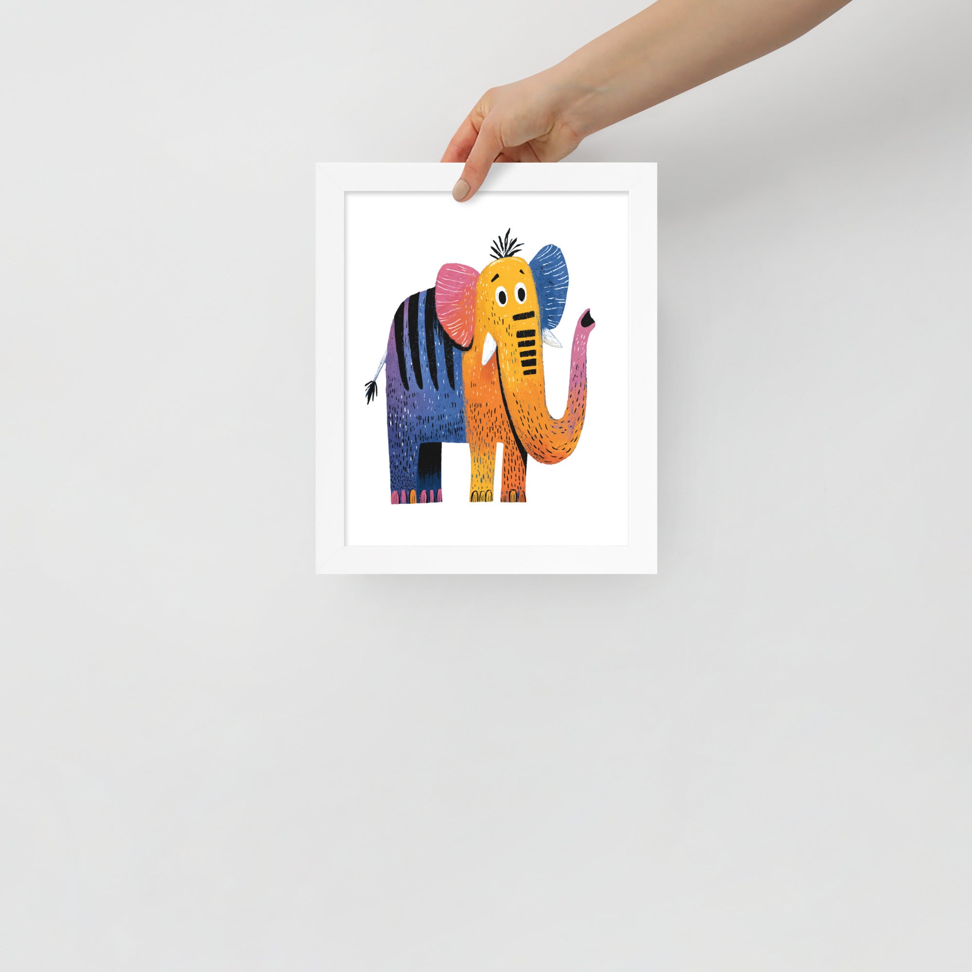 Cheerful Century Elephant - MidCentury Storybook Series - Framed Nursery Wall Art