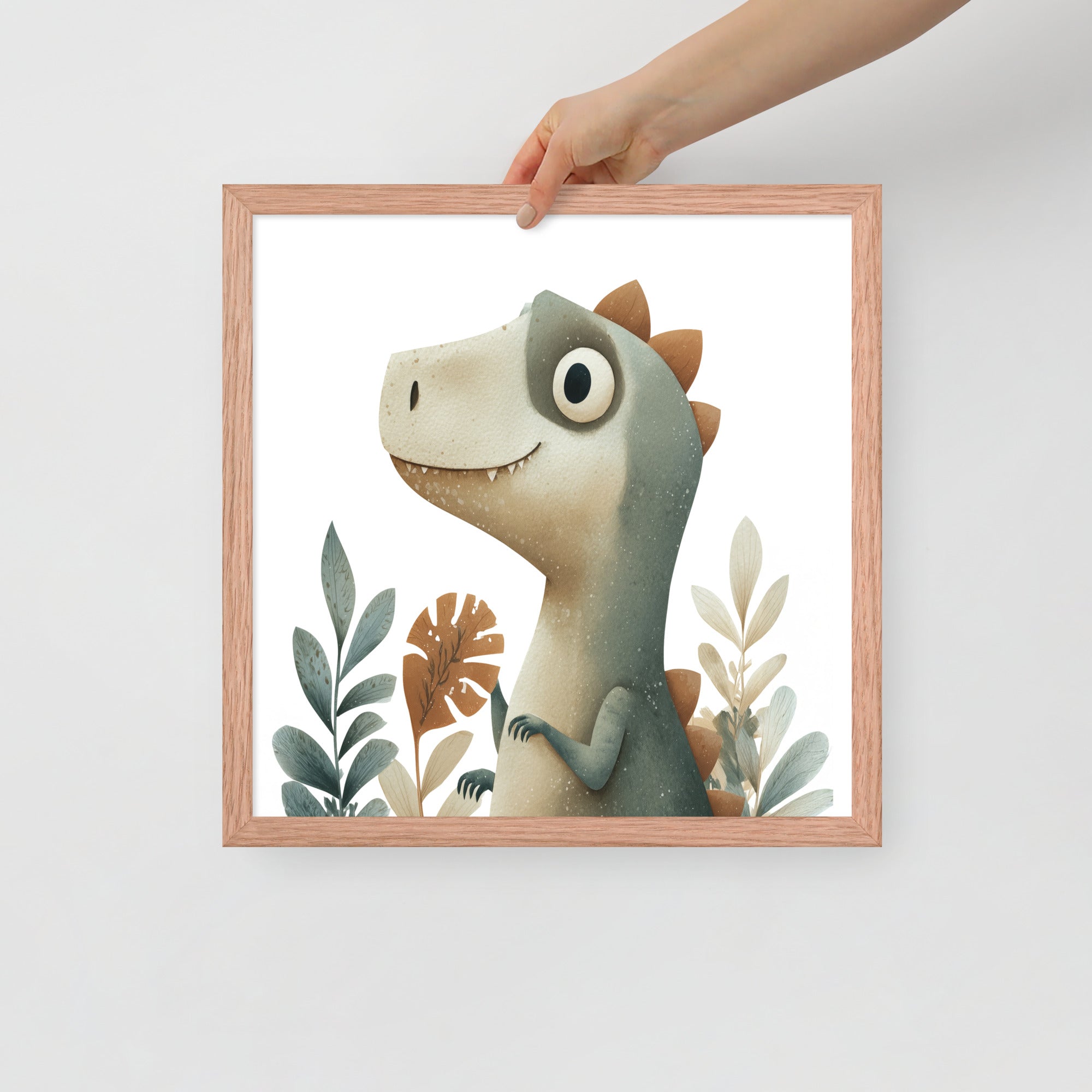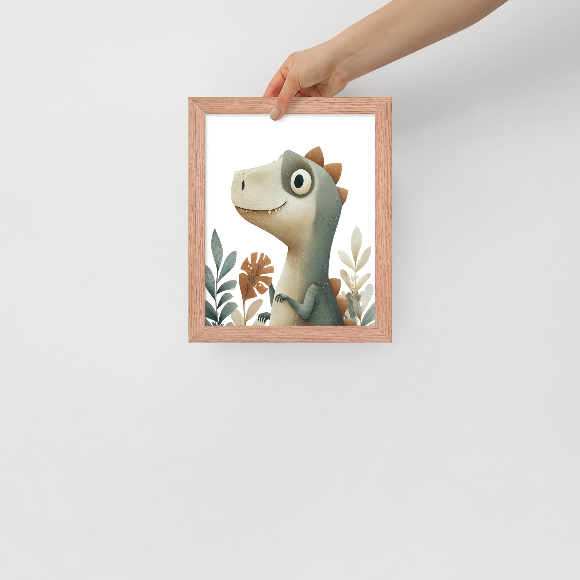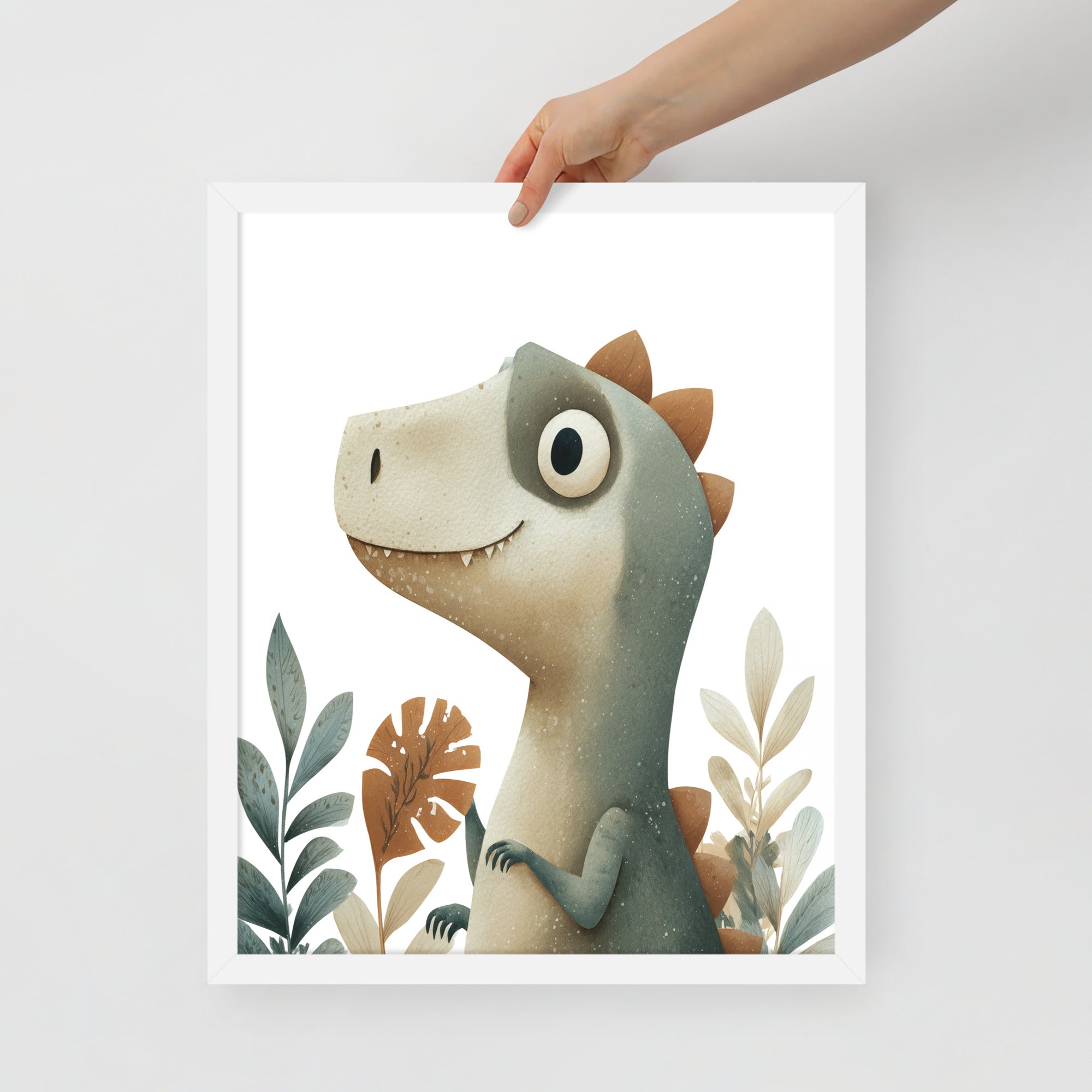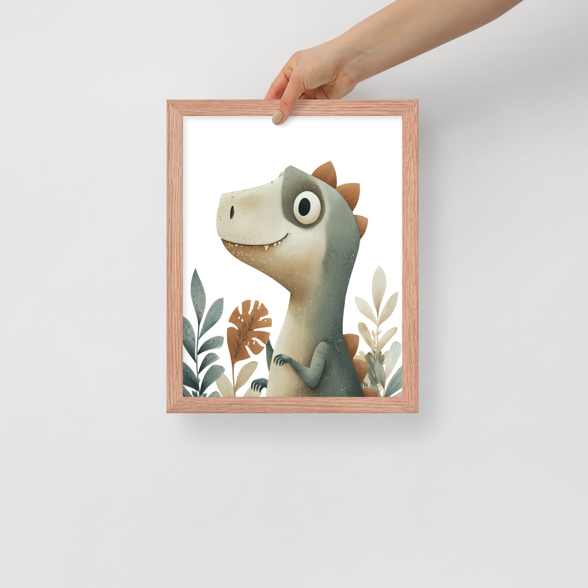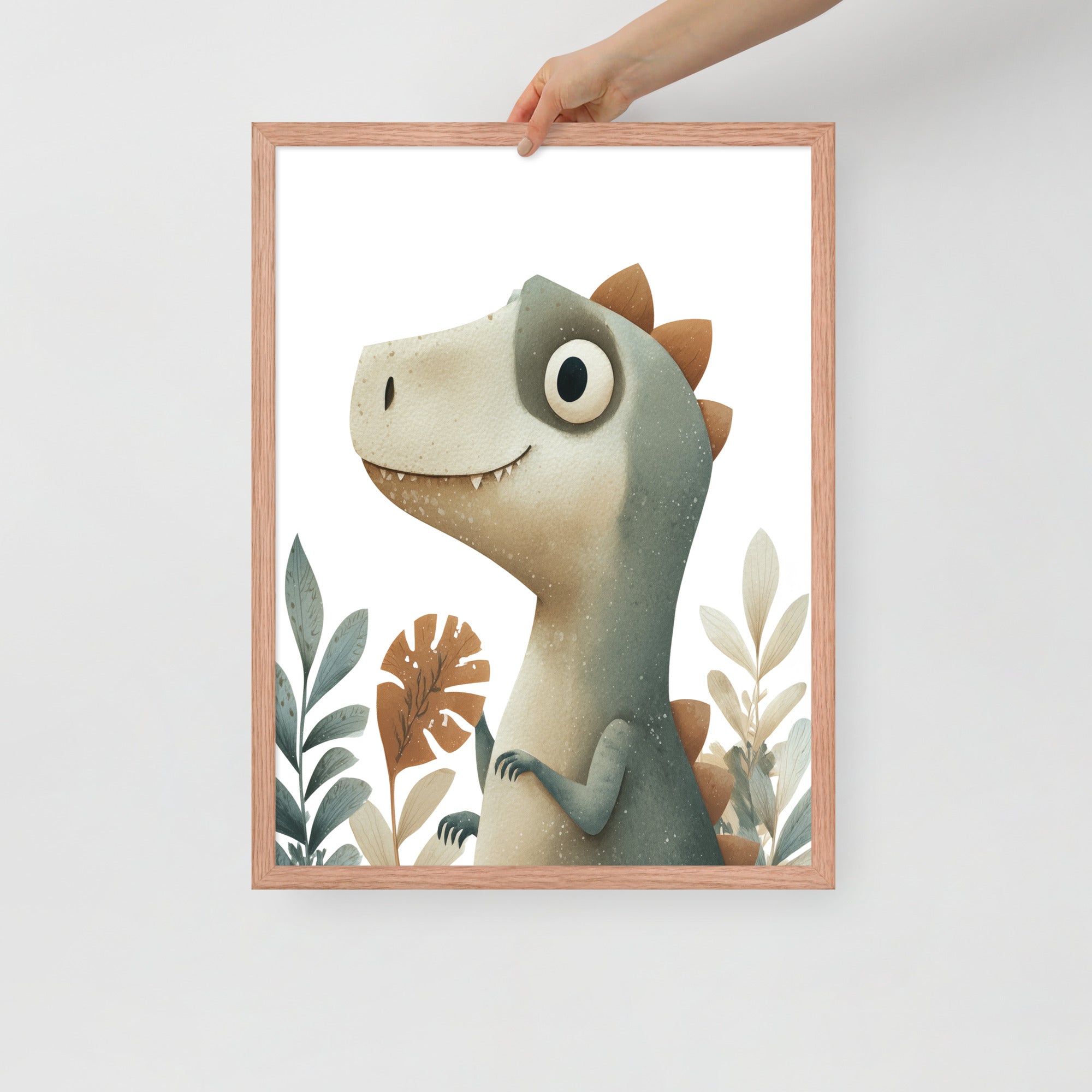 Dino Rex Friend - Pastel Storybook Series - Framed Nursery Wall Art