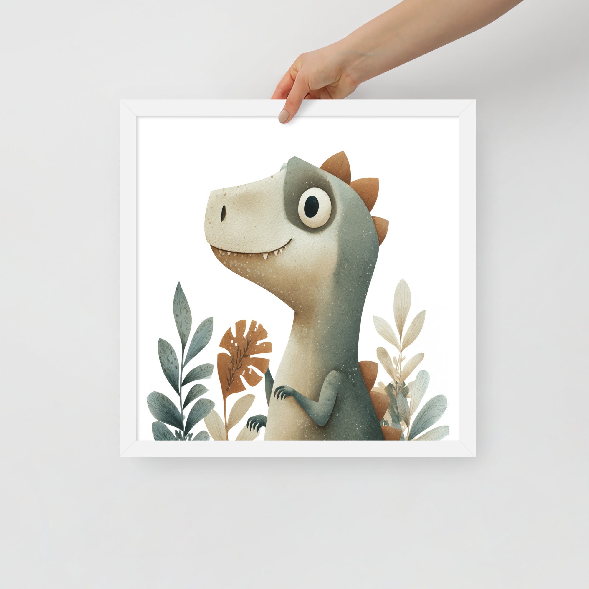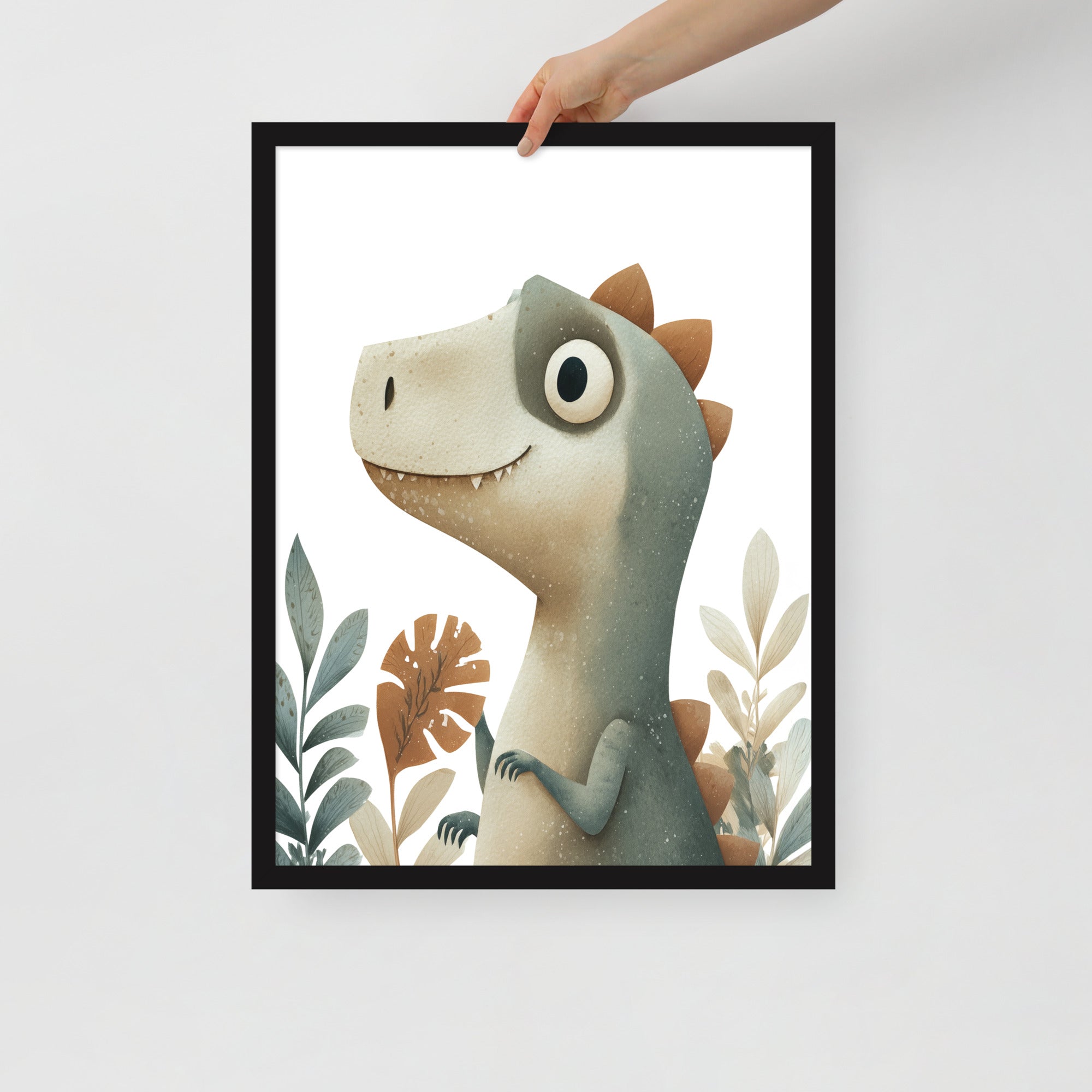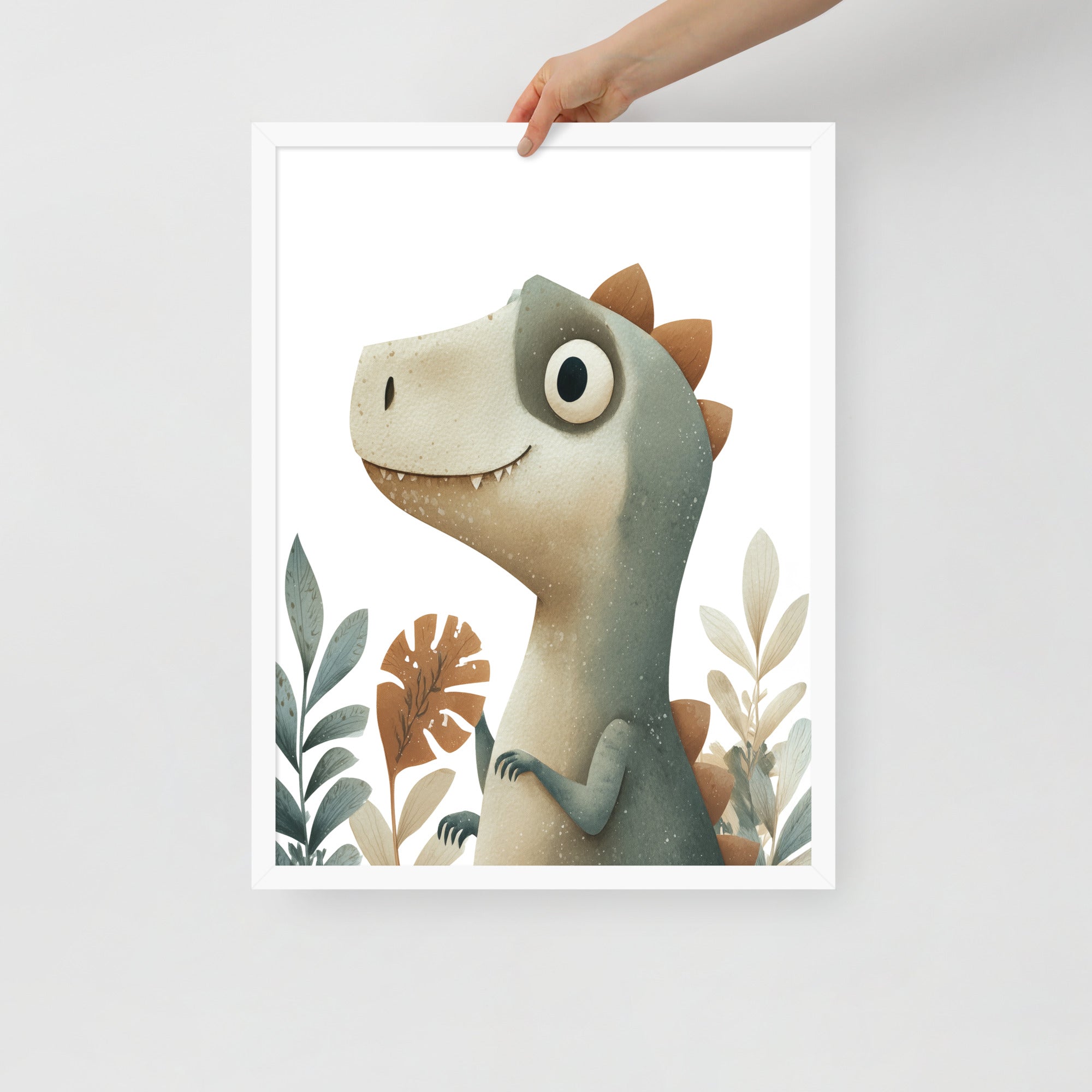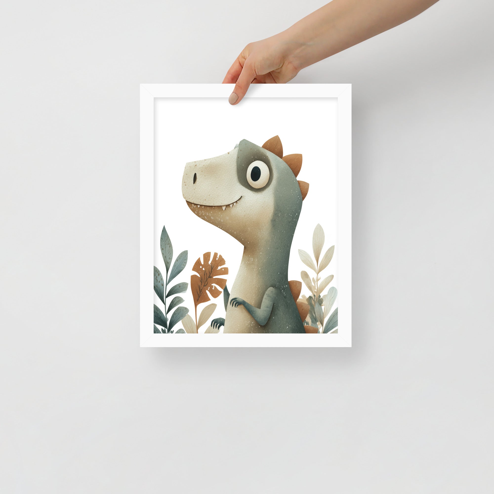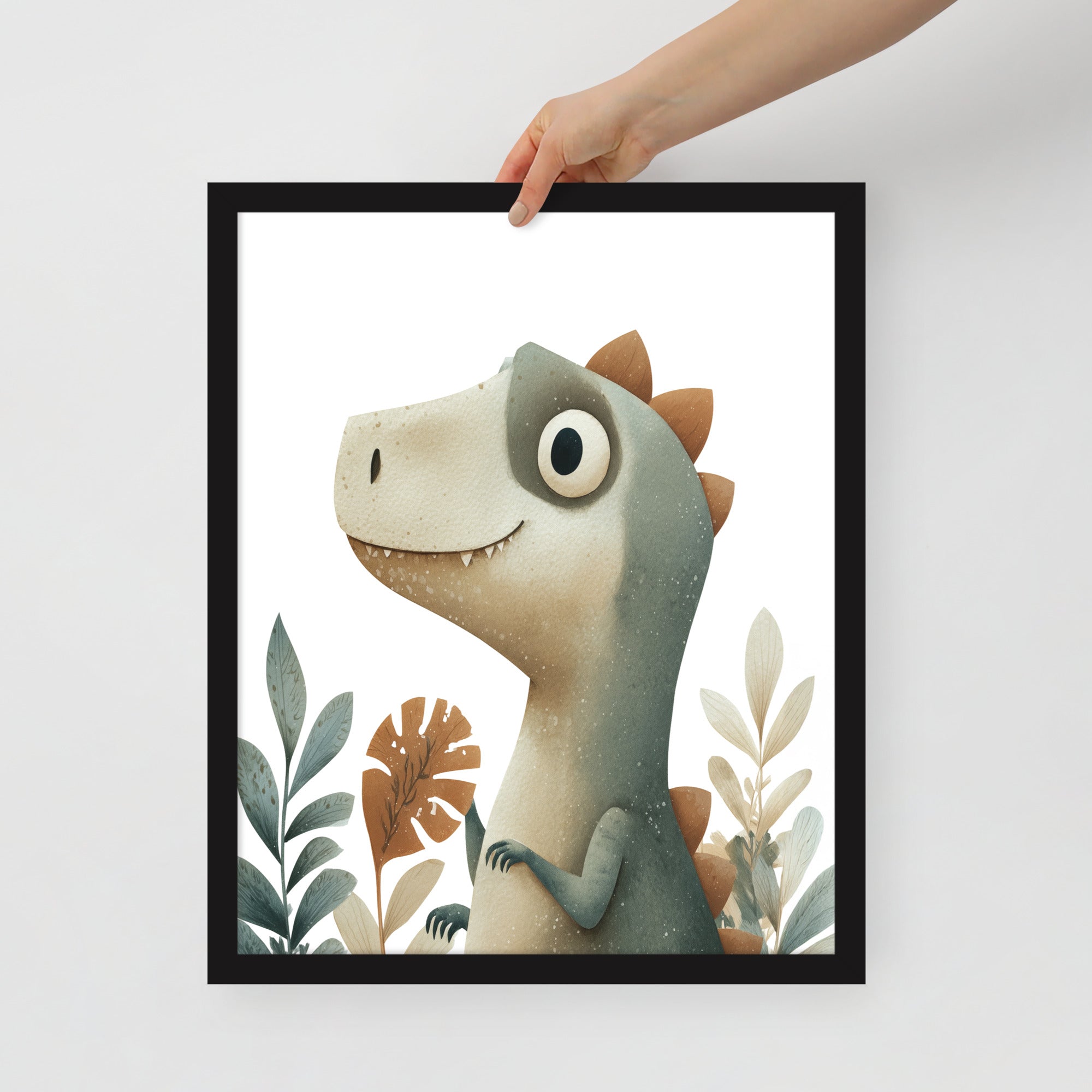 Dino Rex Friend - Pastel Storybook Series - Framed Nursery Wall Art