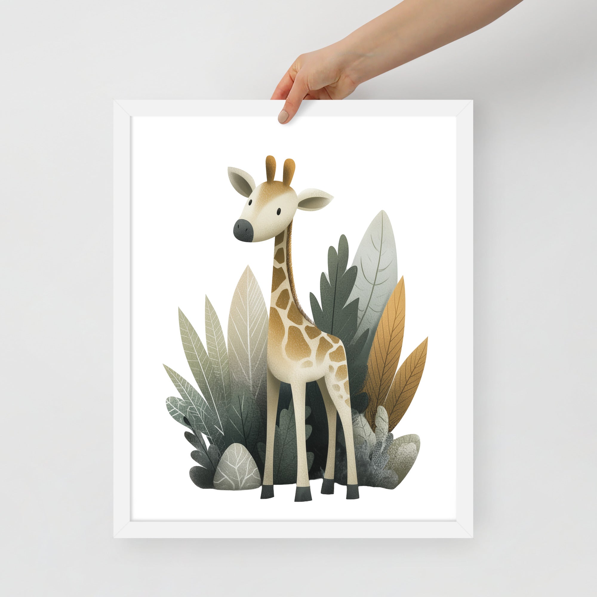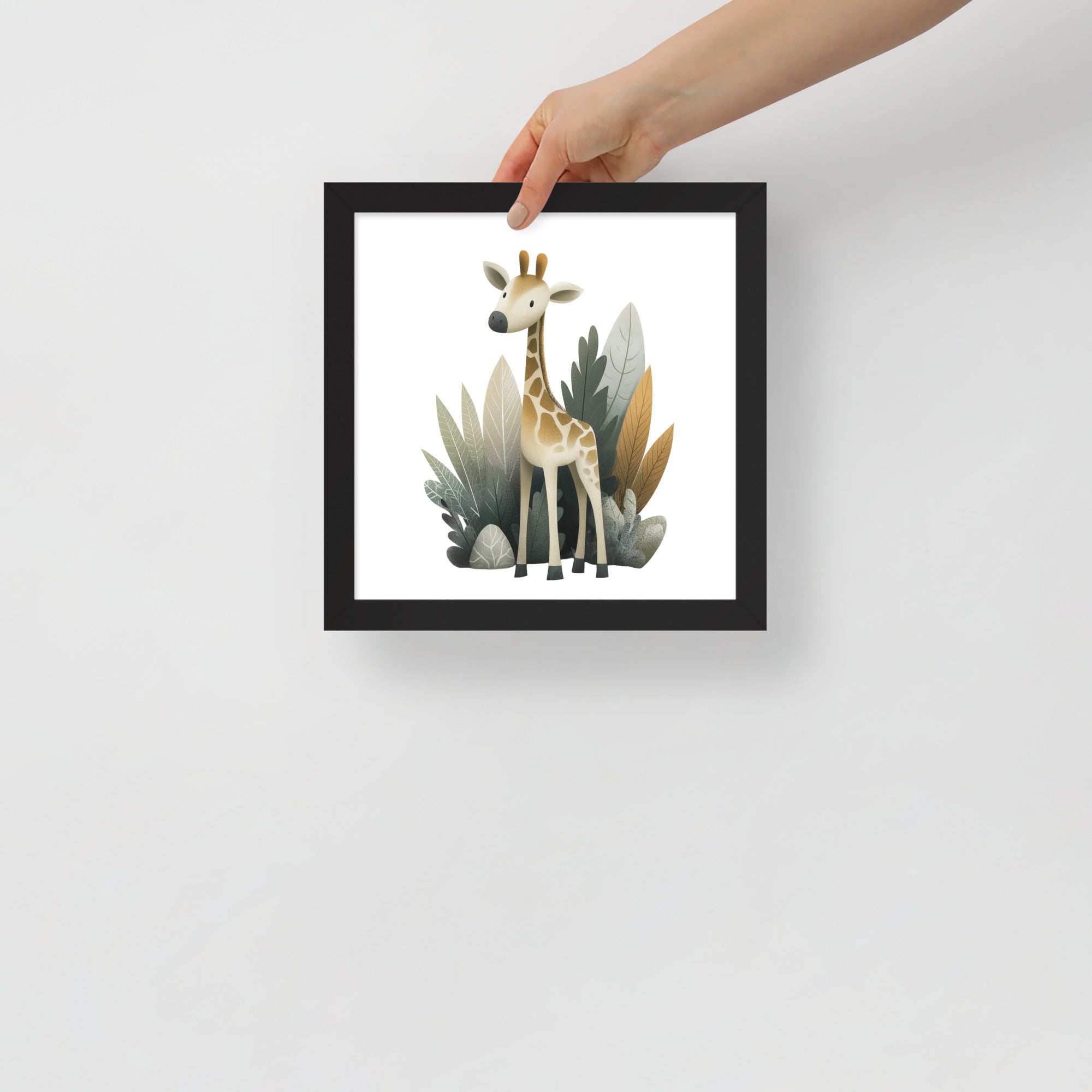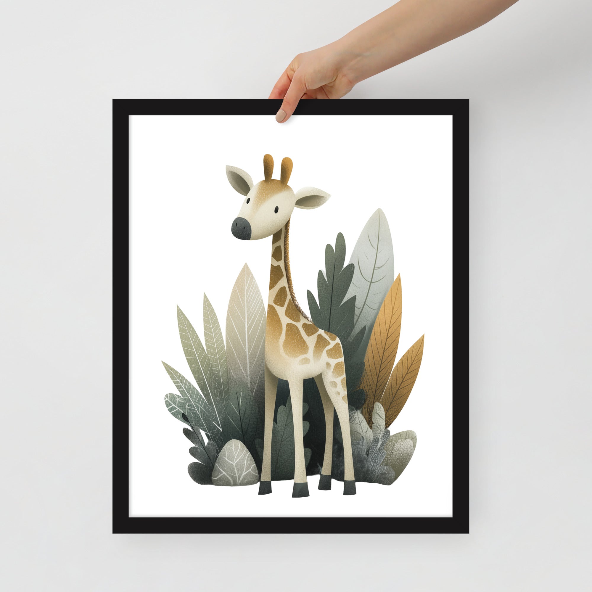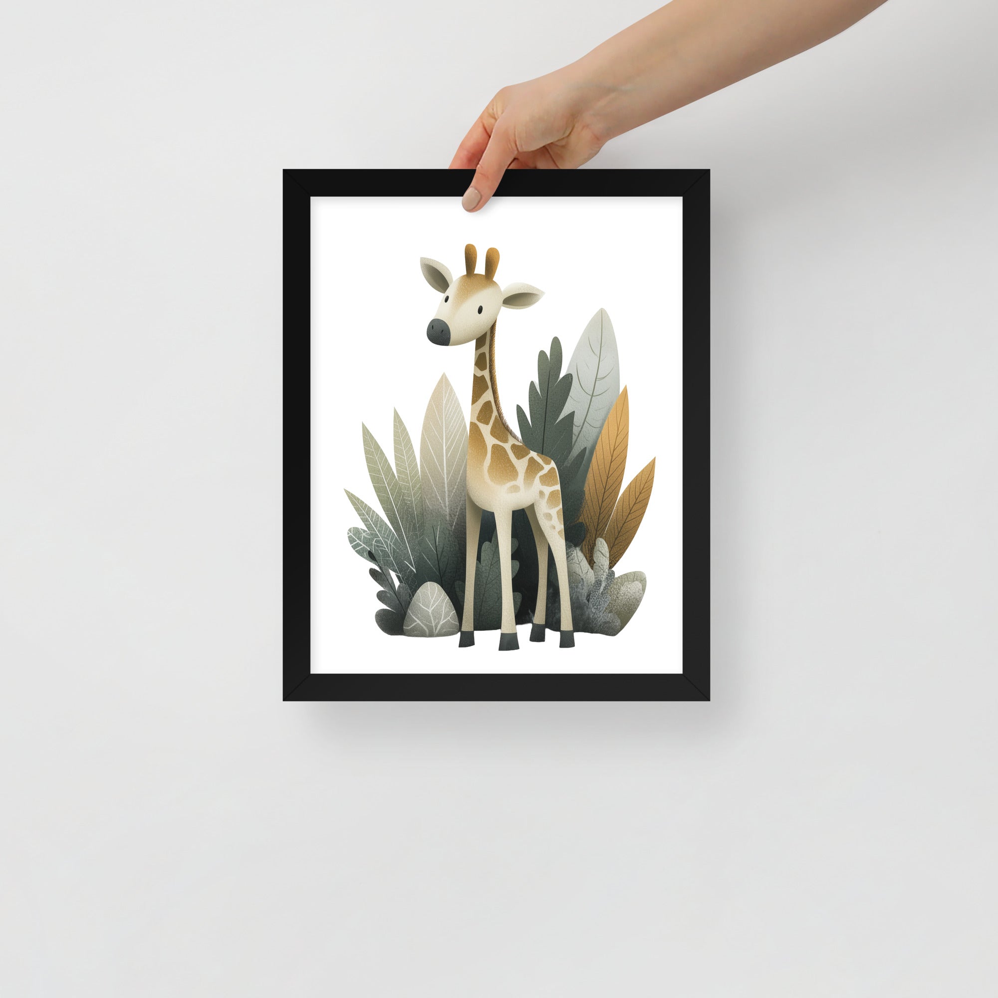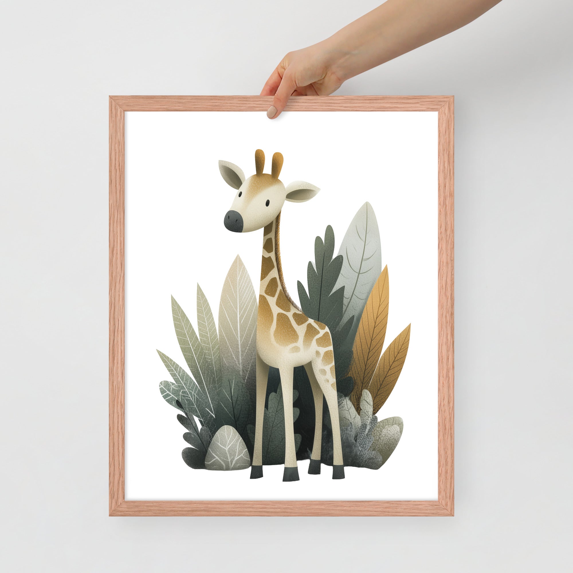 Exploring Baby Giraffe - Soft Storybook Series - Framed Nursery Wall Art