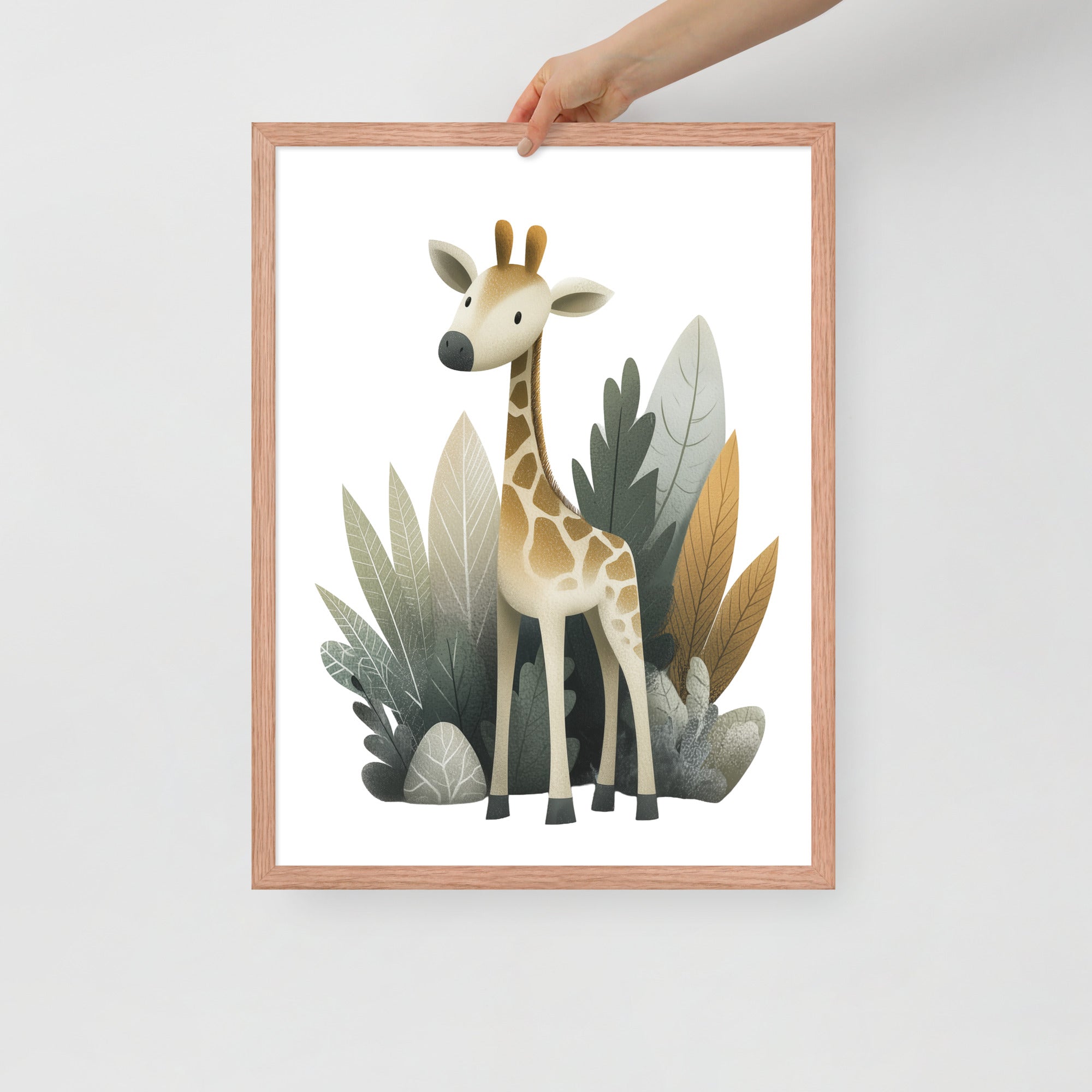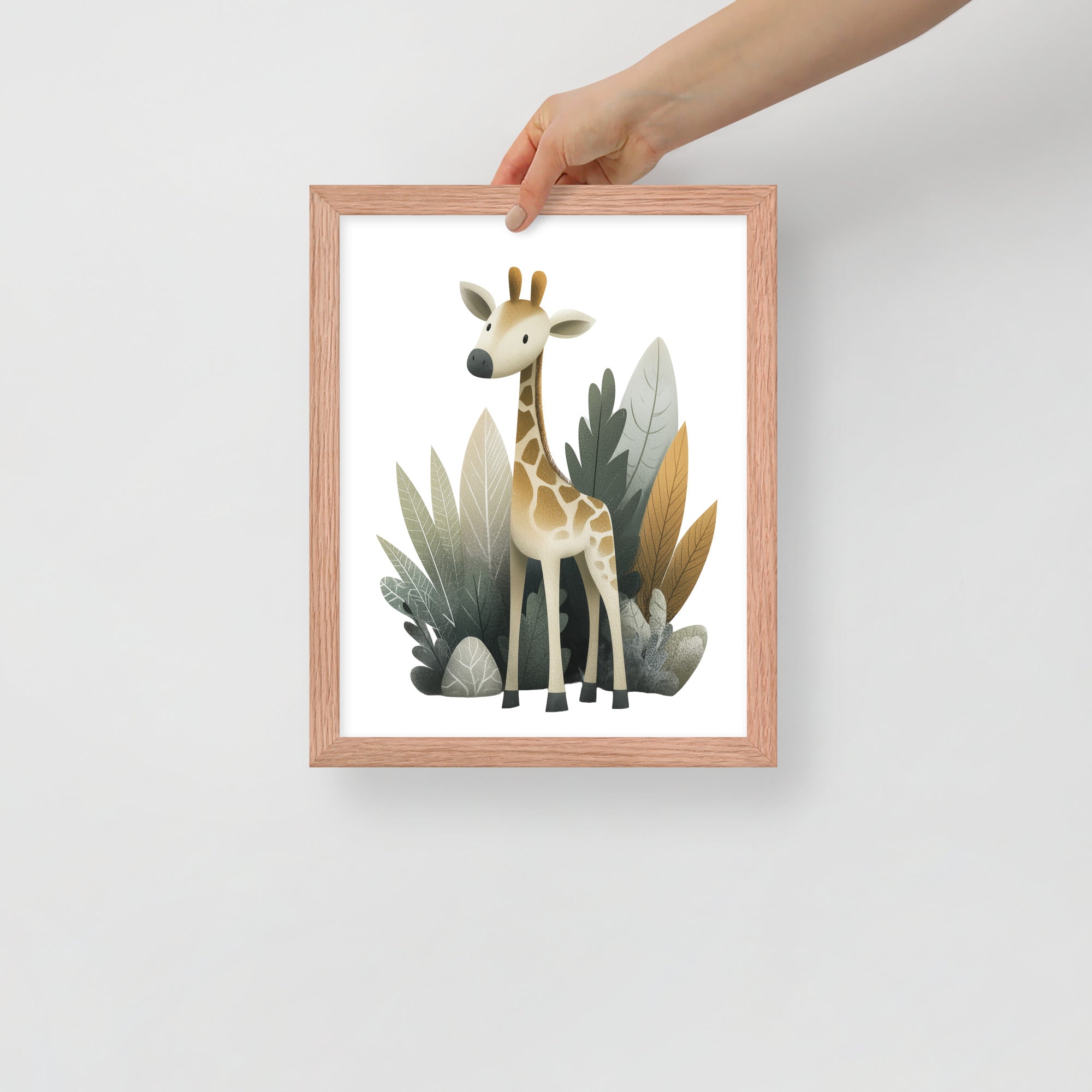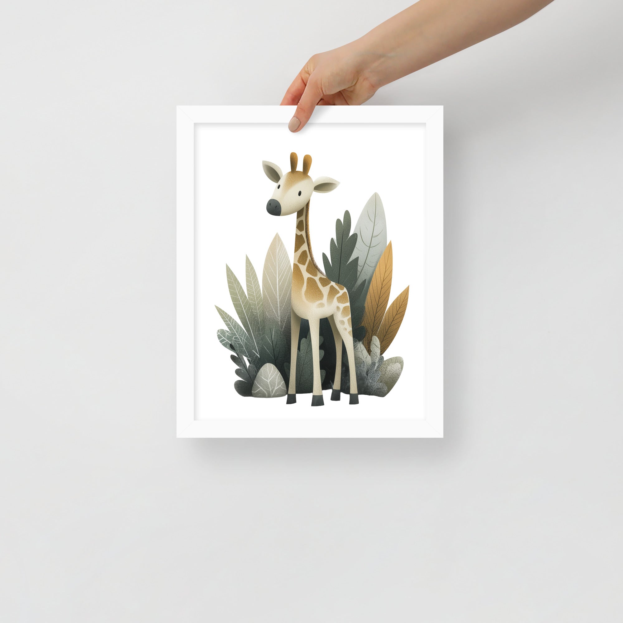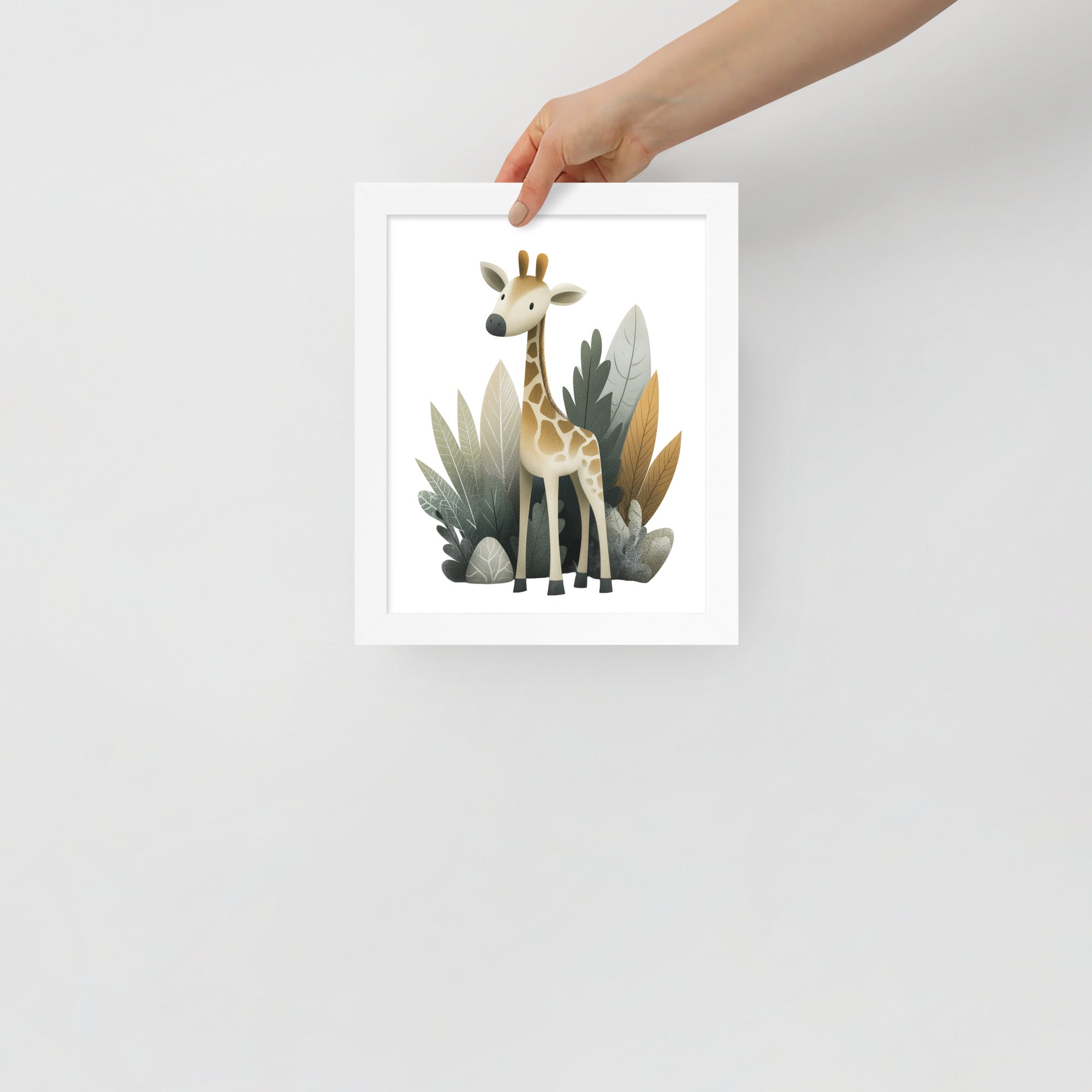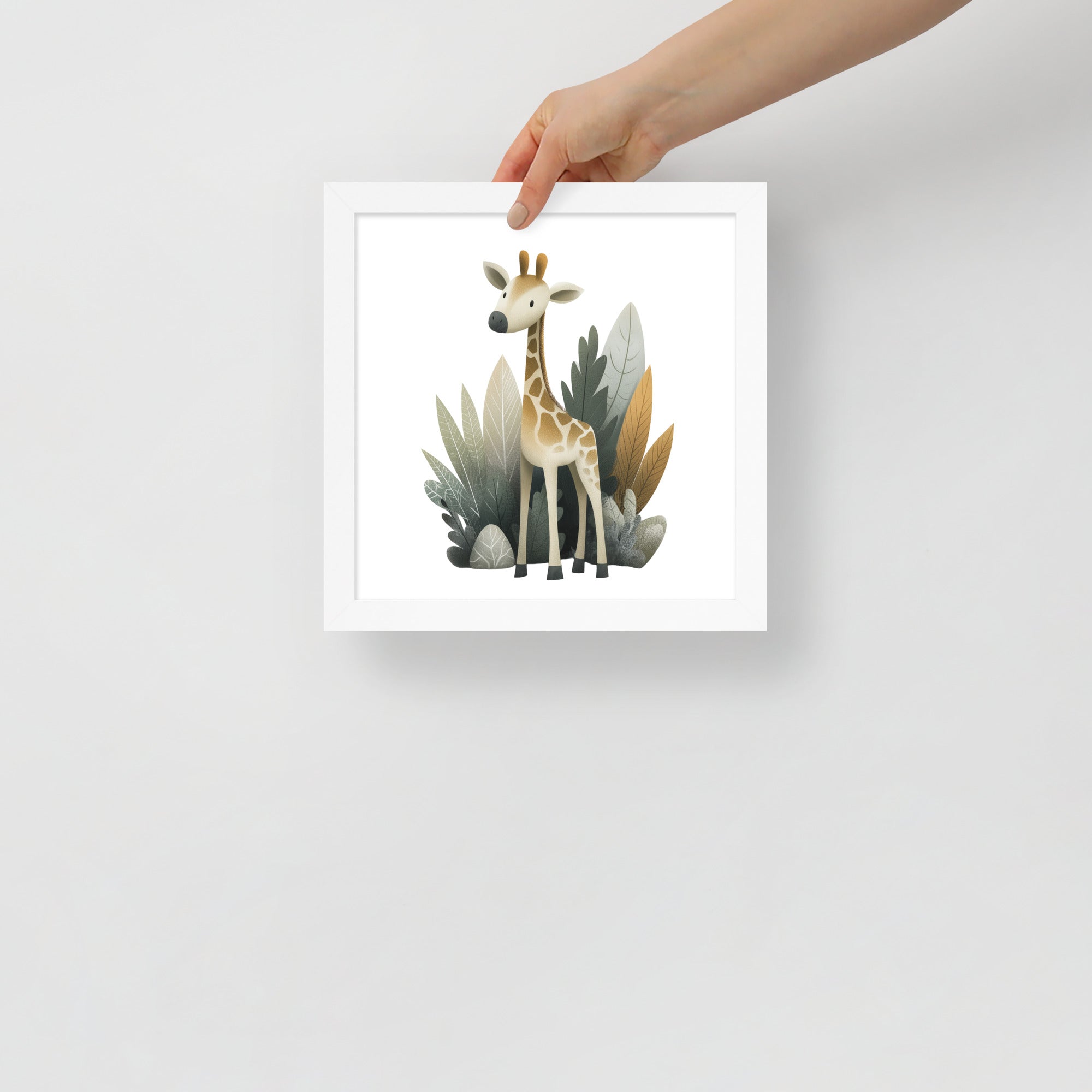 Exploring Baby Giraffe - Soft Storybook Series - Framed Nursery Wall Art