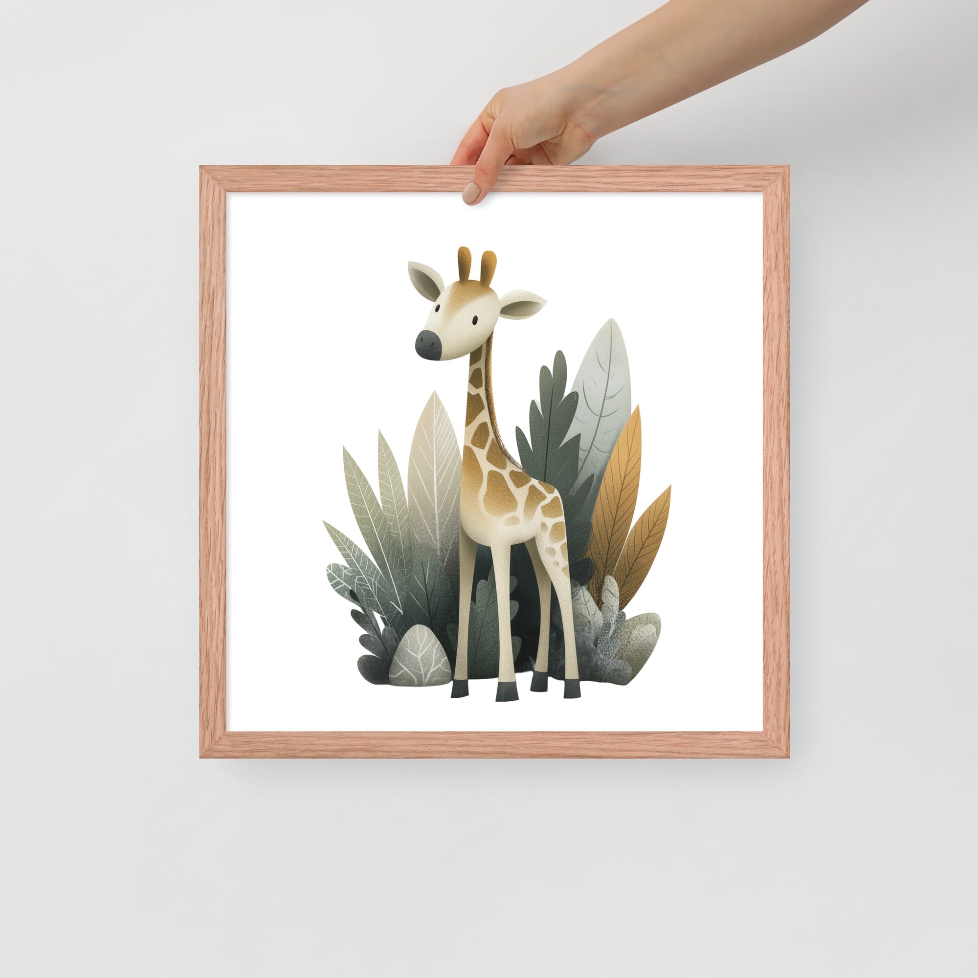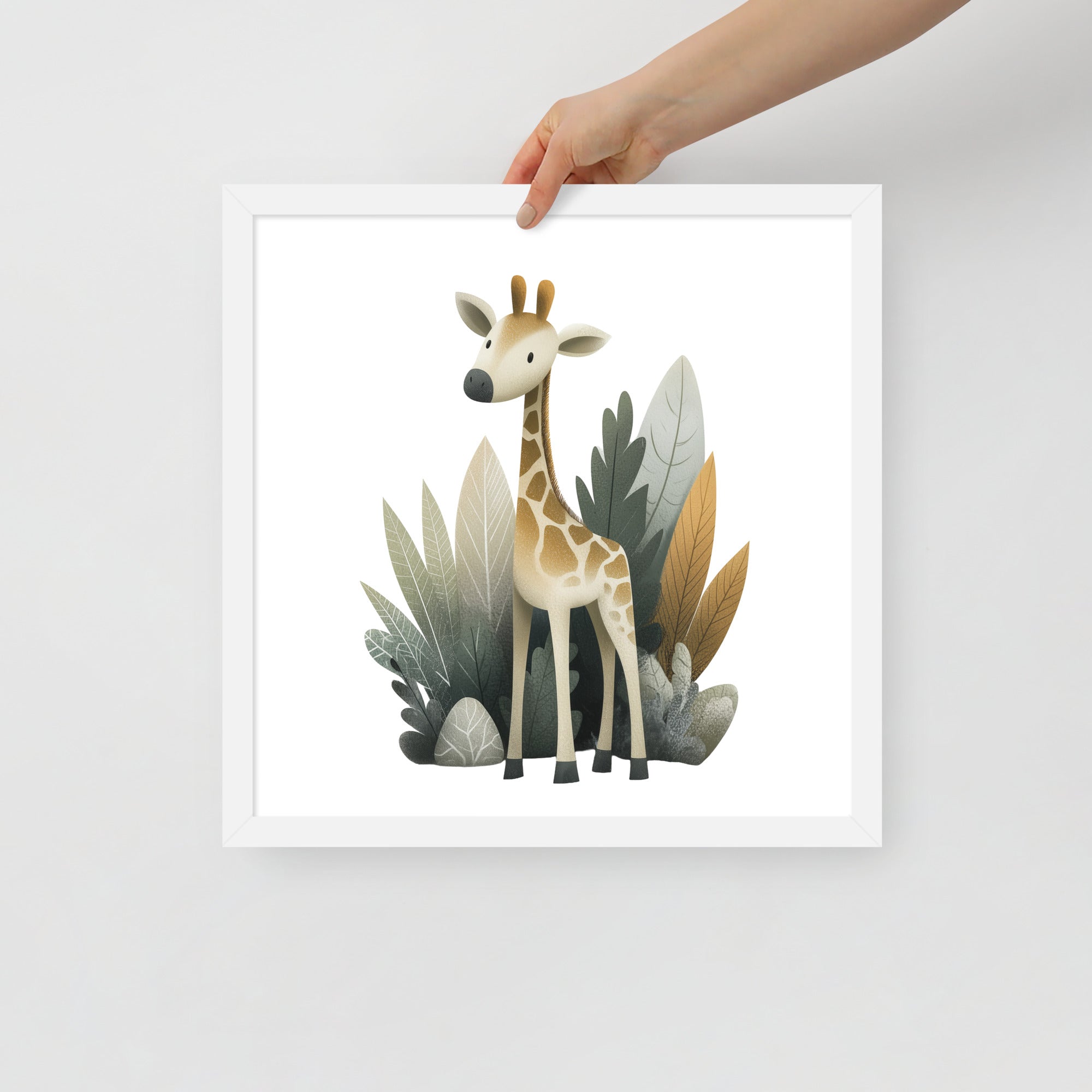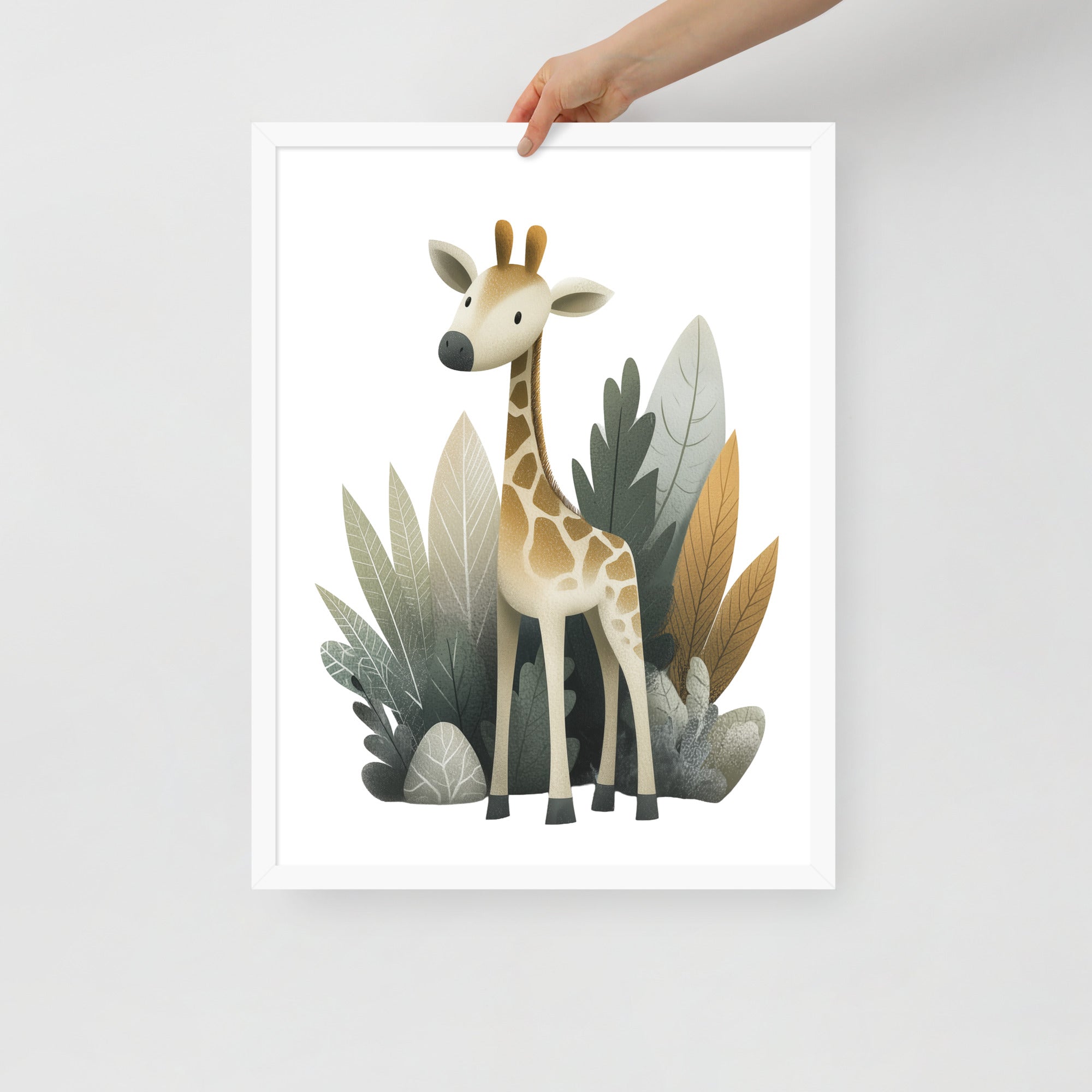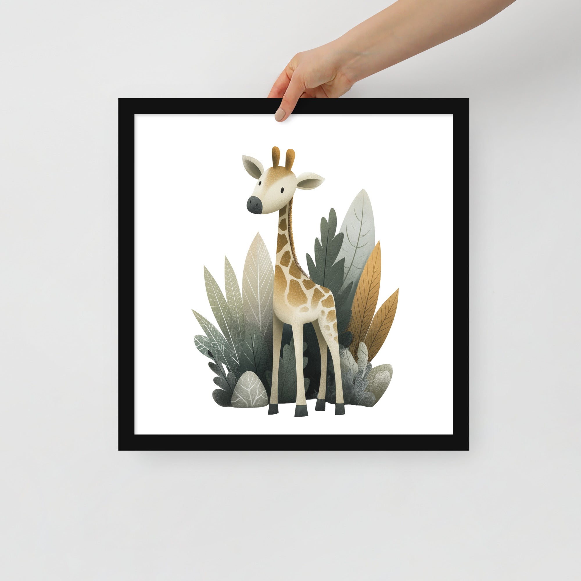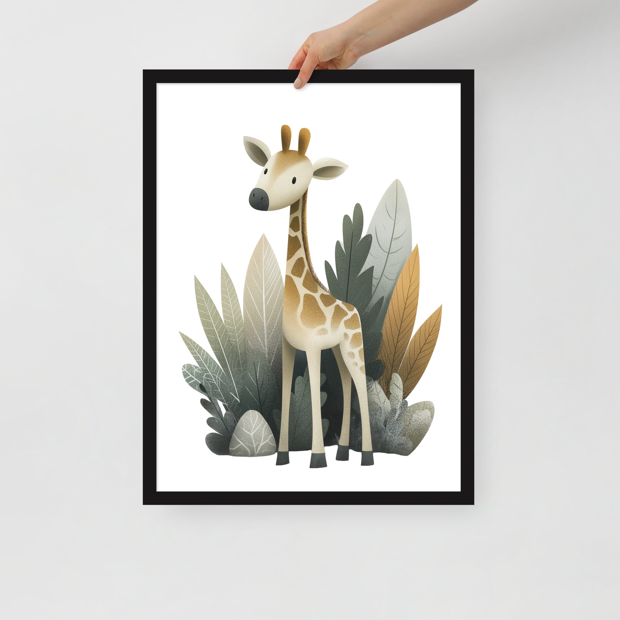 Exploring Baby Giraffe - Soft Storybook Series - Framed Nursery Wall Art