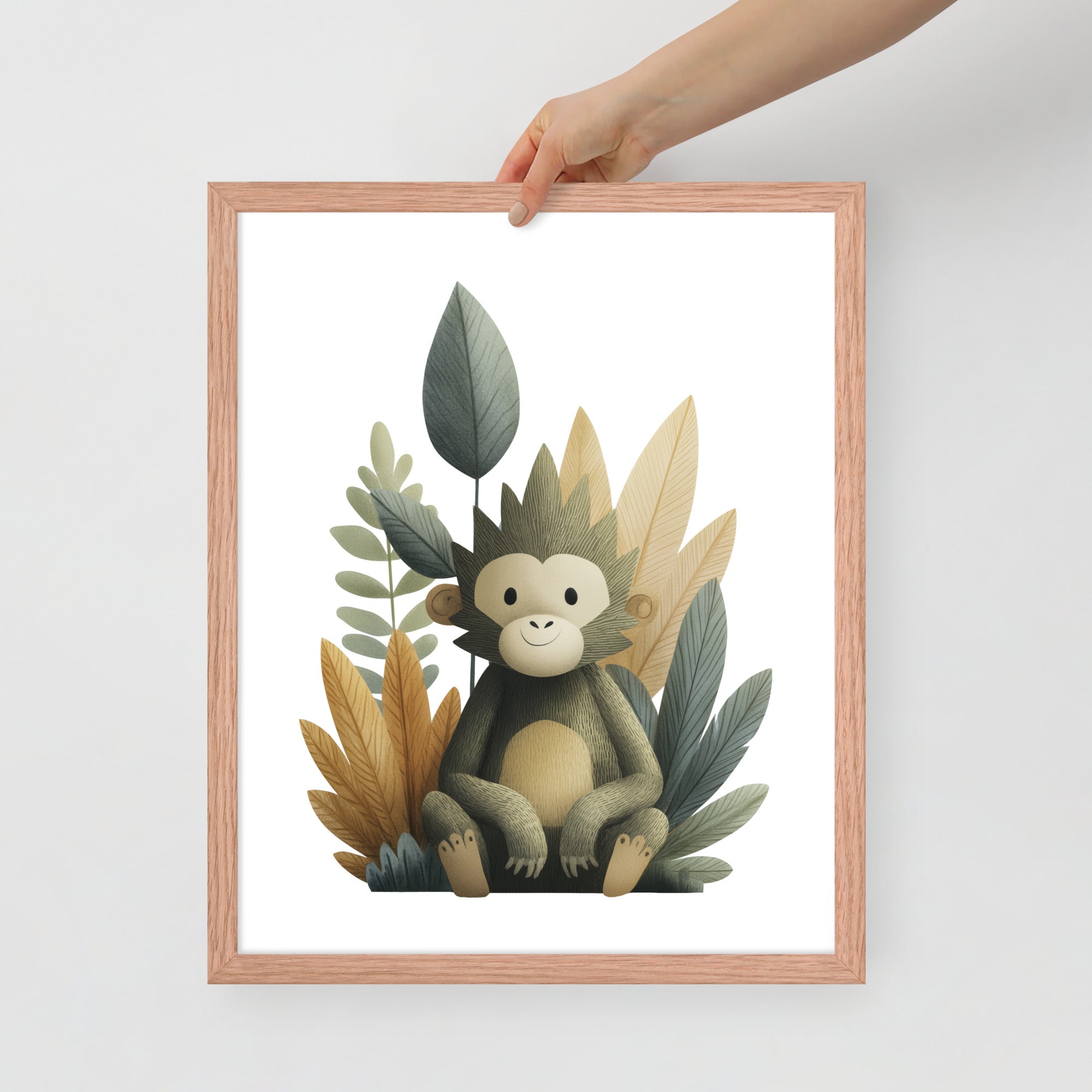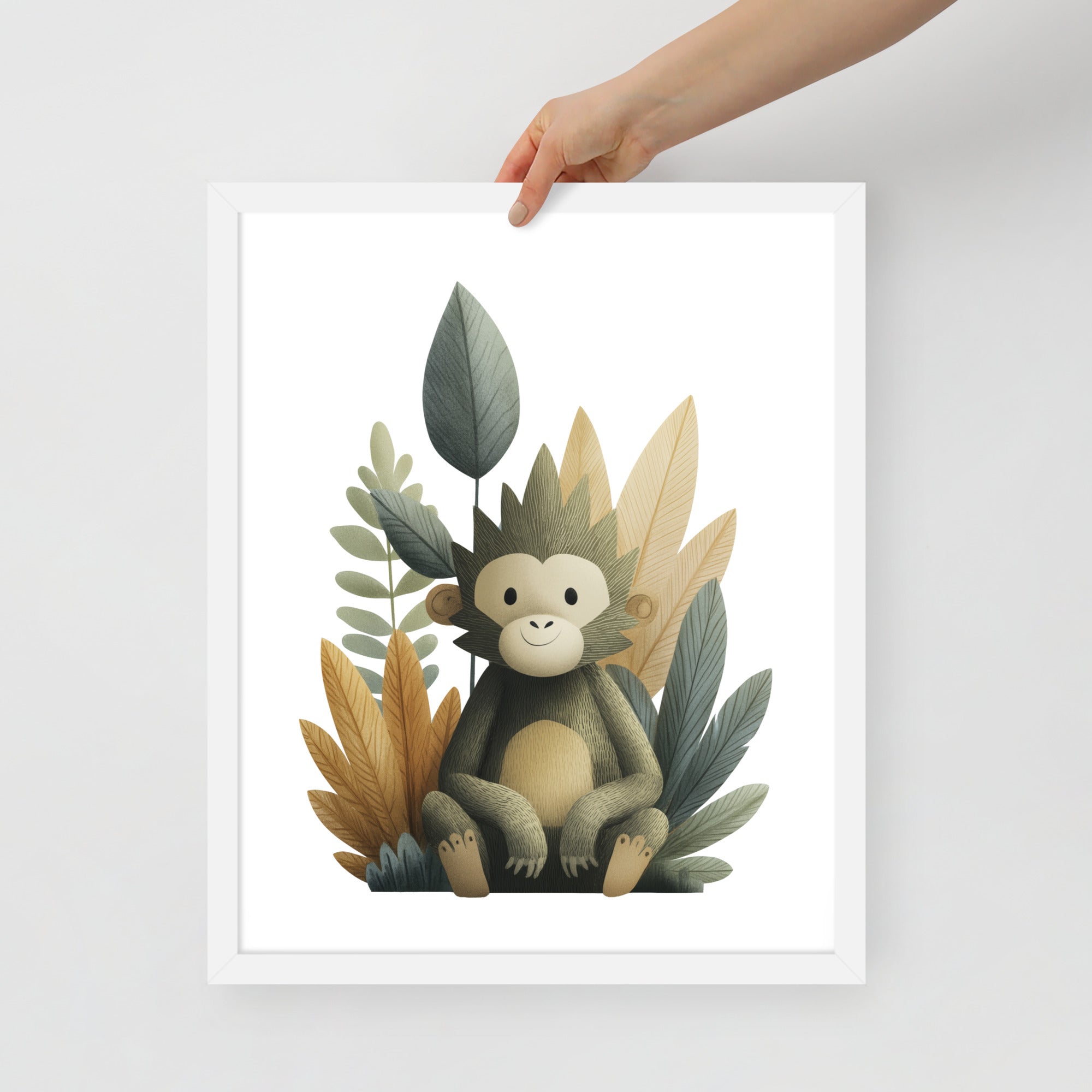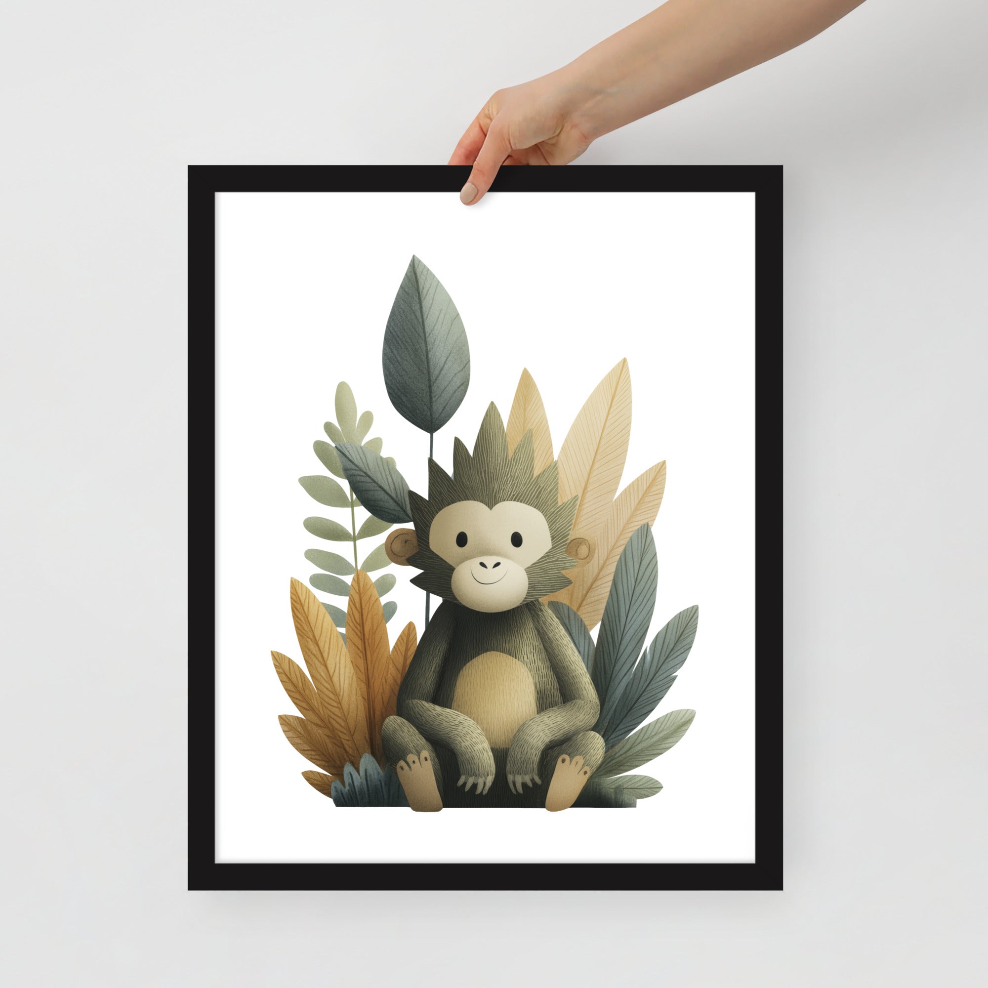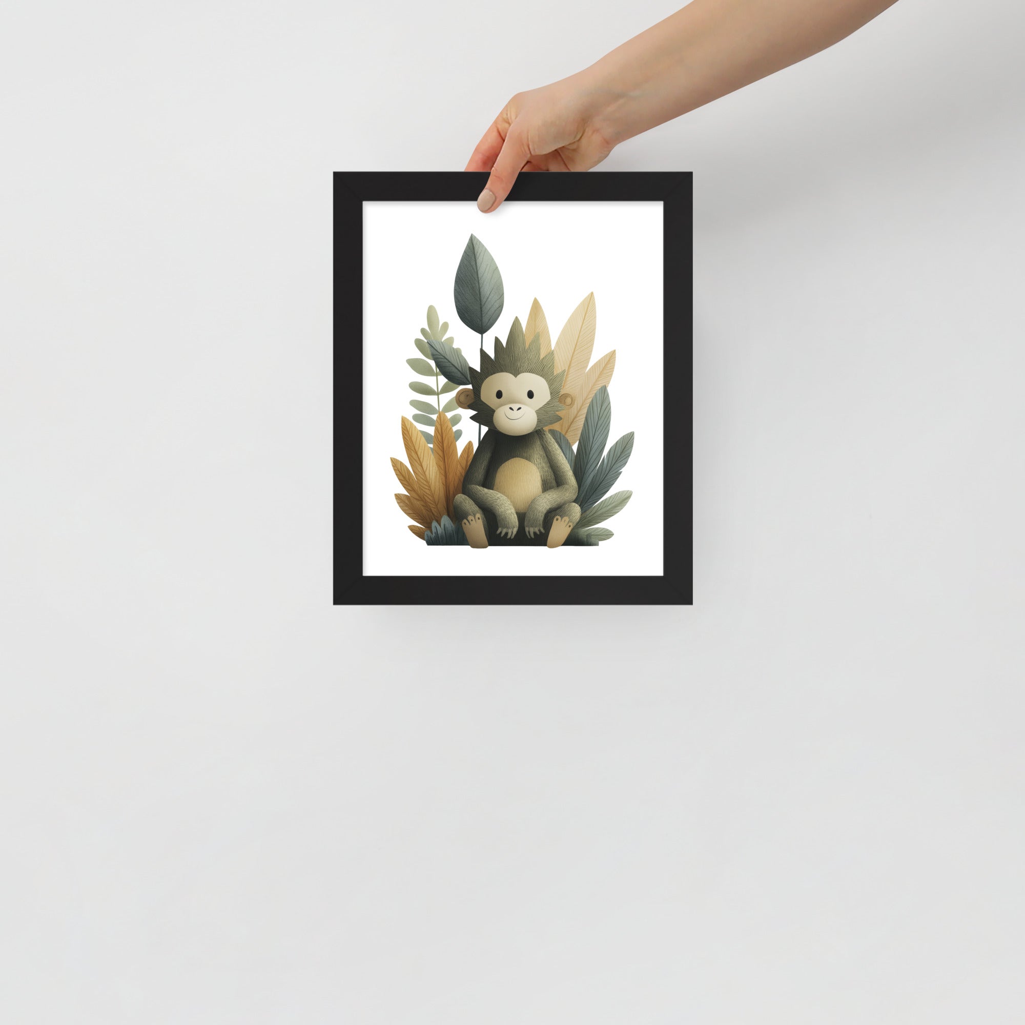 Gentle Baby Monkey - Soft Storybook Series - Framed Nursery Wall Art