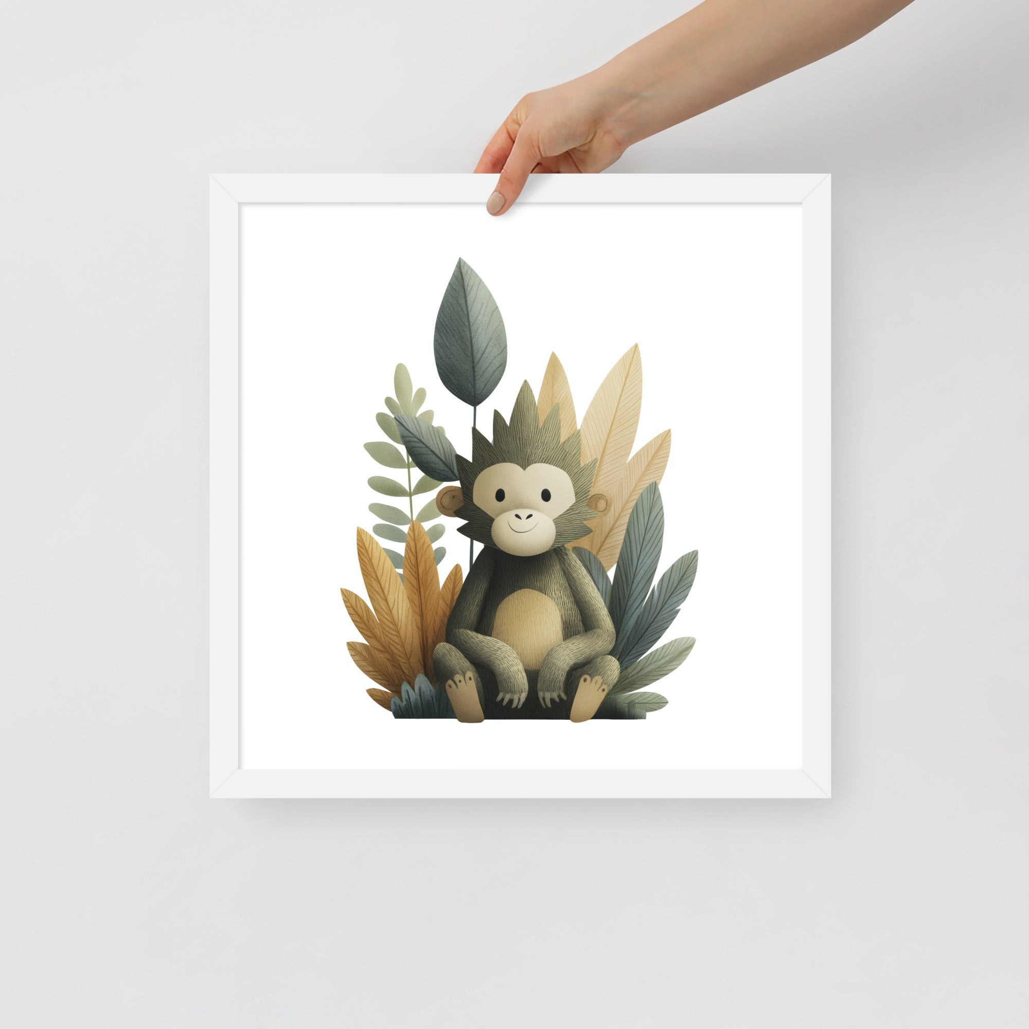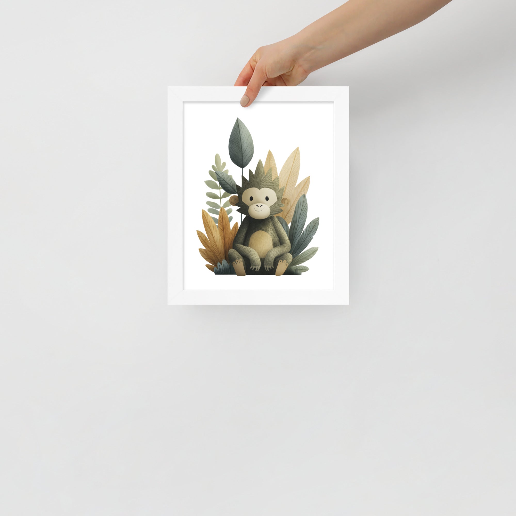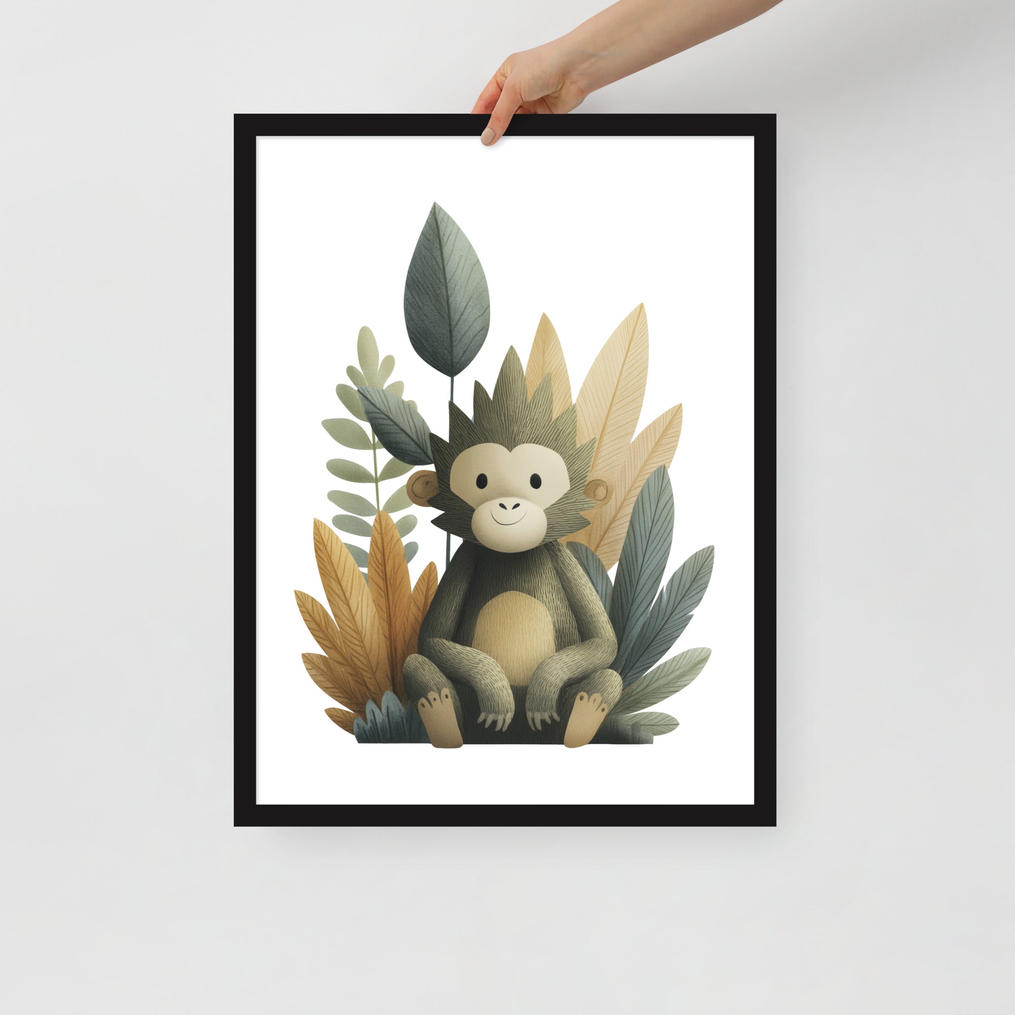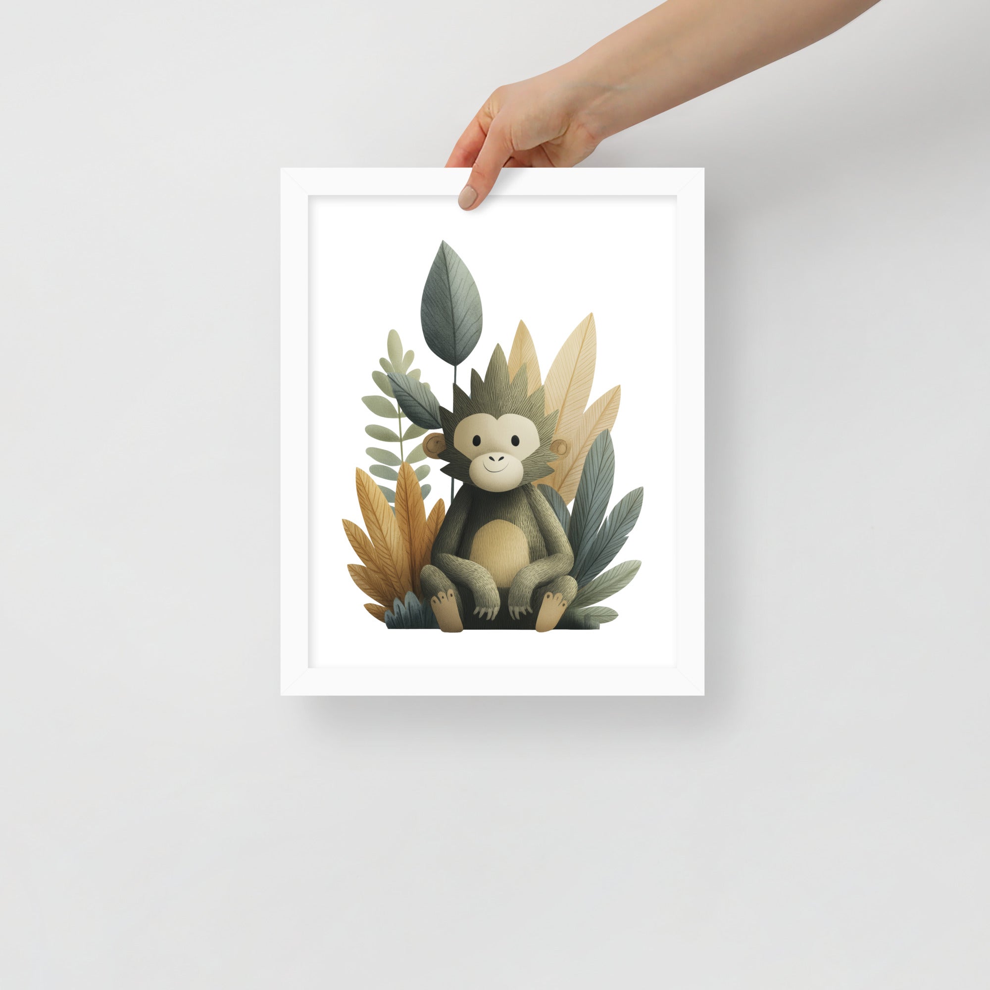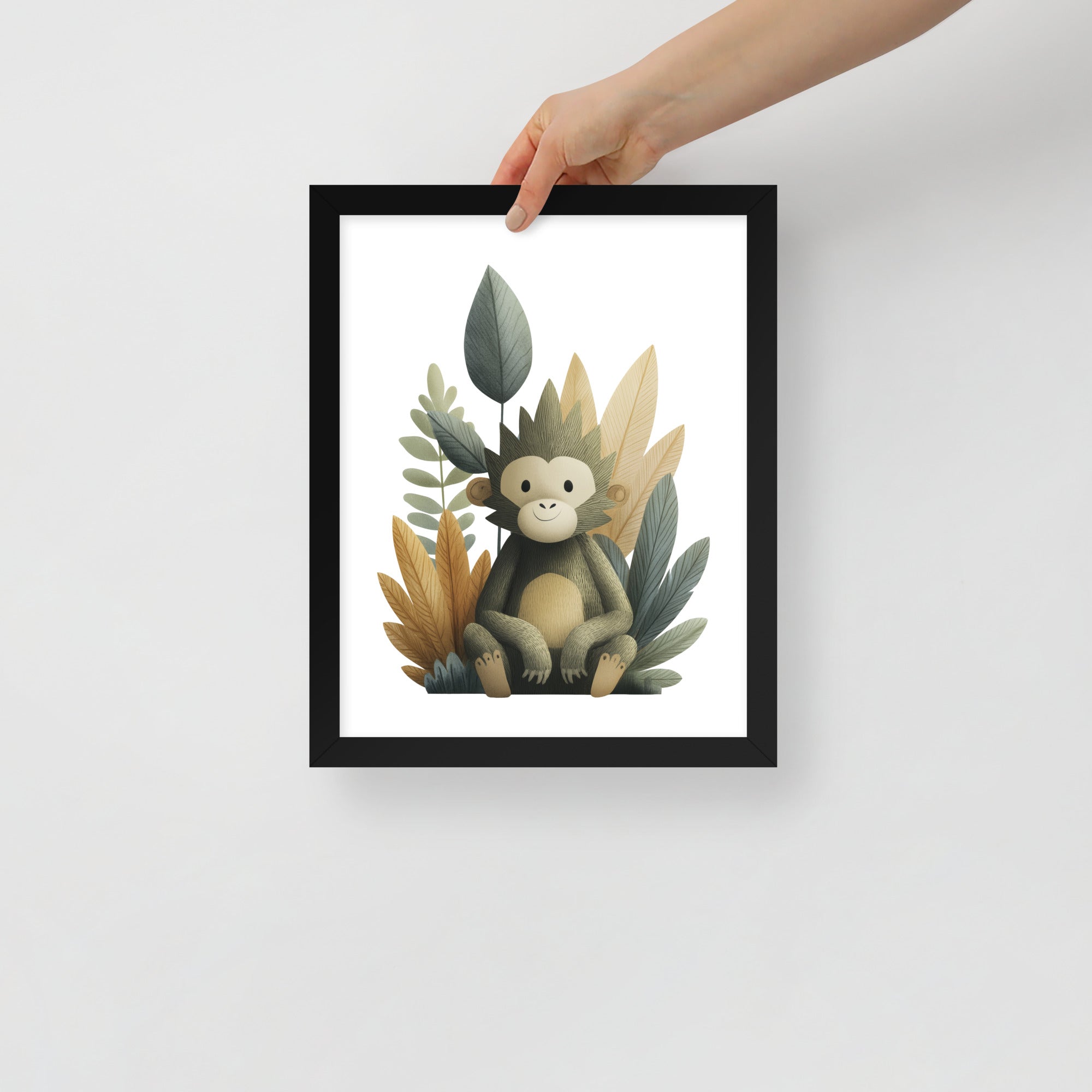 Gentle Baby Monkey - Soft Storybook Series - Framed Nursery Wall Art