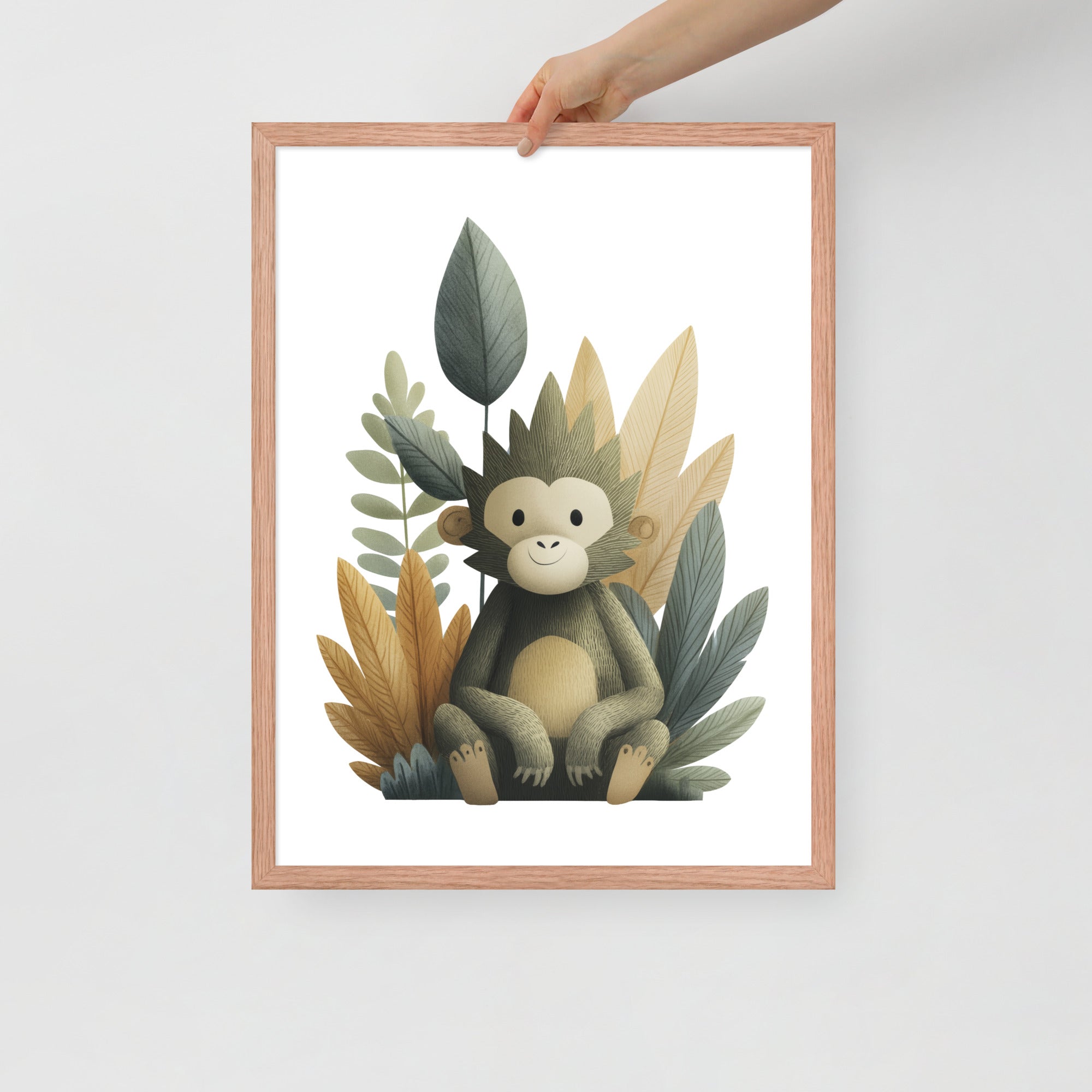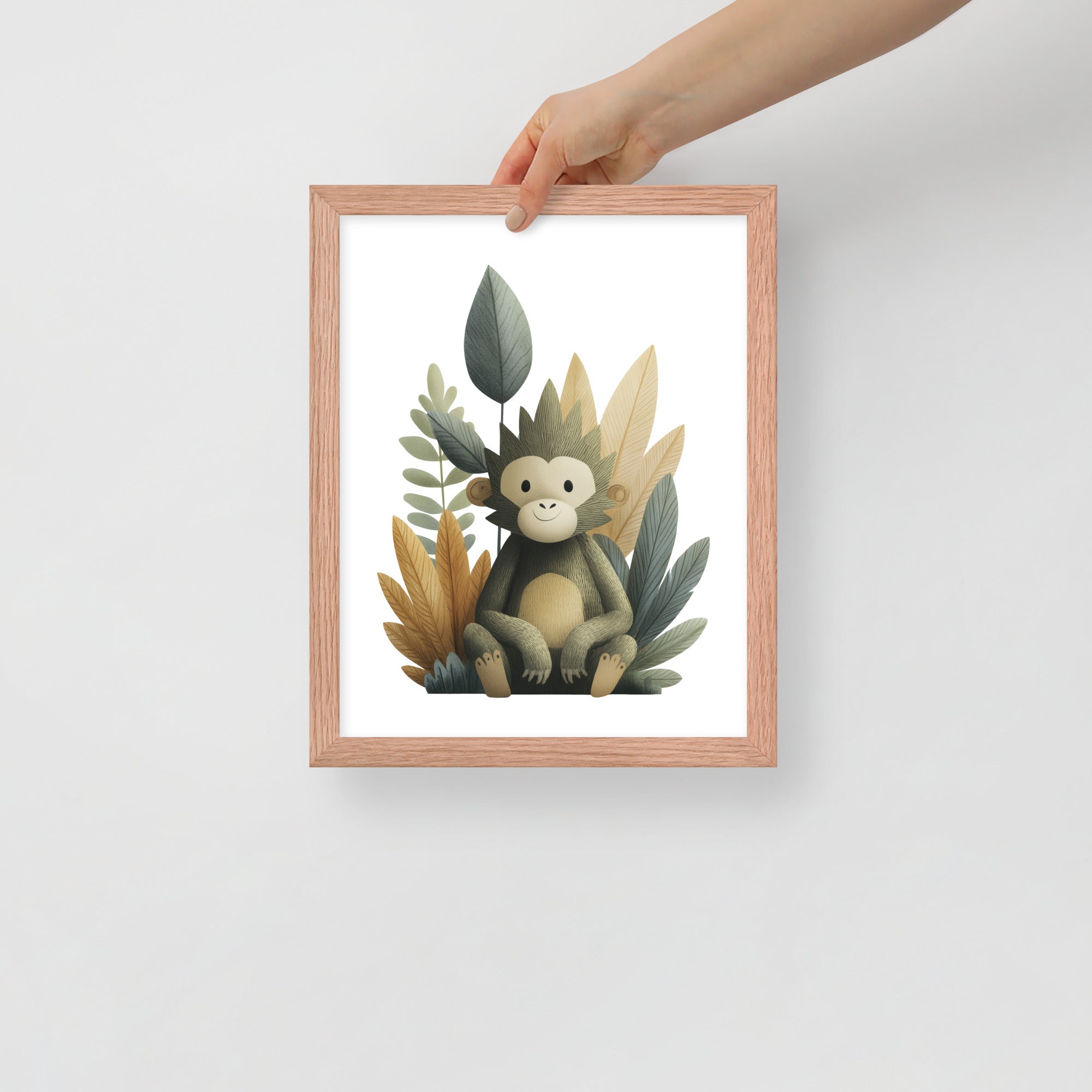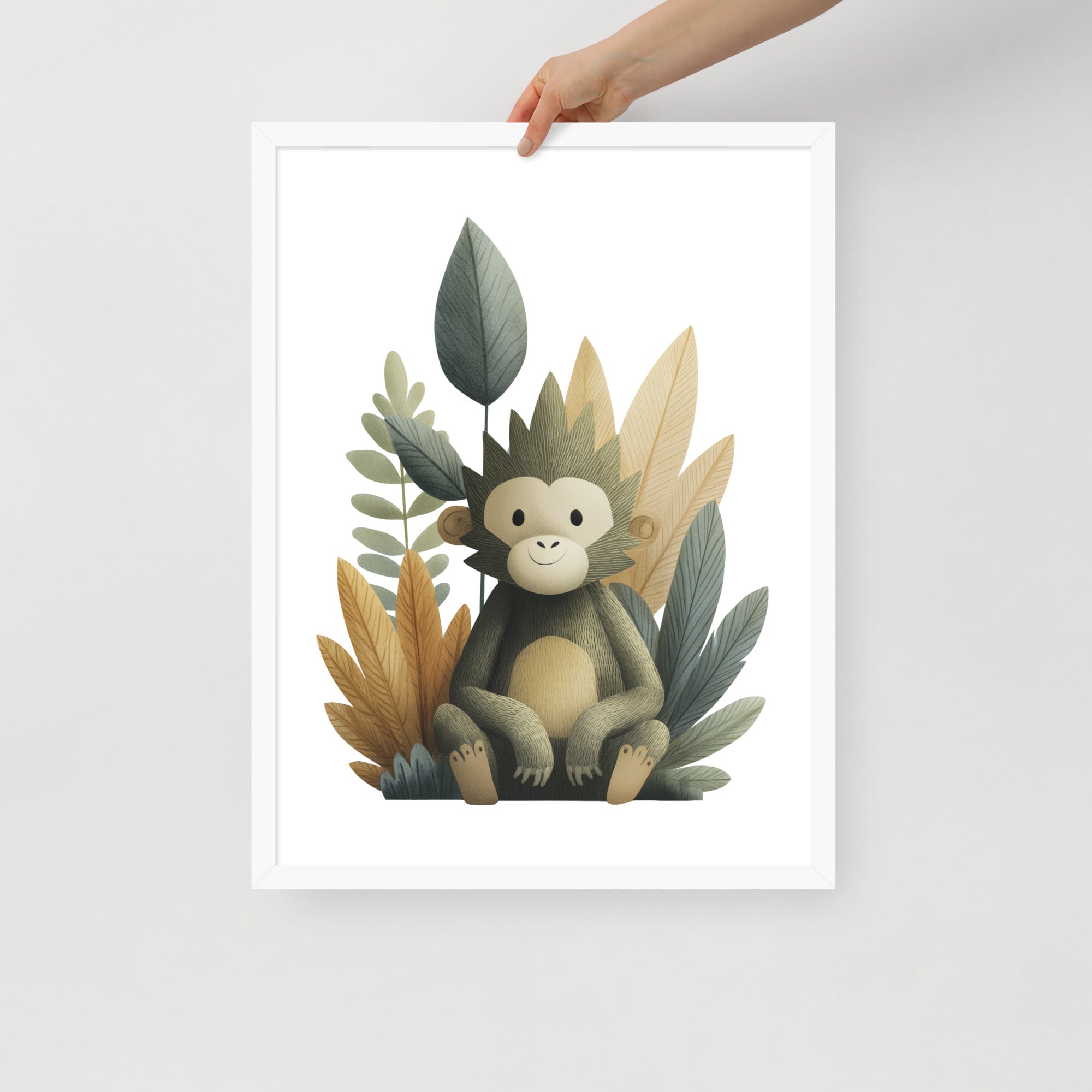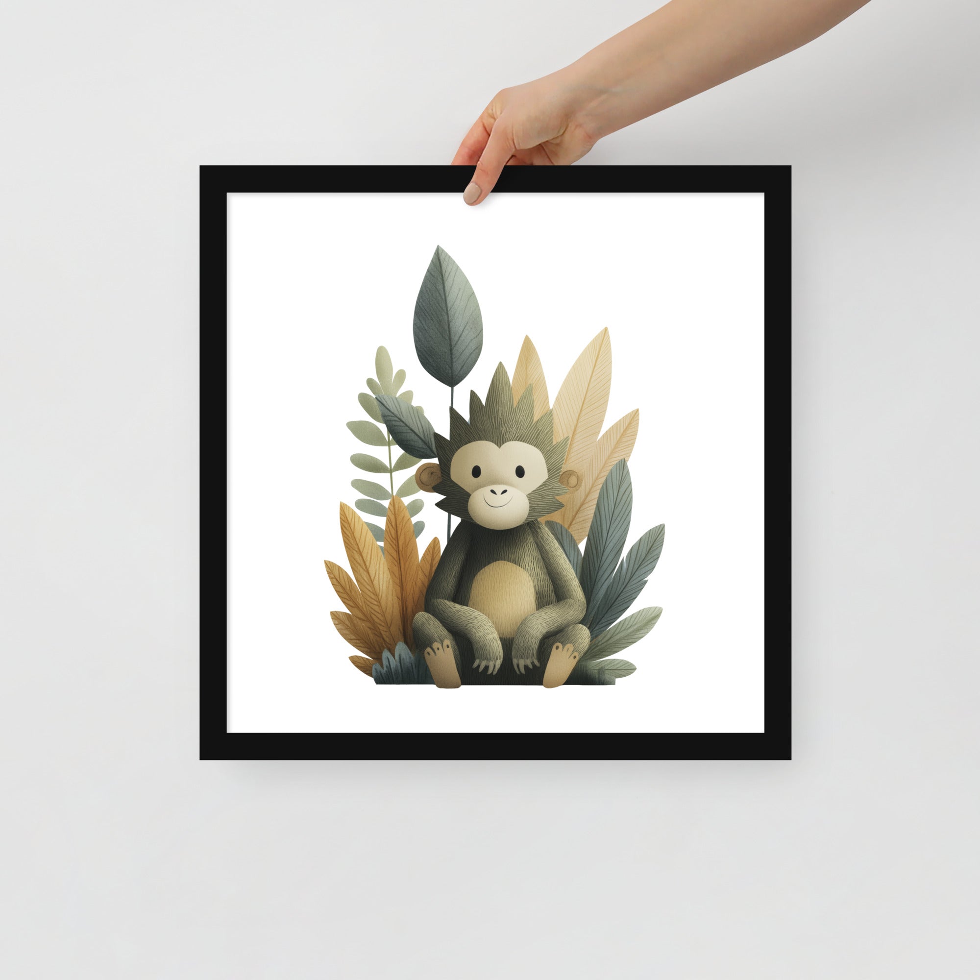 Gentle Baby Monkey - Soft Storybook Series - Framed Nursery Wall Art