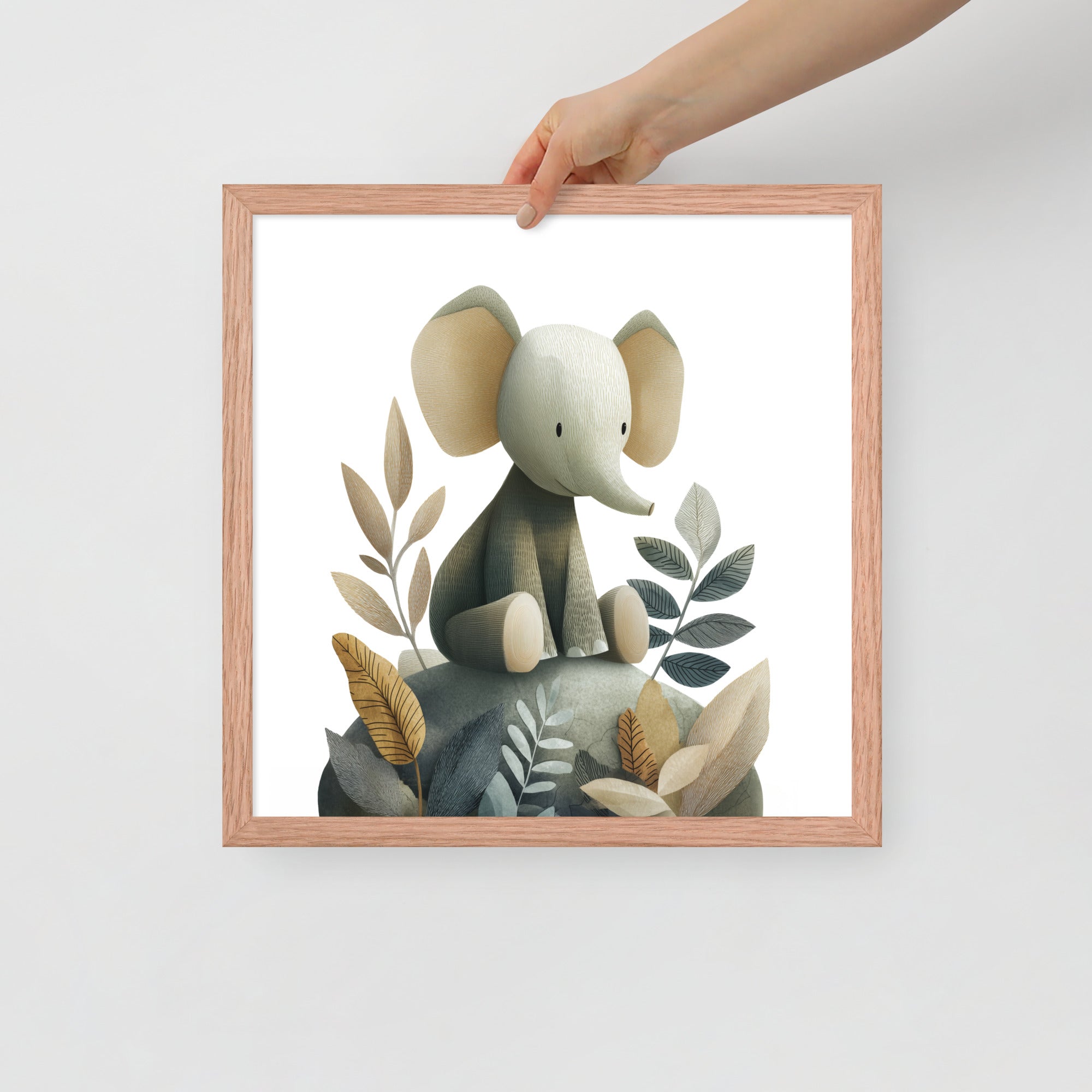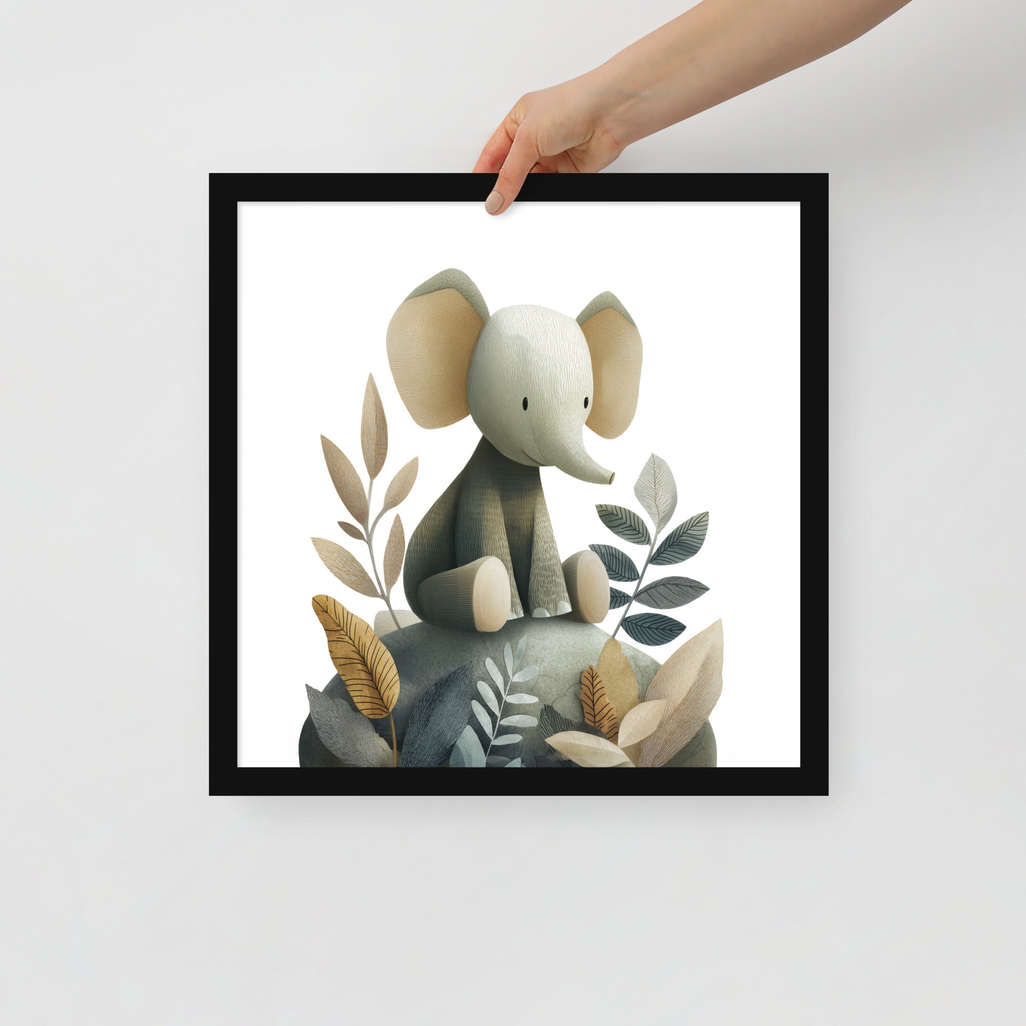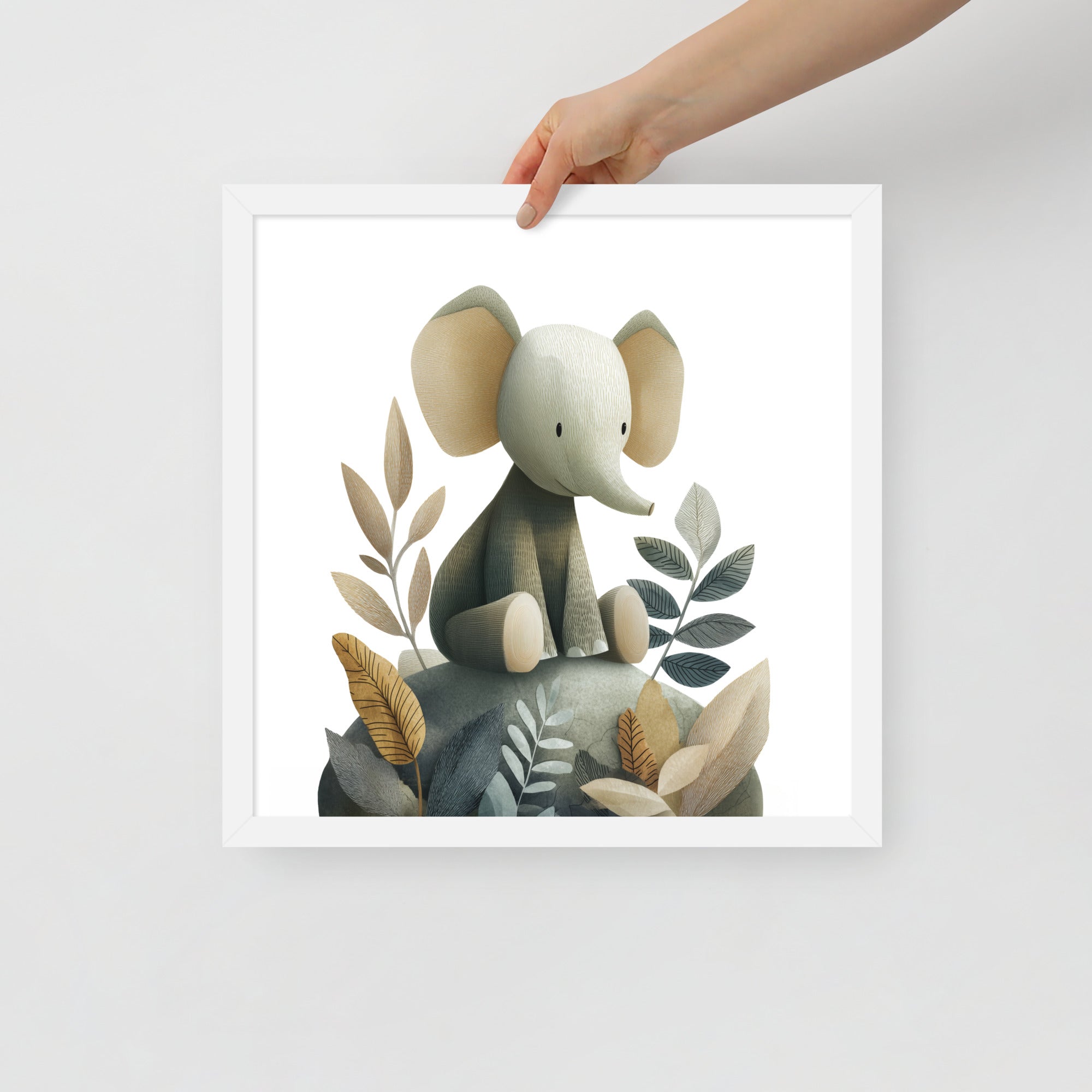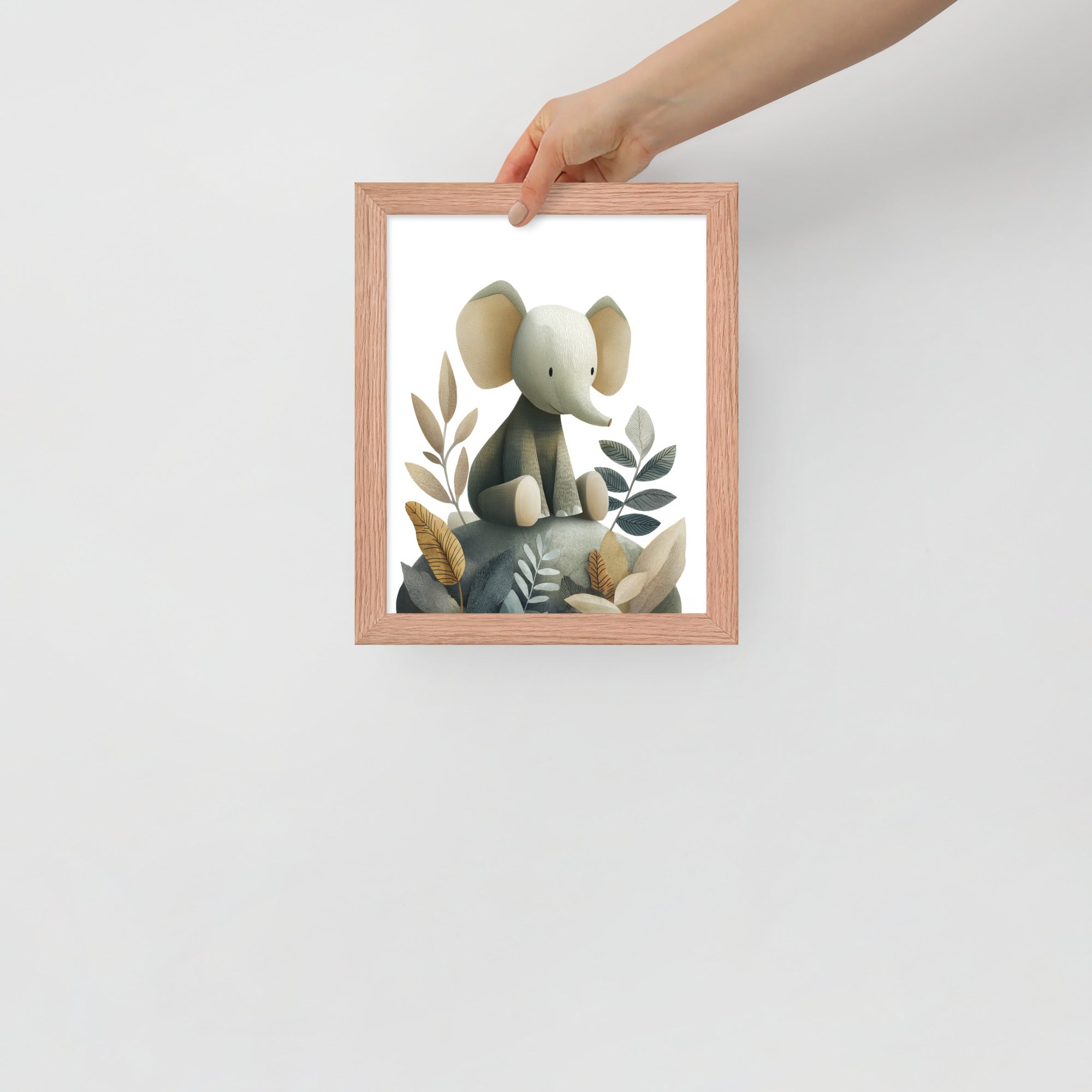 Kind Baby Elephant - Gentle Storybook Series - Framed Nursery Wall Art