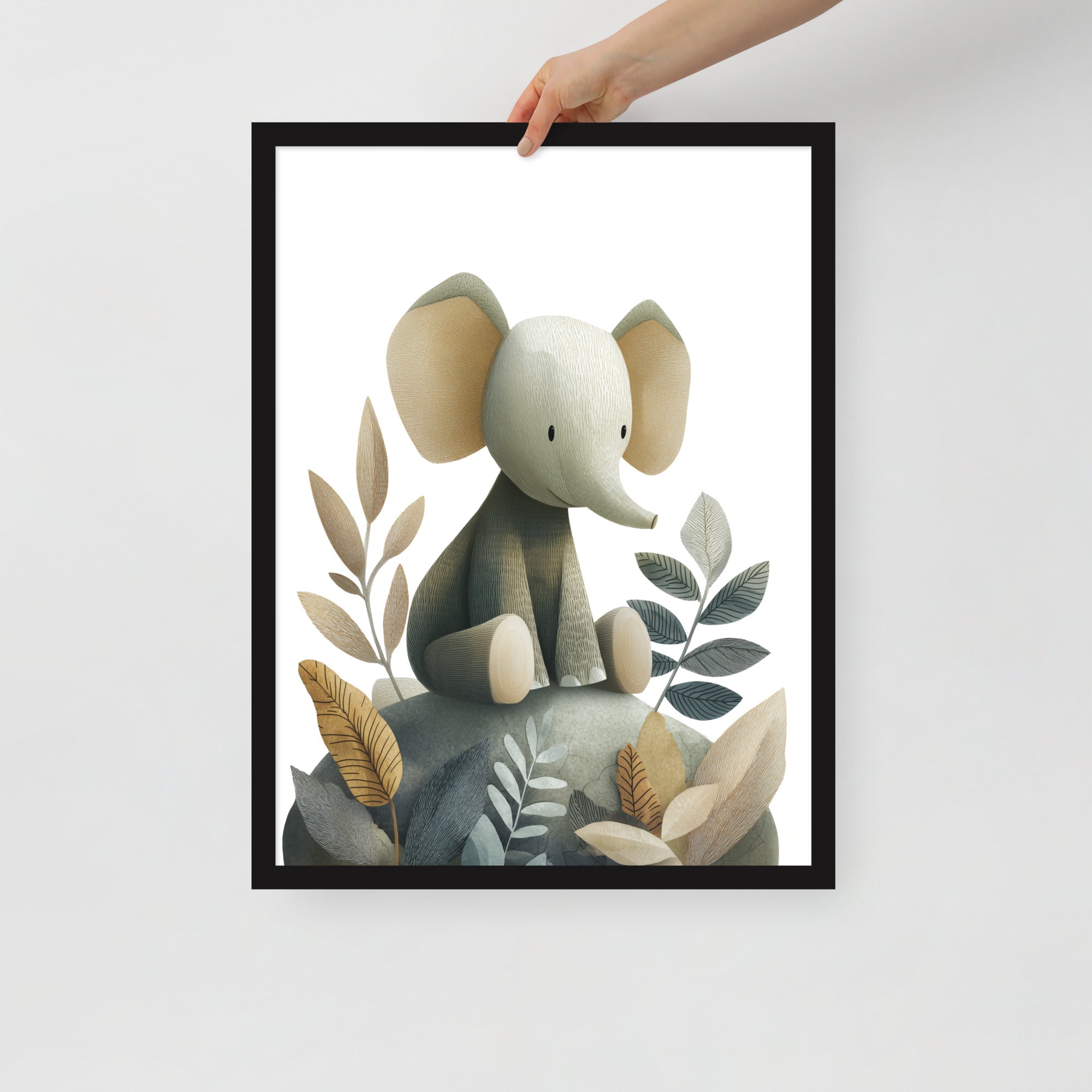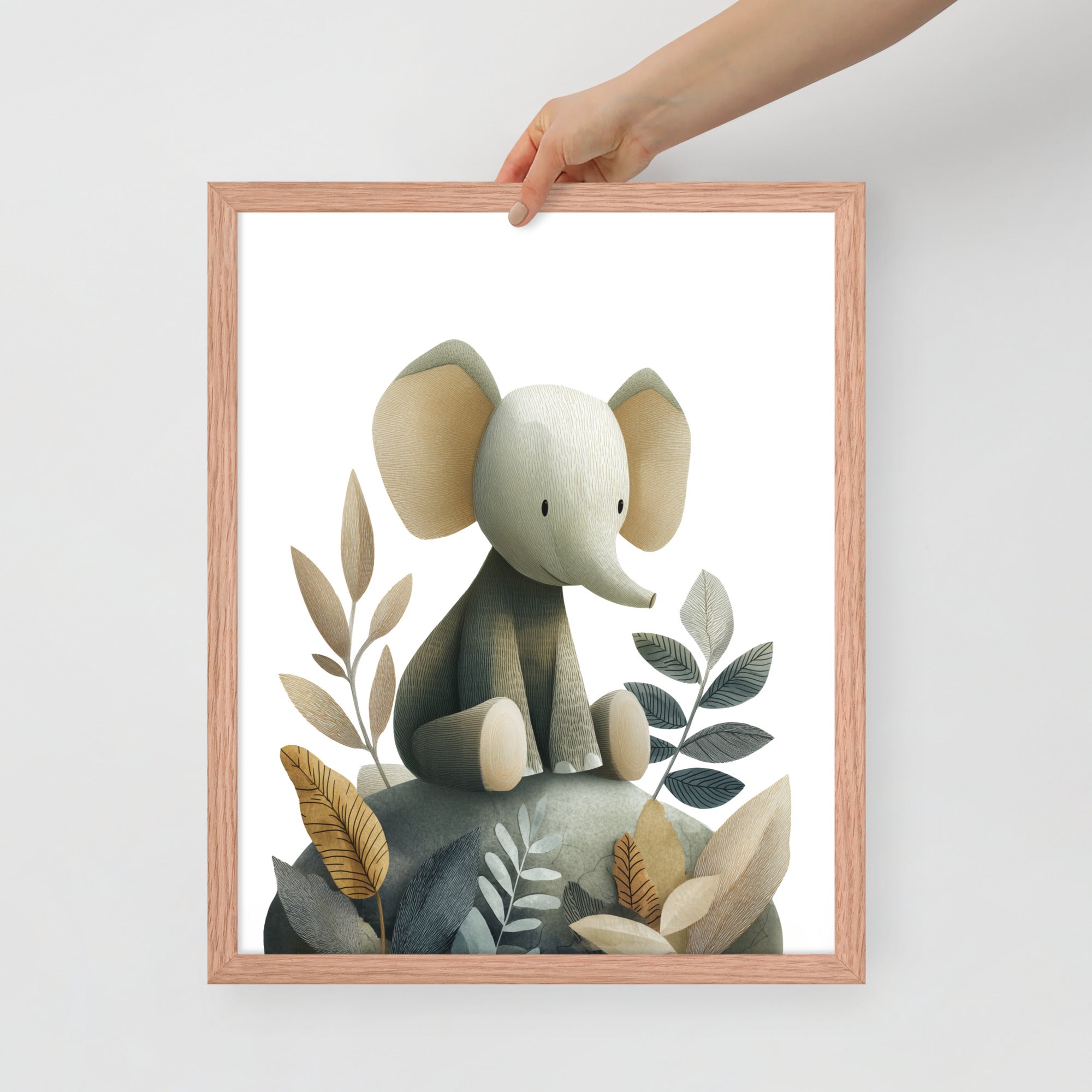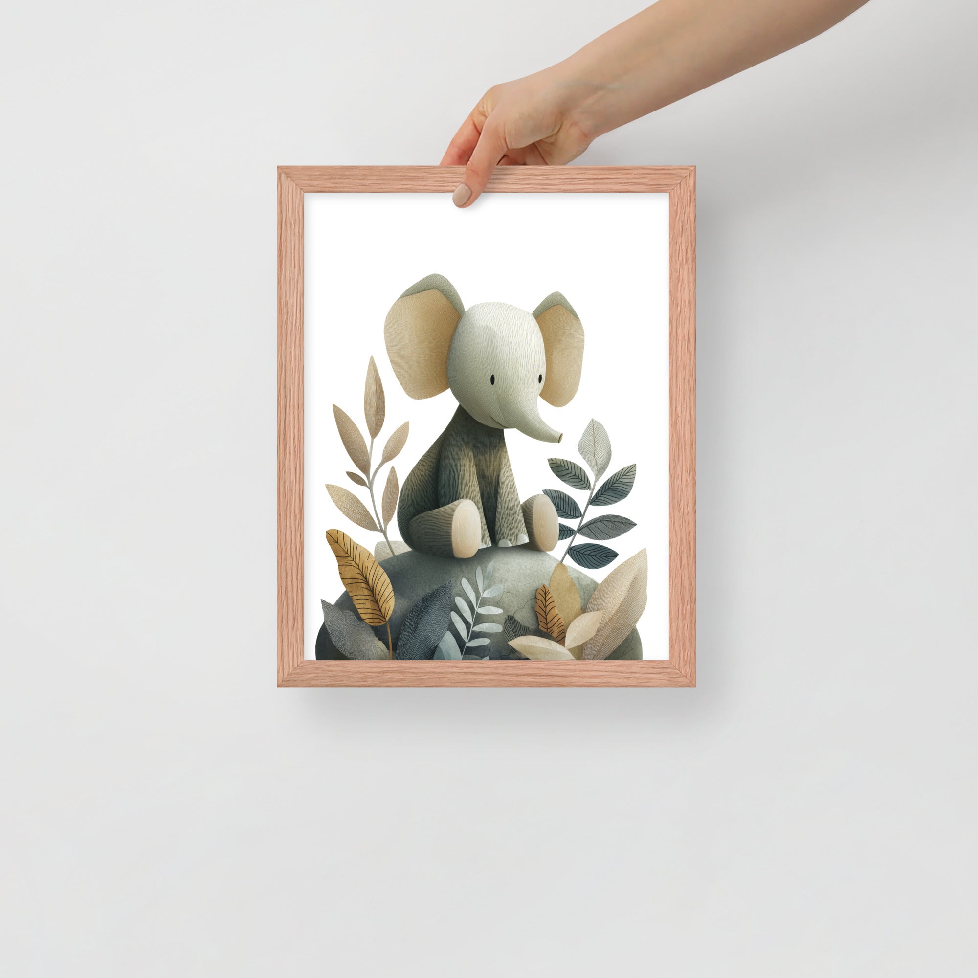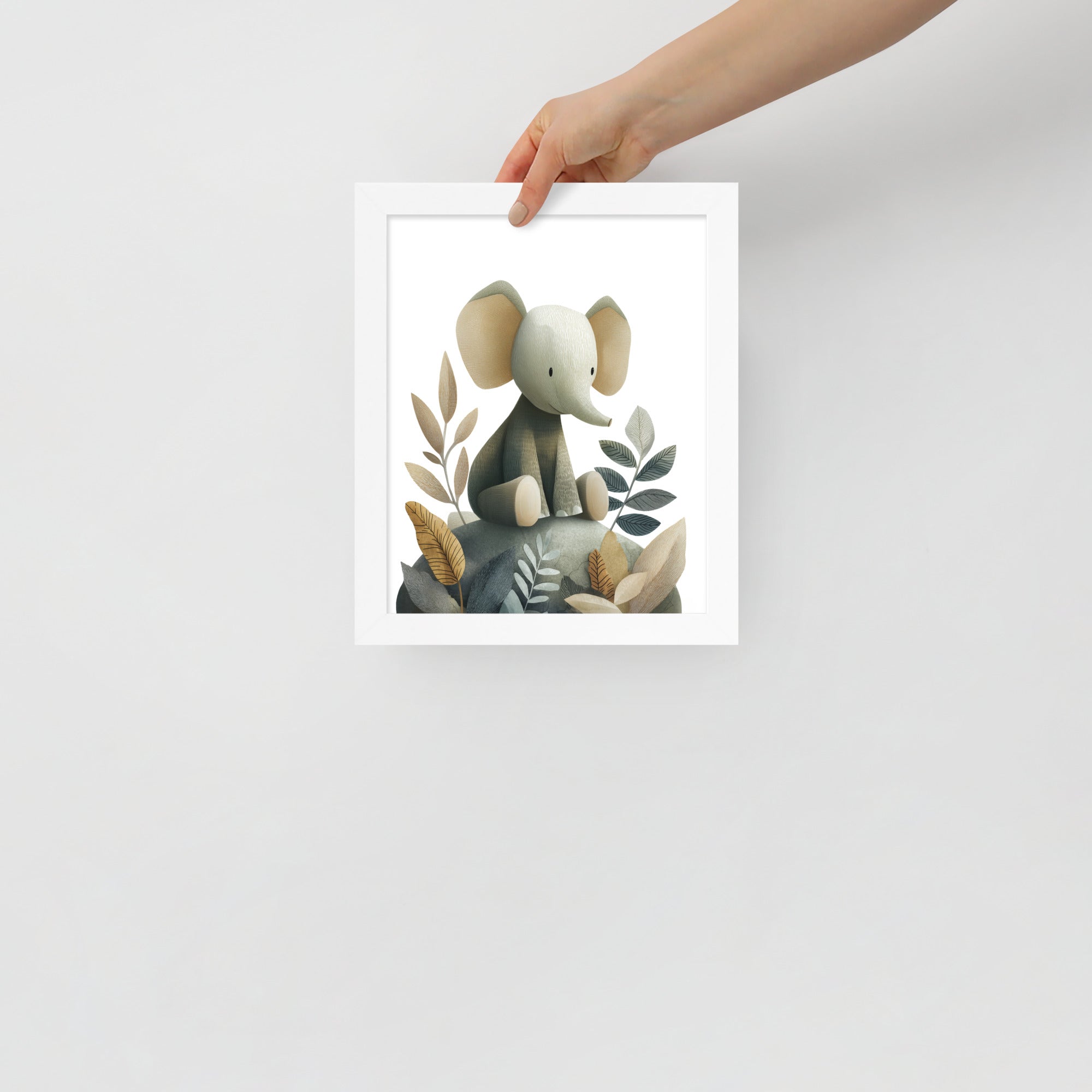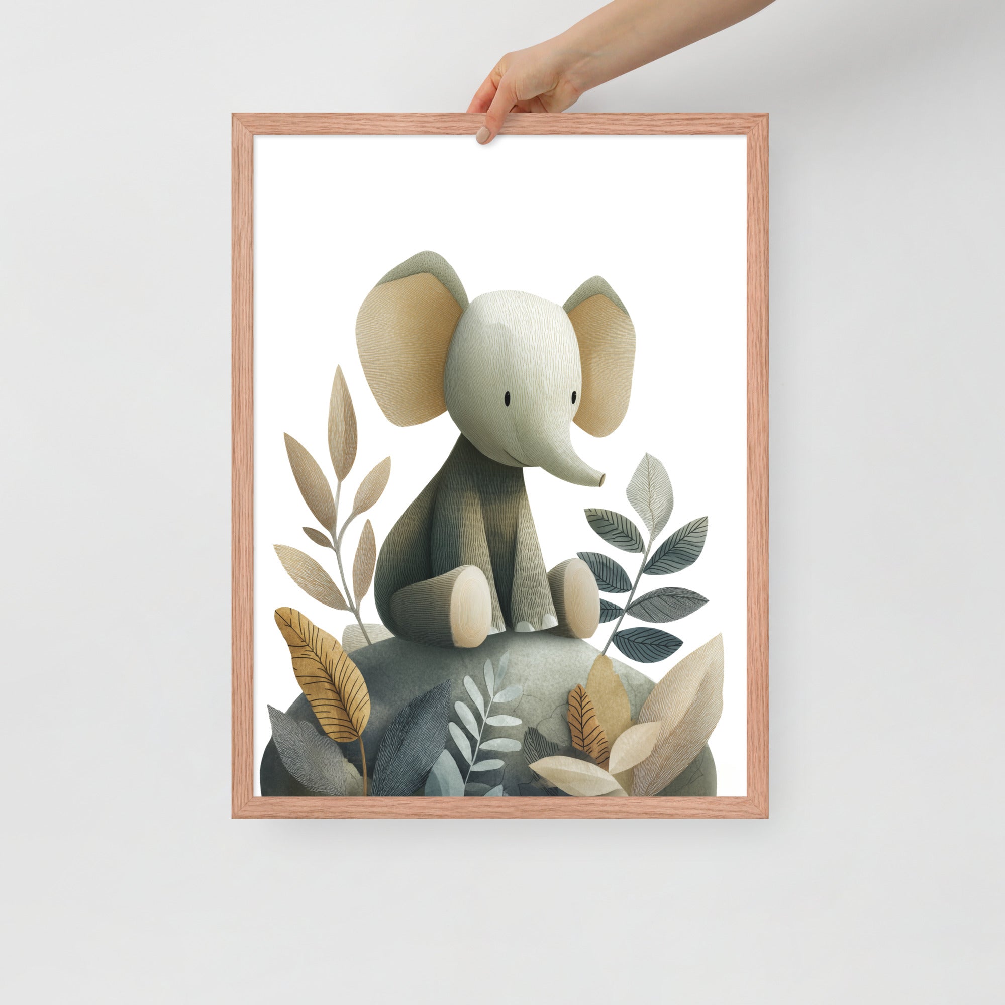 Kind Baby Elephant - Gentle Storybook Series - Framed Nursery Wall Art