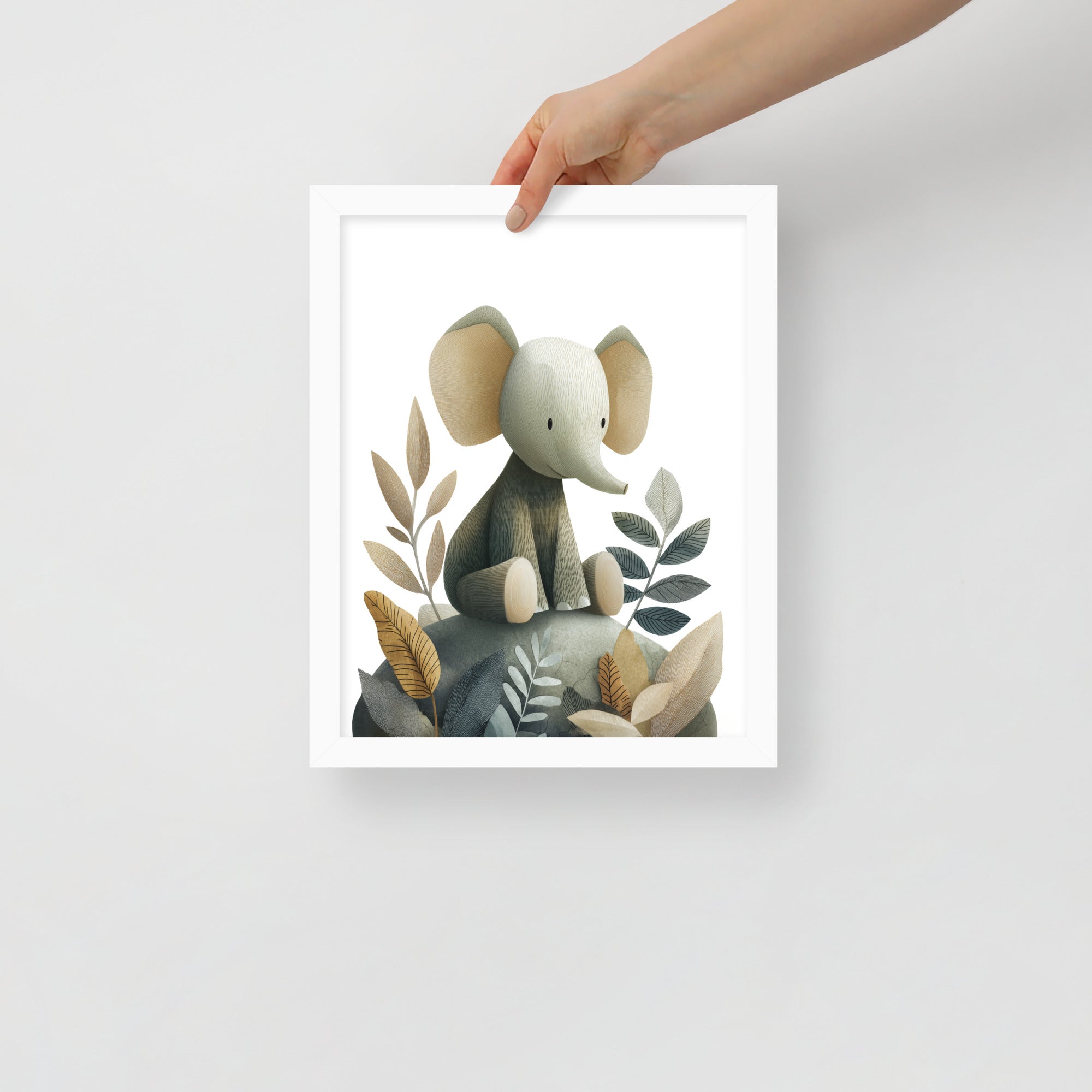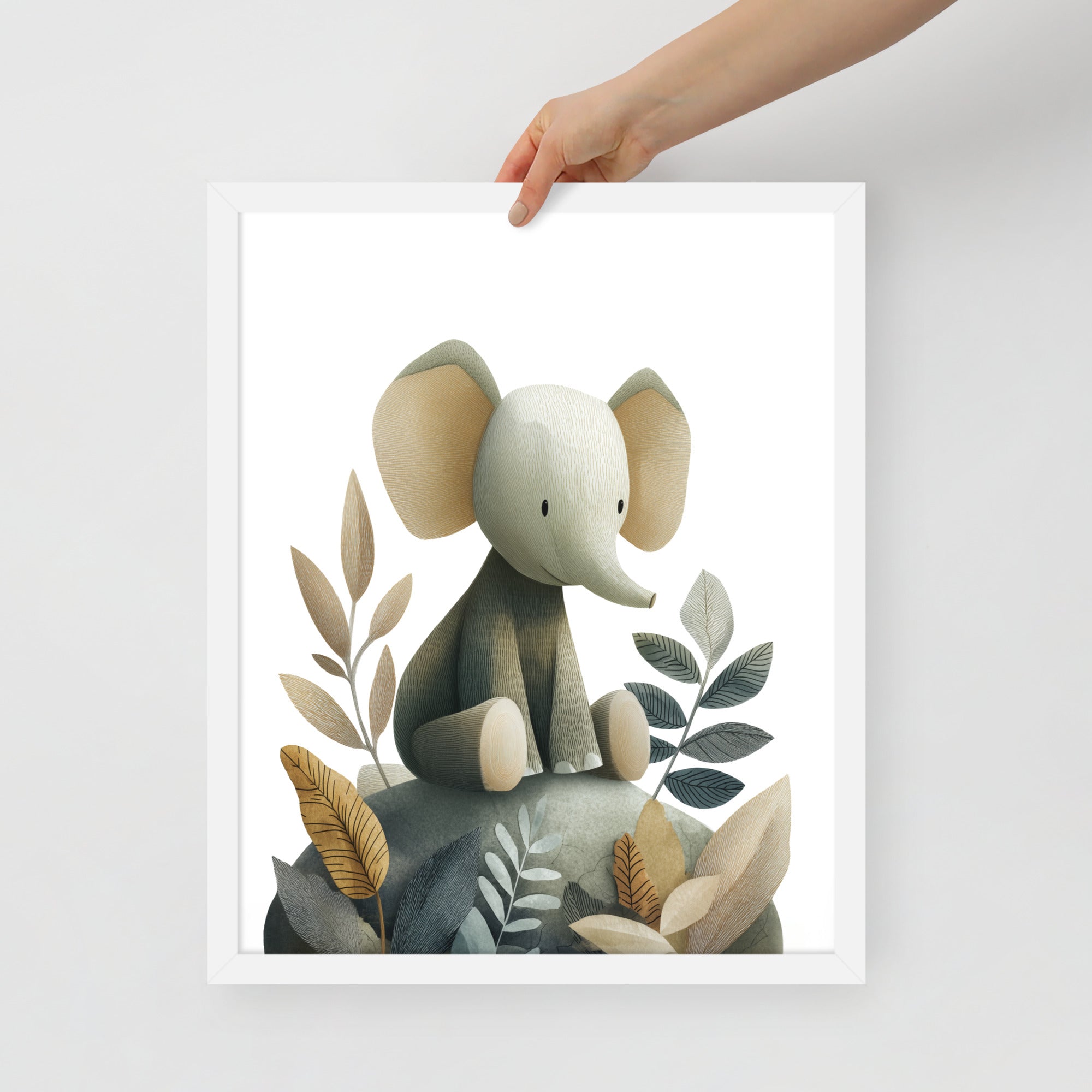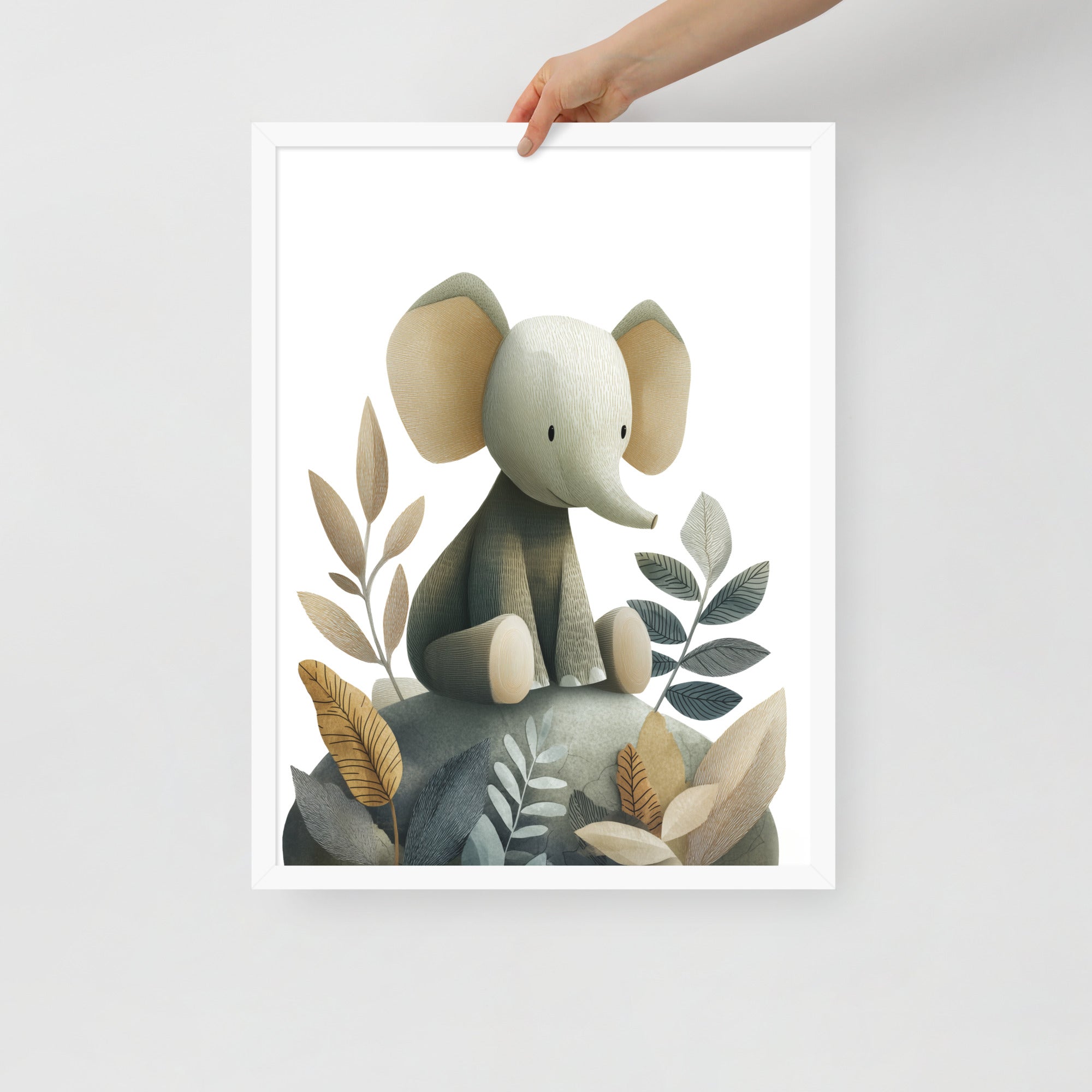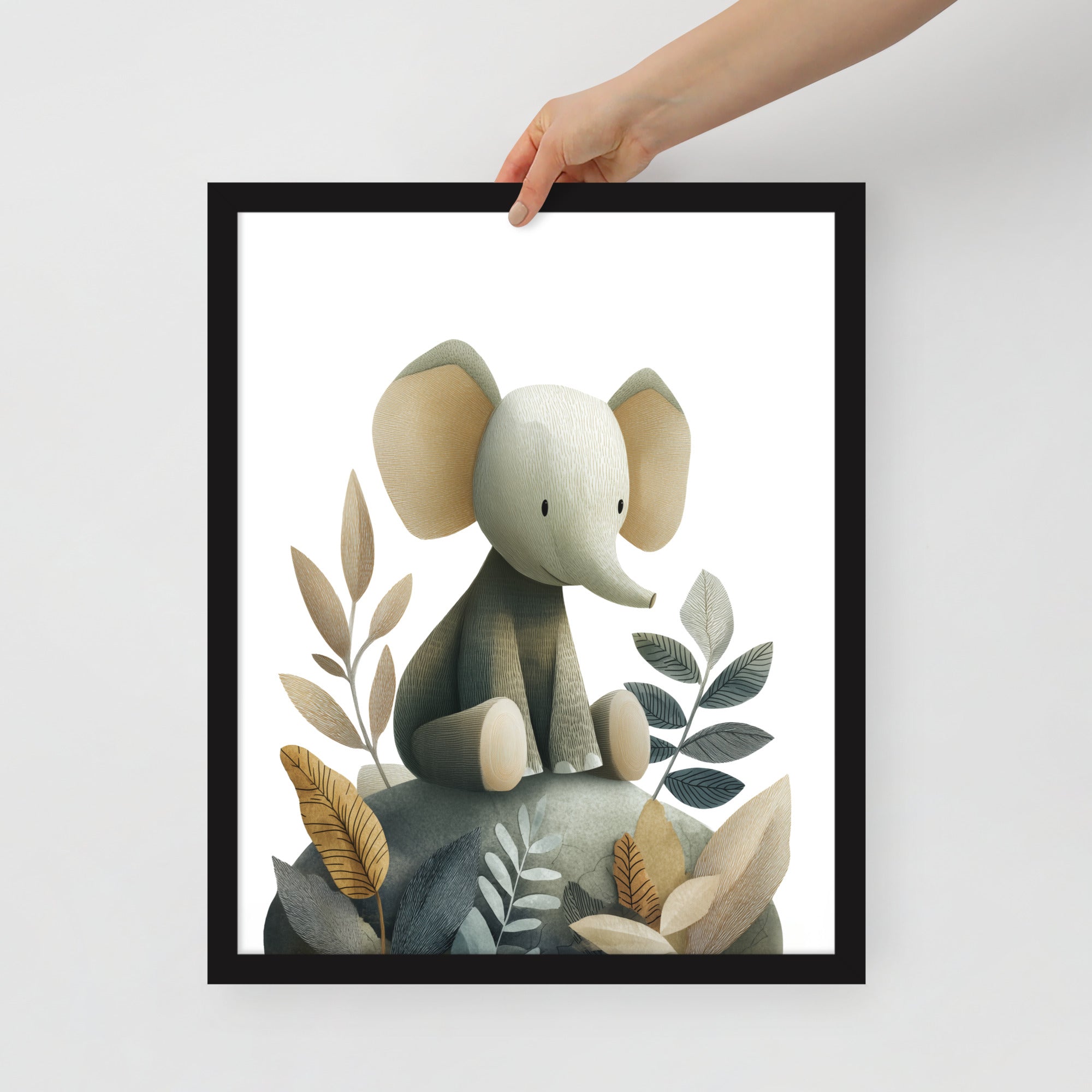 Kind Baby Elephant - Gentle Storybook Series - Framed Nursery Wall Art