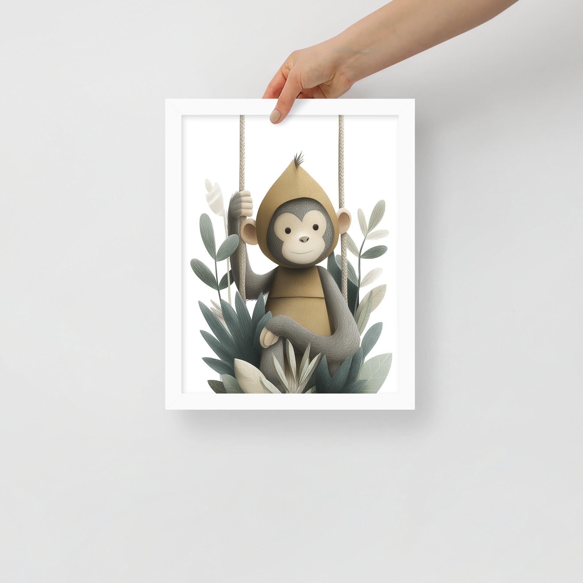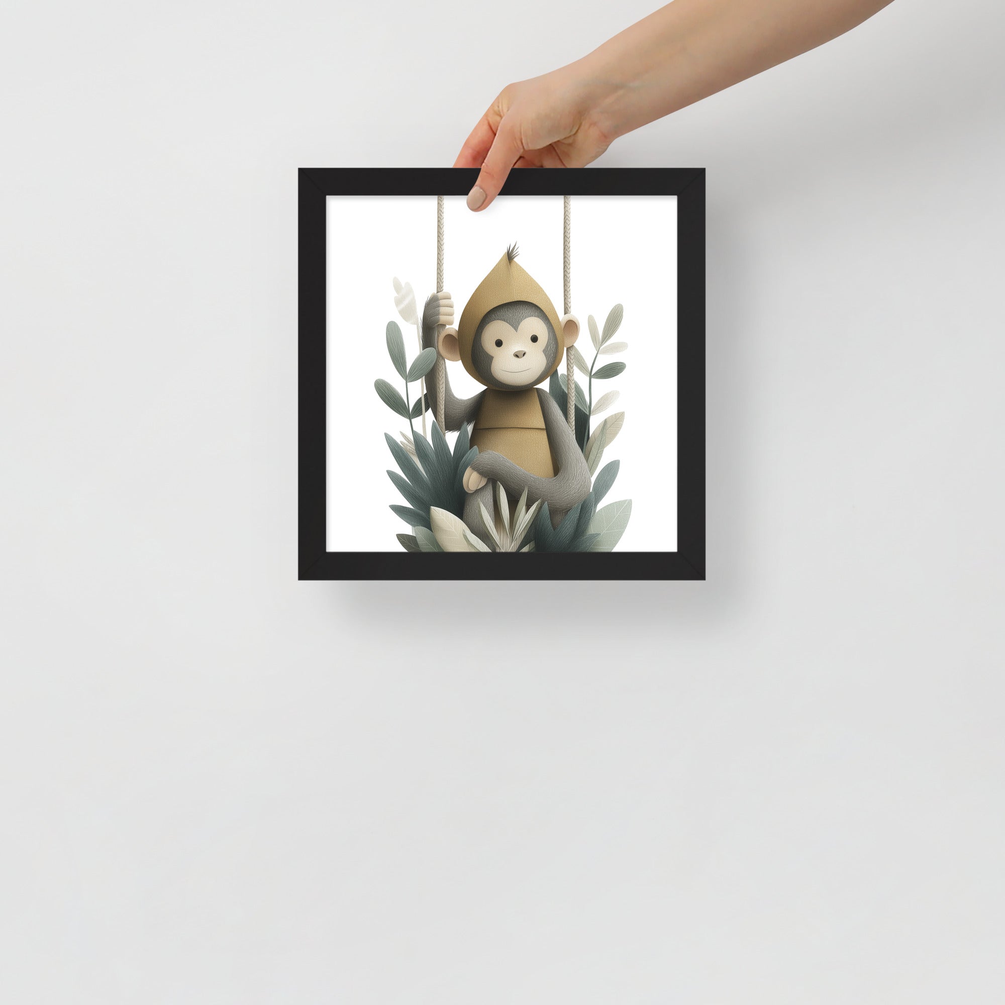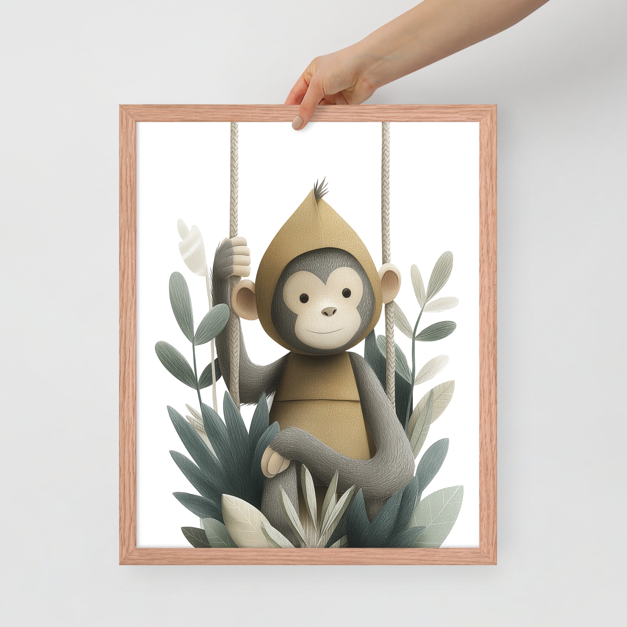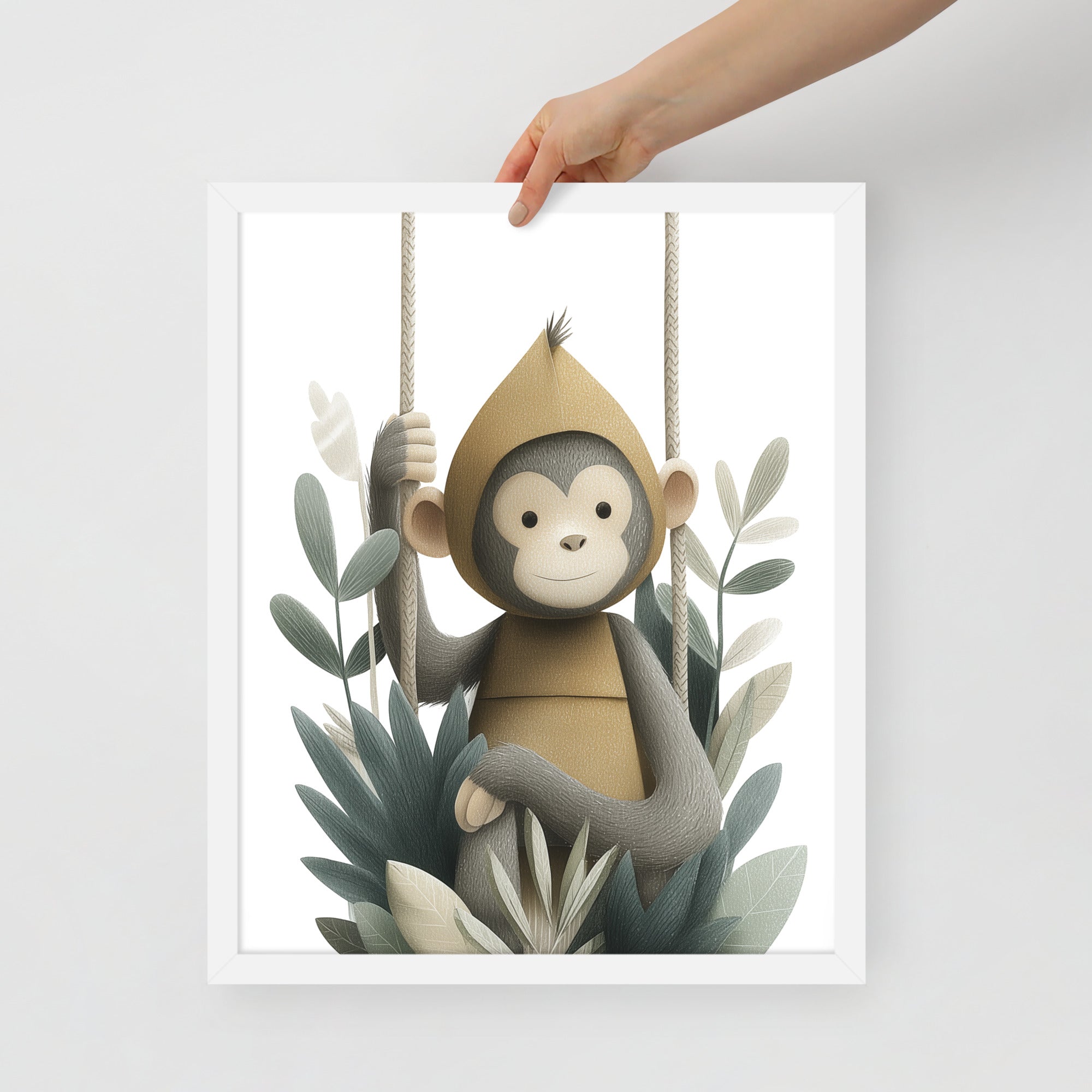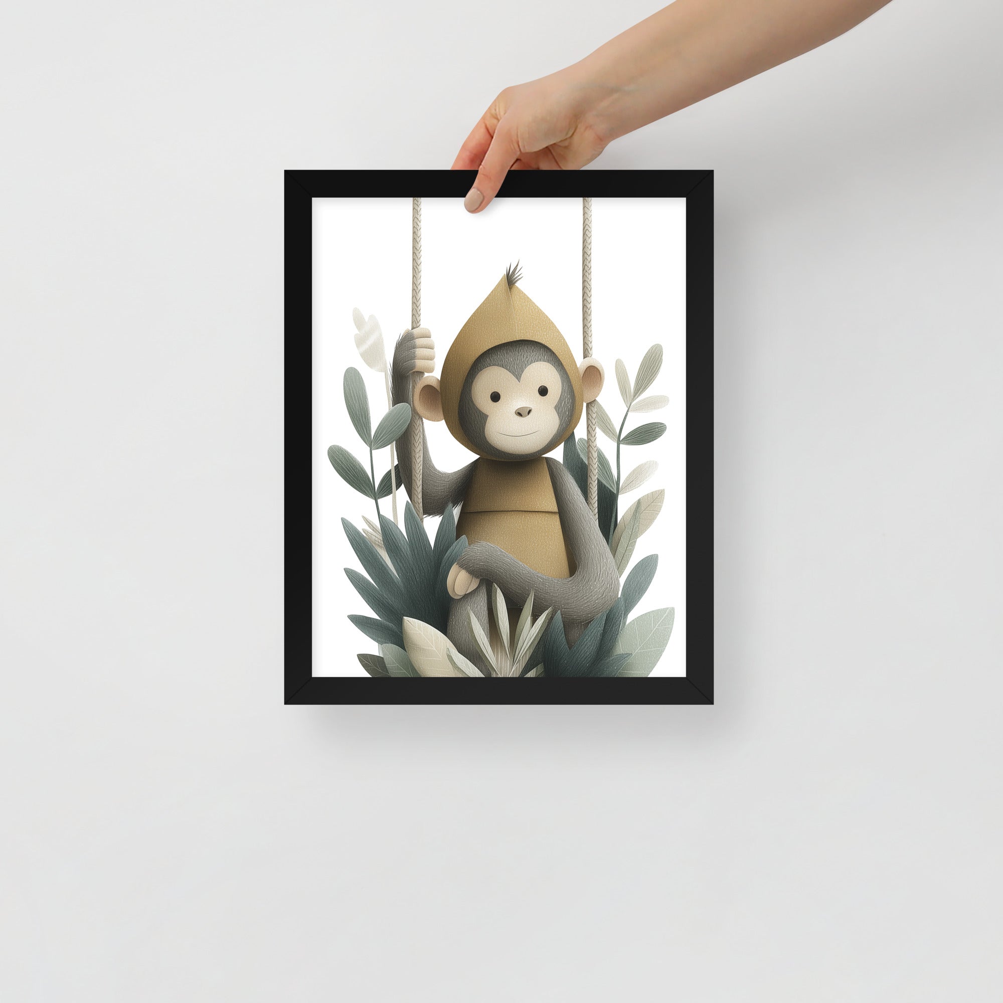 Monkey Hoodie - Soft Storybook Series - Framed Nursery Wall Art