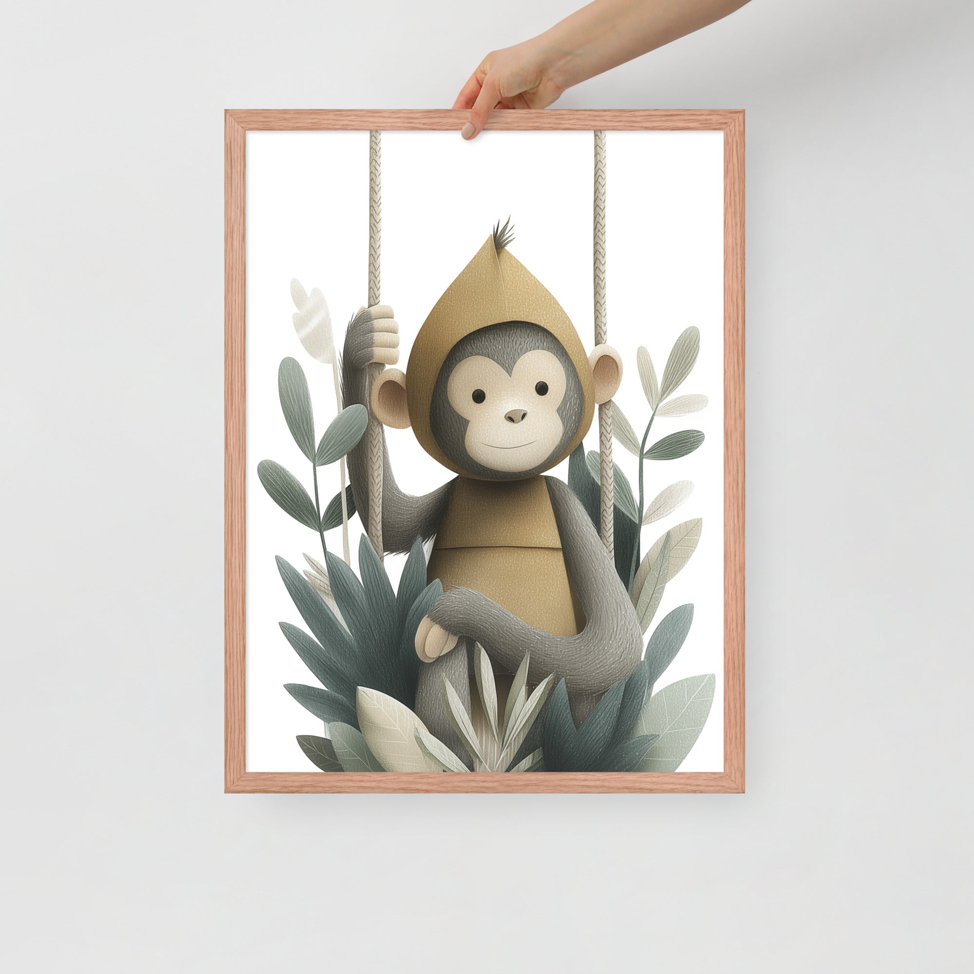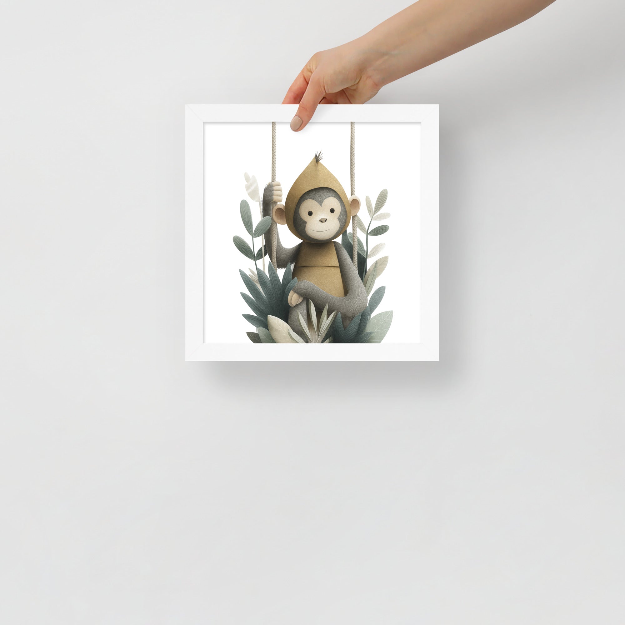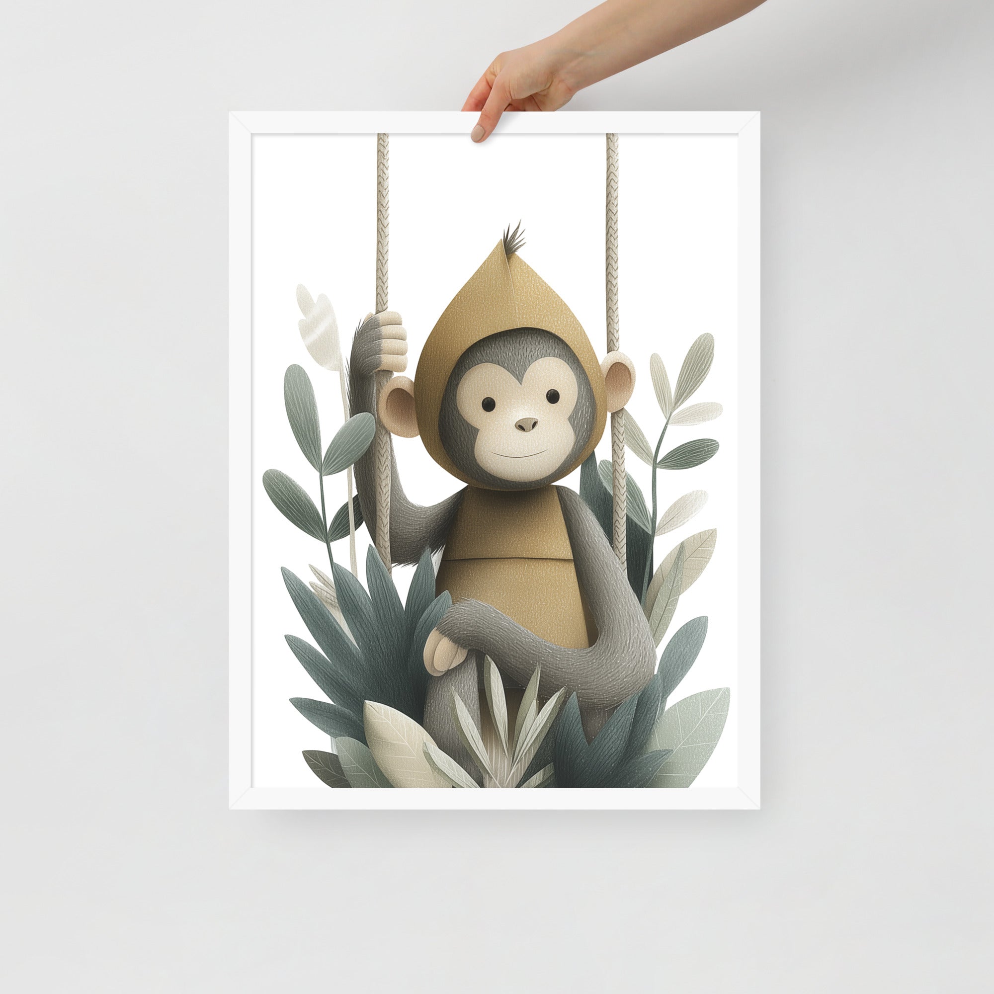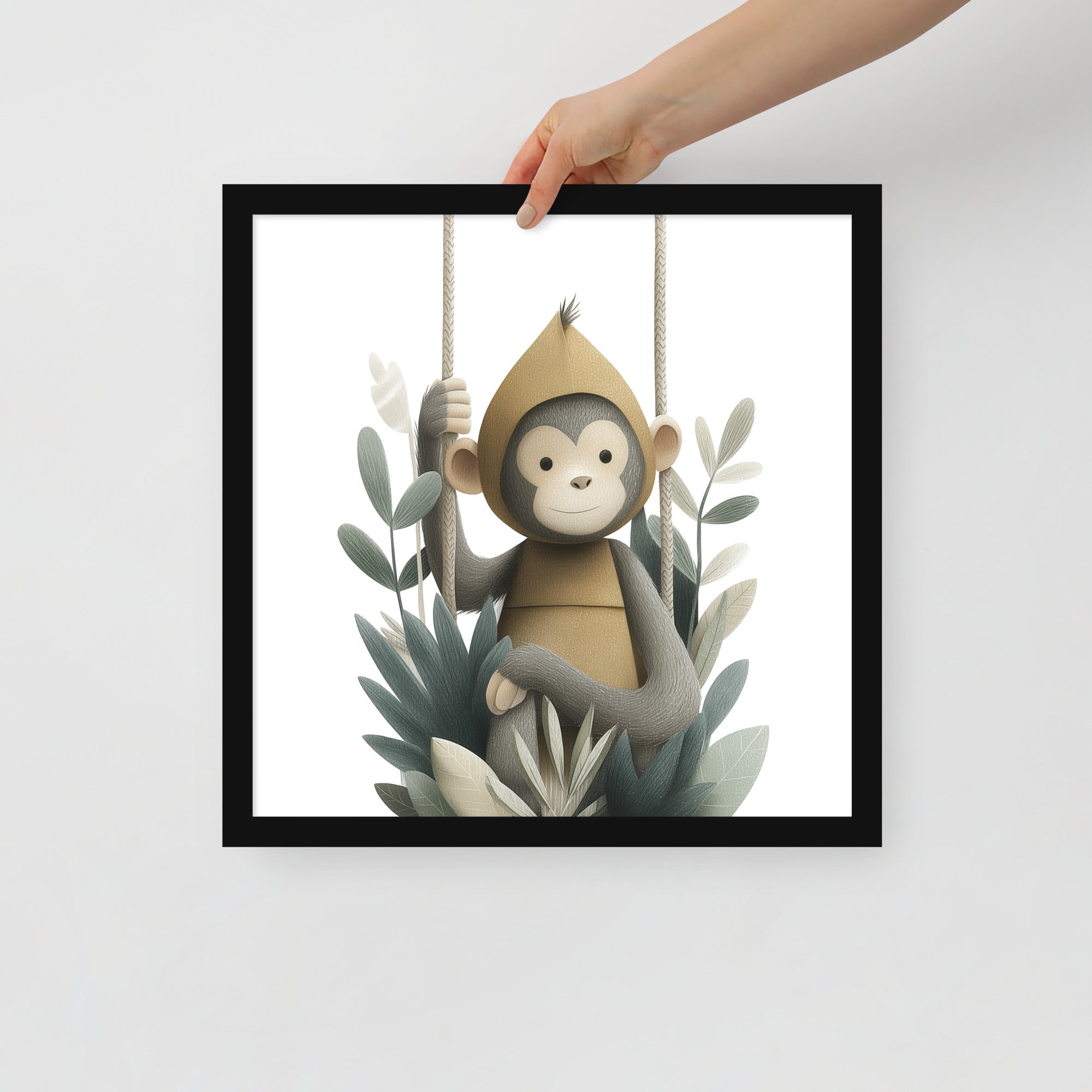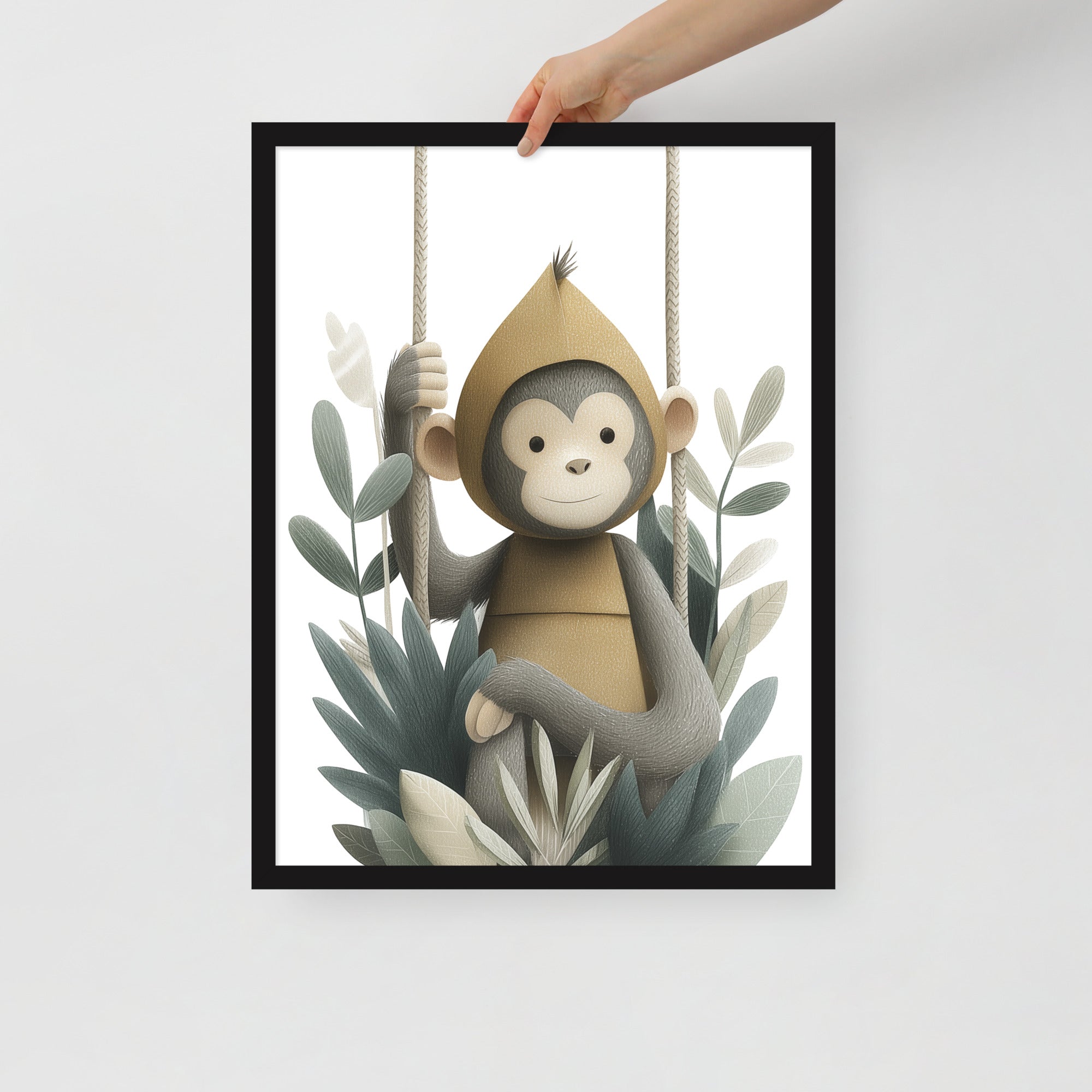 Monkey Hoodie - Soft Storybook Series - Framed Nursery Wall Art