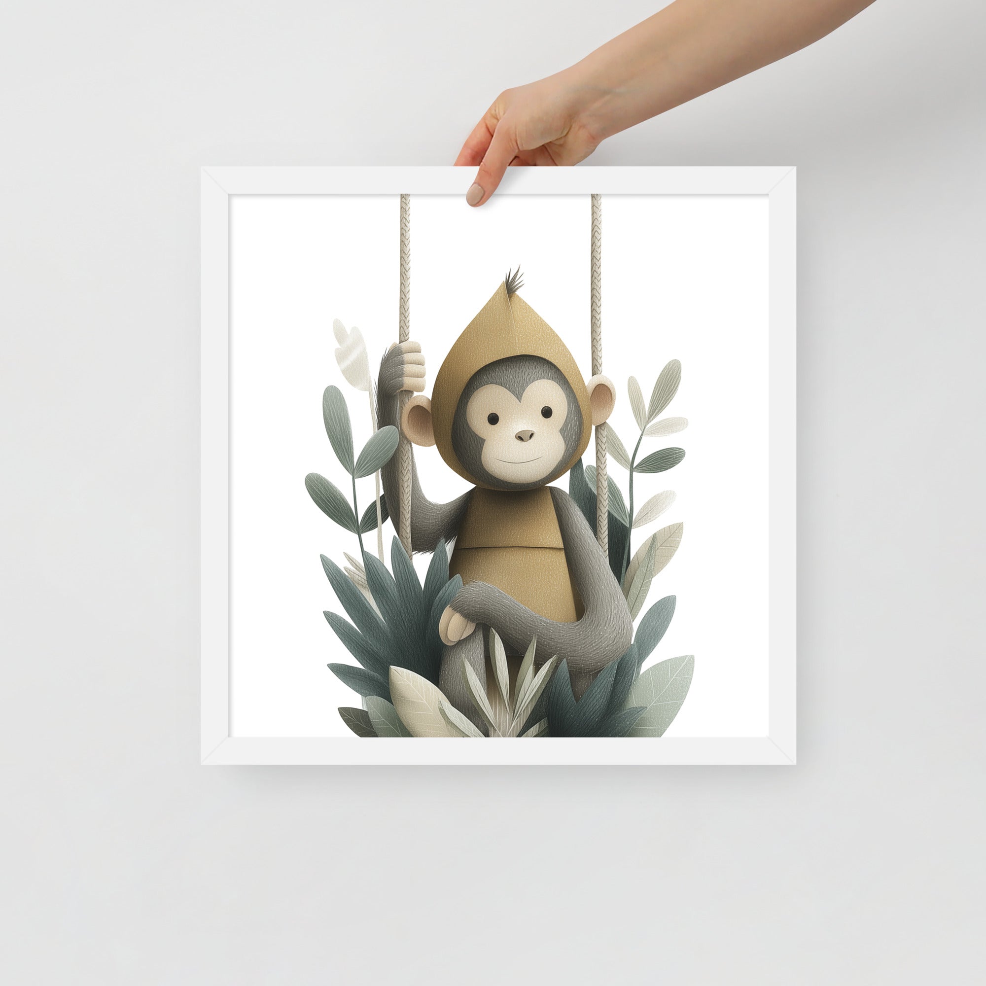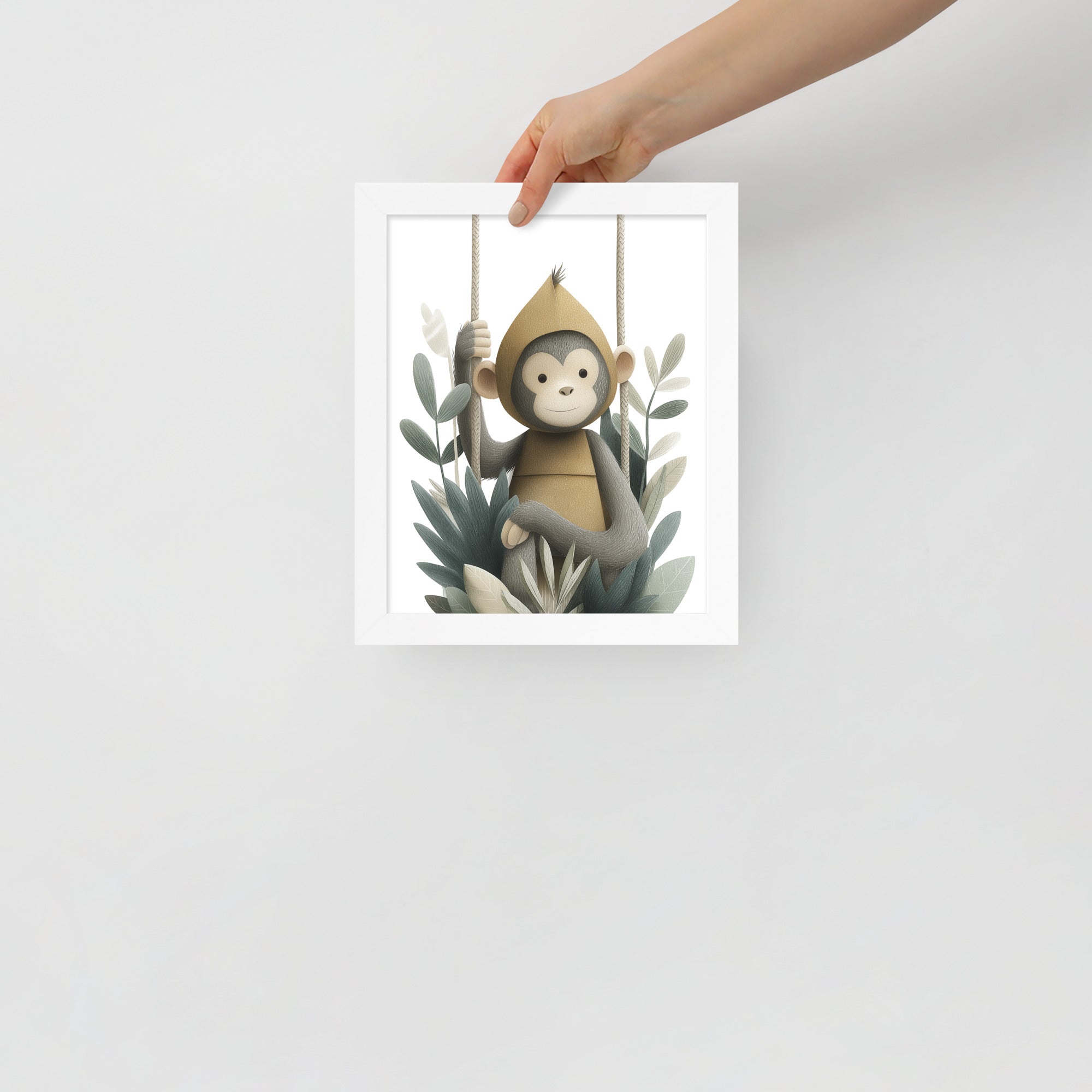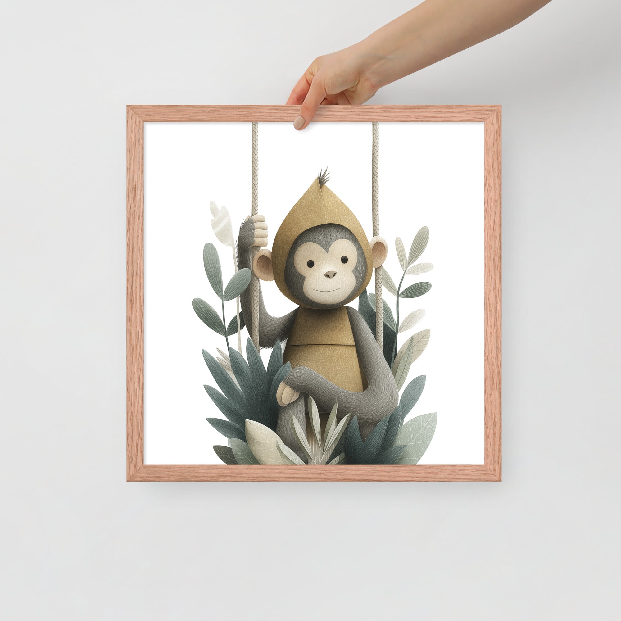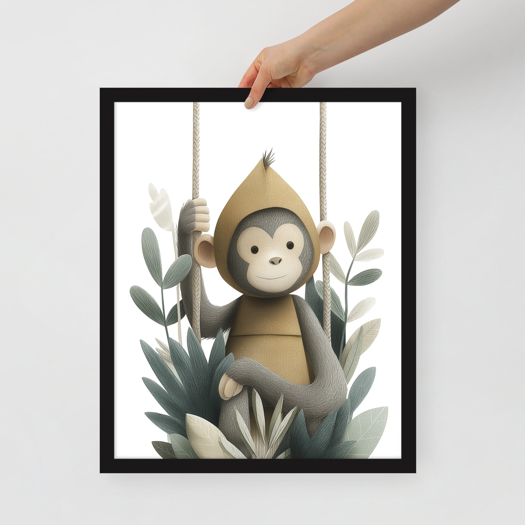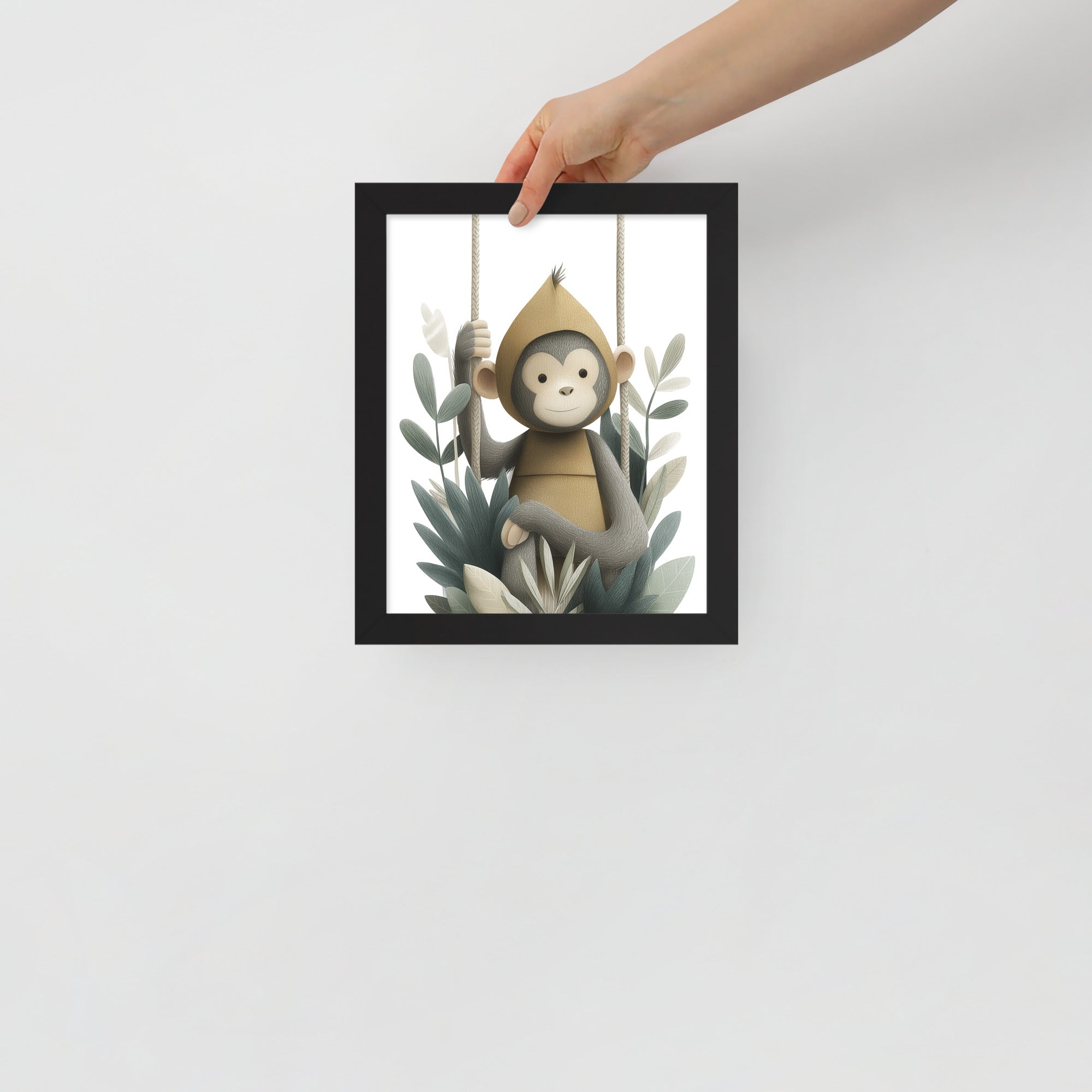 Monkey Hoodie - Soft Storybook Series - Framed Nursery Wall Art