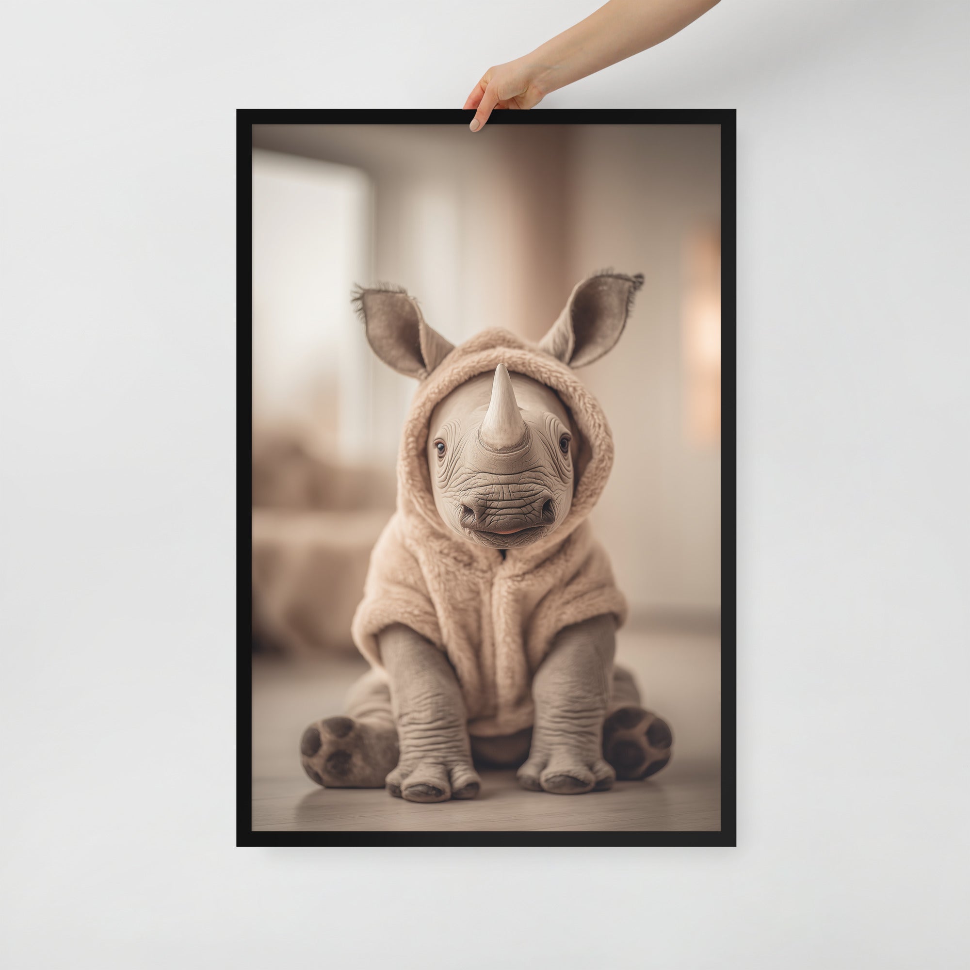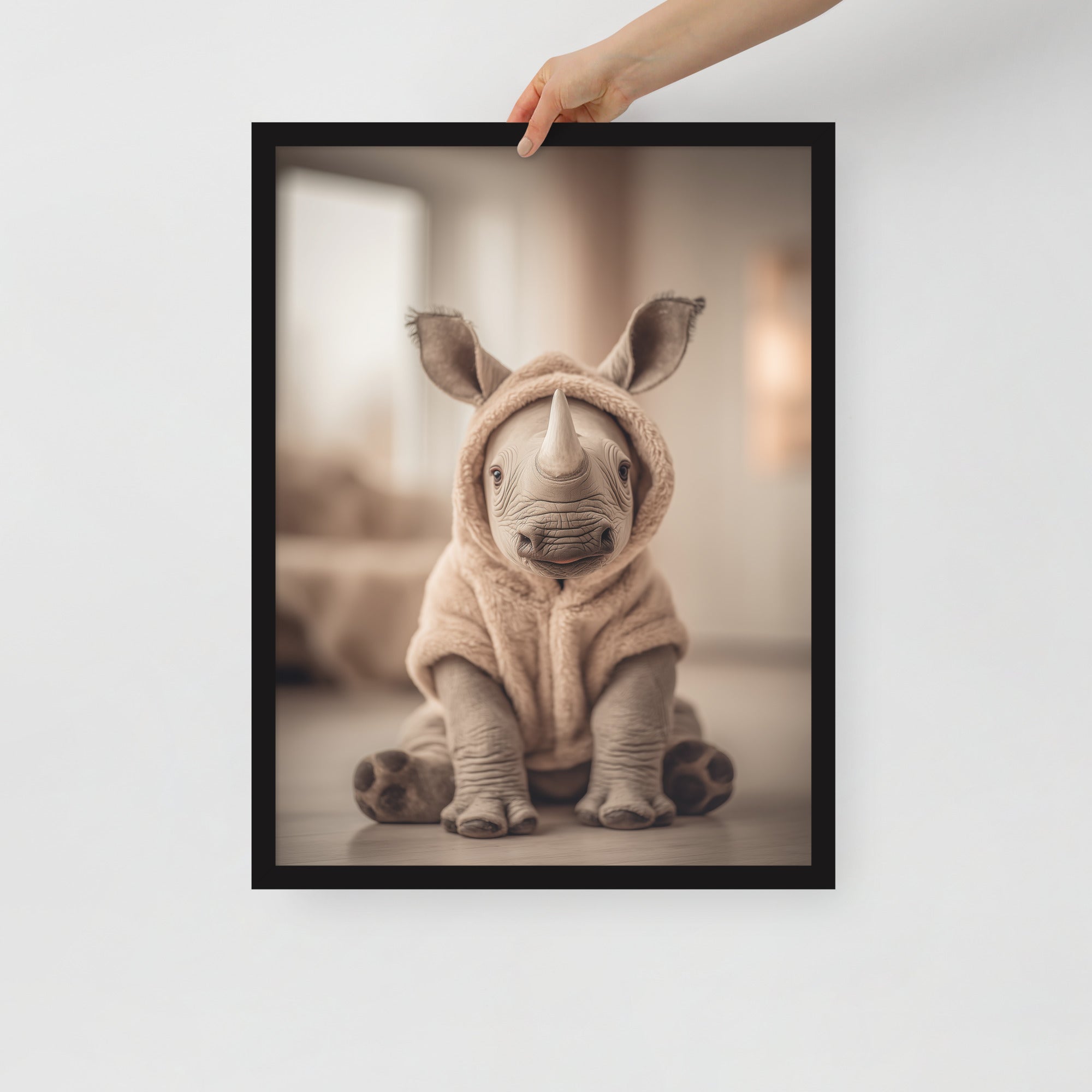 Onesie Baby Rhino - Framed Nursery Wall Art