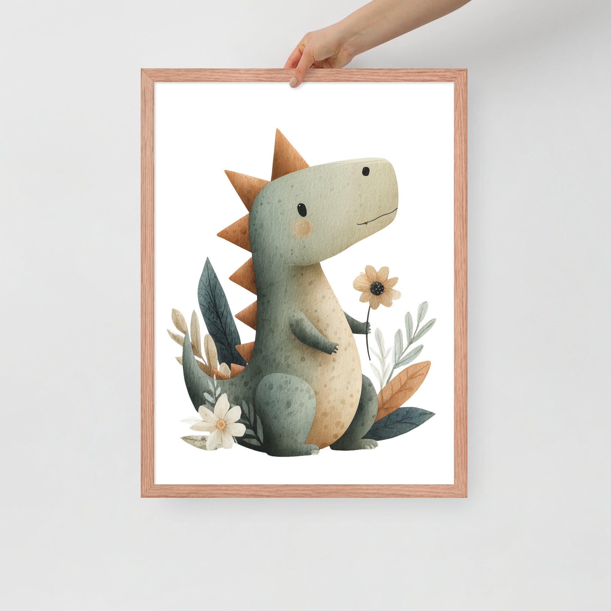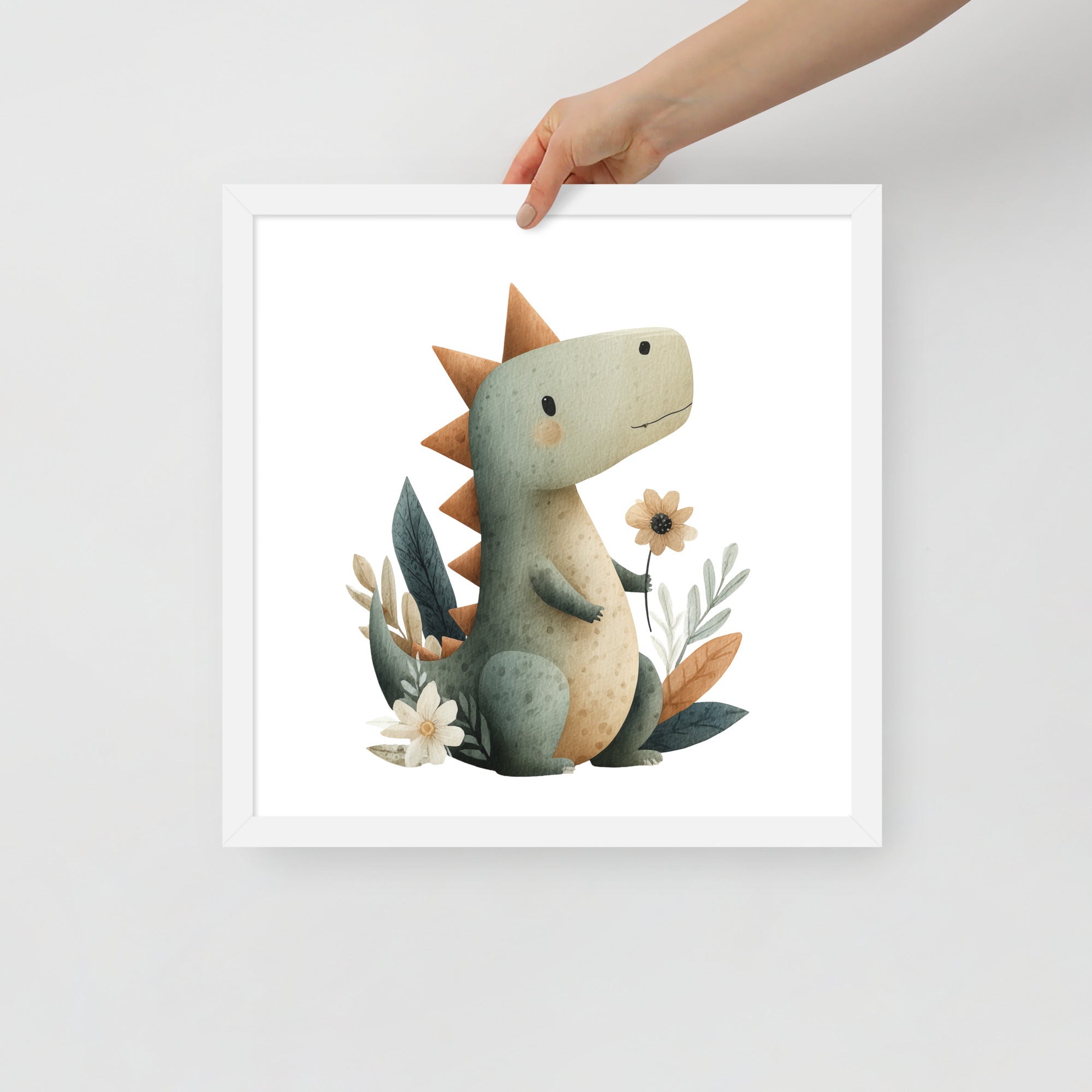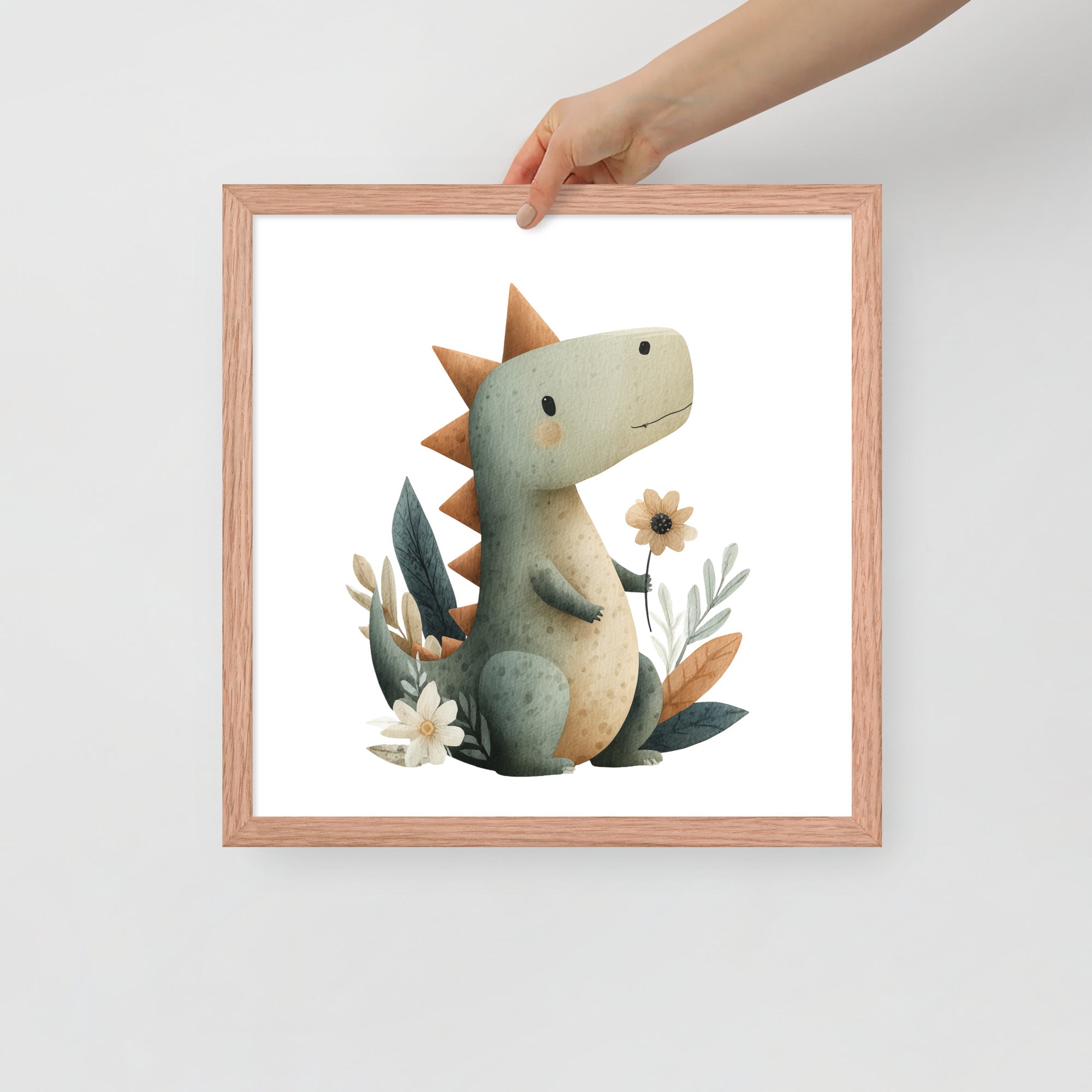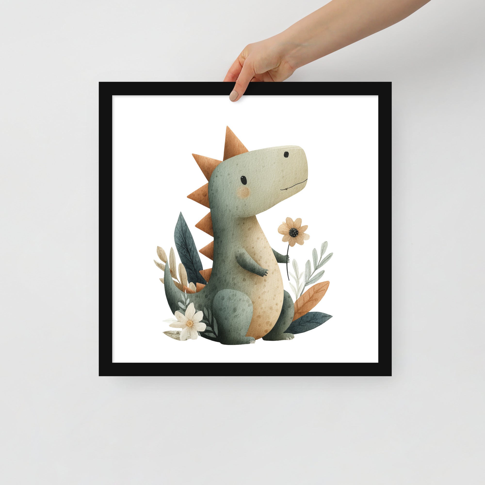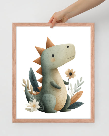 Rex & The Flower - Gentle Storybook Series - Framed Nursery Wall Art