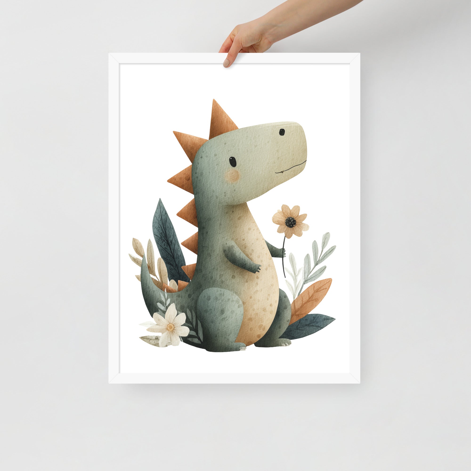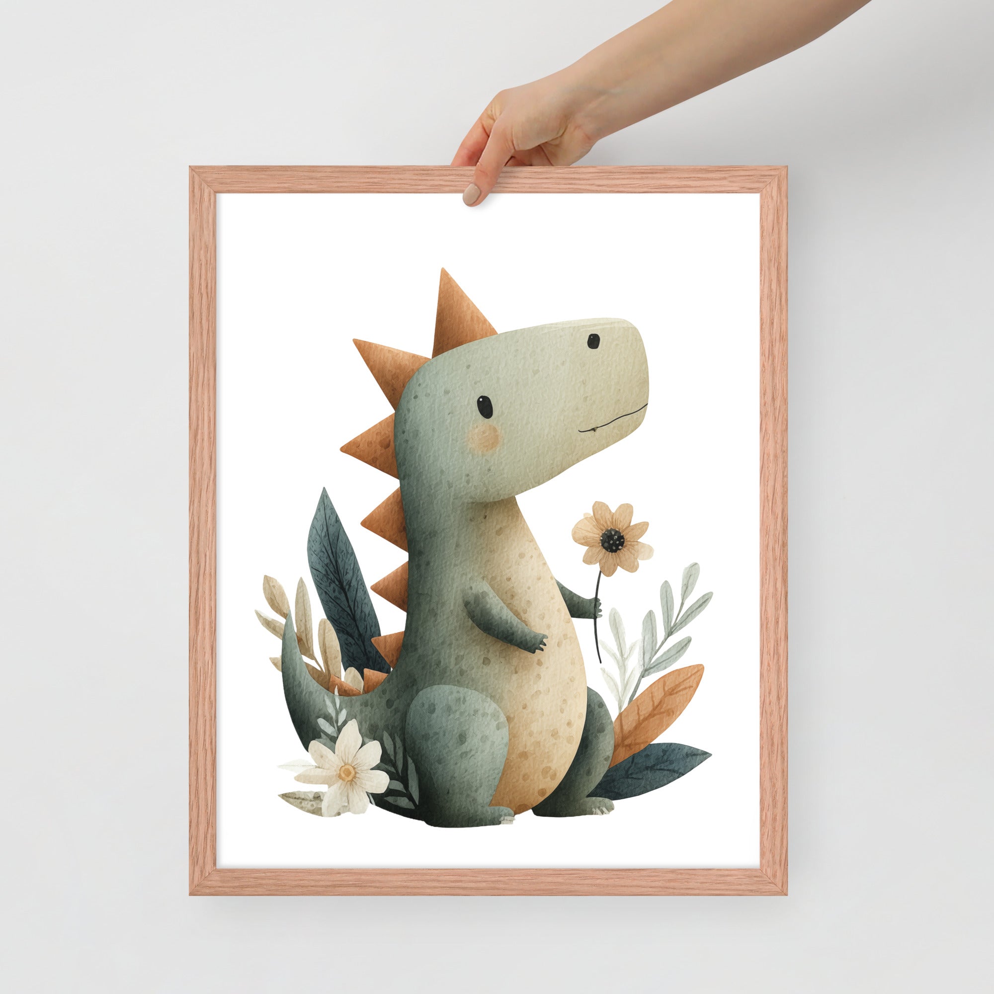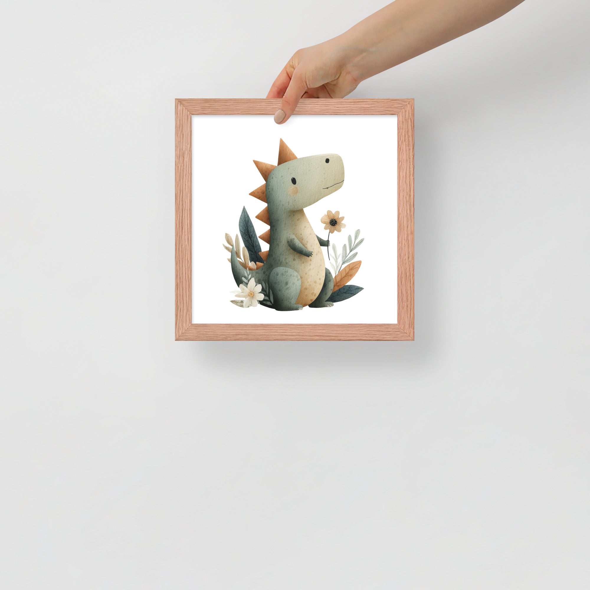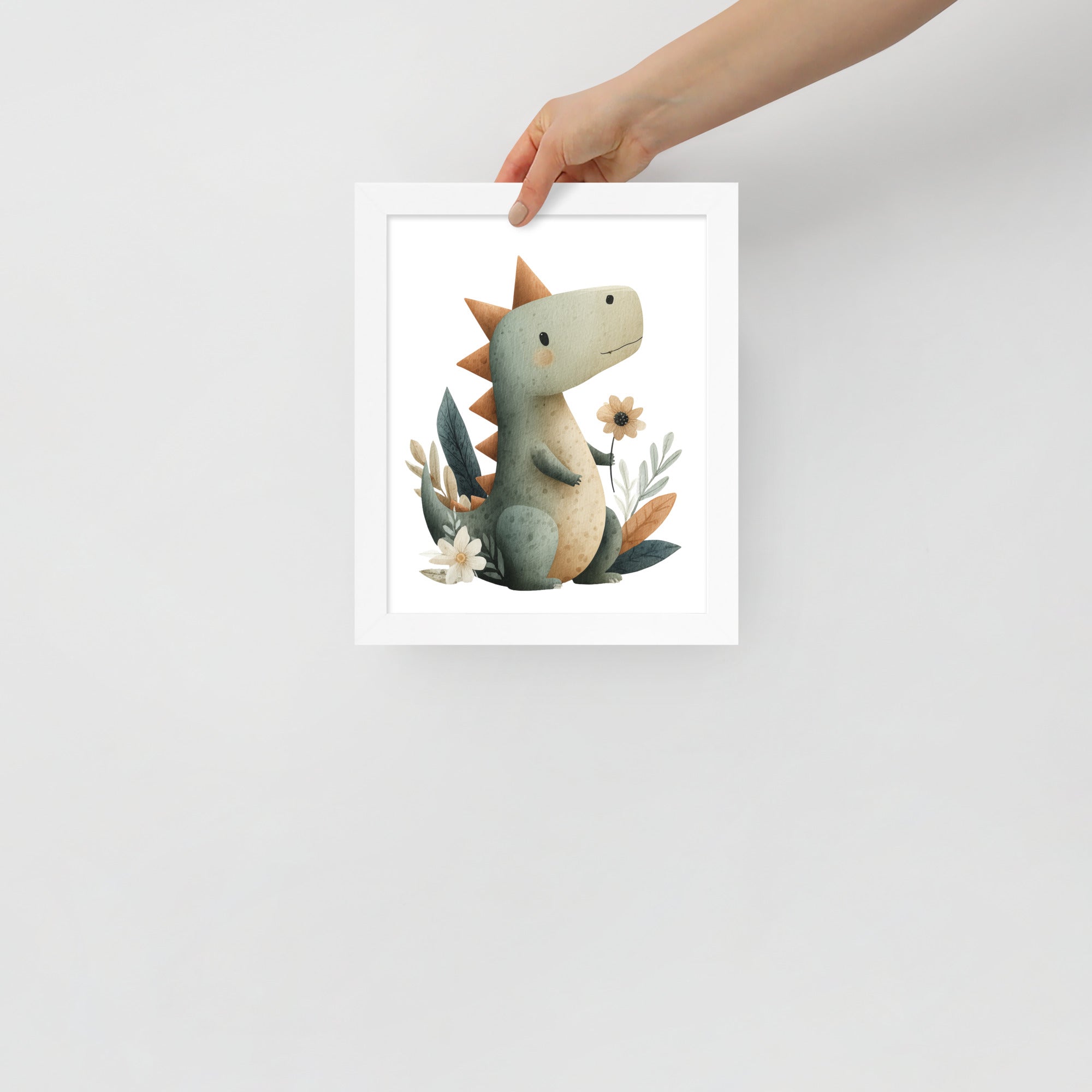 Rex & The Flower - Gentle Storybook Series - Framed Nursery Wall Art