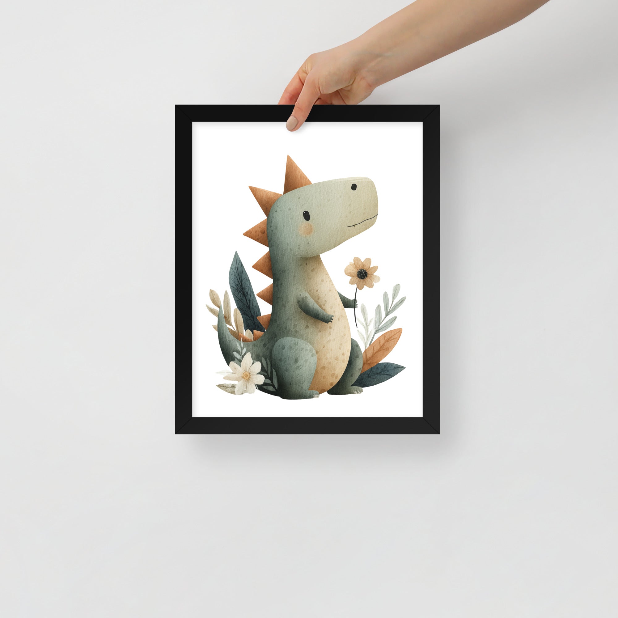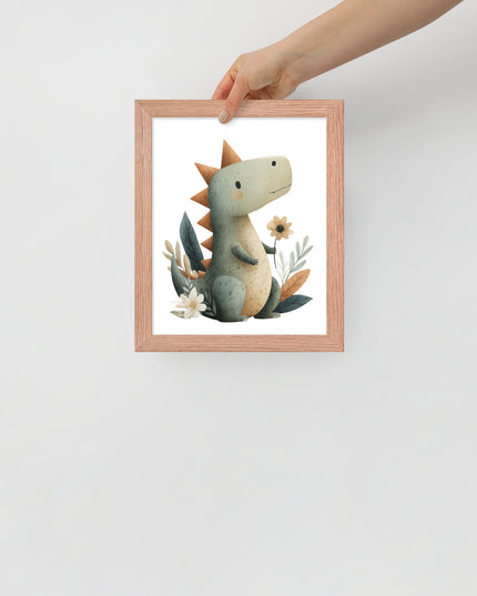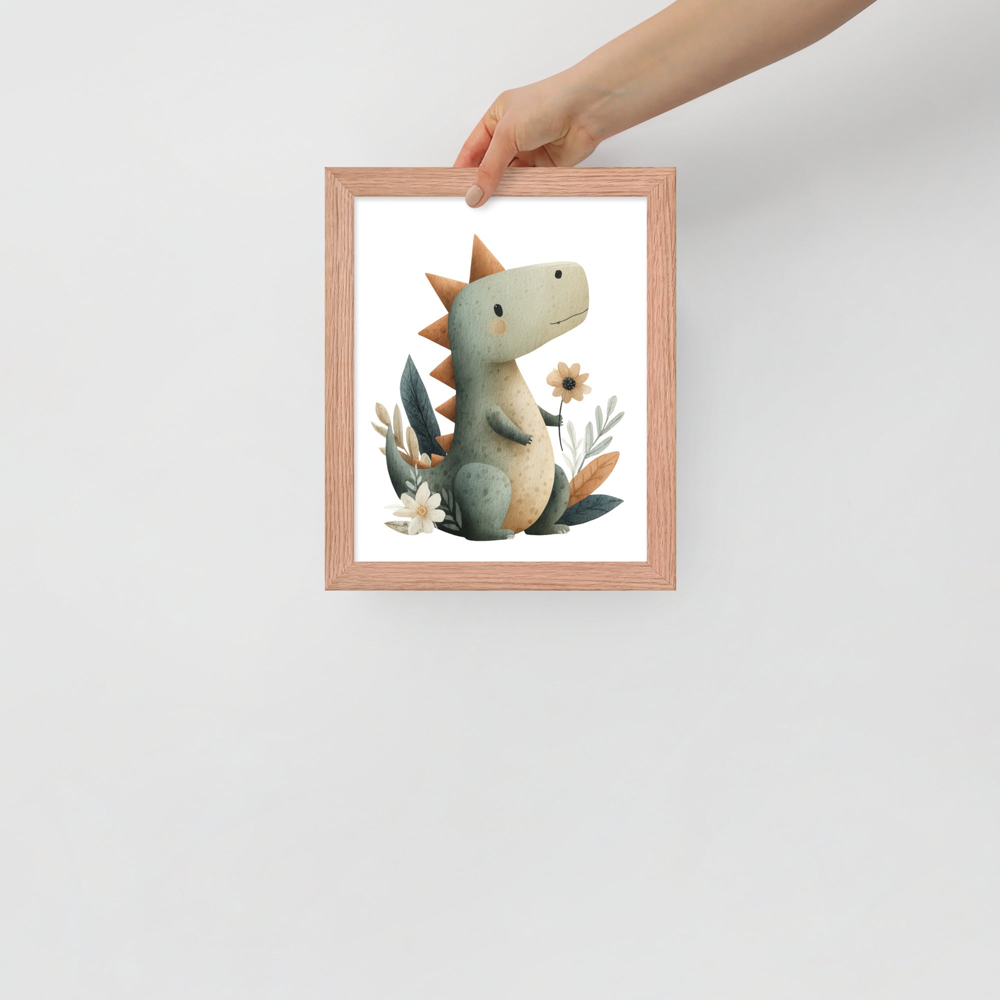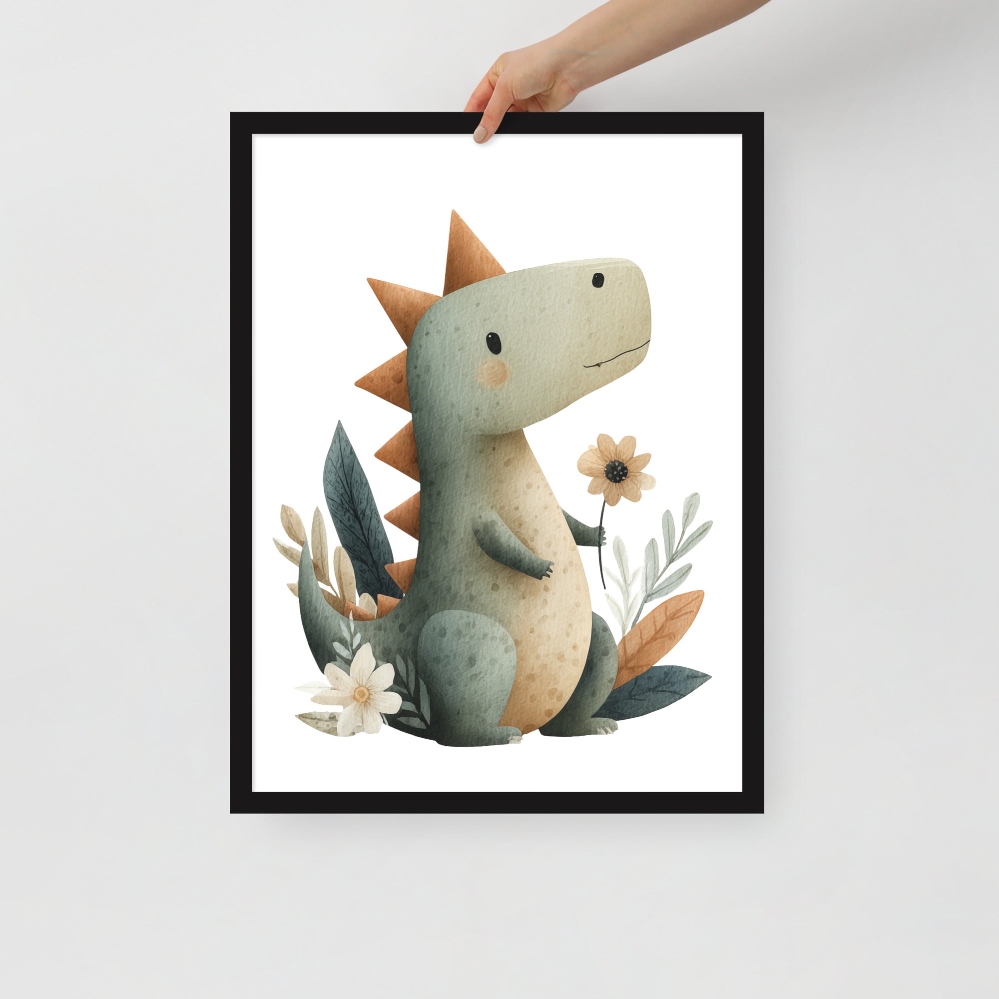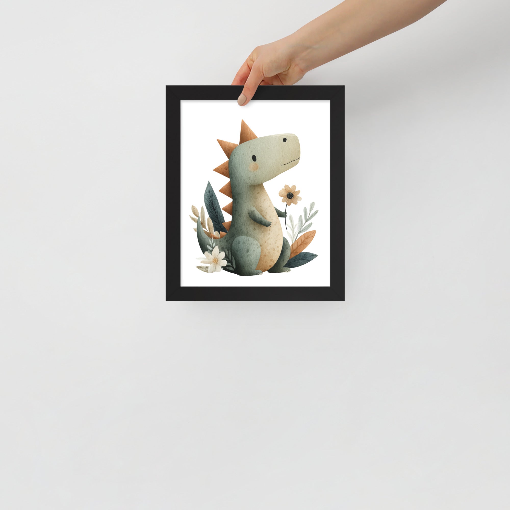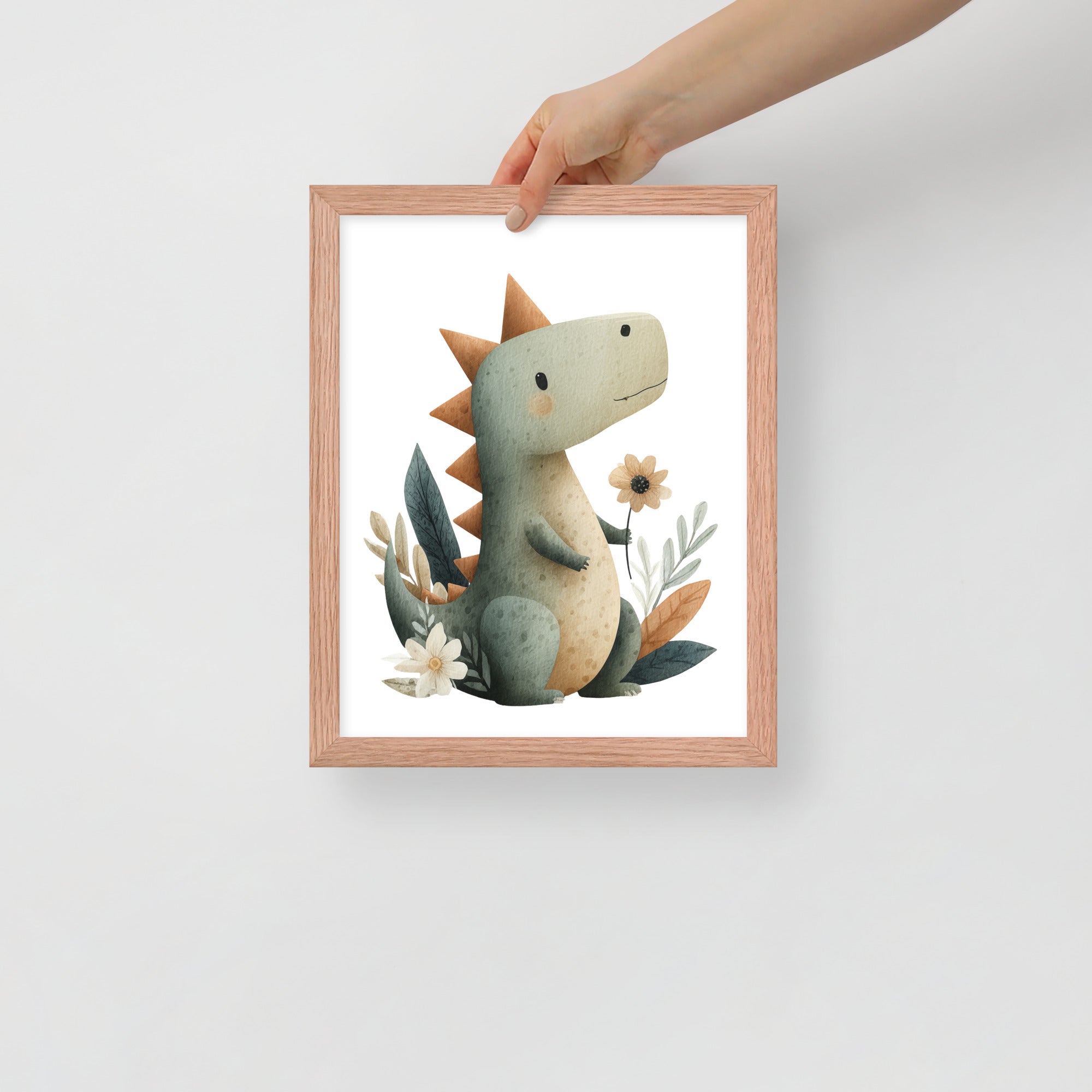 Rex & The Flower - Gentle Storybook Series - Framed Nursery Wall Art