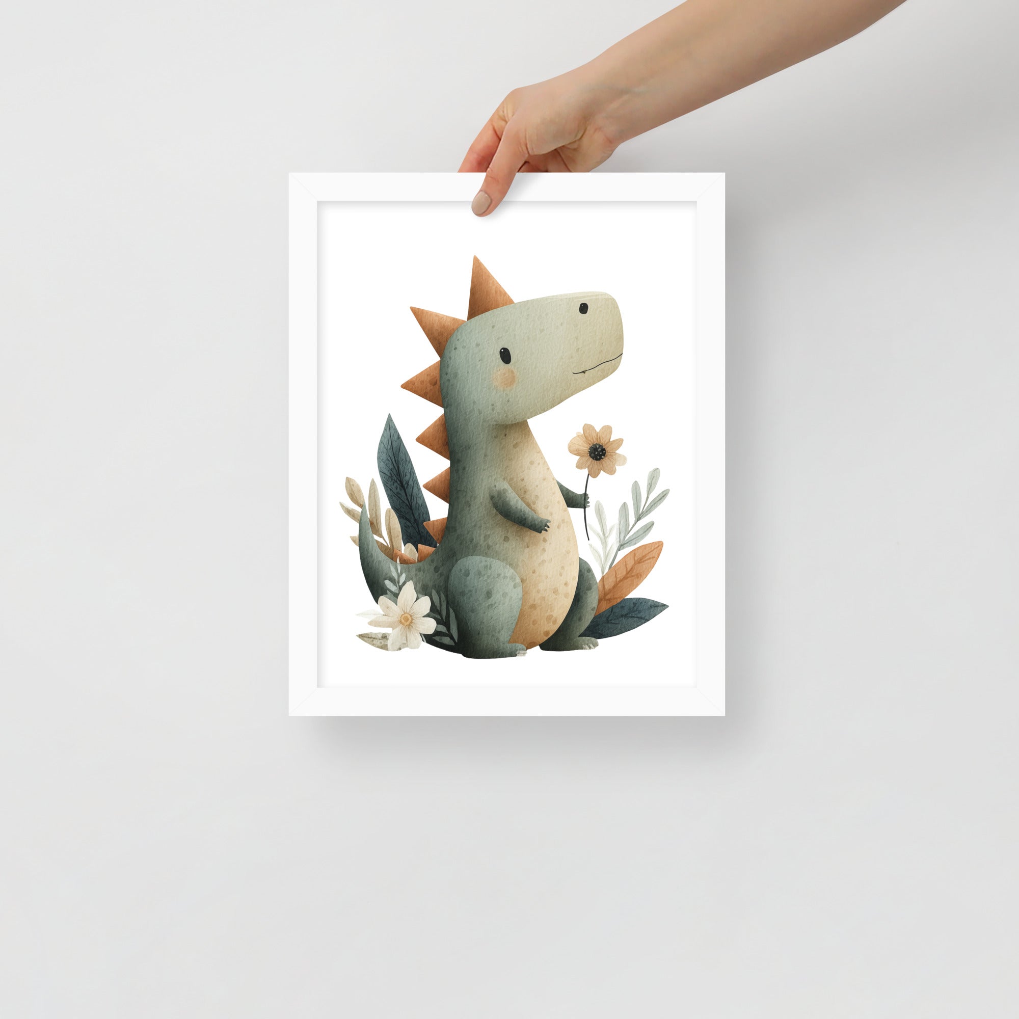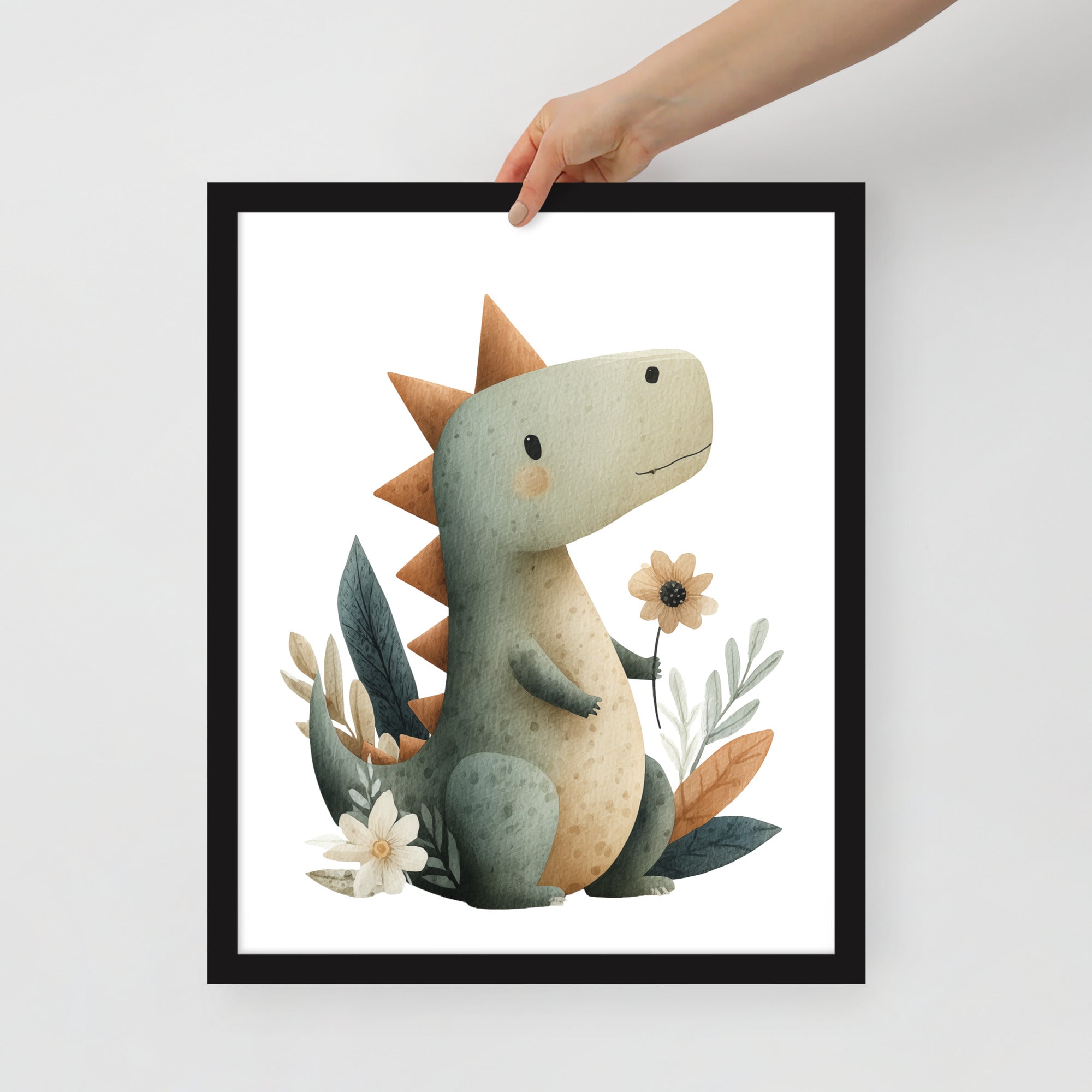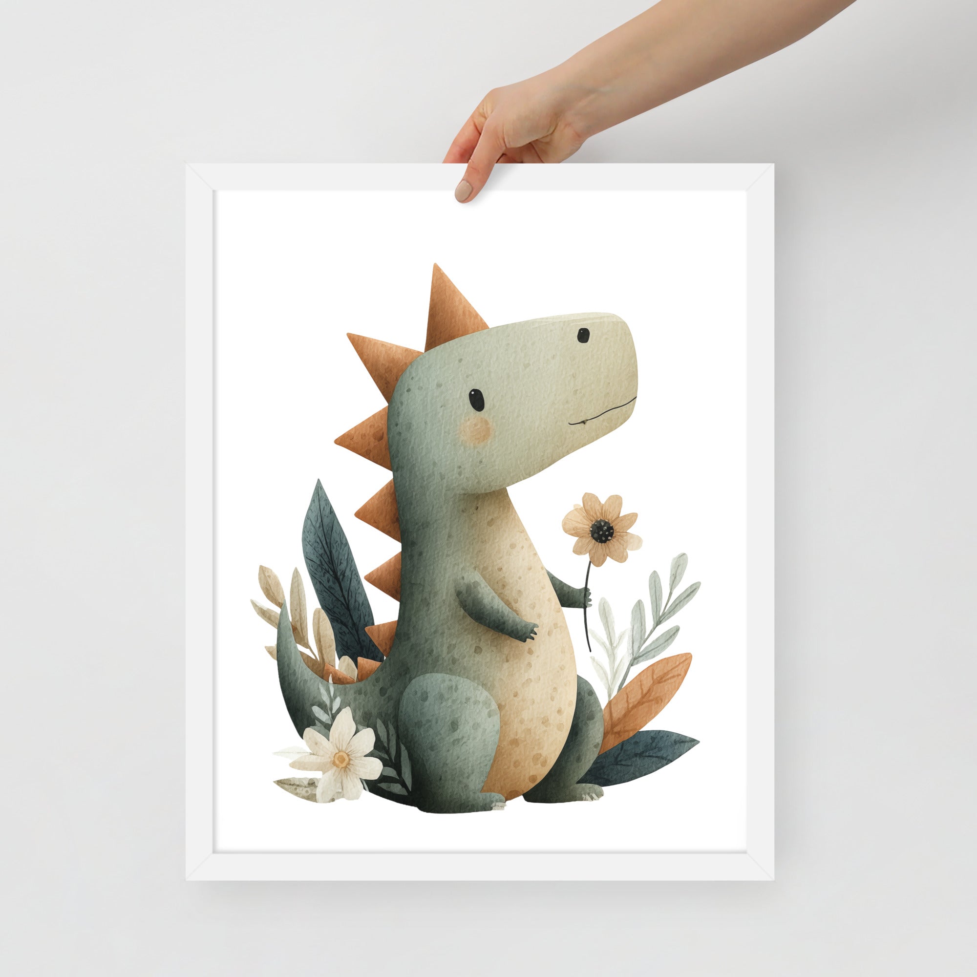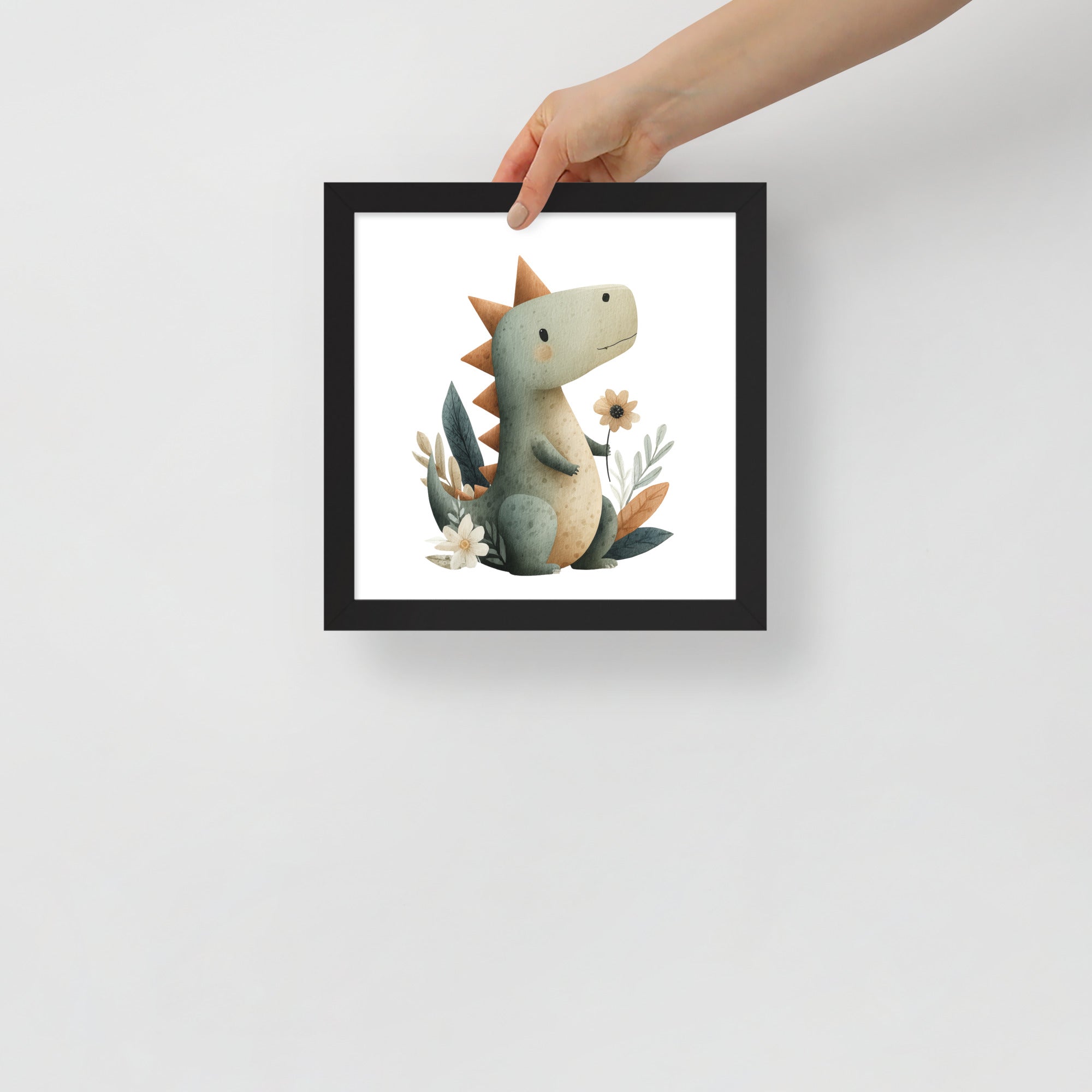 Rex & The Flower - Gentle Storybook Series - Framed Nursery Wall Art
