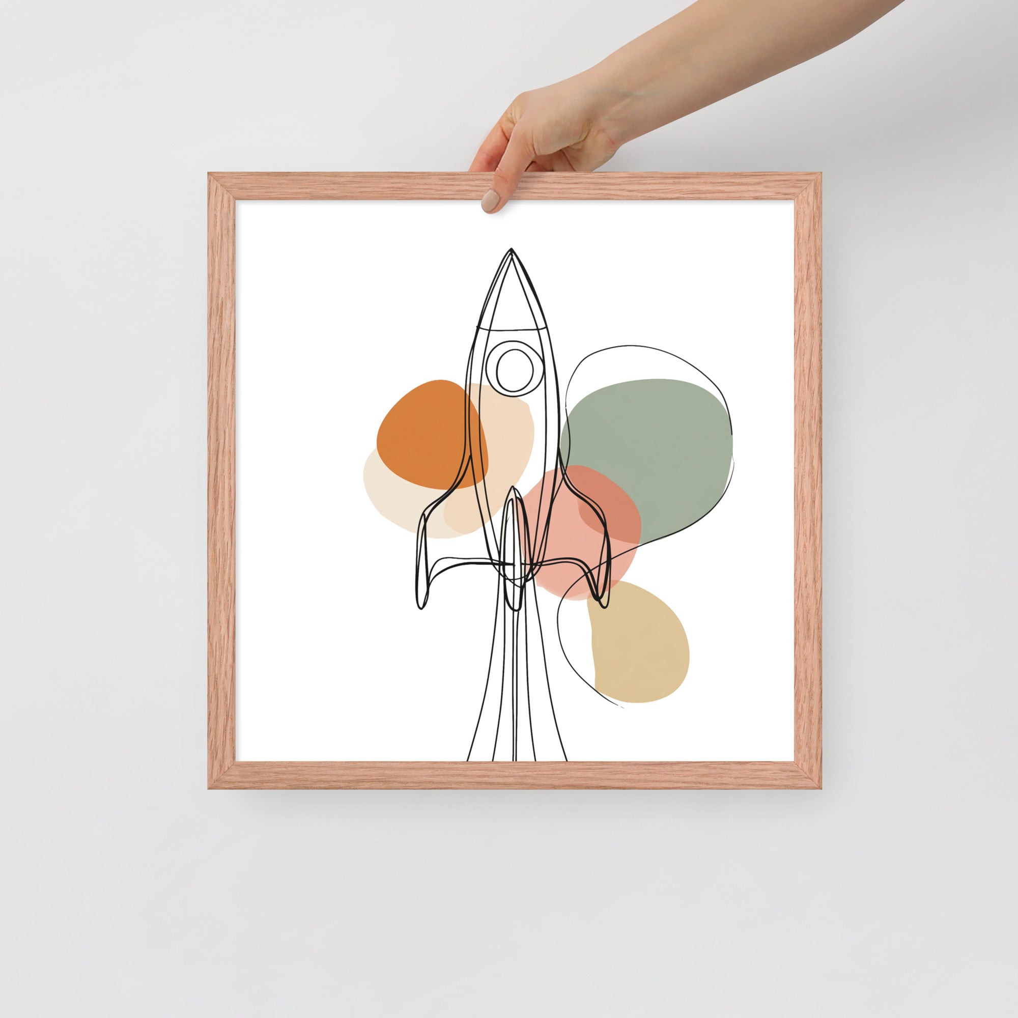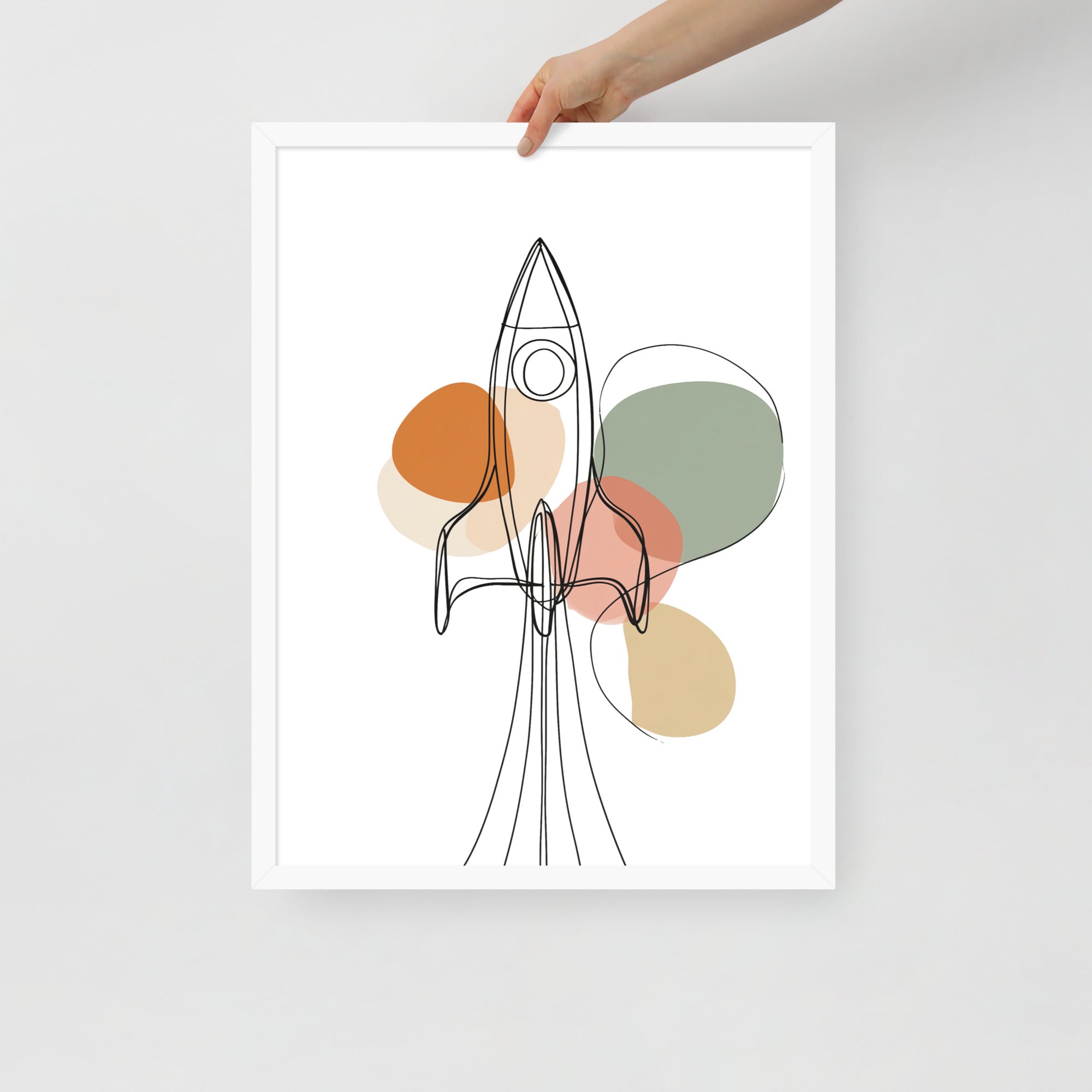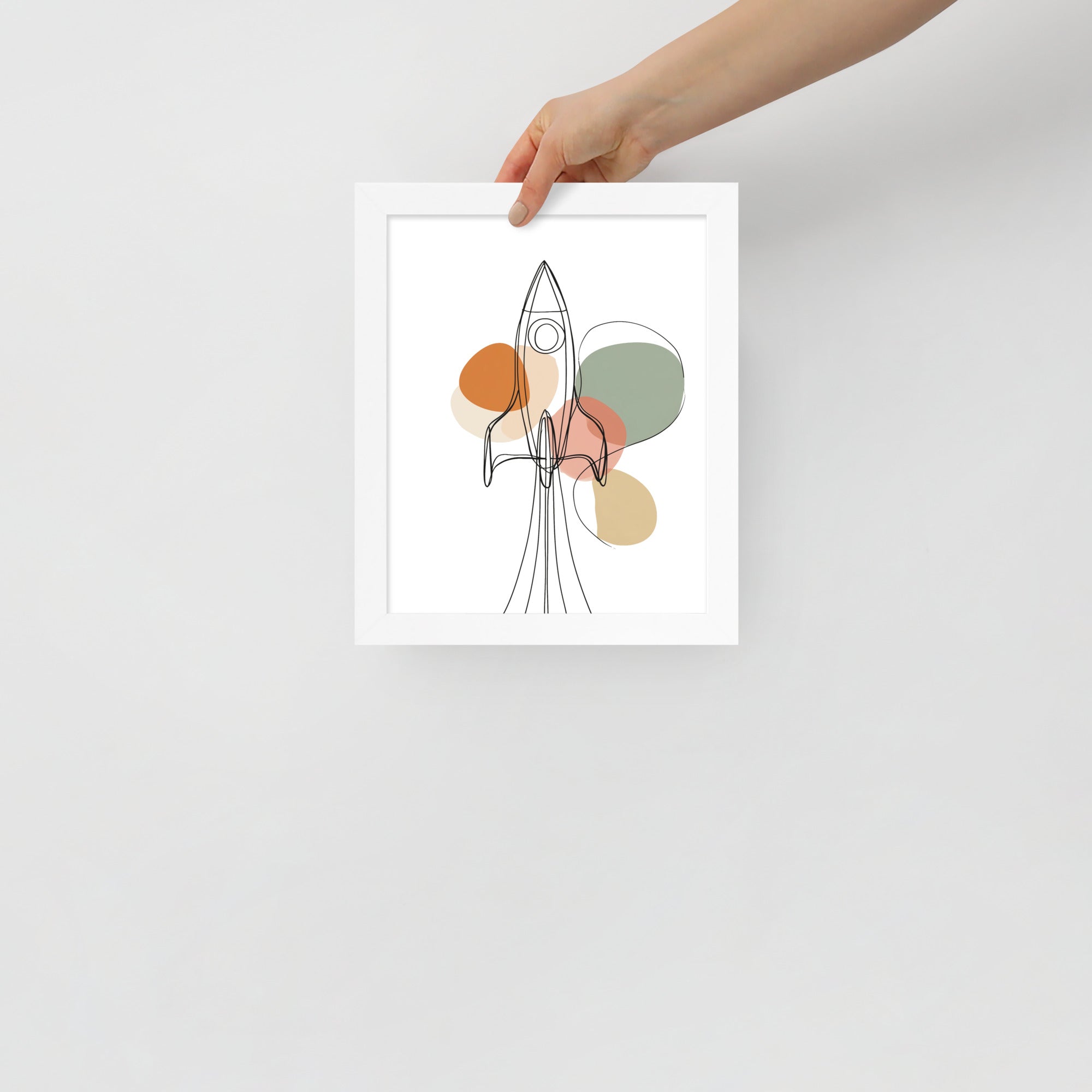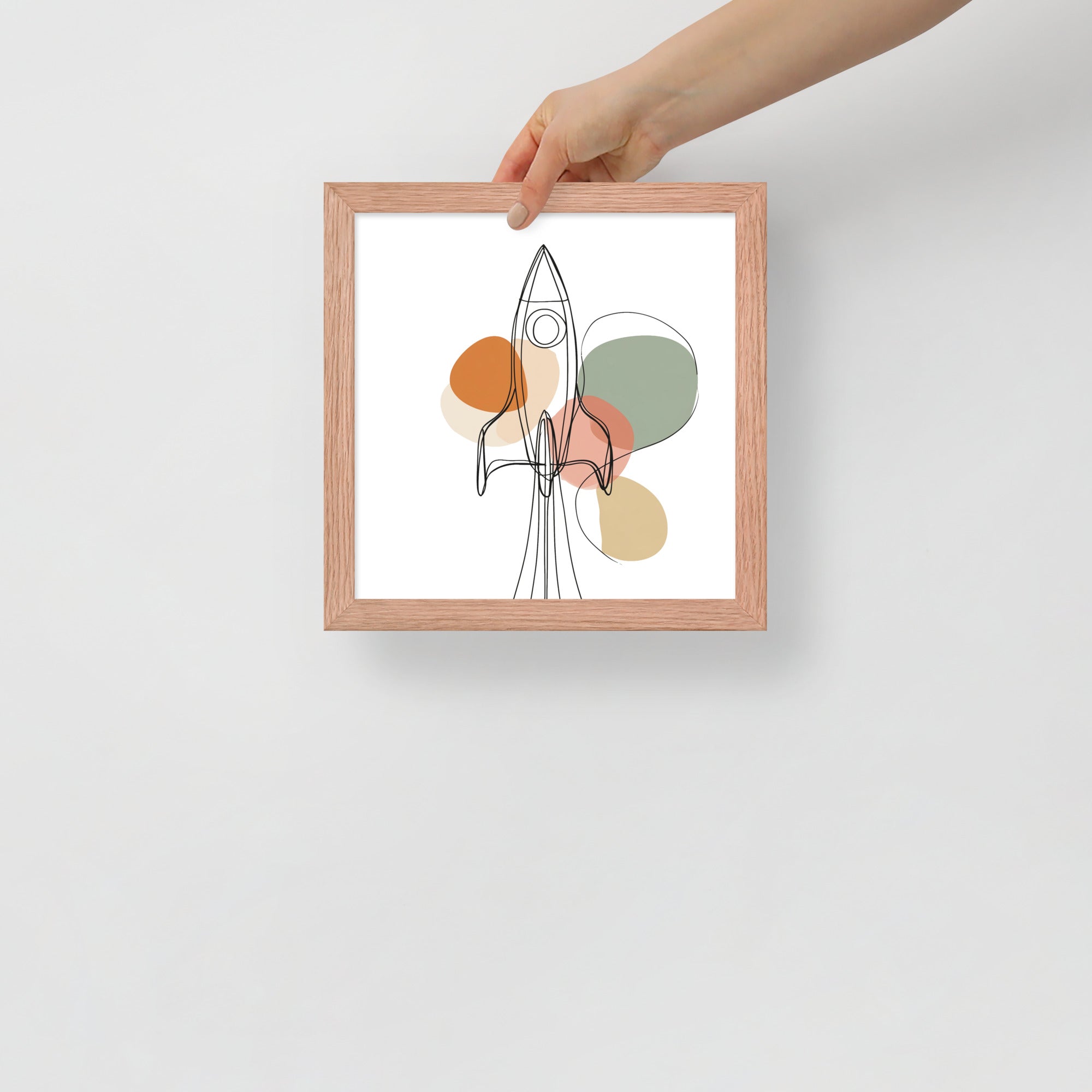 Rocketship to Space - Line Art Series - Framed Nursery Wall Art