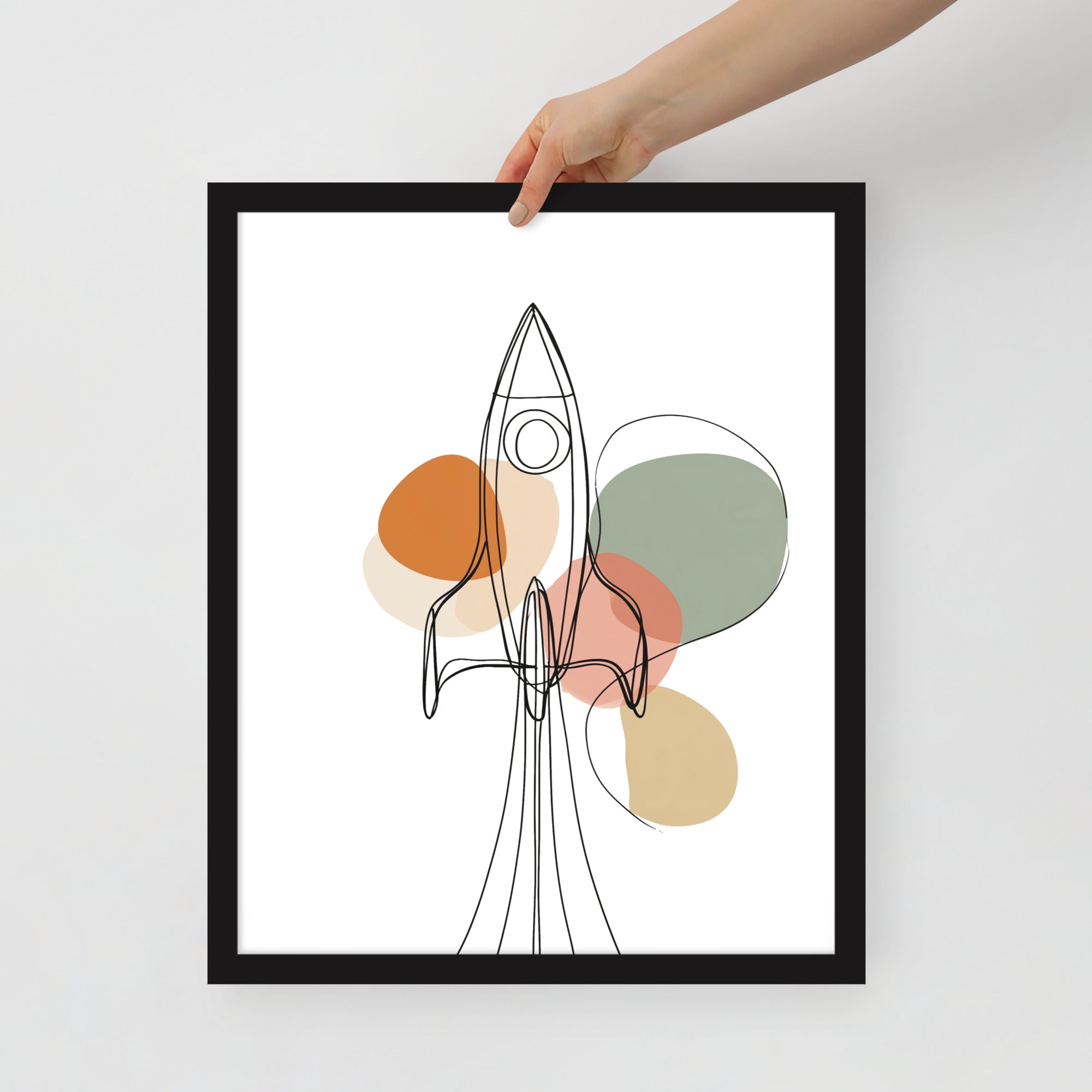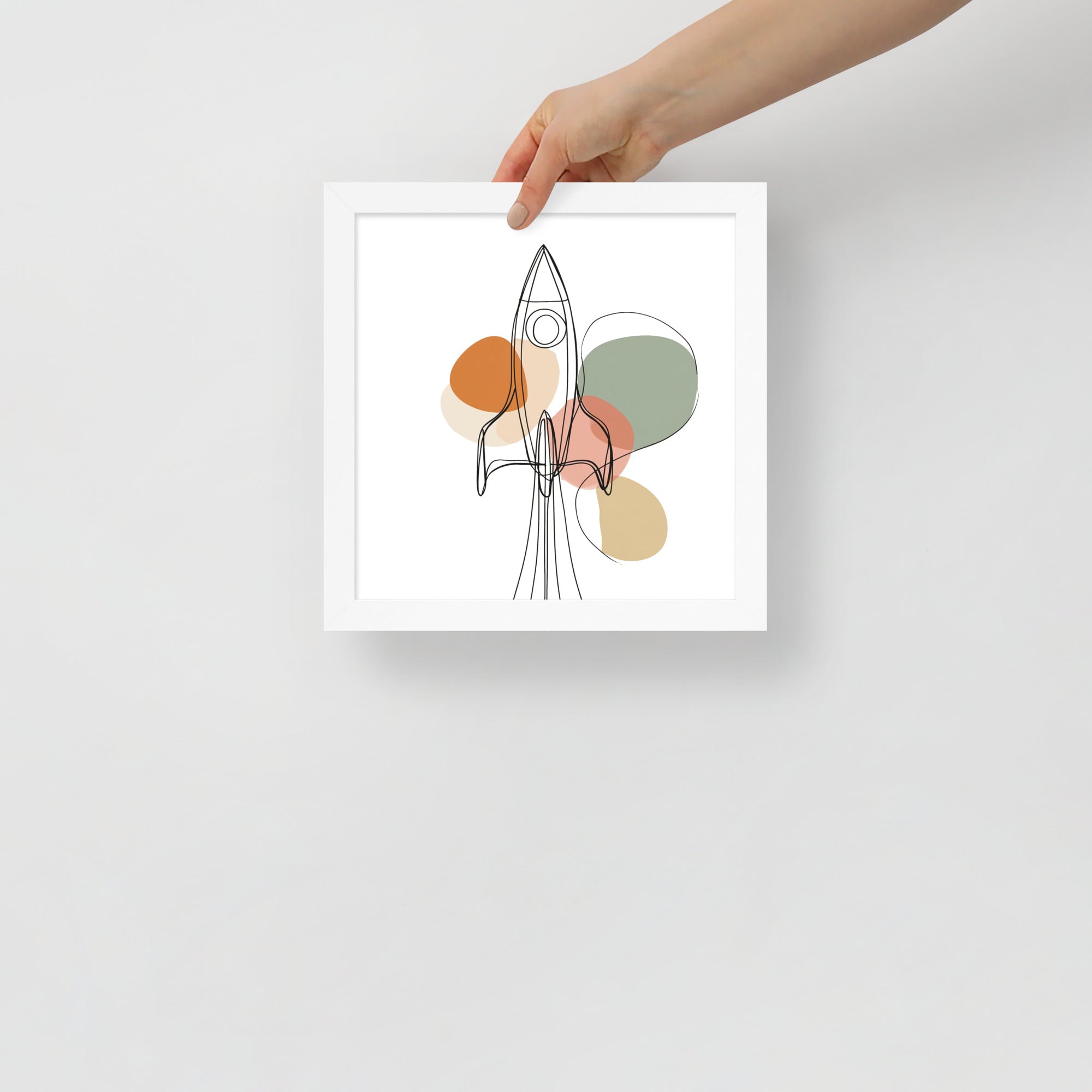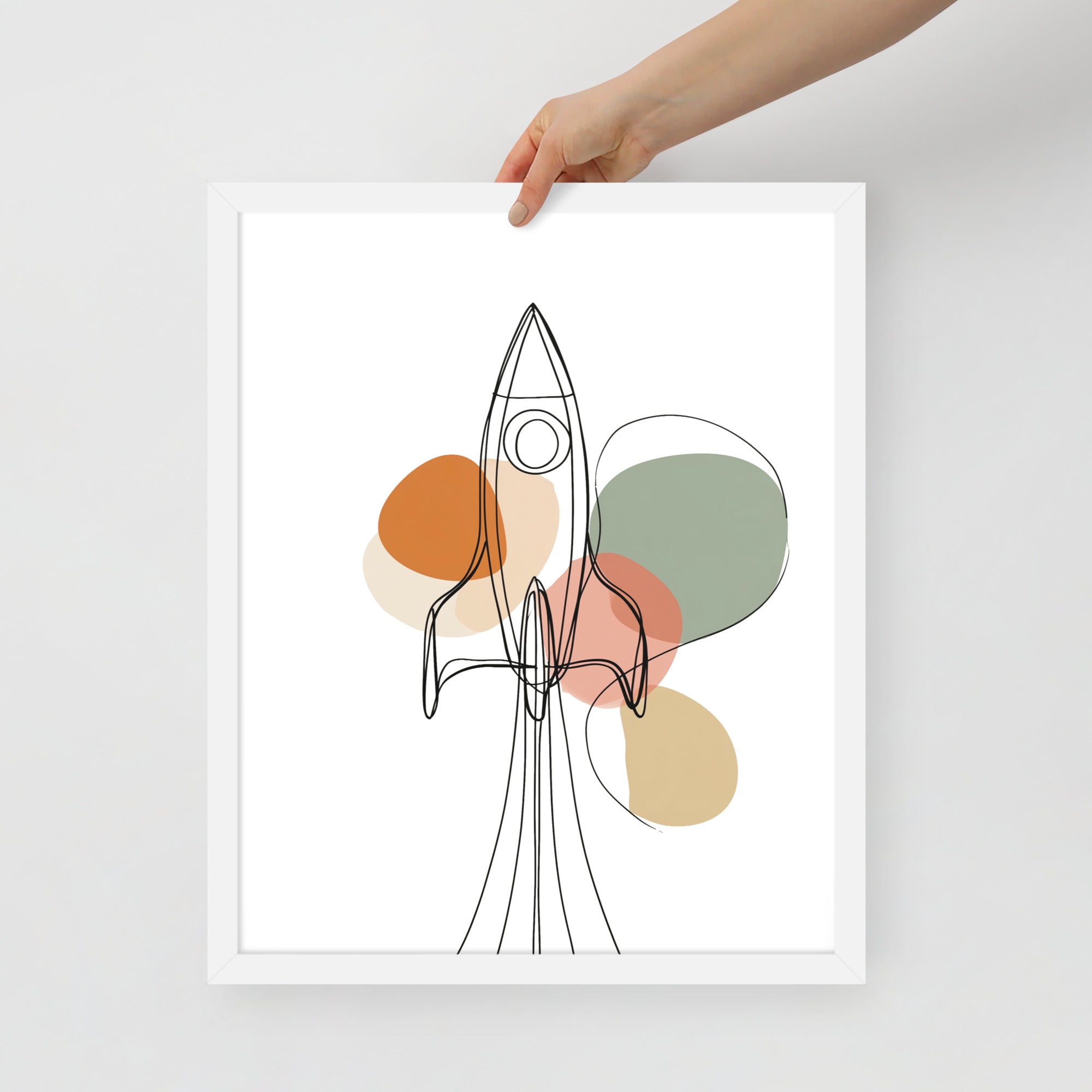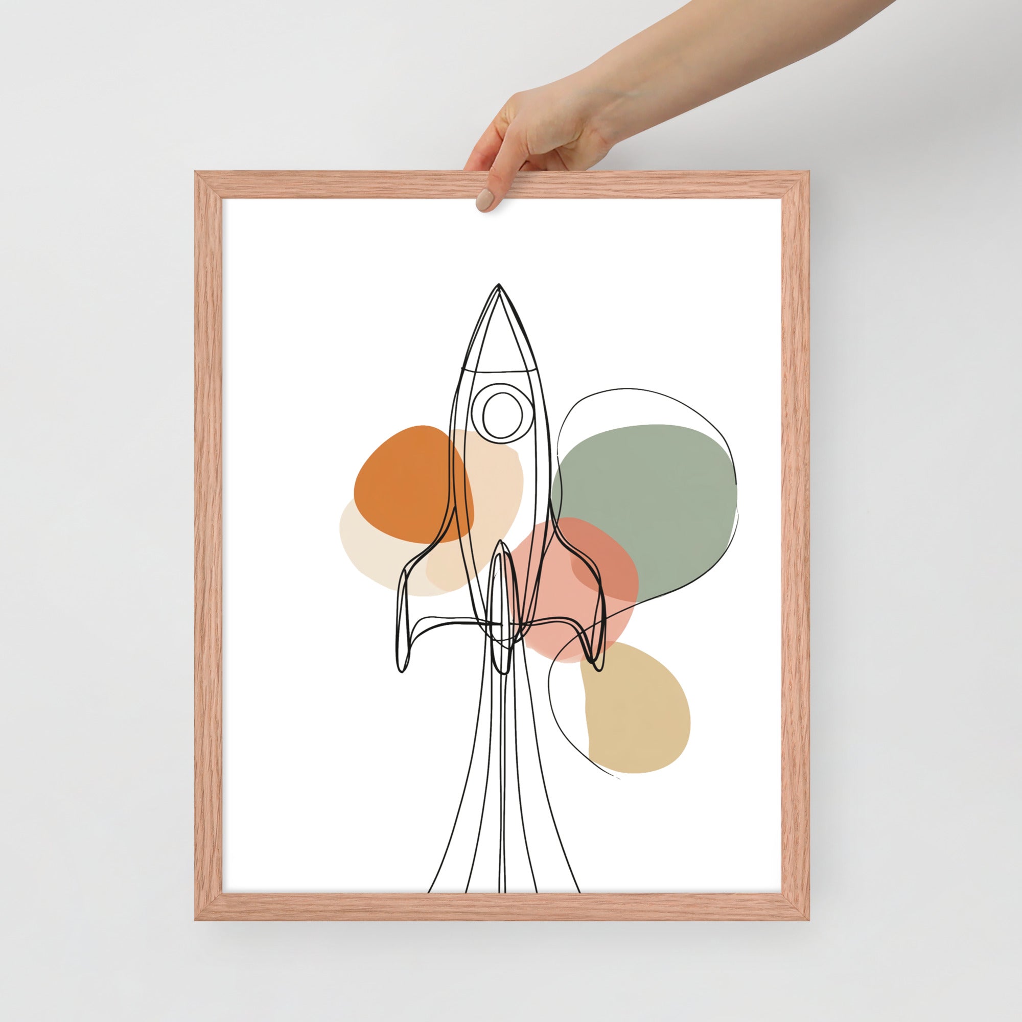 Rocketship to Space - Line Art Series - Framed Nursery Wall Art