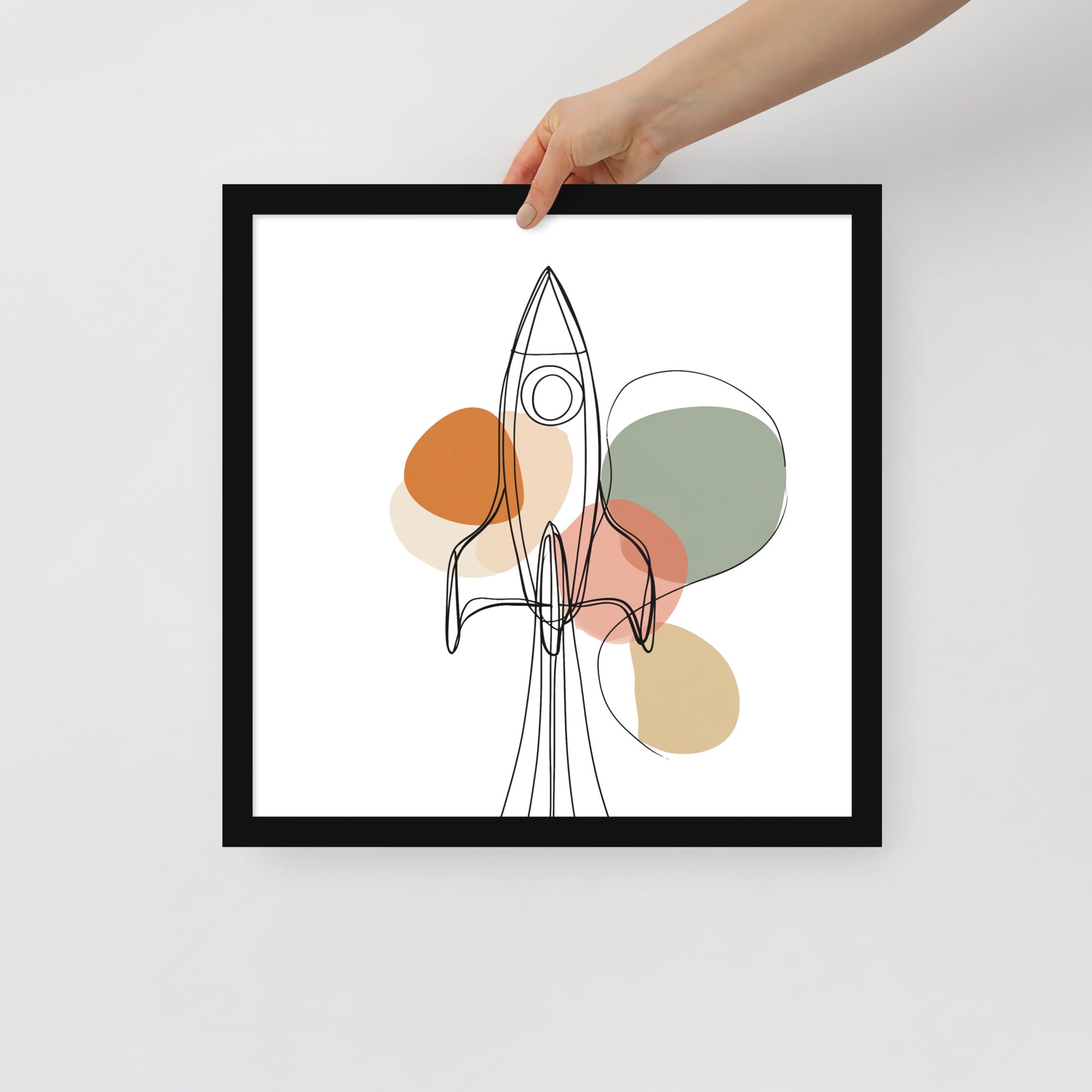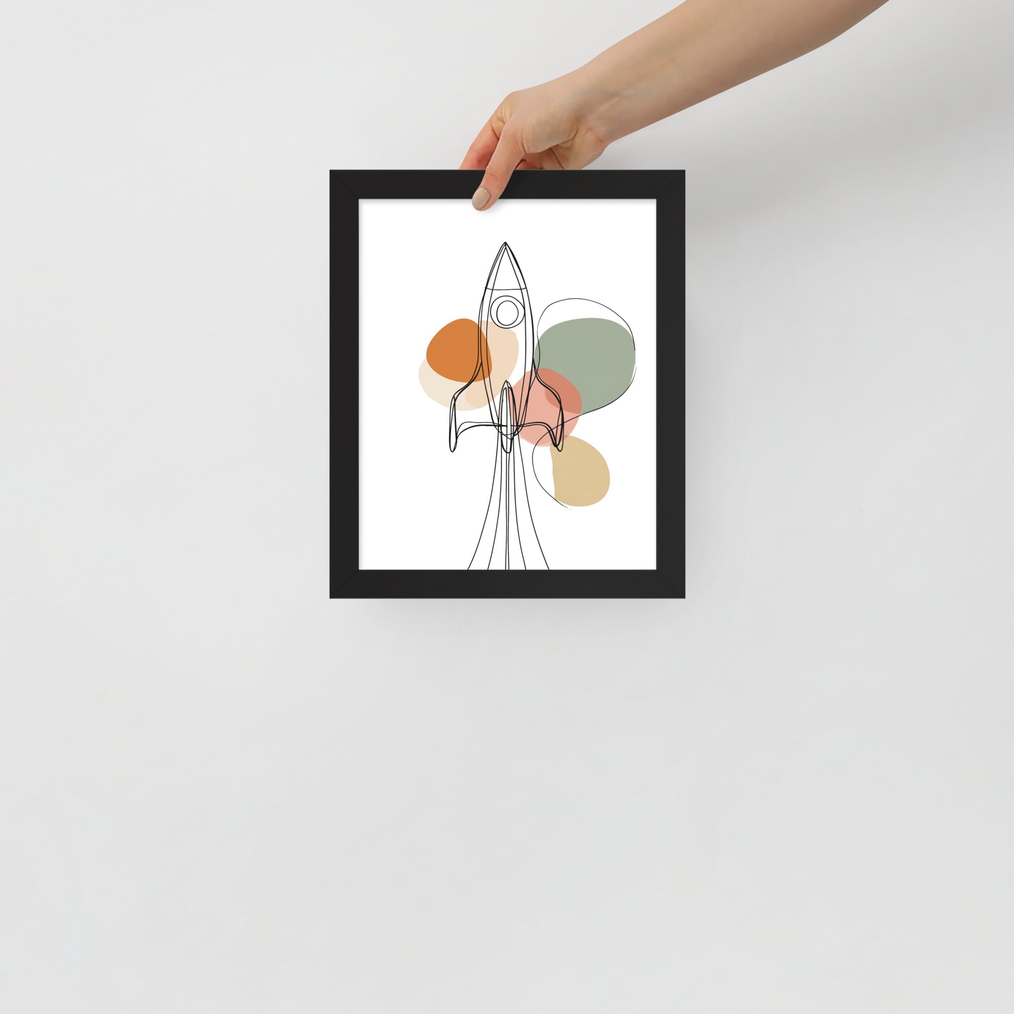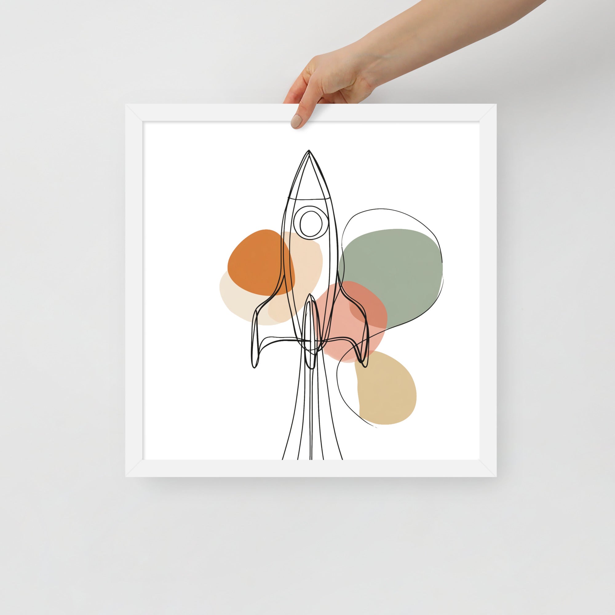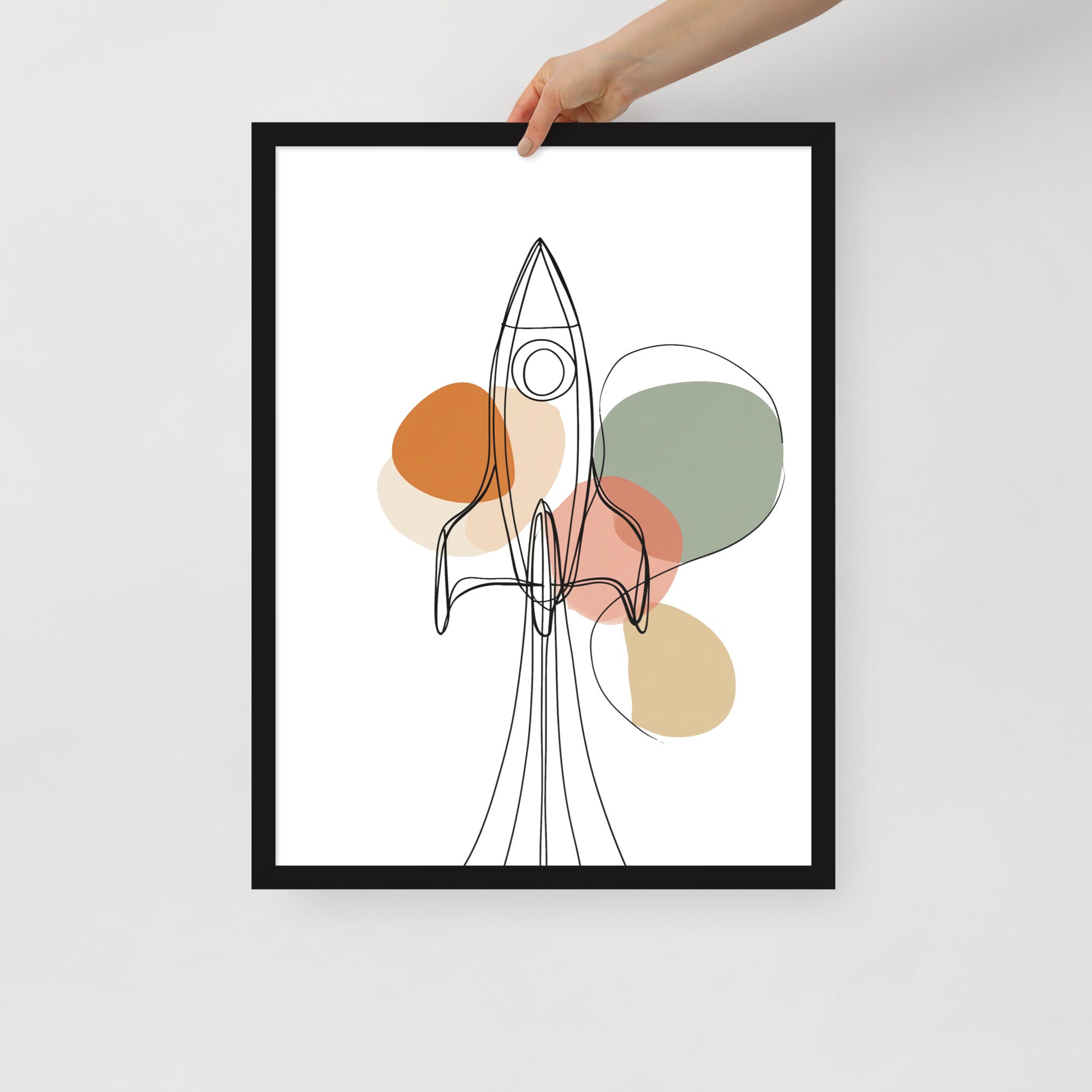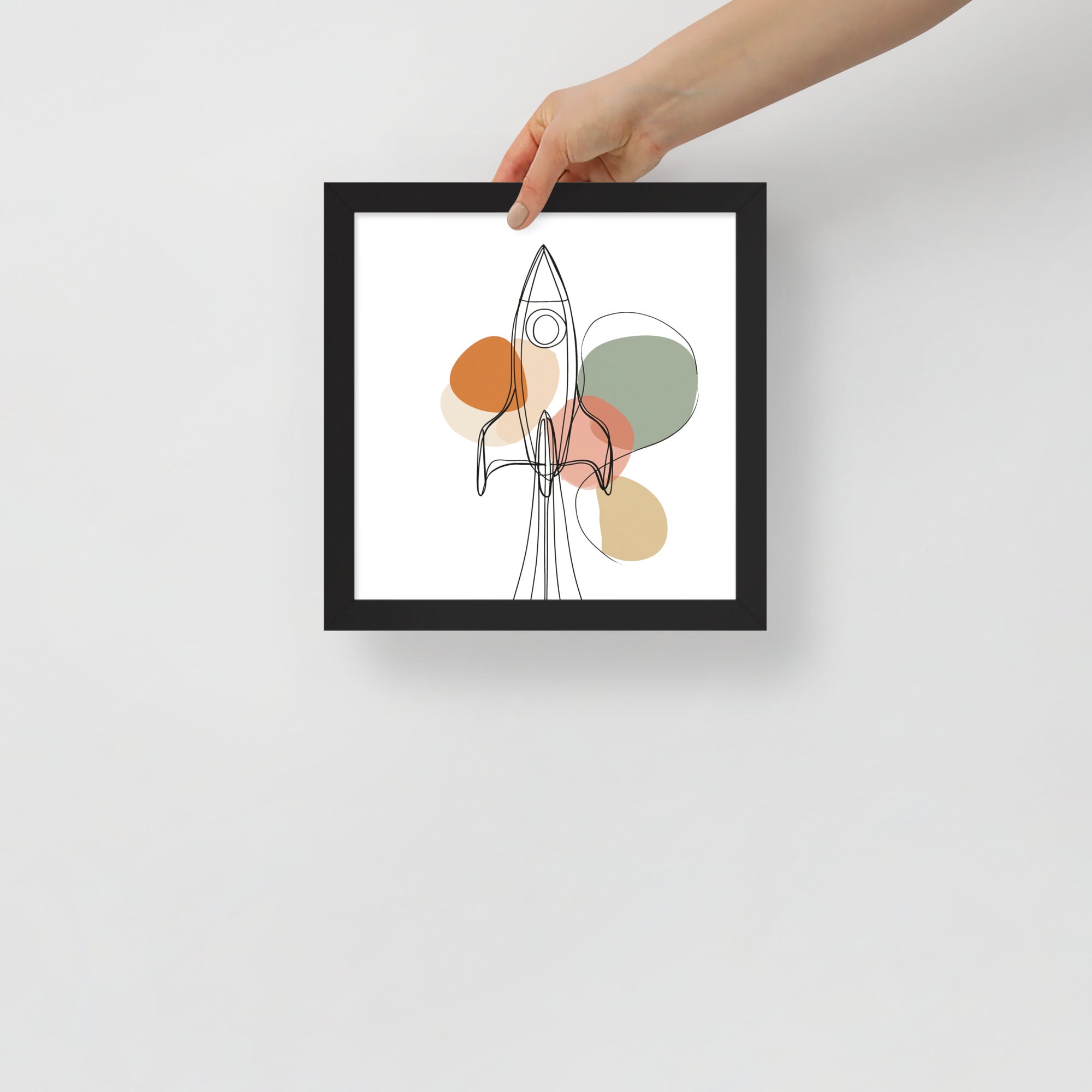 Rocketship to Space - Line Art Series - Framed Nursery Wall Art