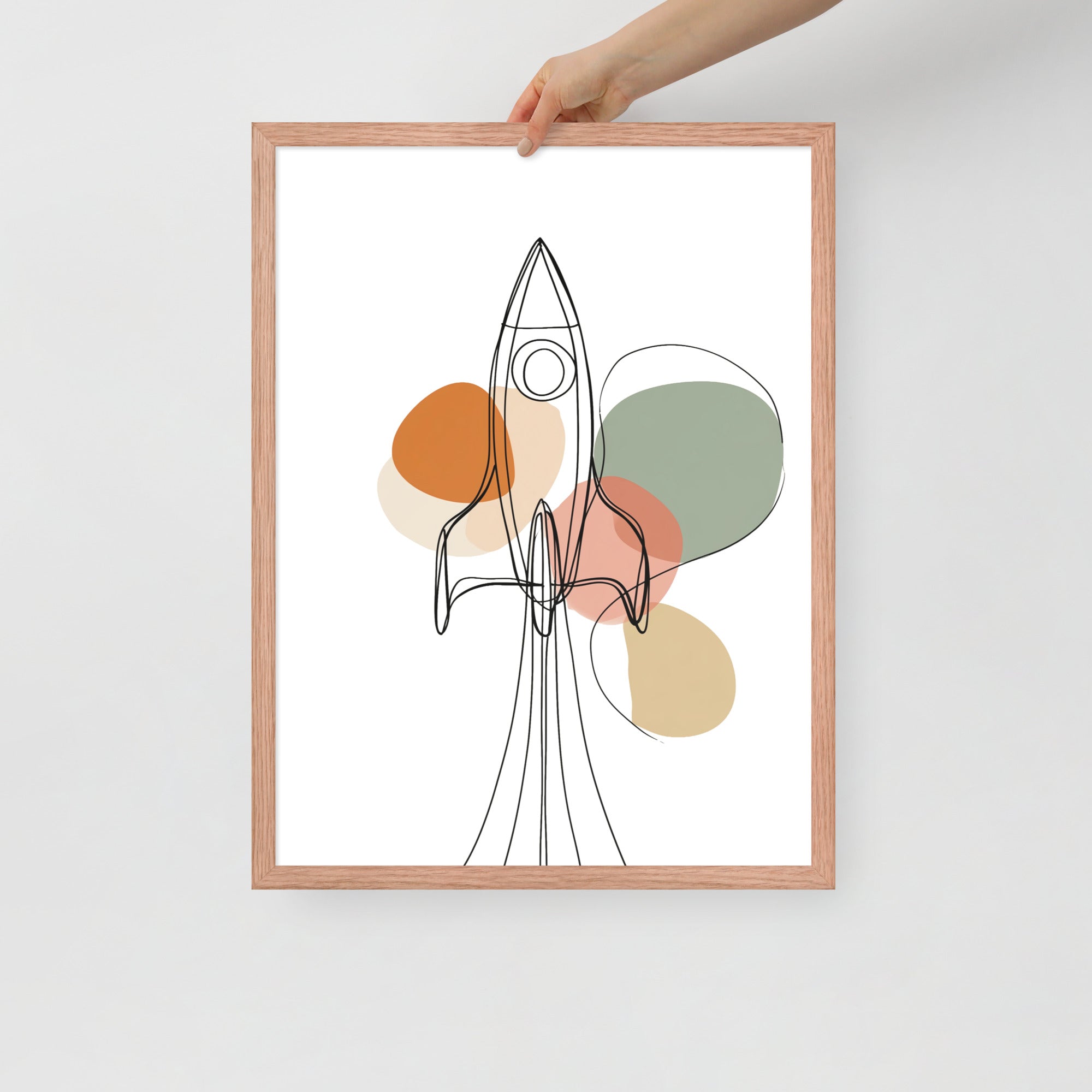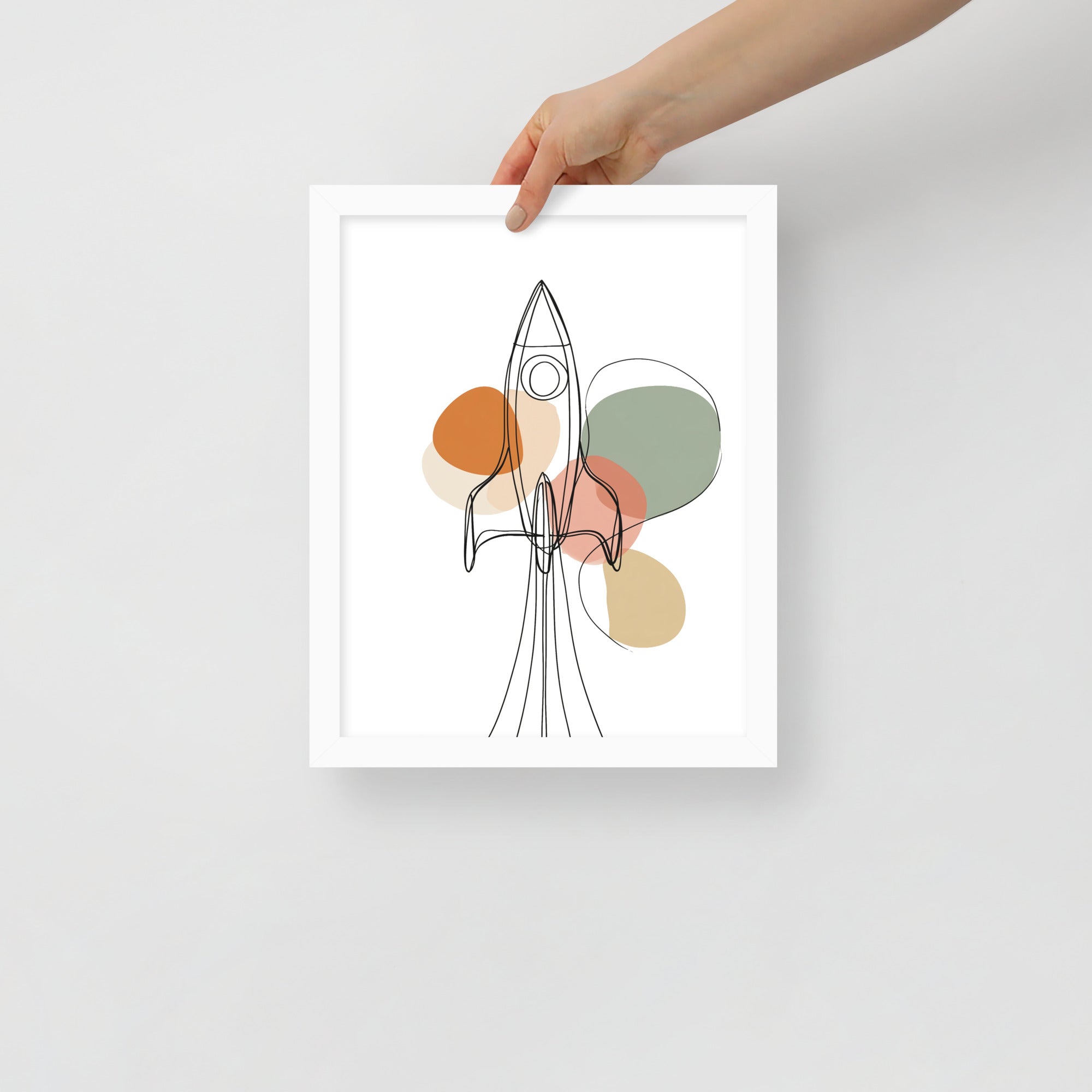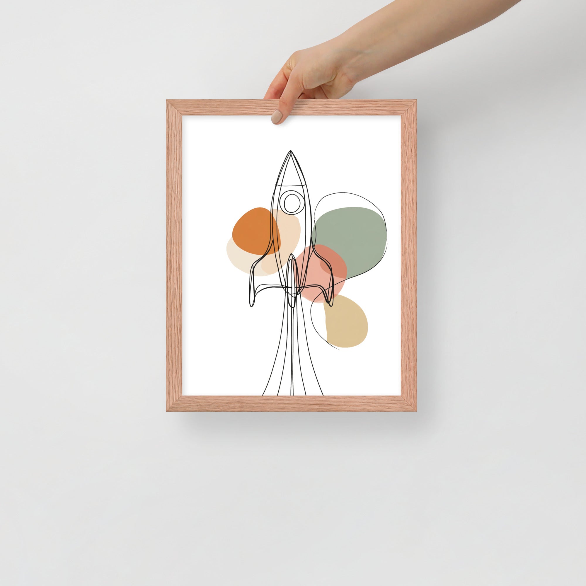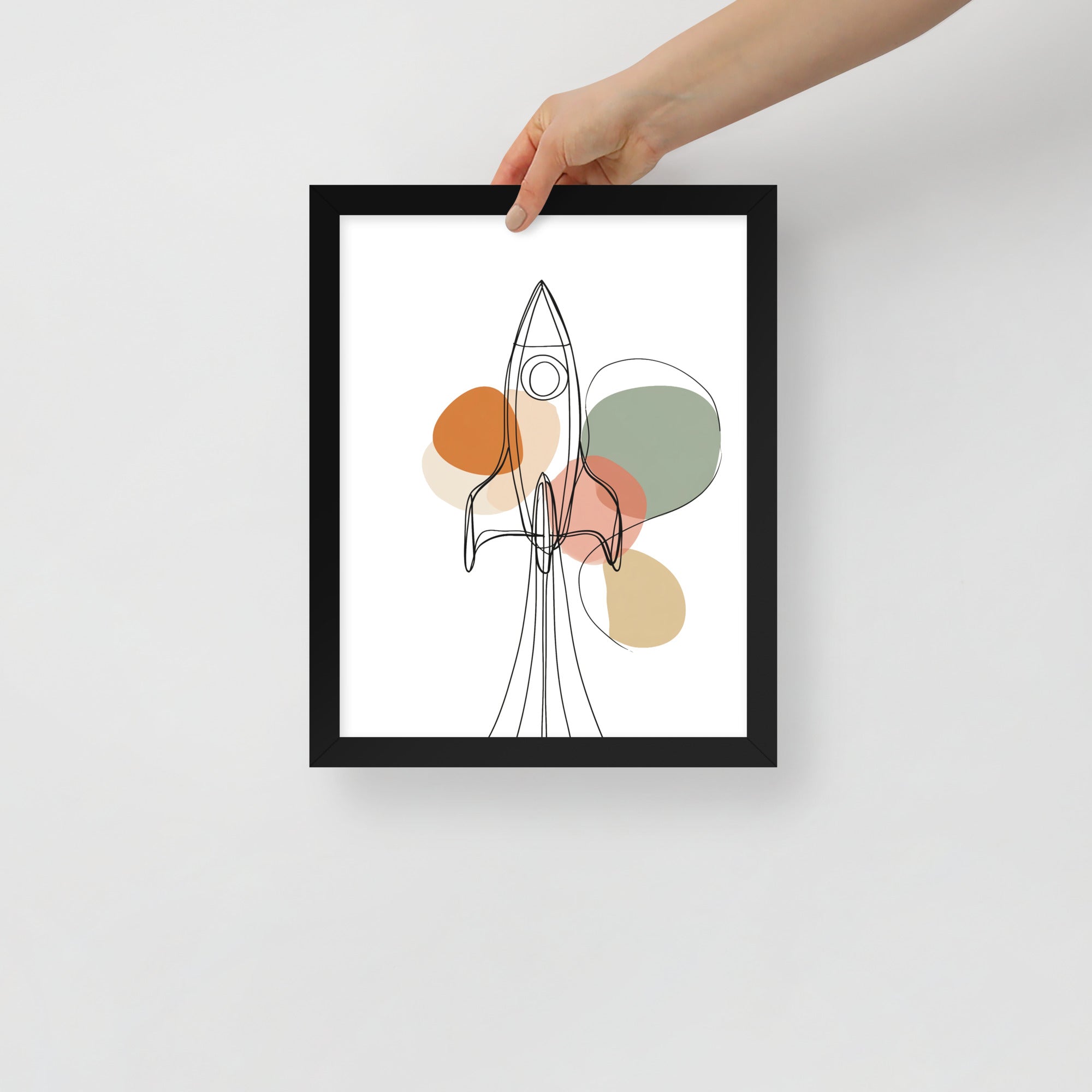 Rocketship to Space - Line Art Series - Framed Nursery Wall Art