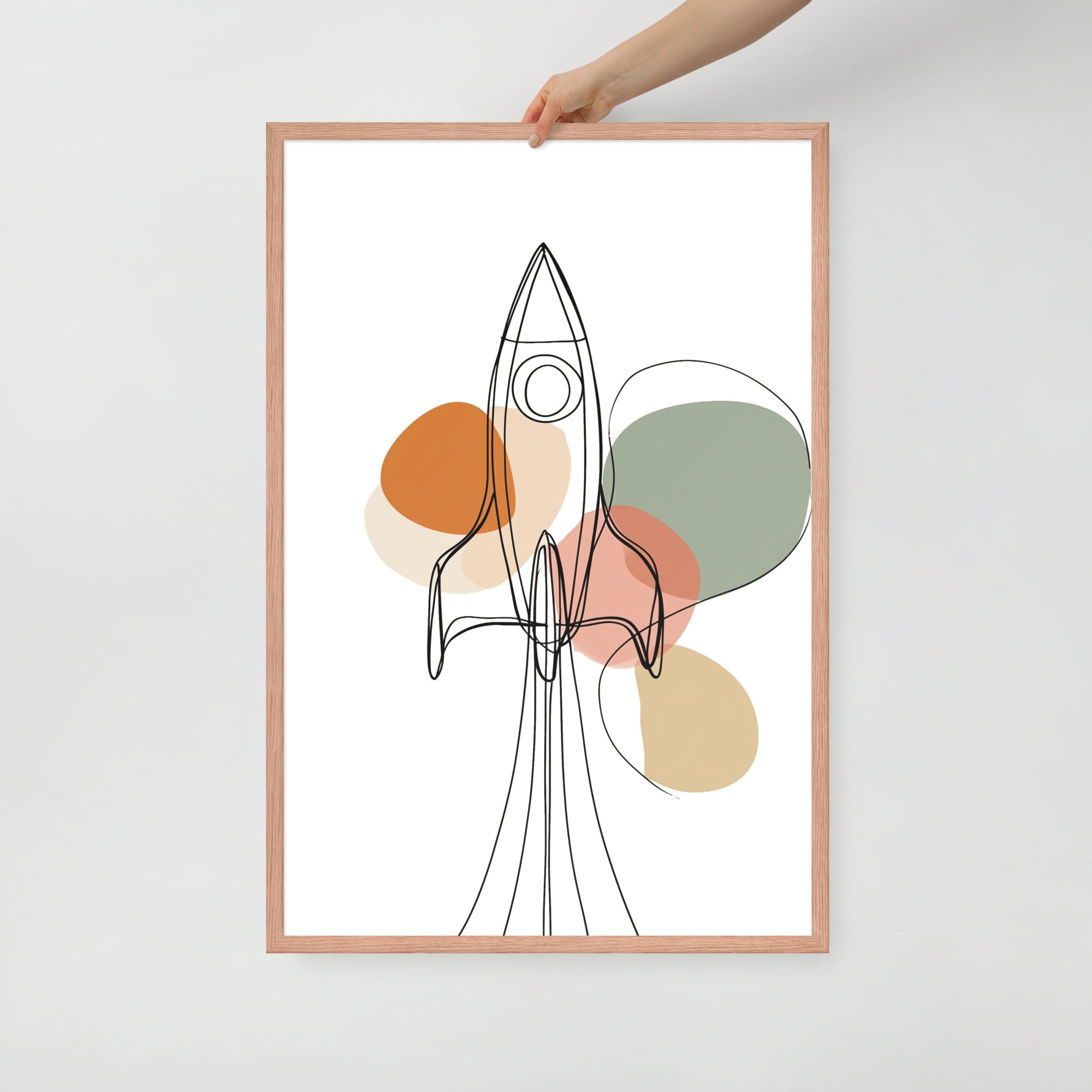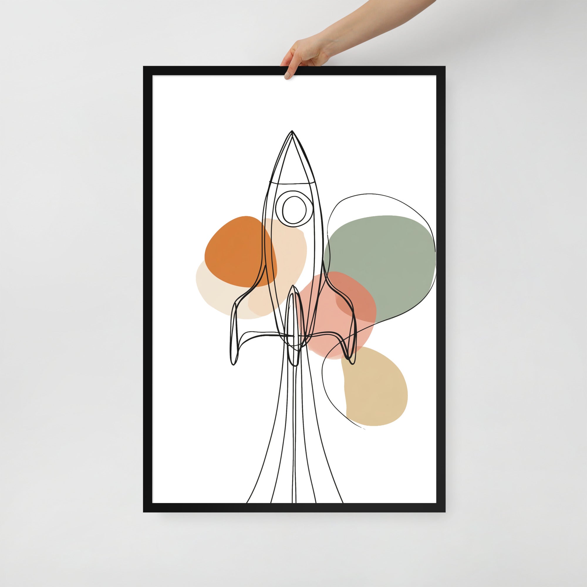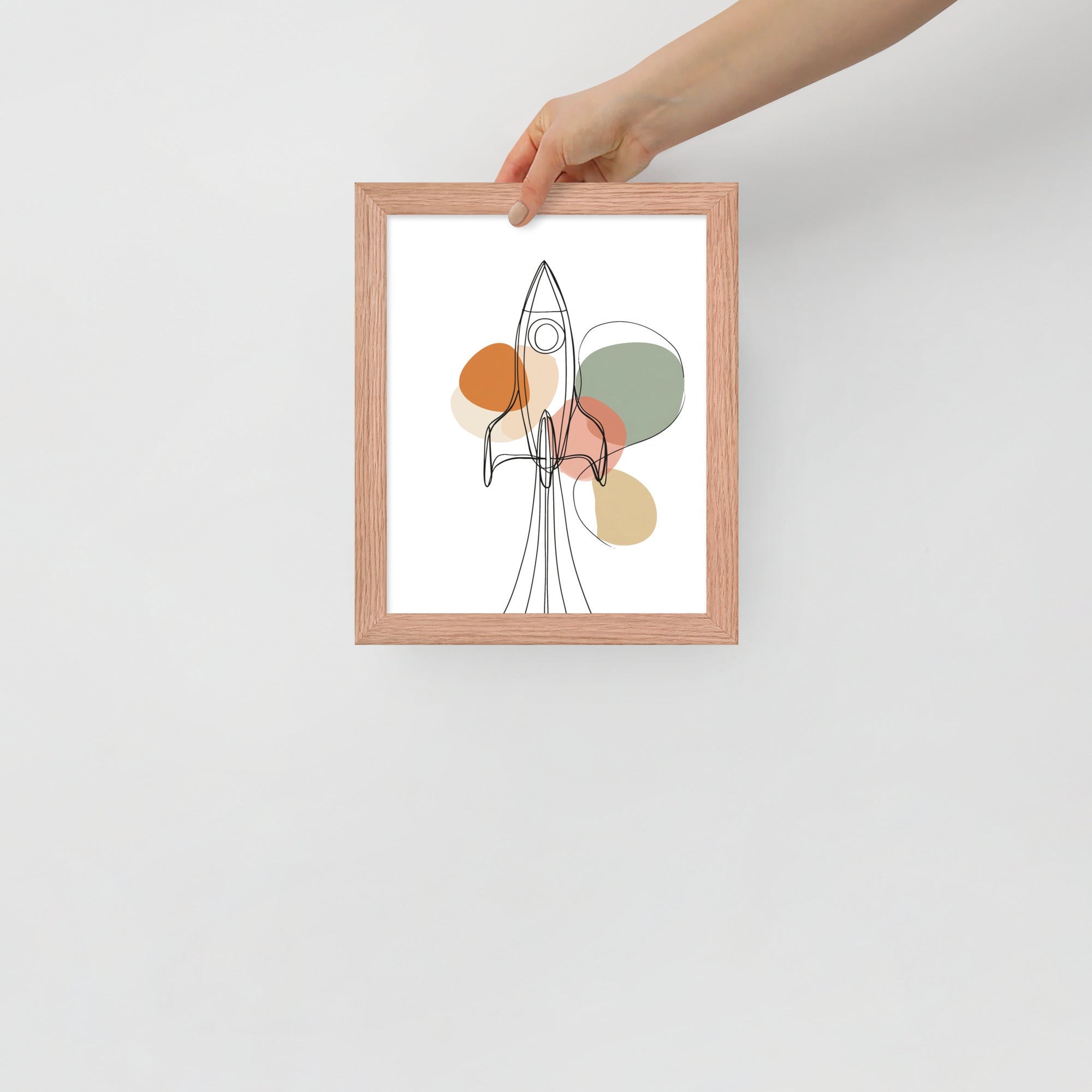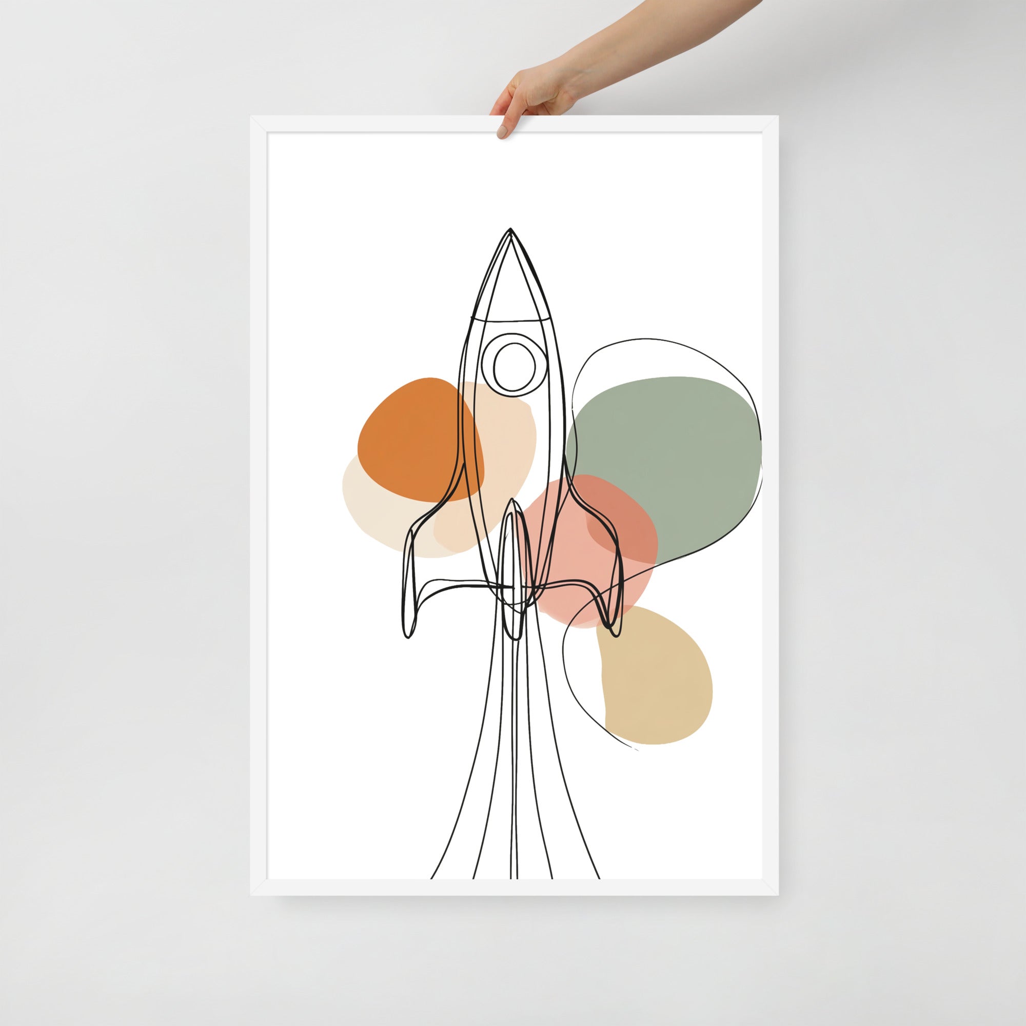 Rocketship to Space - Line Art Series - Framed Nursery Wall Art